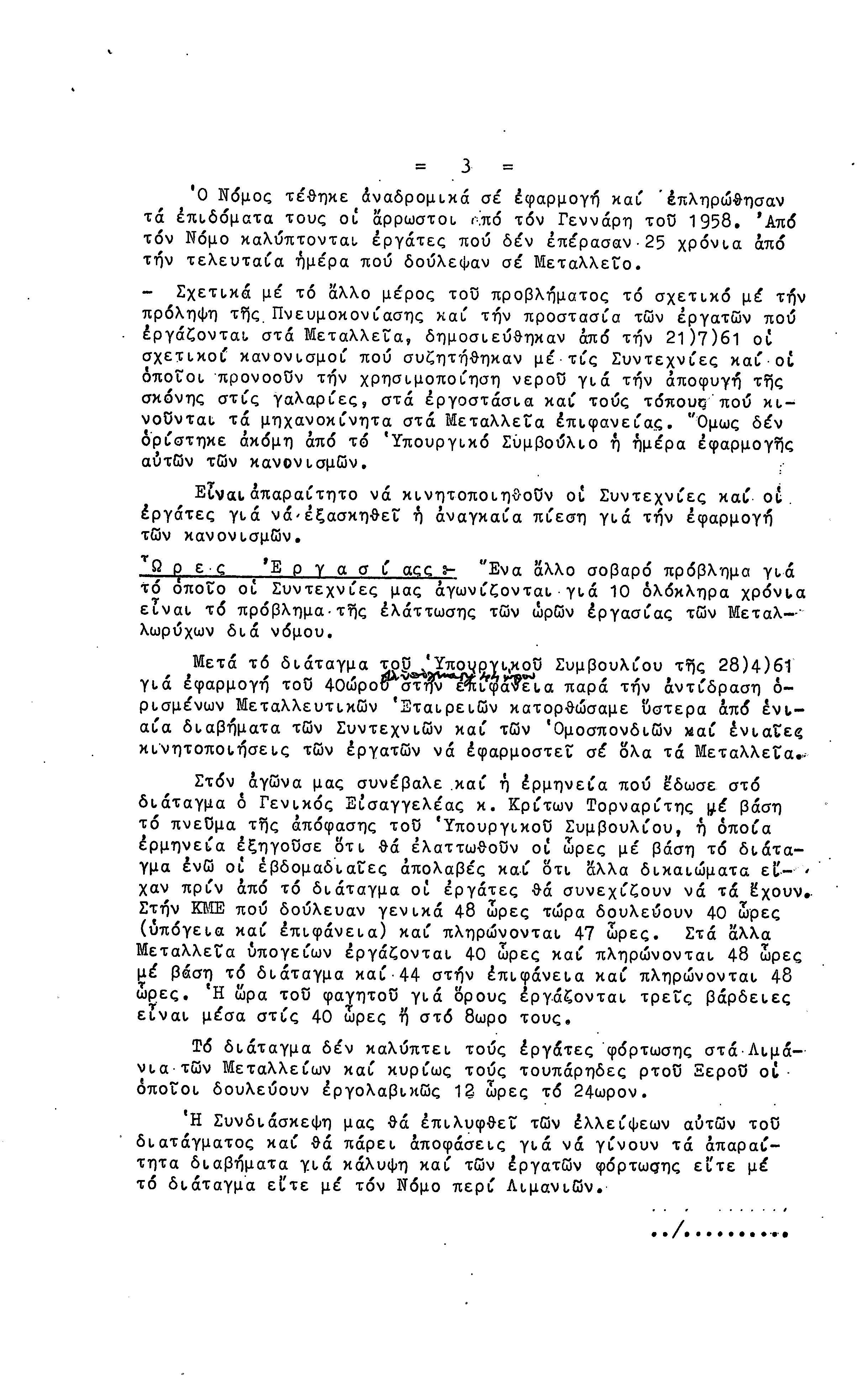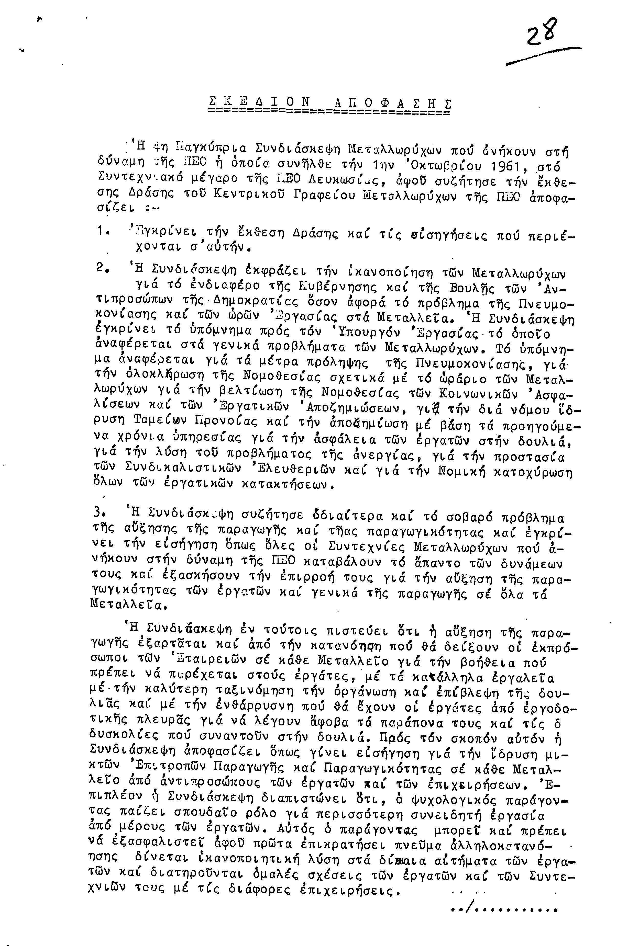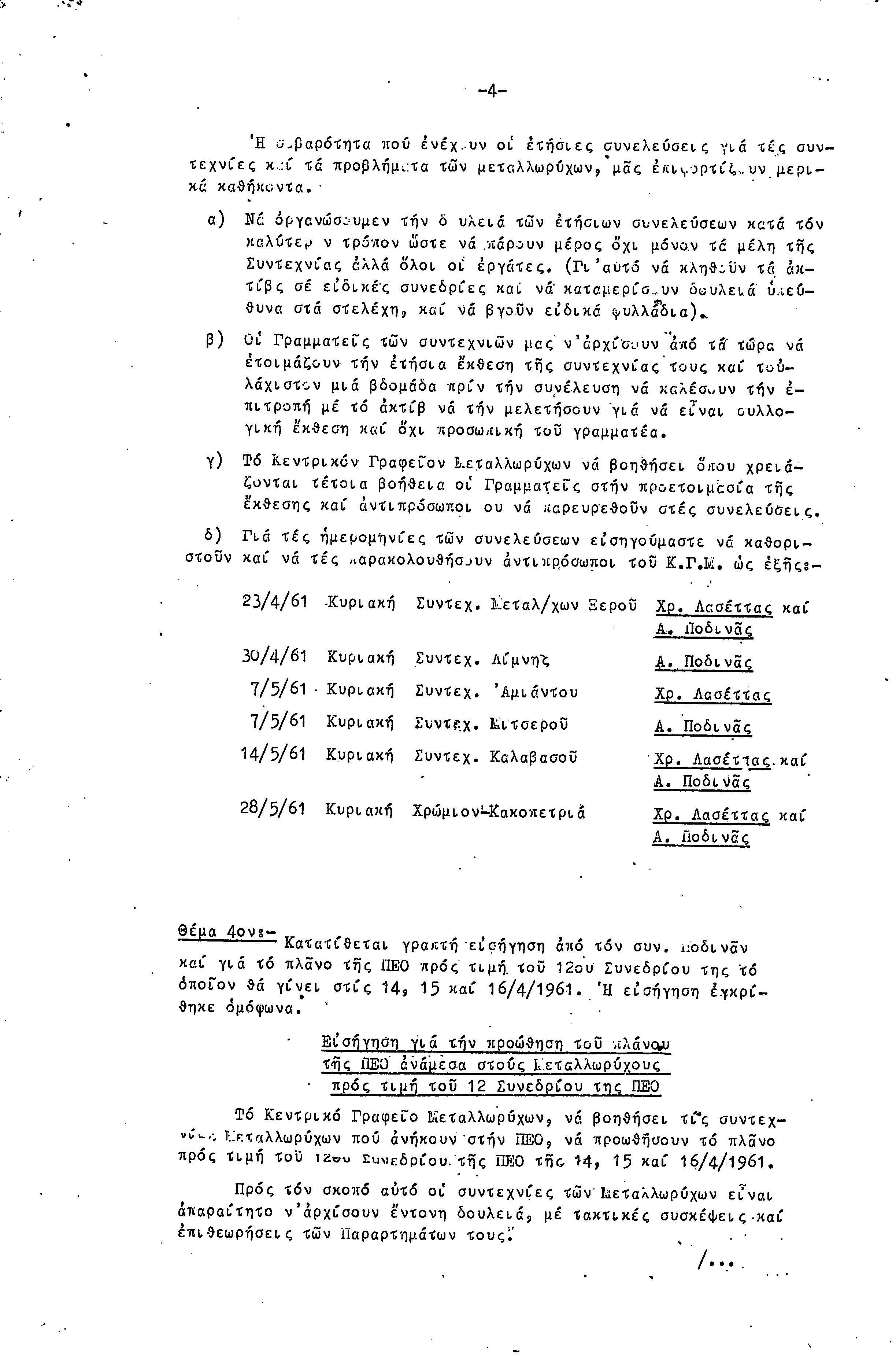 ΠΡΑΚΤΙΚΑ ΣΥΝΤΕΧΝΙΑΣ ΜΕΤΑΛΛΩΡΥΧΩΝ 1960-1962