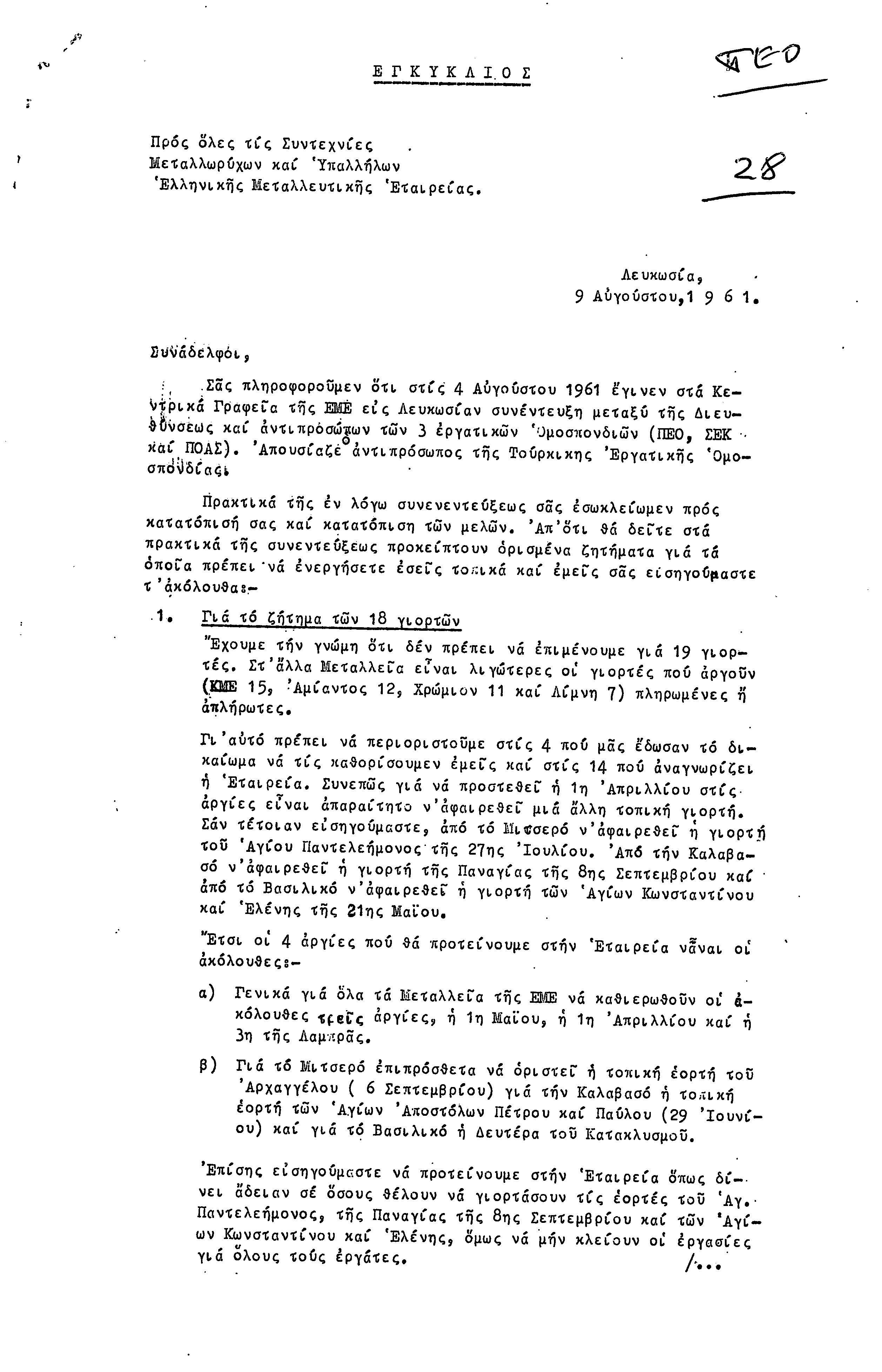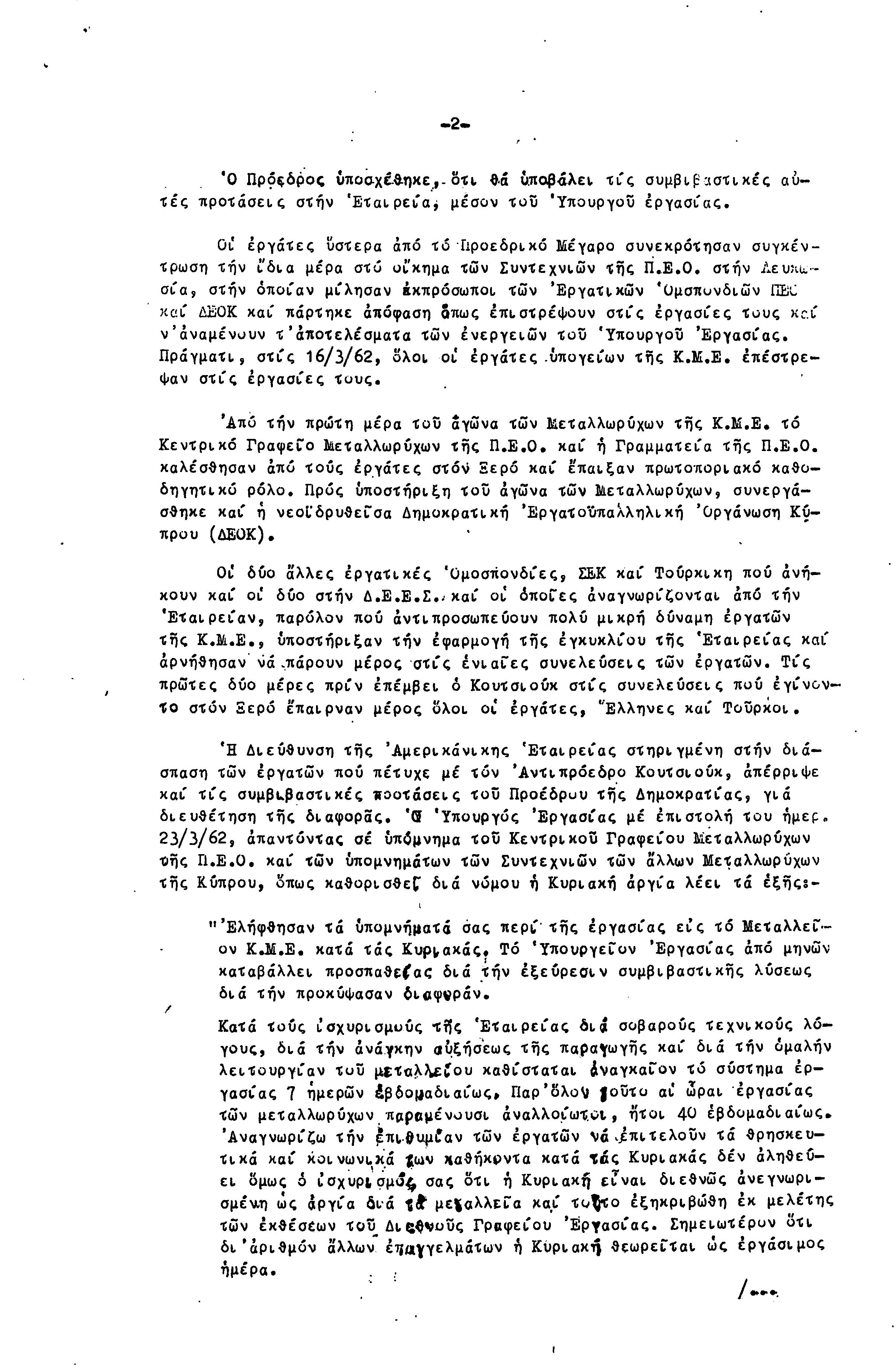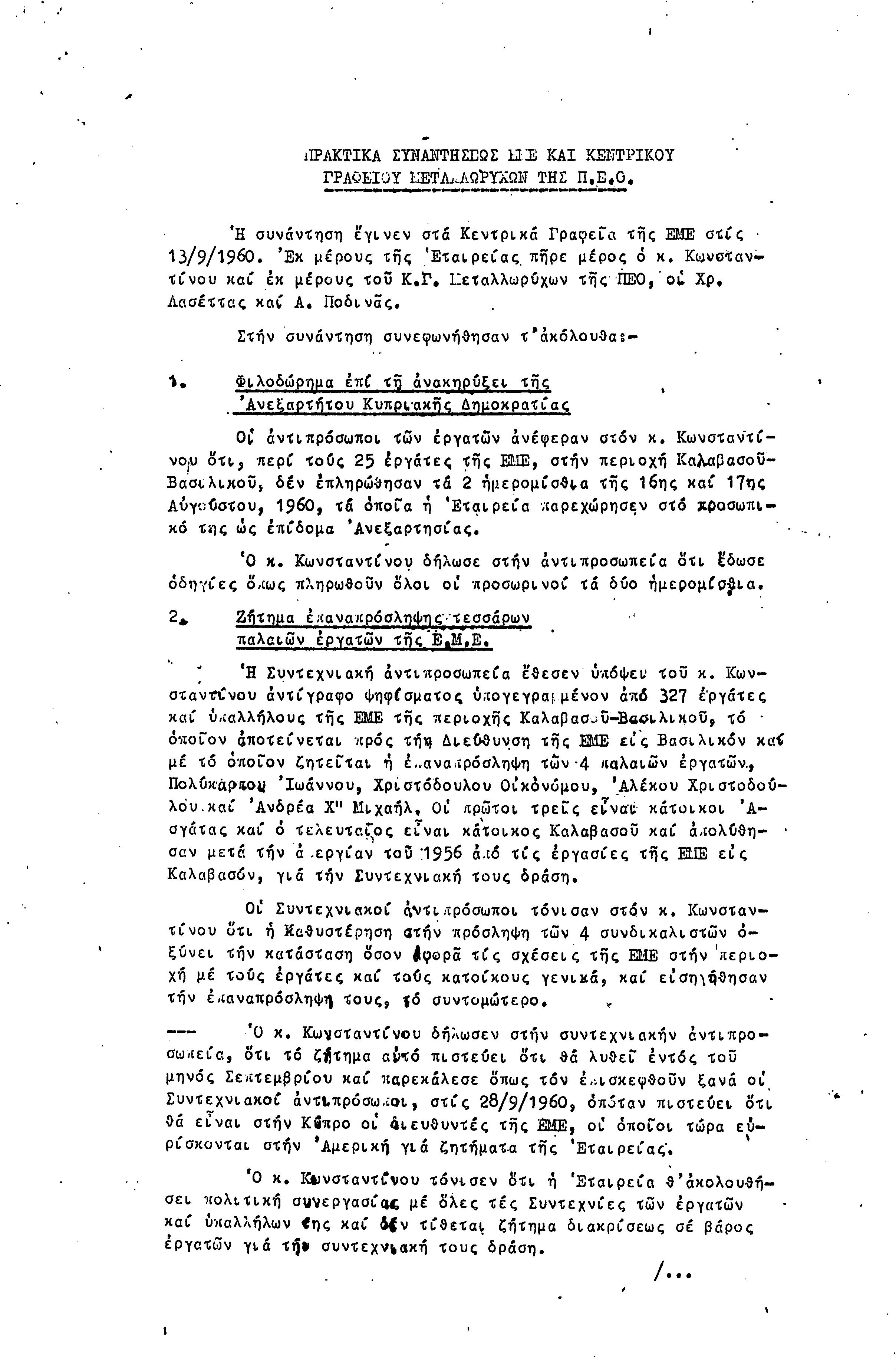 ΠΡΑΚΤΙΚΑ ΣΥΝΤΕΧΝΙΑΣ ΜΕΤΑΛΛΩΡΥΧΩΝ 1960-1962