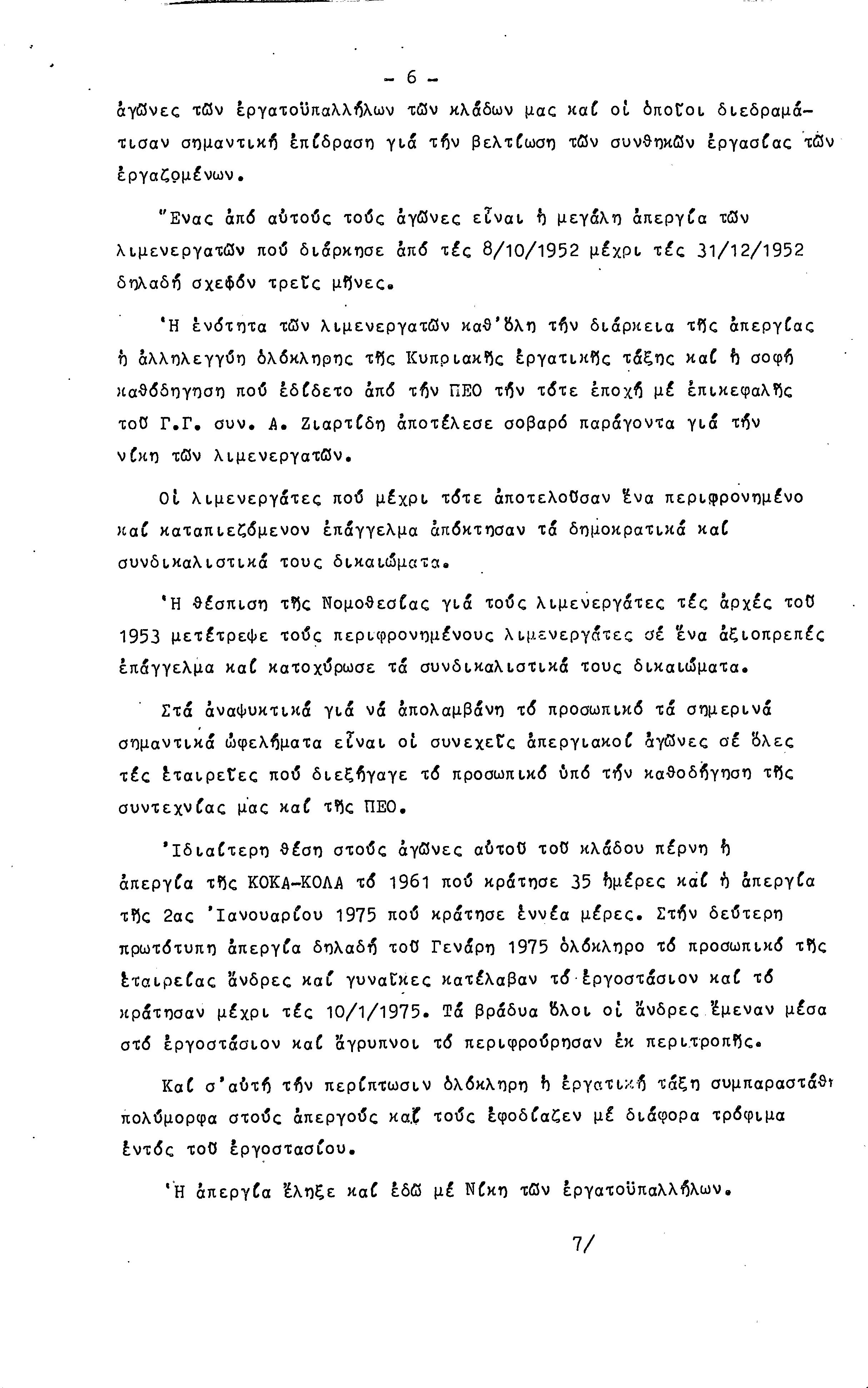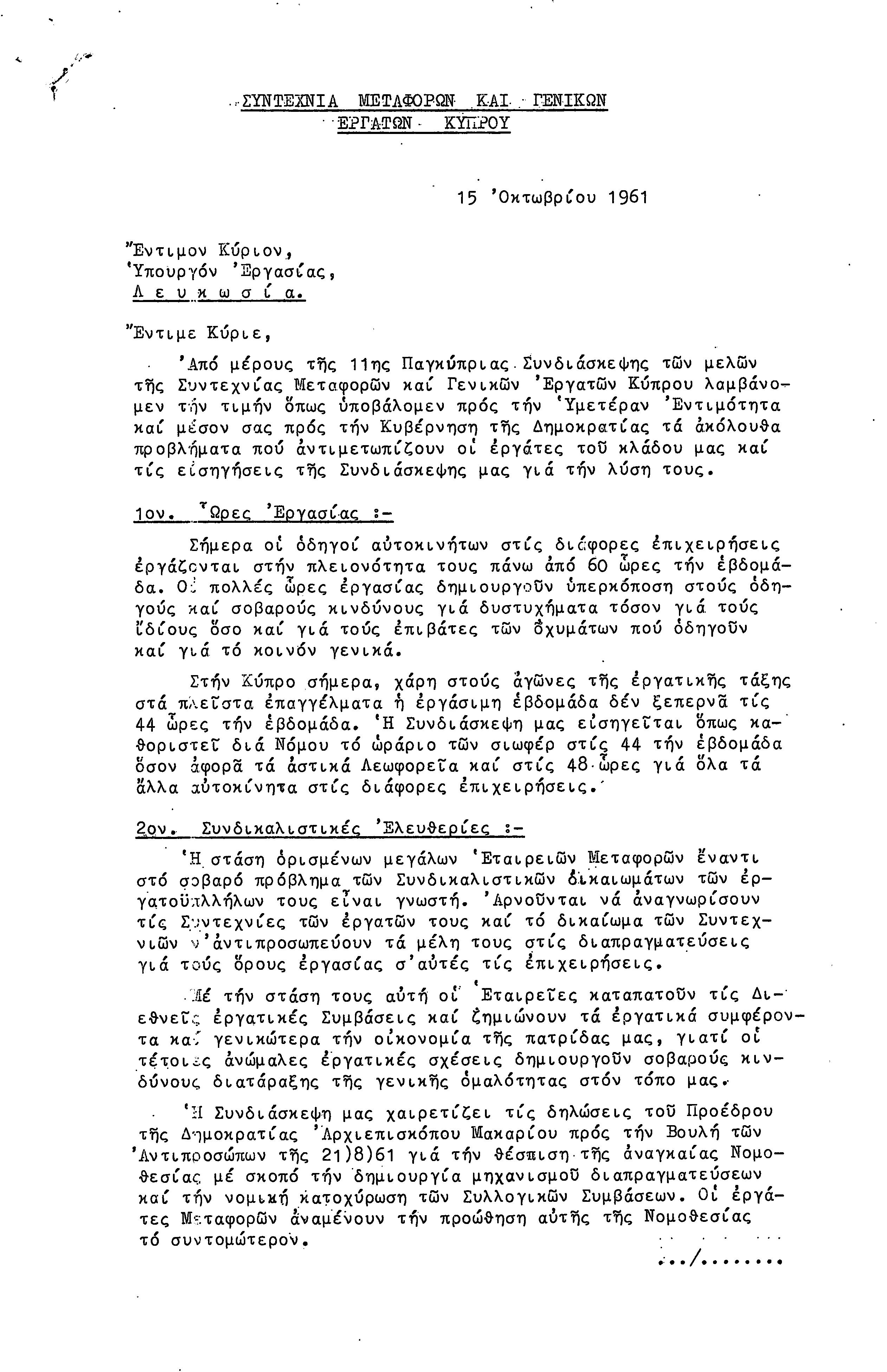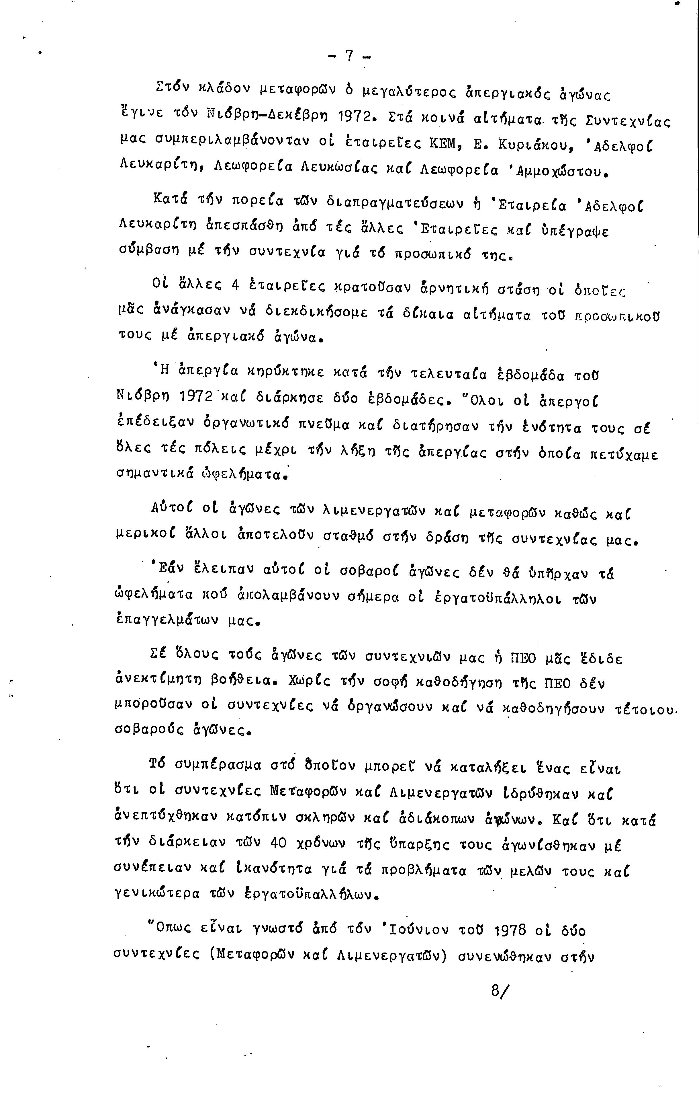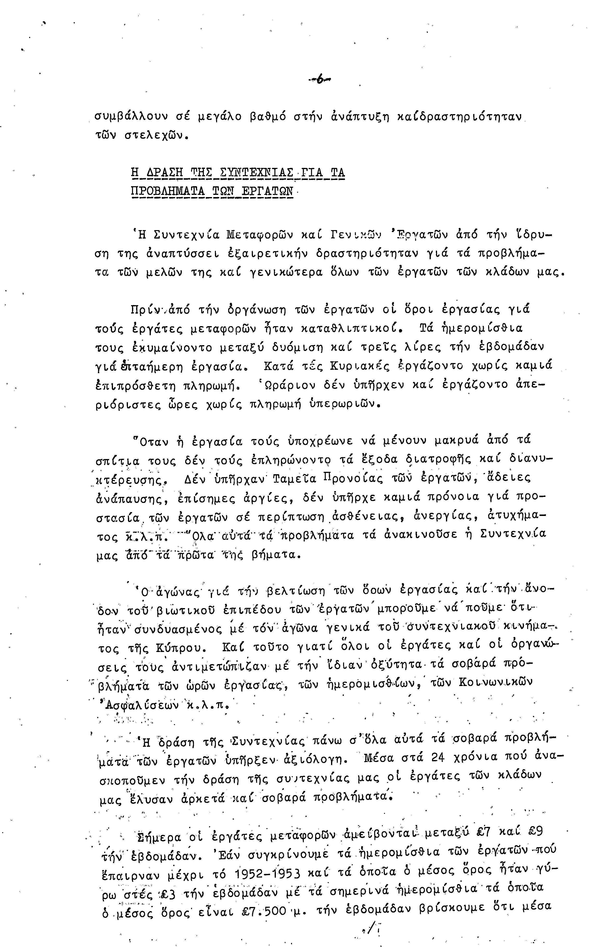 ΕΓΓΡΑΦΑ ΣΥΝΤΕΧΝΙΑΣ ΕΡΓΑΤΩΝ ΜΕΤΑΦΟΡΩΝ, ΛΙΜΕΝΕΡΓΑΤΩΝ ΚΑΙ ΓΕΝΙΚΩΝ ΕΡΓΑΤΟΫΠΑΛΛΗΛΩΝ ΚΥΠΡΟΥ 1961-1980