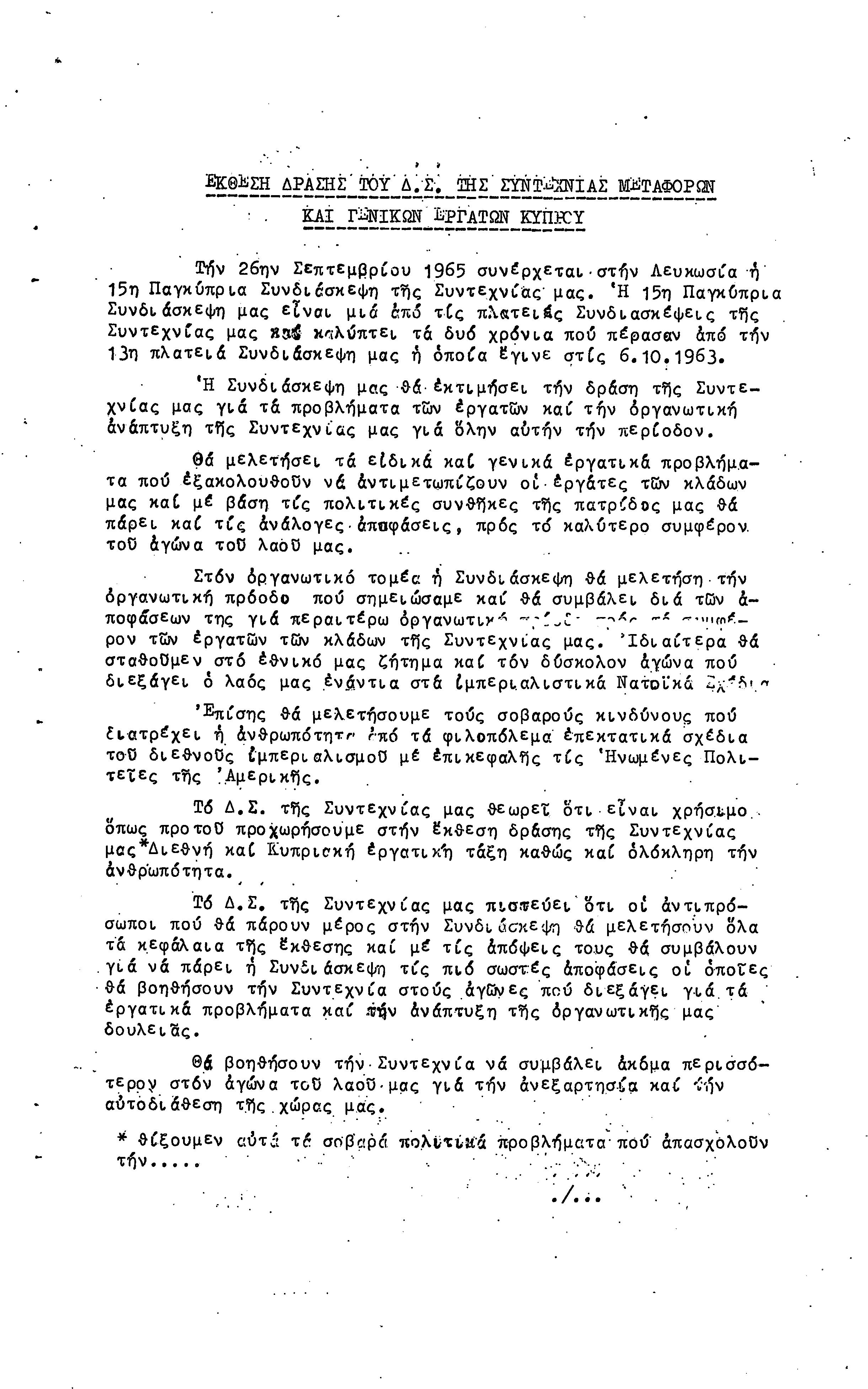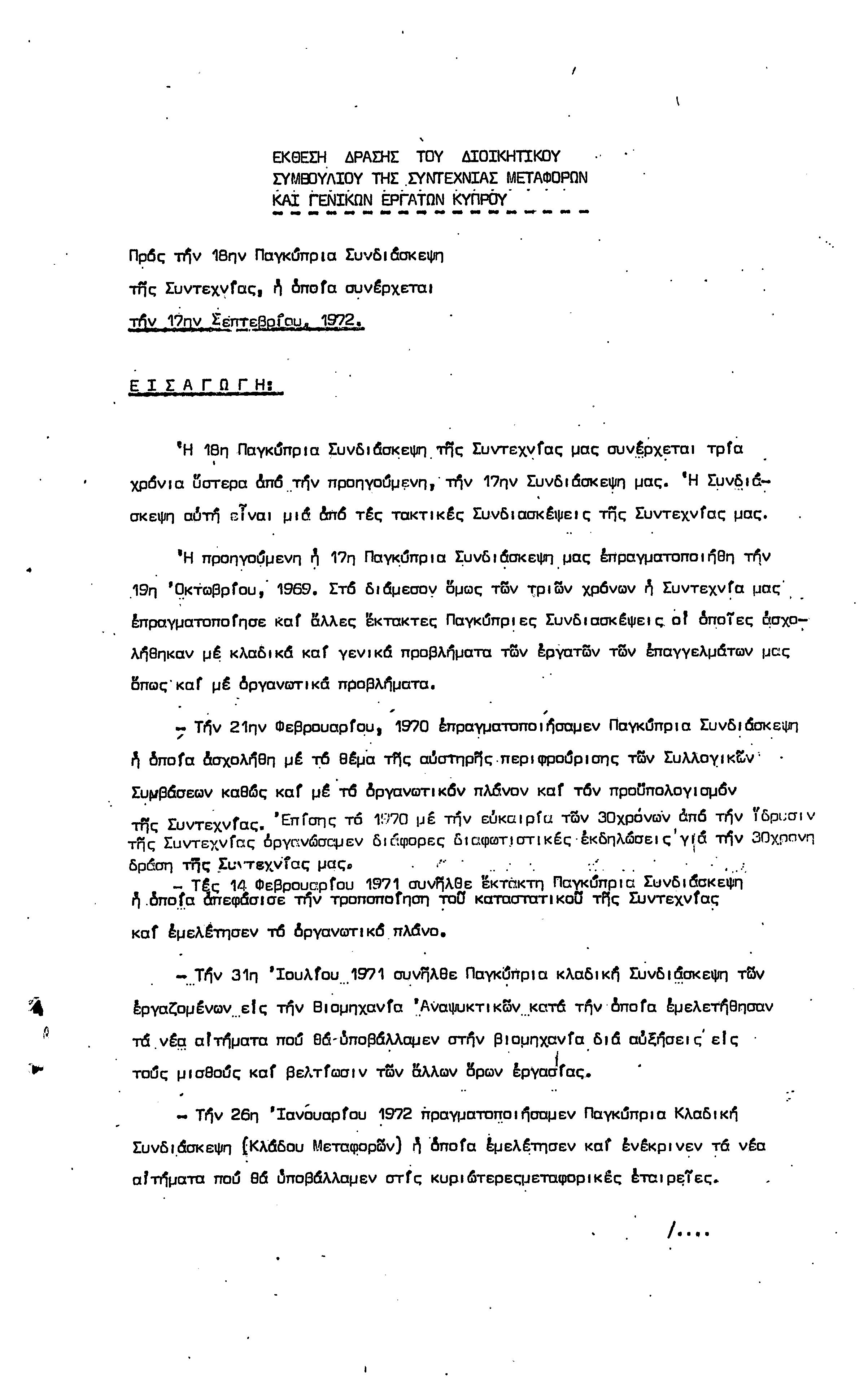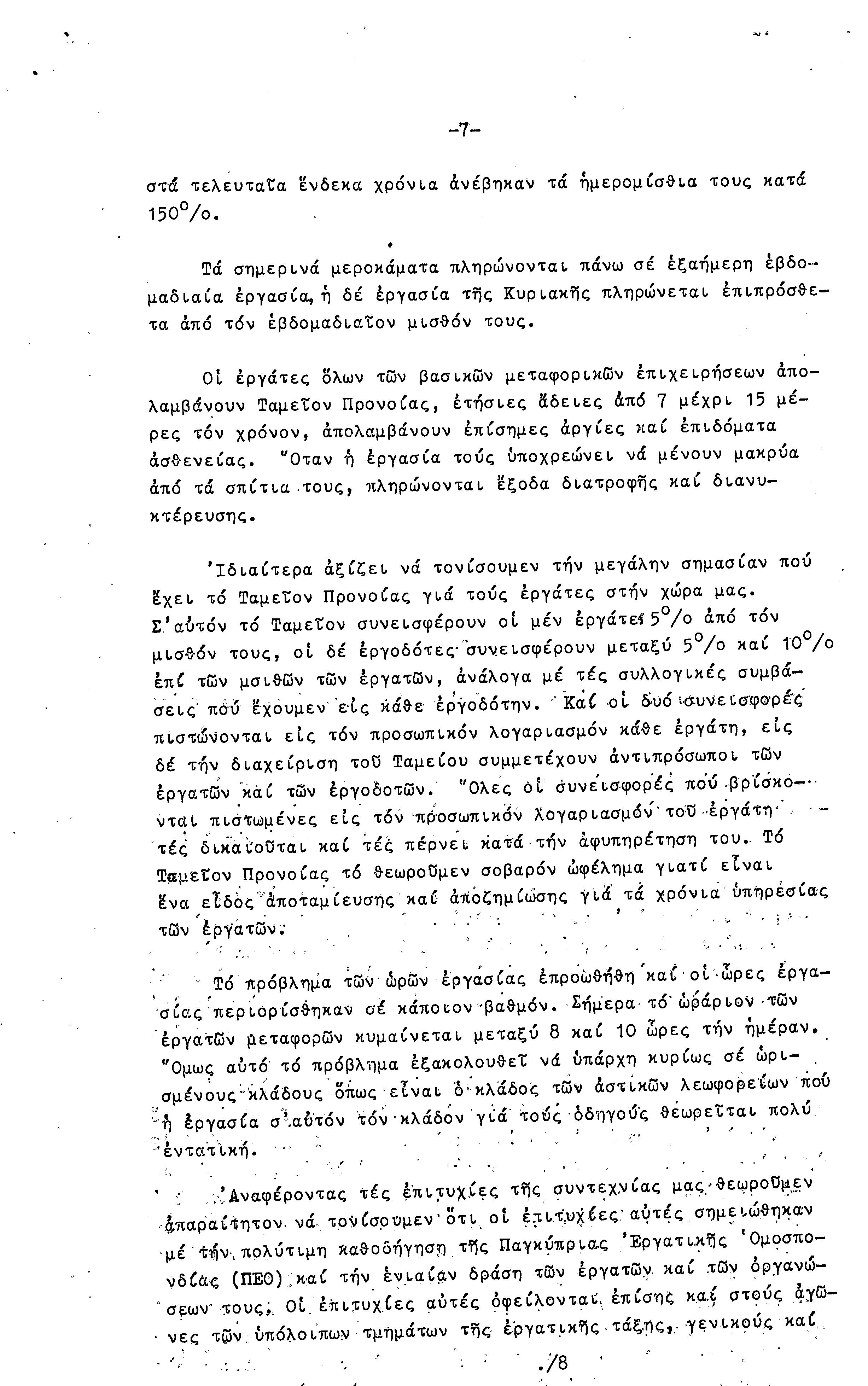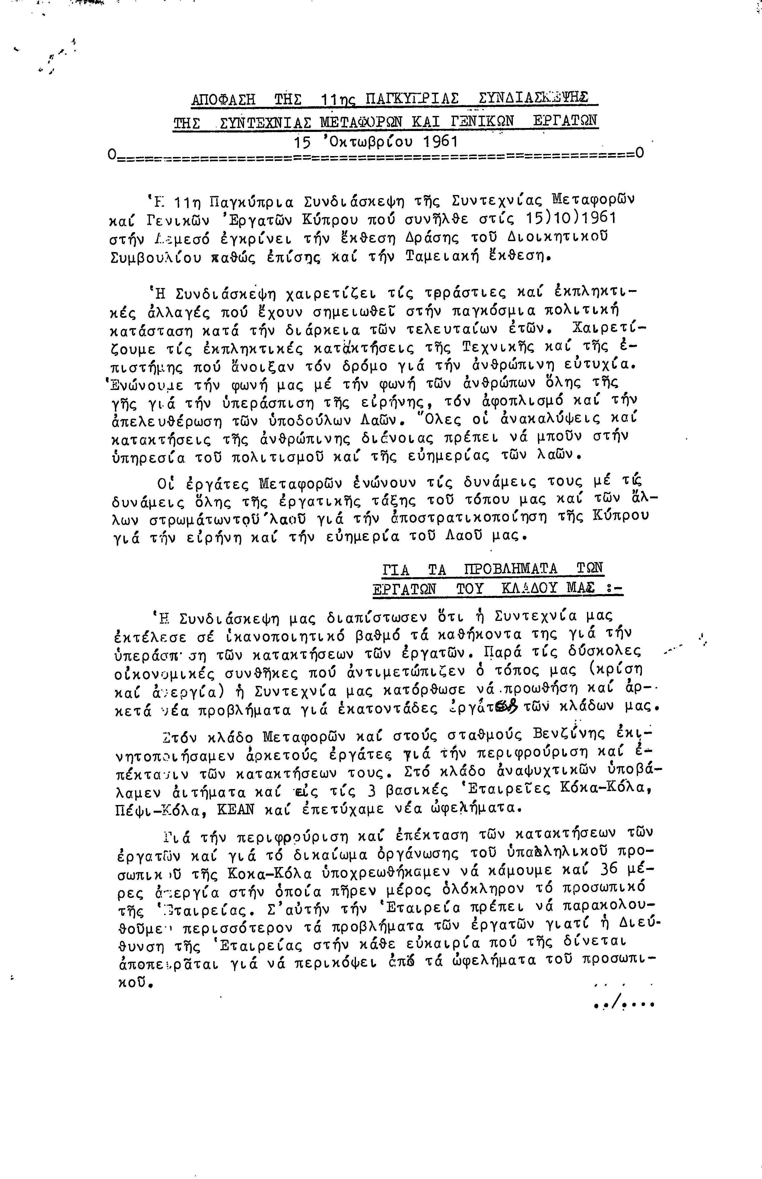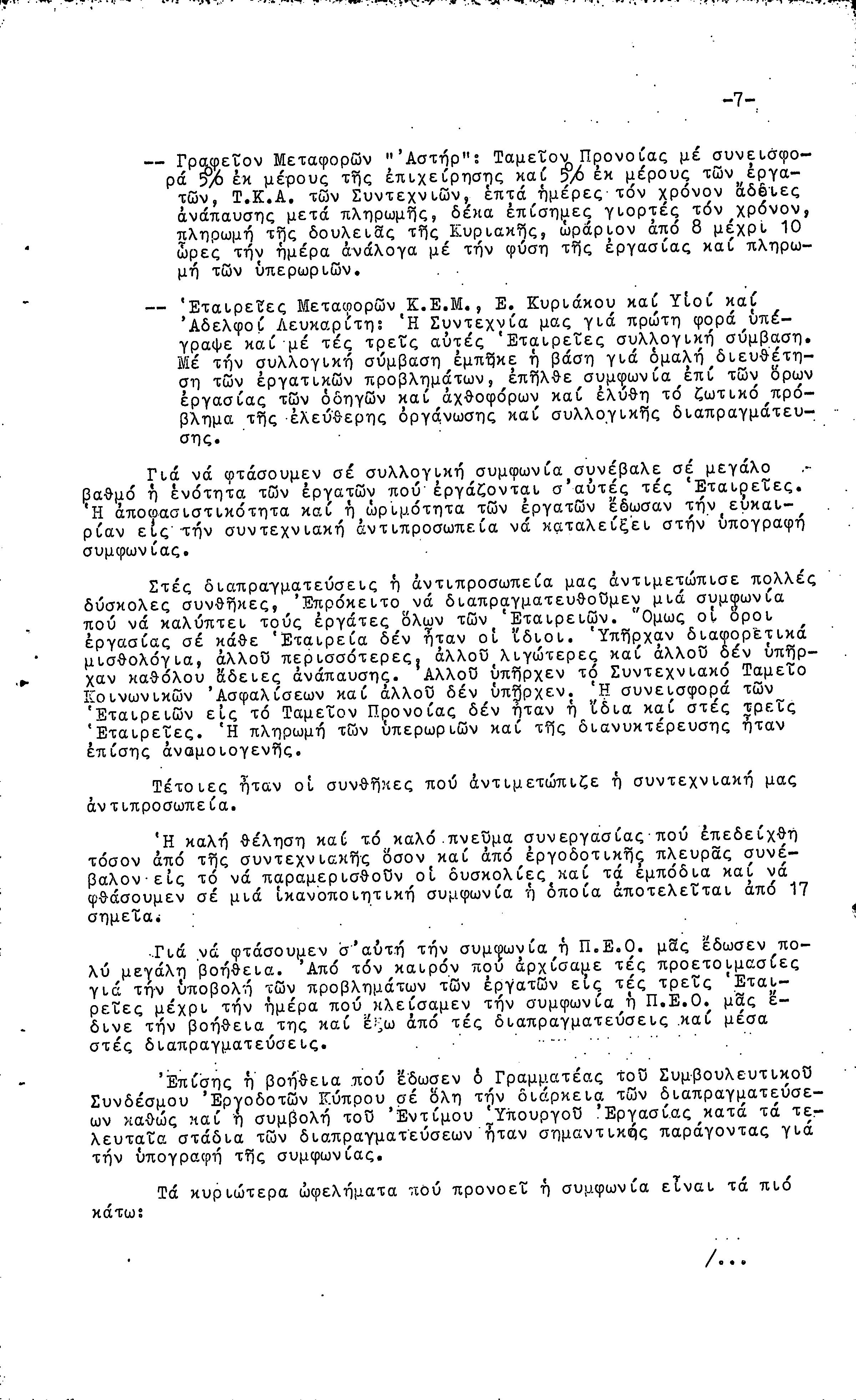 ΕΓΓΡΑΦΑ ΣΥΝΤΕΧΝΙΑΣ ΕΡΓΑΤΩΝ ΜΕΤΑΦΟΡΩΝ, ΛΙΜΕΝΕΡΓΑΤΩΝ ΚΑΙ ΓΕΝΙΚΩΝ ΕΡΓΑΤΟΫΠΑΛΛΗΛΩΝ ΚΥΠΡΟΥ 1961-1980