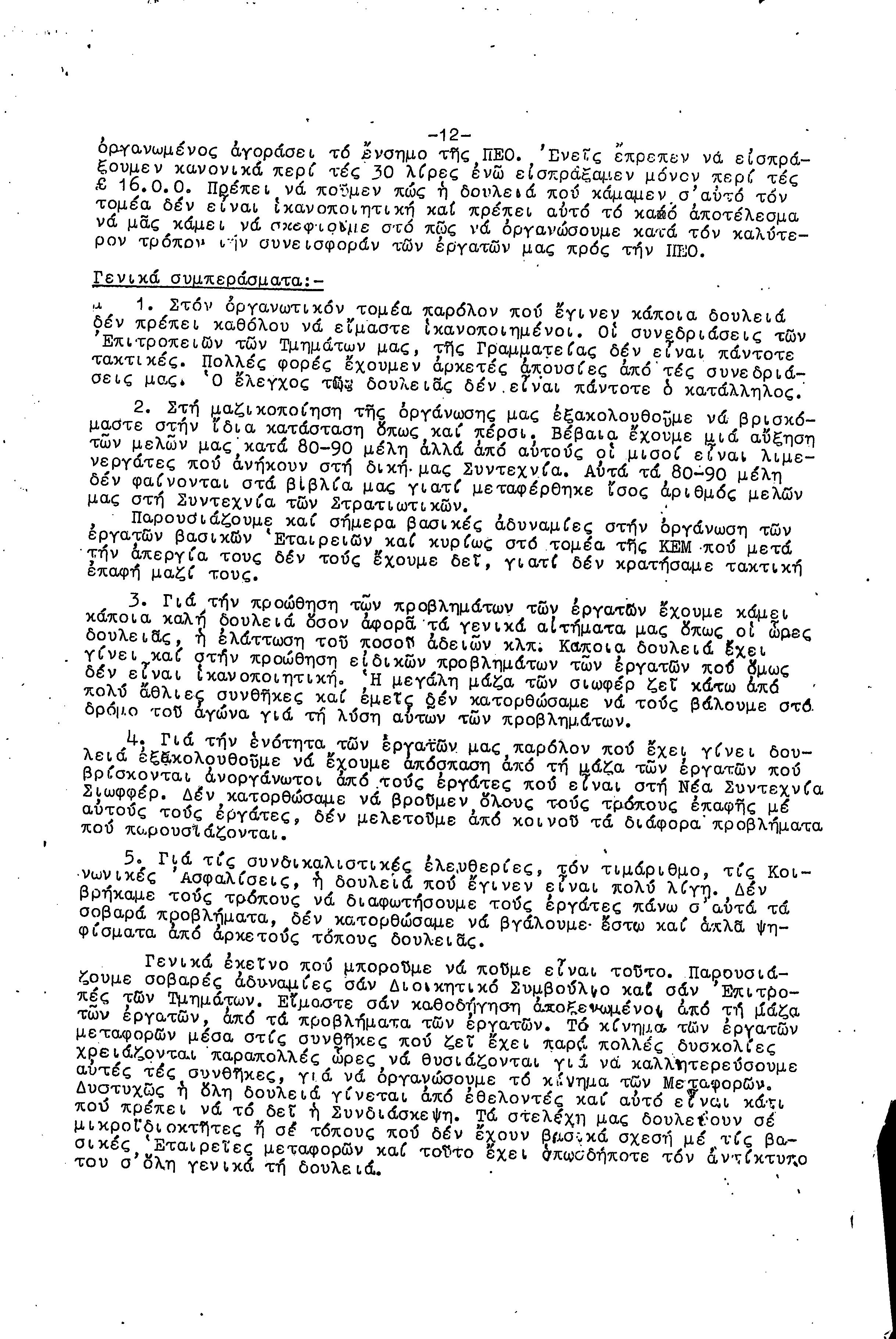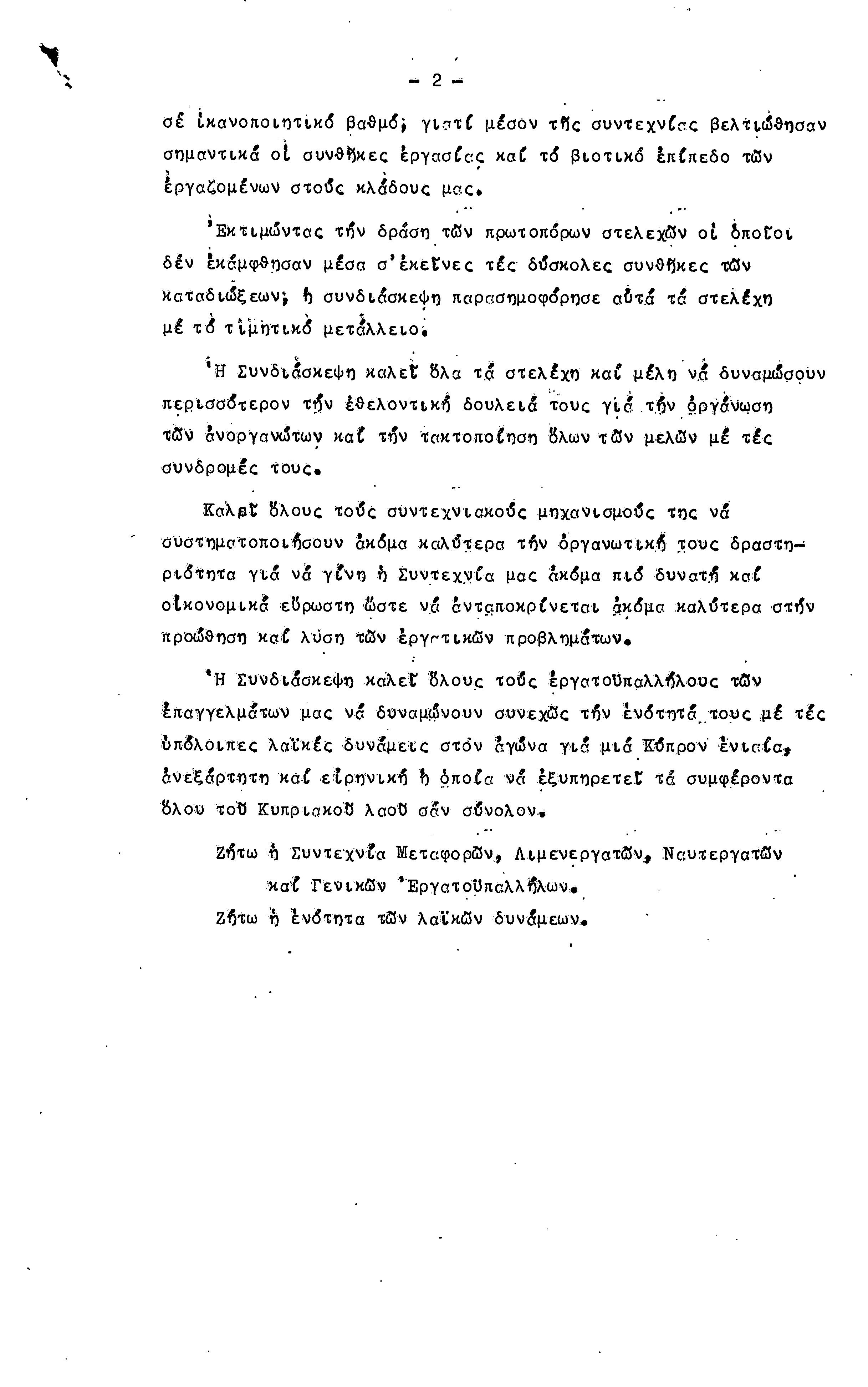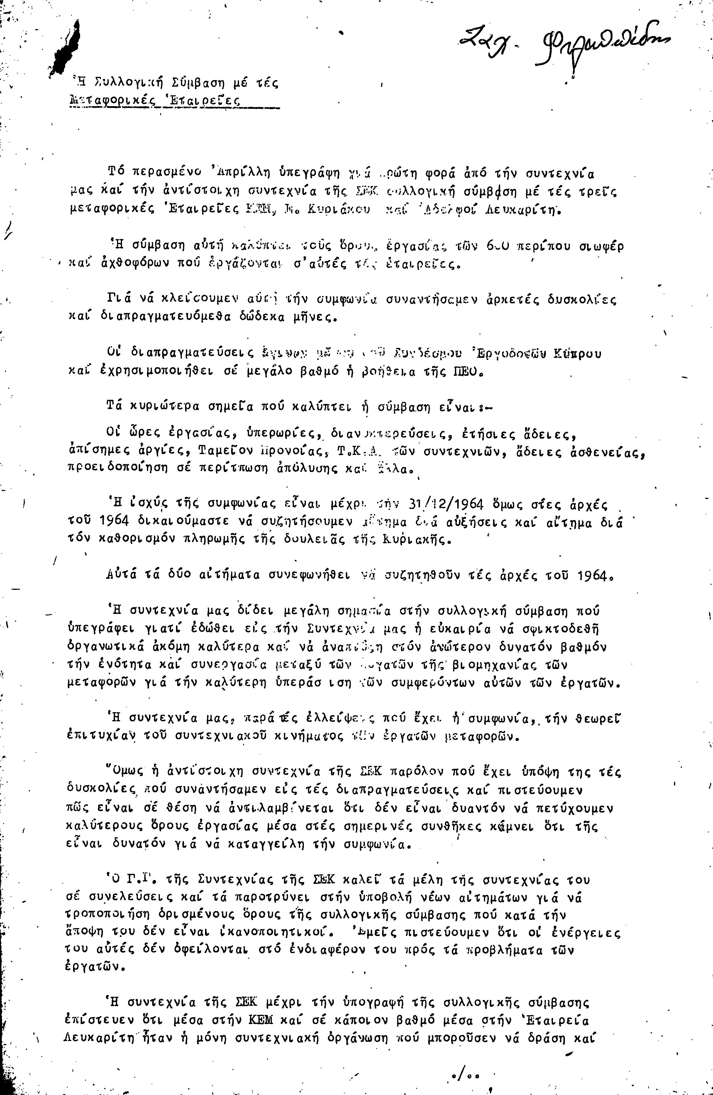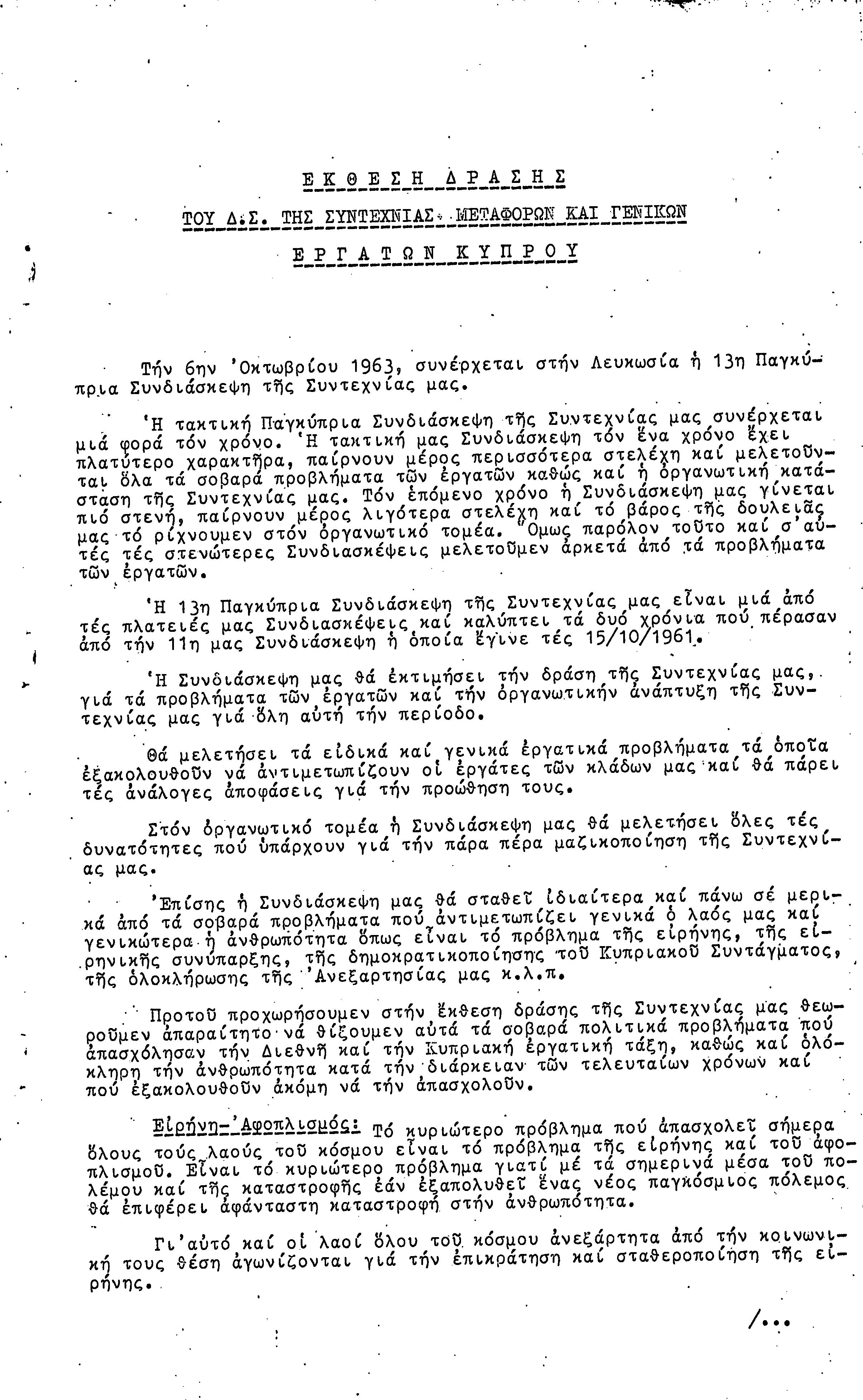 ΕΓΓΡΑΦΑ ΣΥΝΤΕΧΝΙΑΣ ΕΡΓΑΤΩΝ ΜΕΤΑΦΟΡΩΝ, ΛΙΜΕΝΕΡΓΑΤΩΝ ΚΑΙ ΓΕΝΙΚΩΝ ΕΡΓΑΤΟΫΠΑΛΛΗΛΩΝ ΚΥΠΡΟΥ 1961-1980