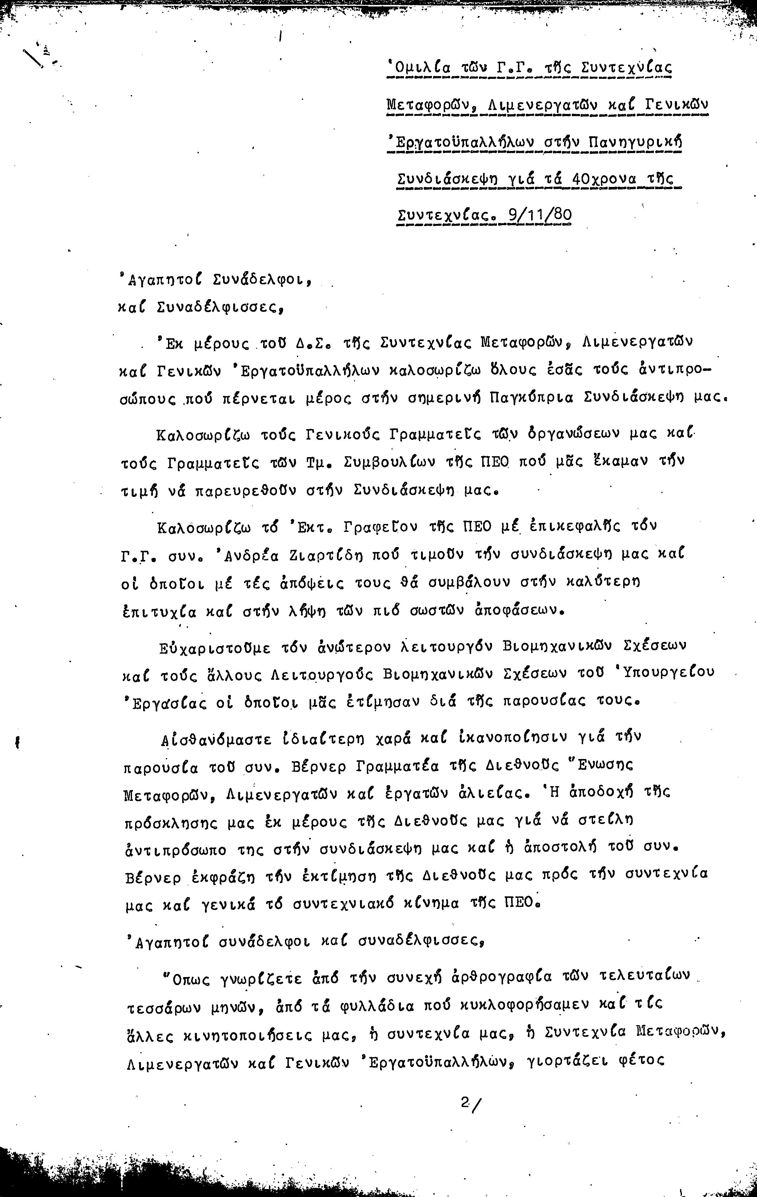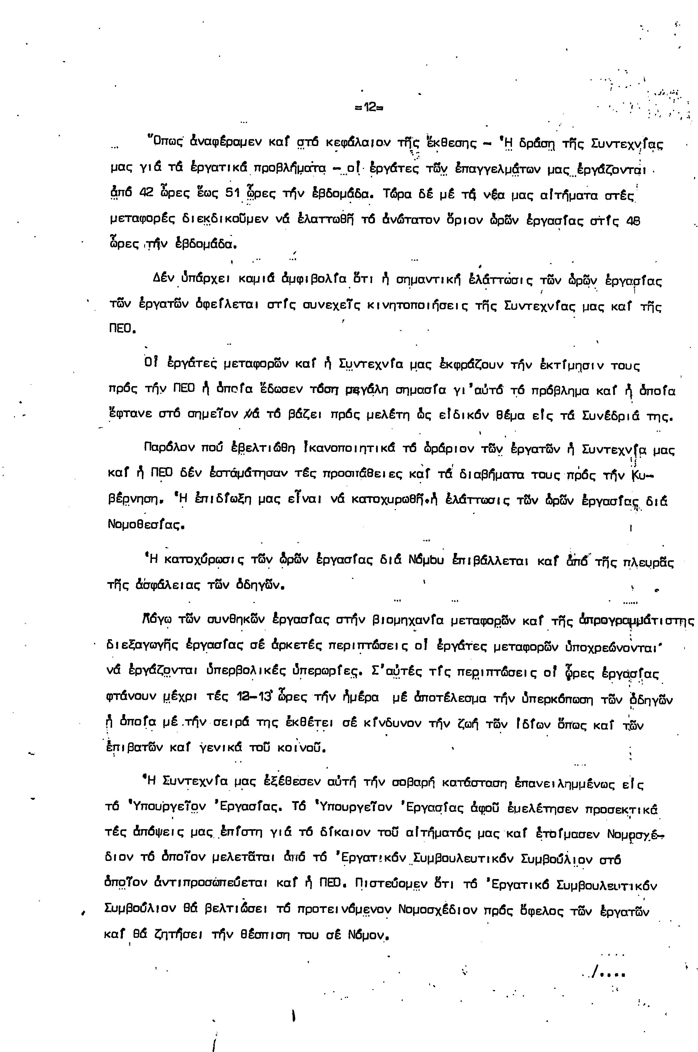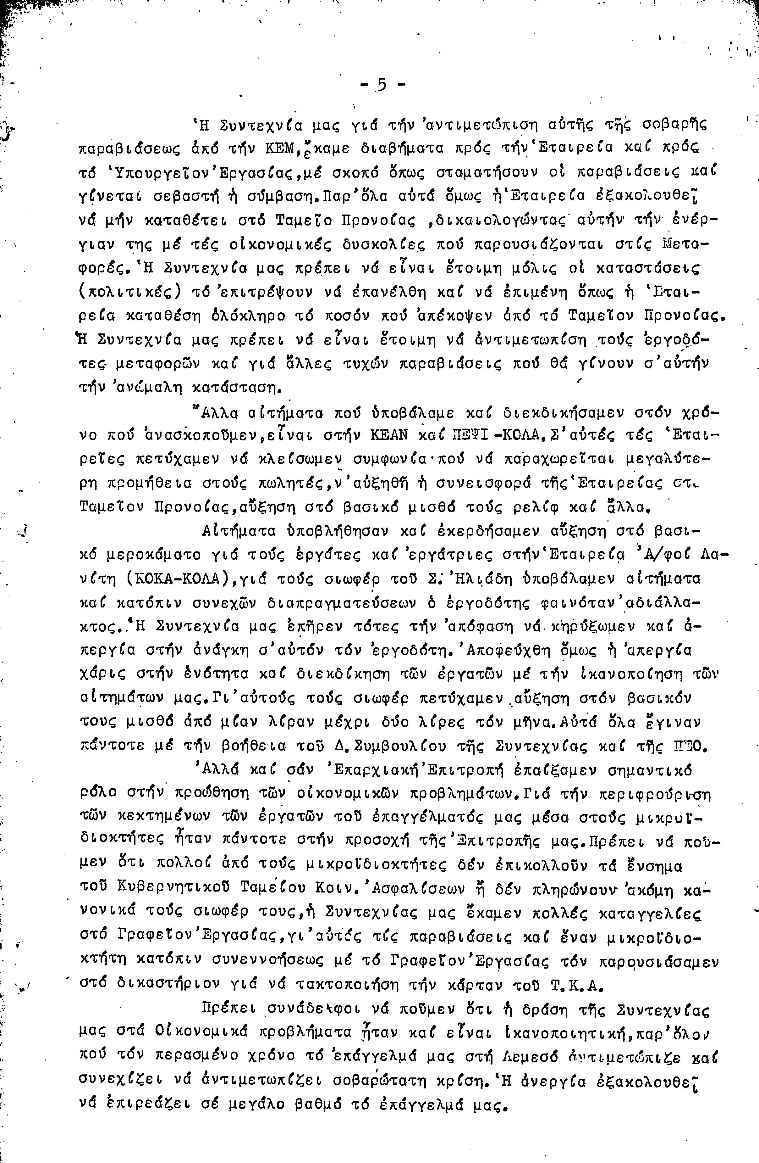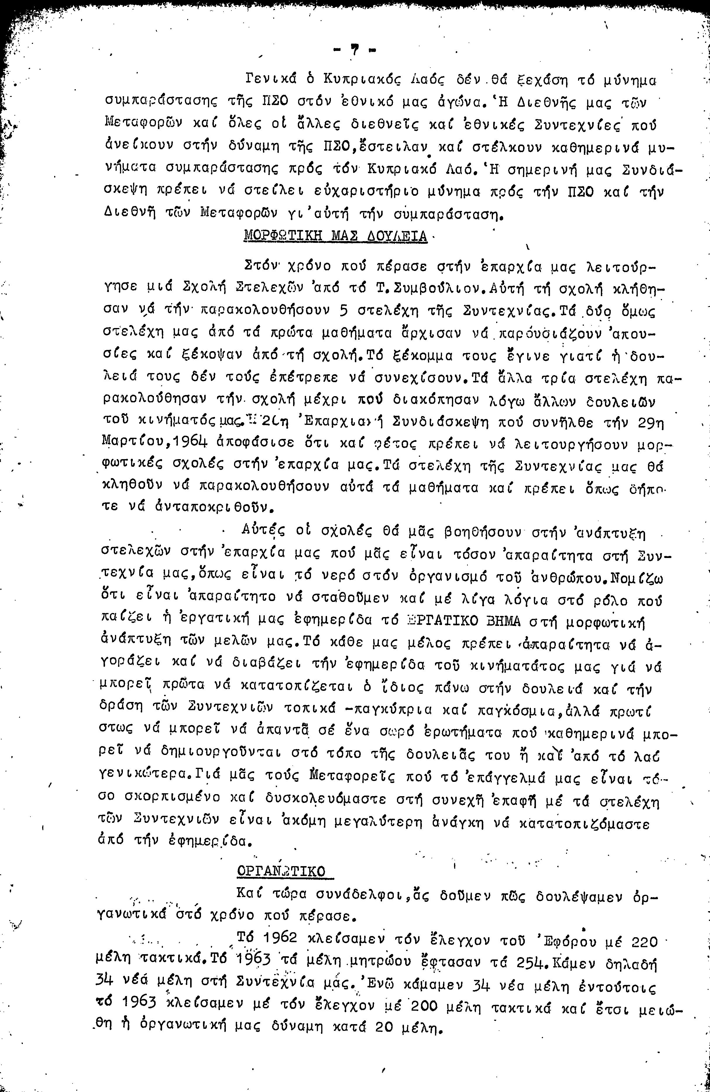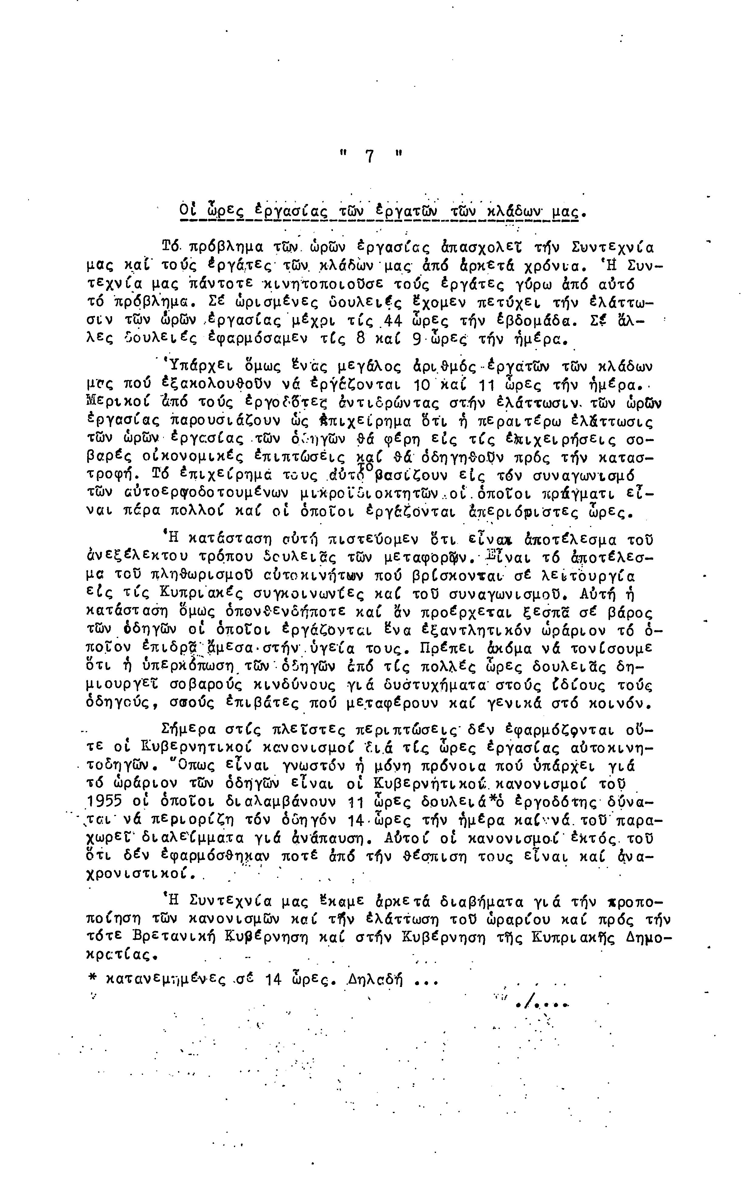 ΕΓΓΡΑΦΑ ΣΥΝΤΕΧΝΙΑΣ ΕΡΓΑΤΩΝ ΜΕΤΑΦΟΡΩΝ, ΛΙΜΕΝΕΡΓΑΤΩΝ ΚΑΙ ΓΕΝΙΚΩΝ ΕΡΓΑΤΟΫΠΑΛΛΗΛΩΝ ΚΥΠΡΟΥ 1961-1980