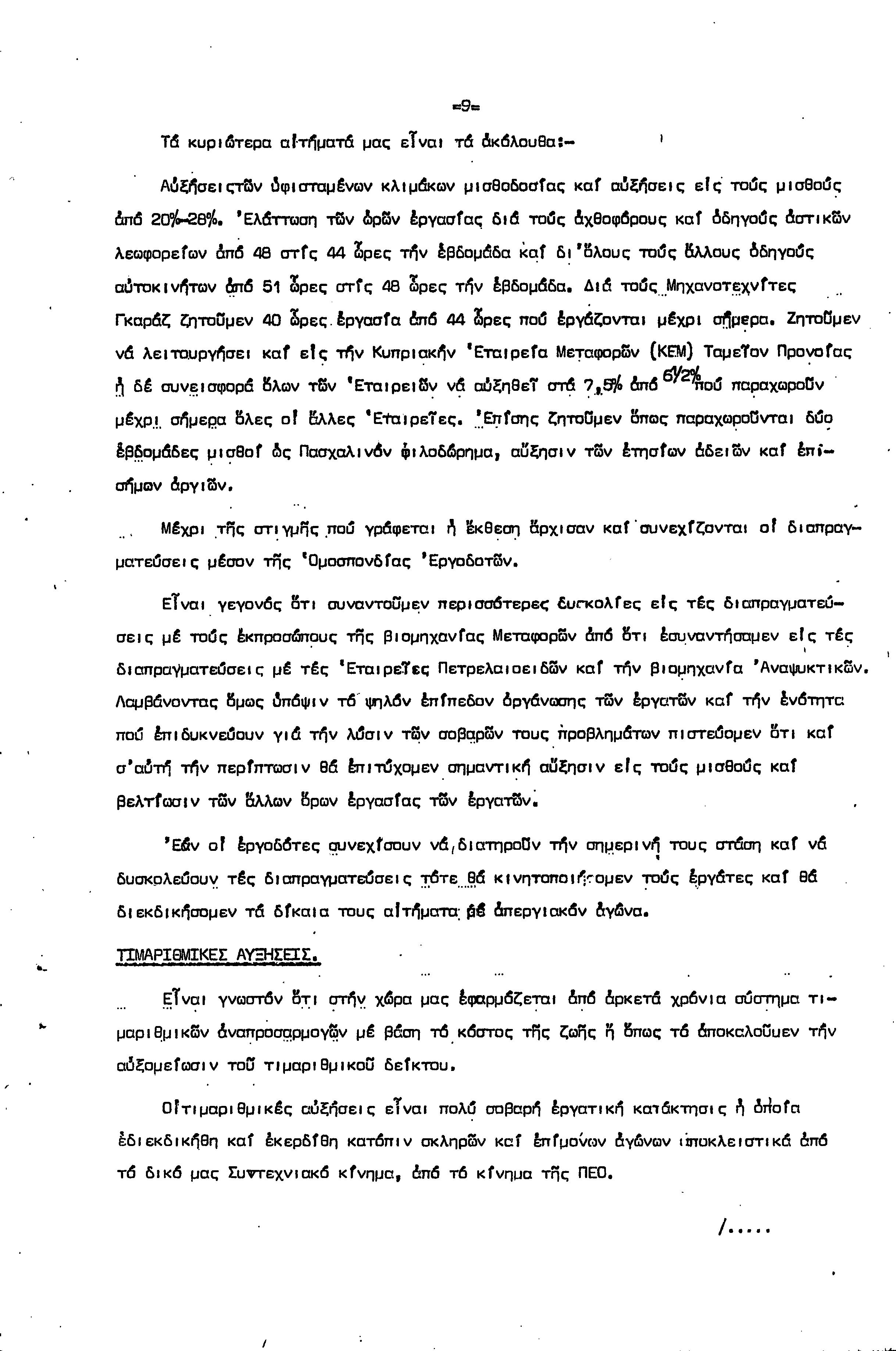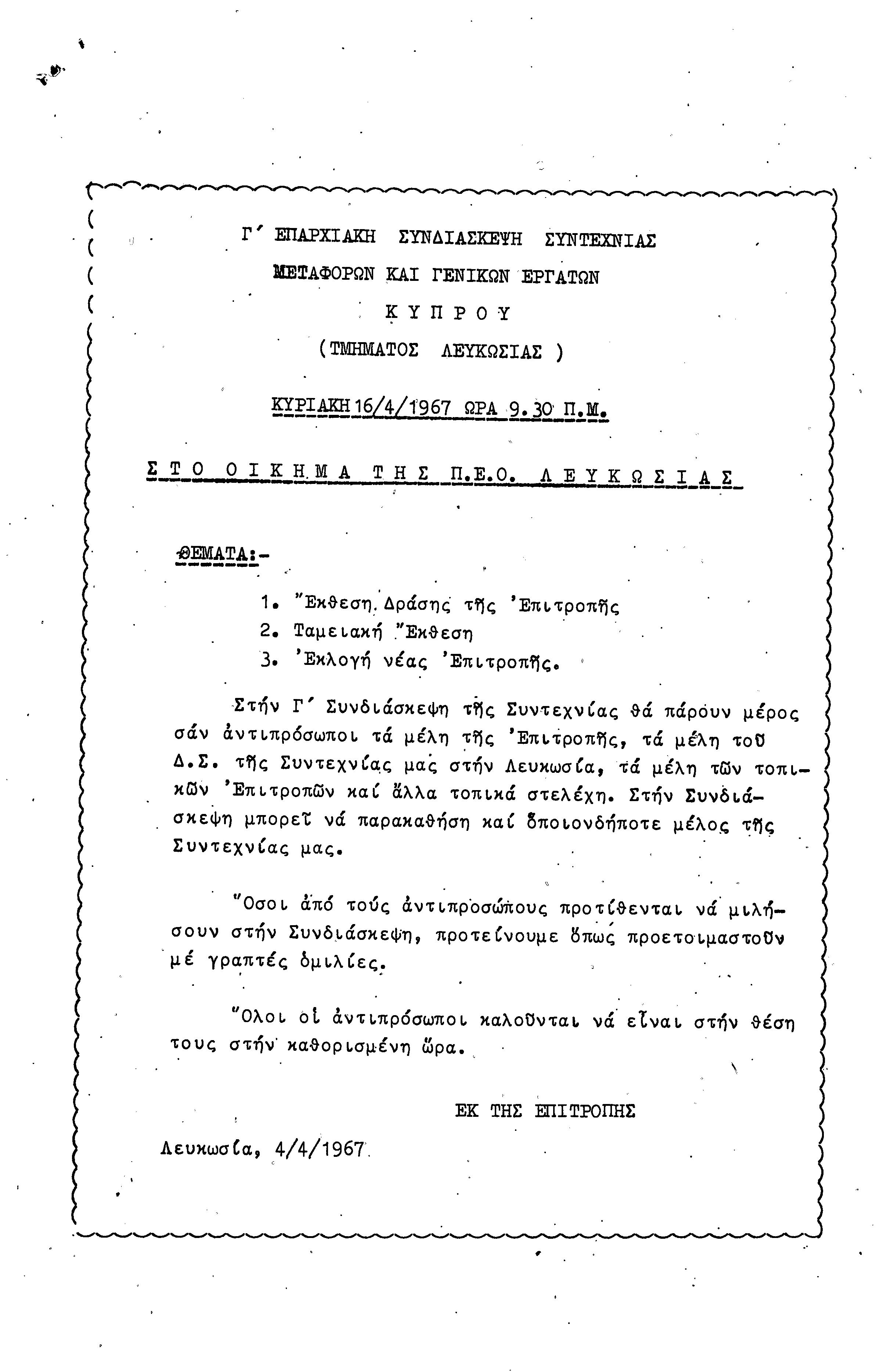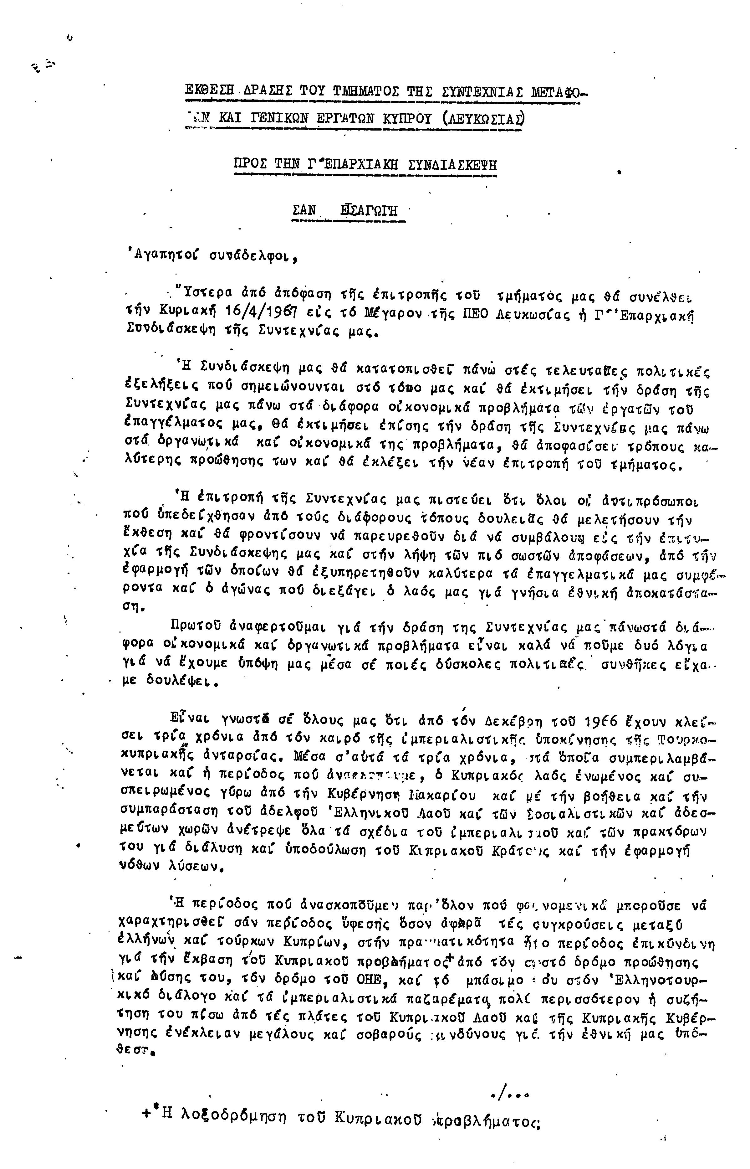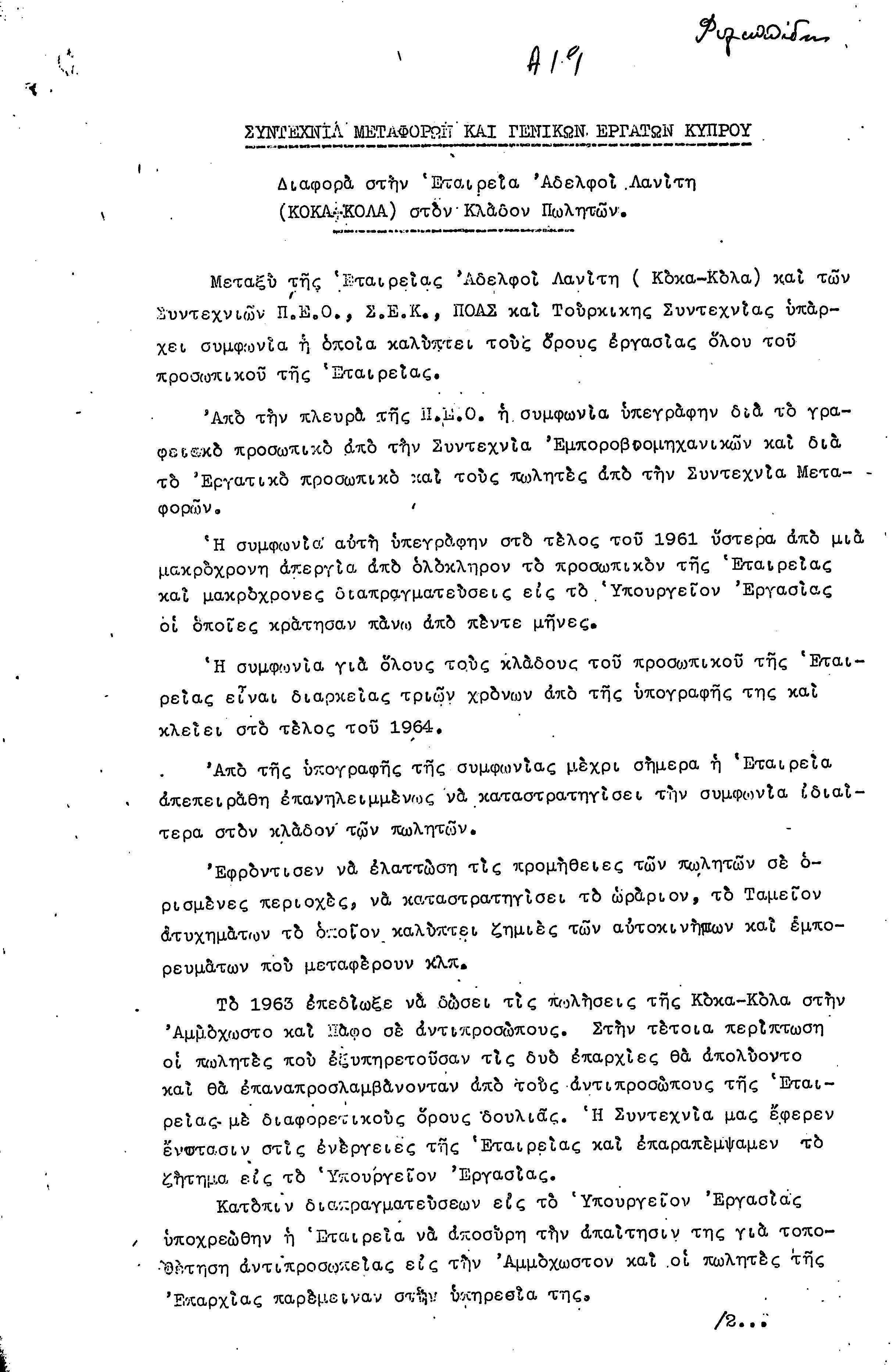 ΕΓΓΡΑΦΑ ΣΥΝΤΕΧΝΙΑΣ ΕΡΓΑΤΩΝ ΜΕΤΑΦΟΡΩΝ, ΛΙΜΕΝΕΡΓΑΤΩΝ ΚΑΙ ΓΕΝΙΚΩΝ ΕΡΓΑΤΟΫΠΑΛΛΗΛΩΝ ΚΥΠΡΟΥ 1961-1980