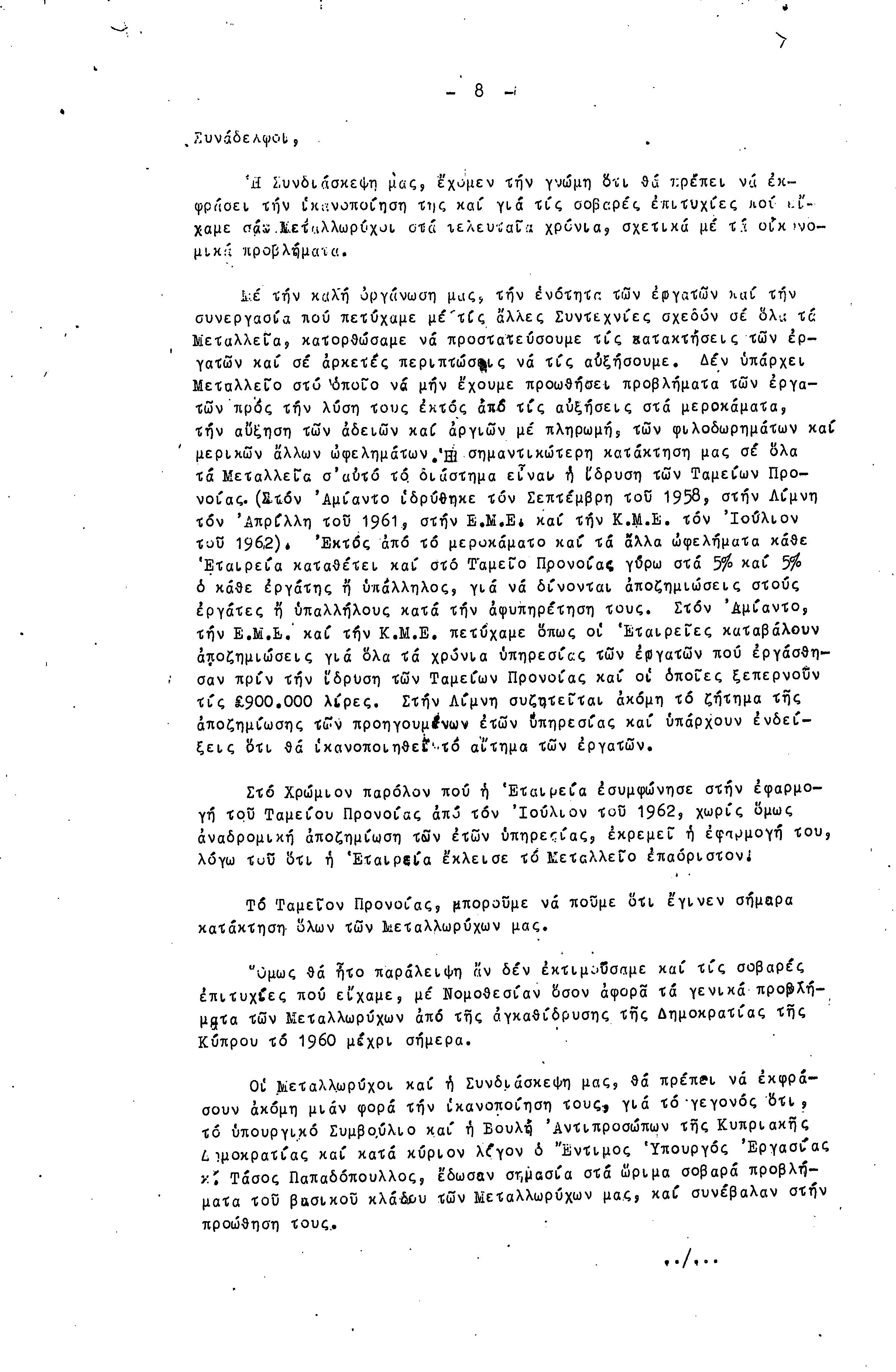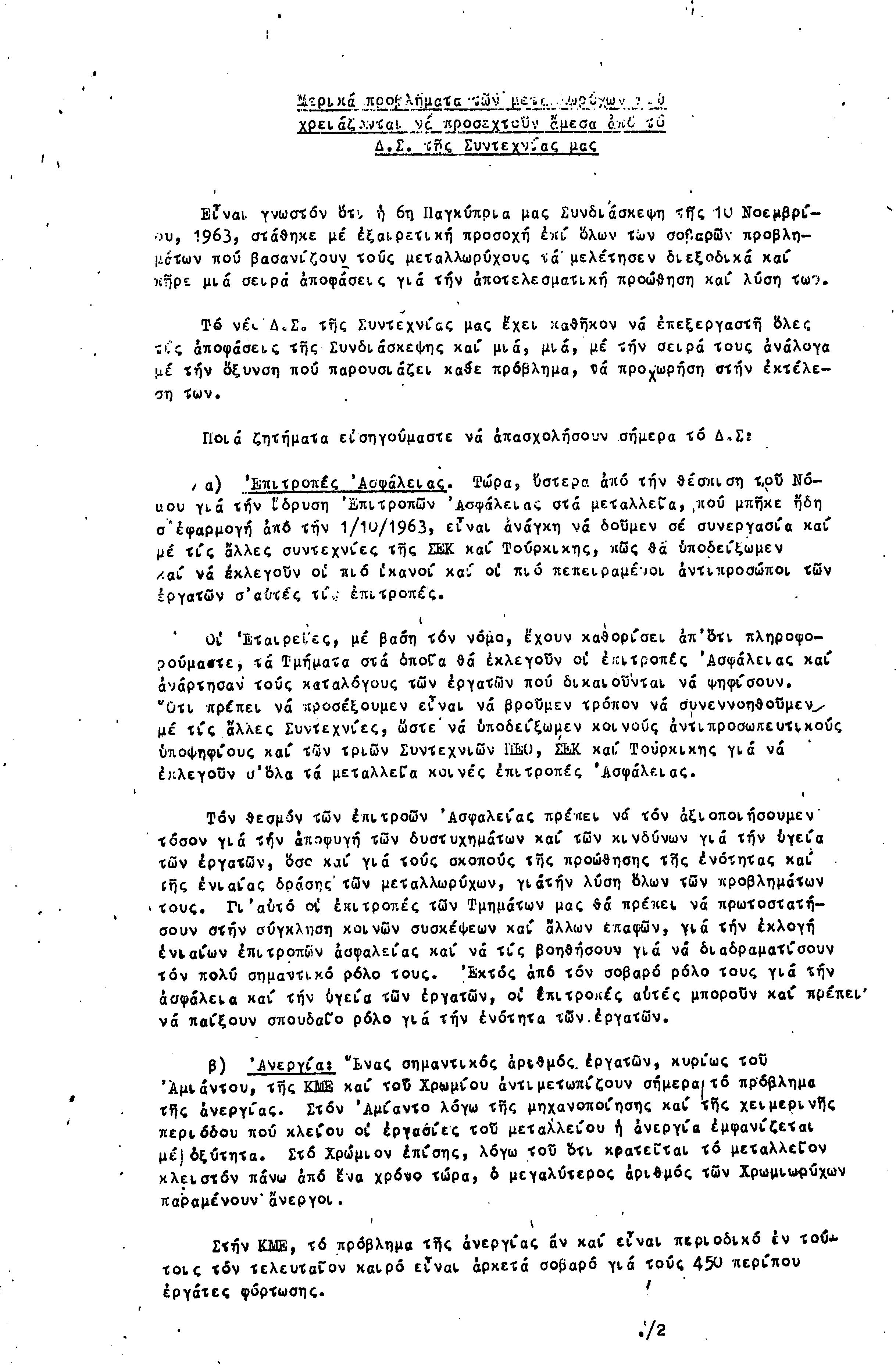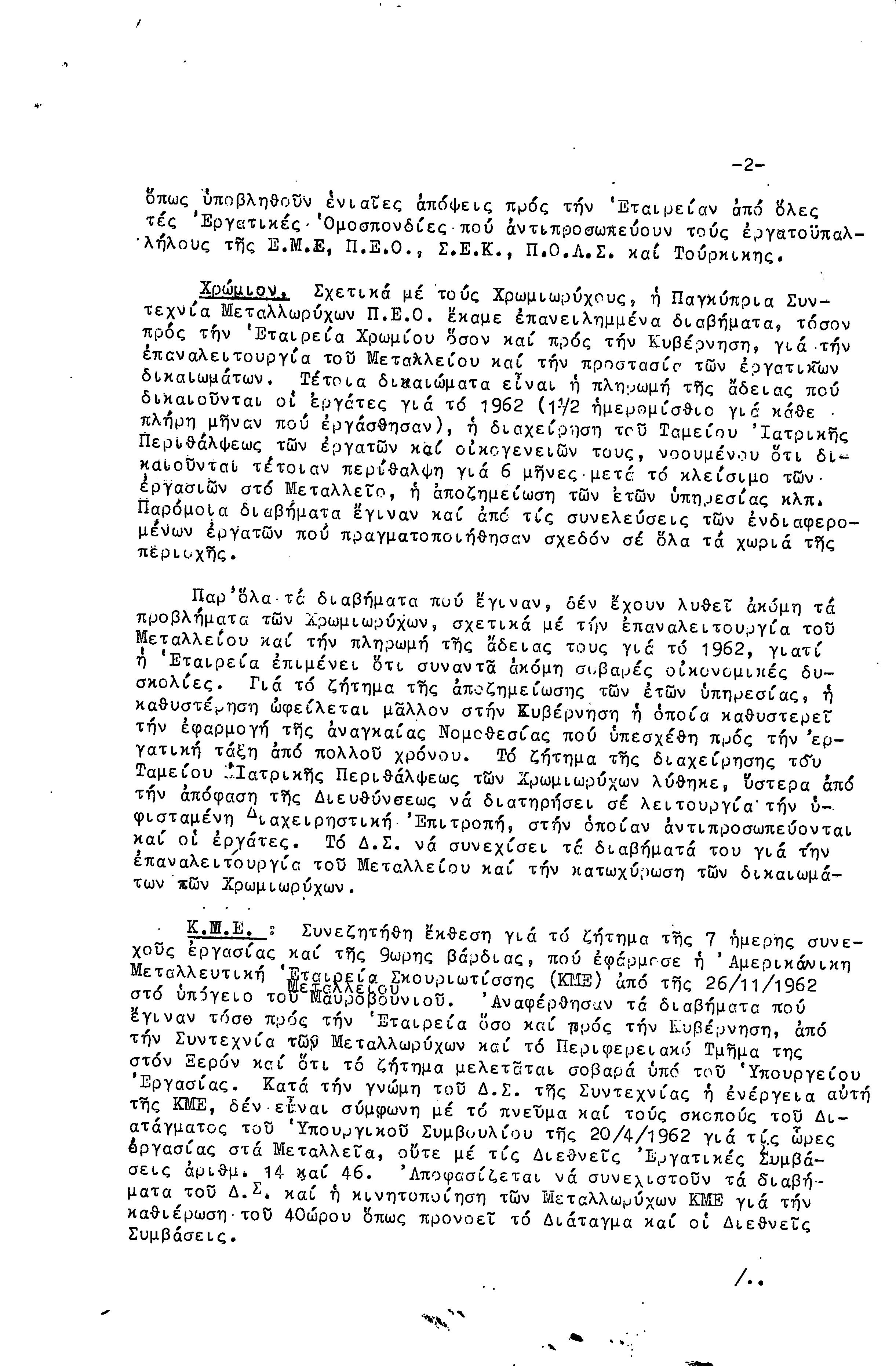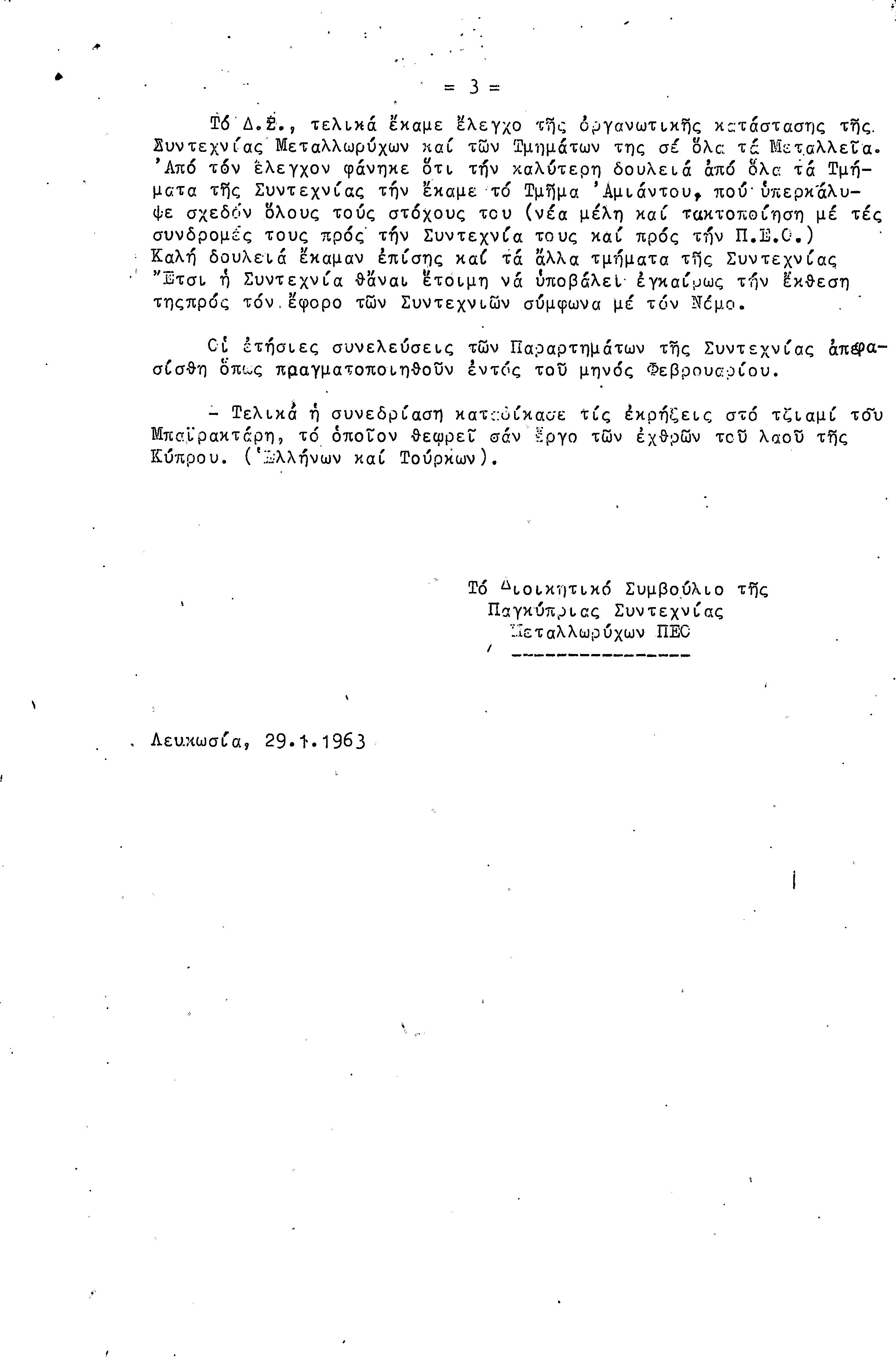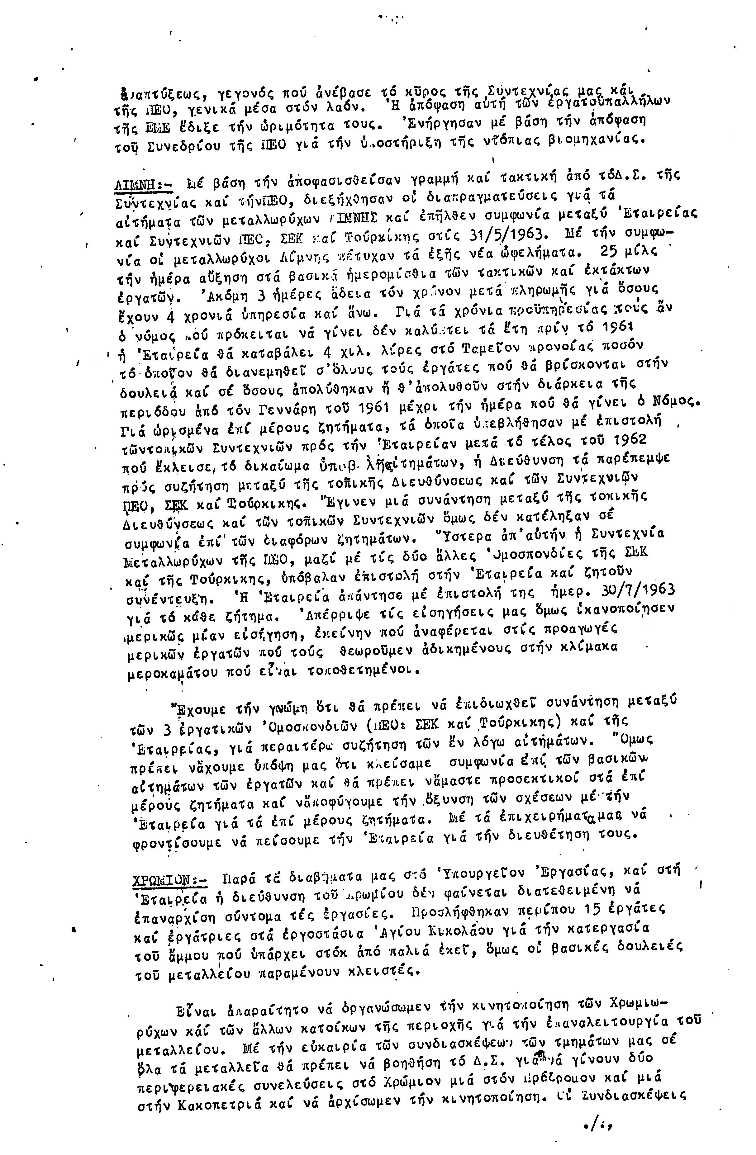 ΠΡΑΚΤΙΚΑ ΣΥΝΤΕΧΝΙΑΣ ΜΕΤΑΛΛΩΡΥΧΩΝ 1962-1964