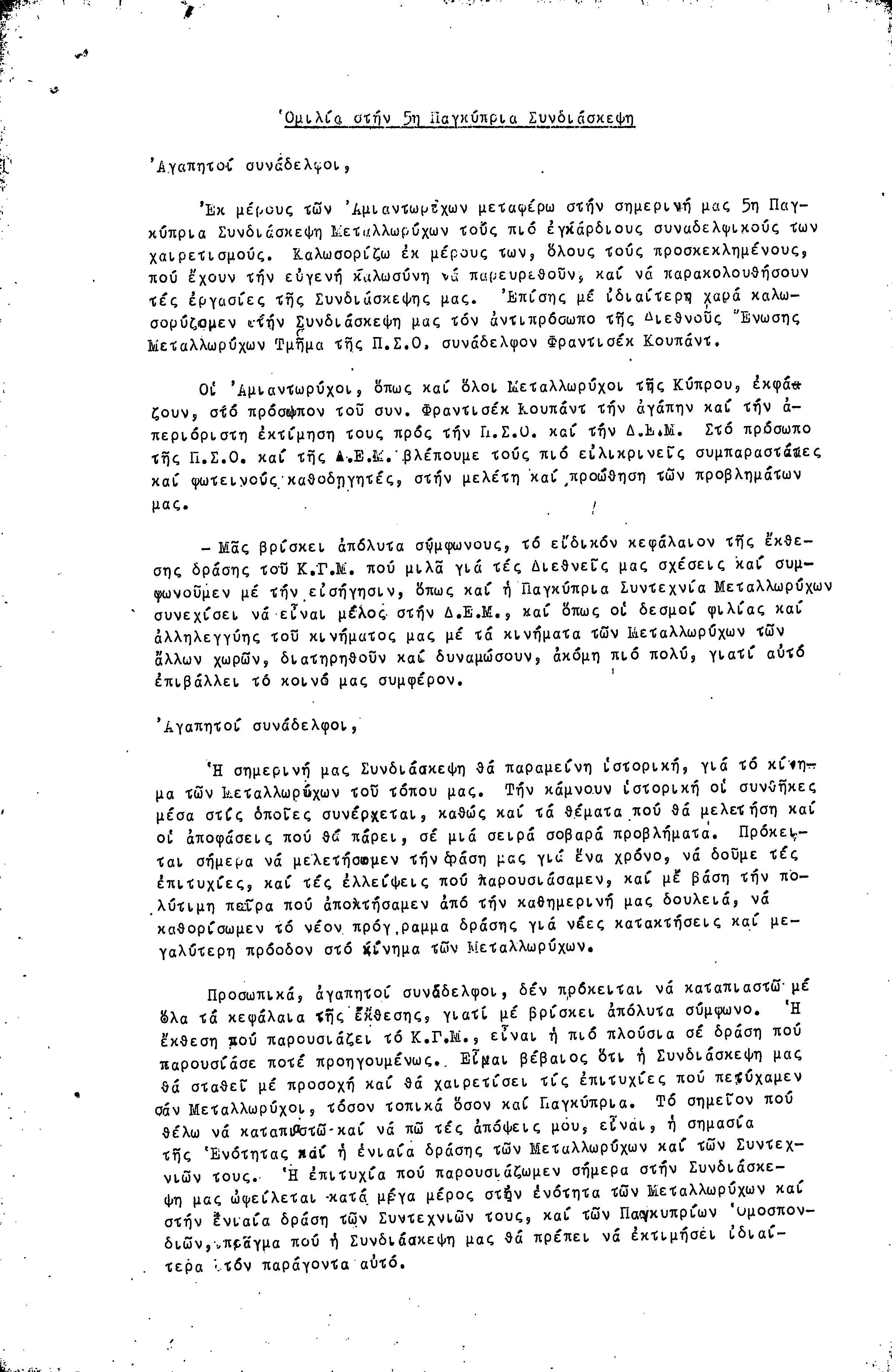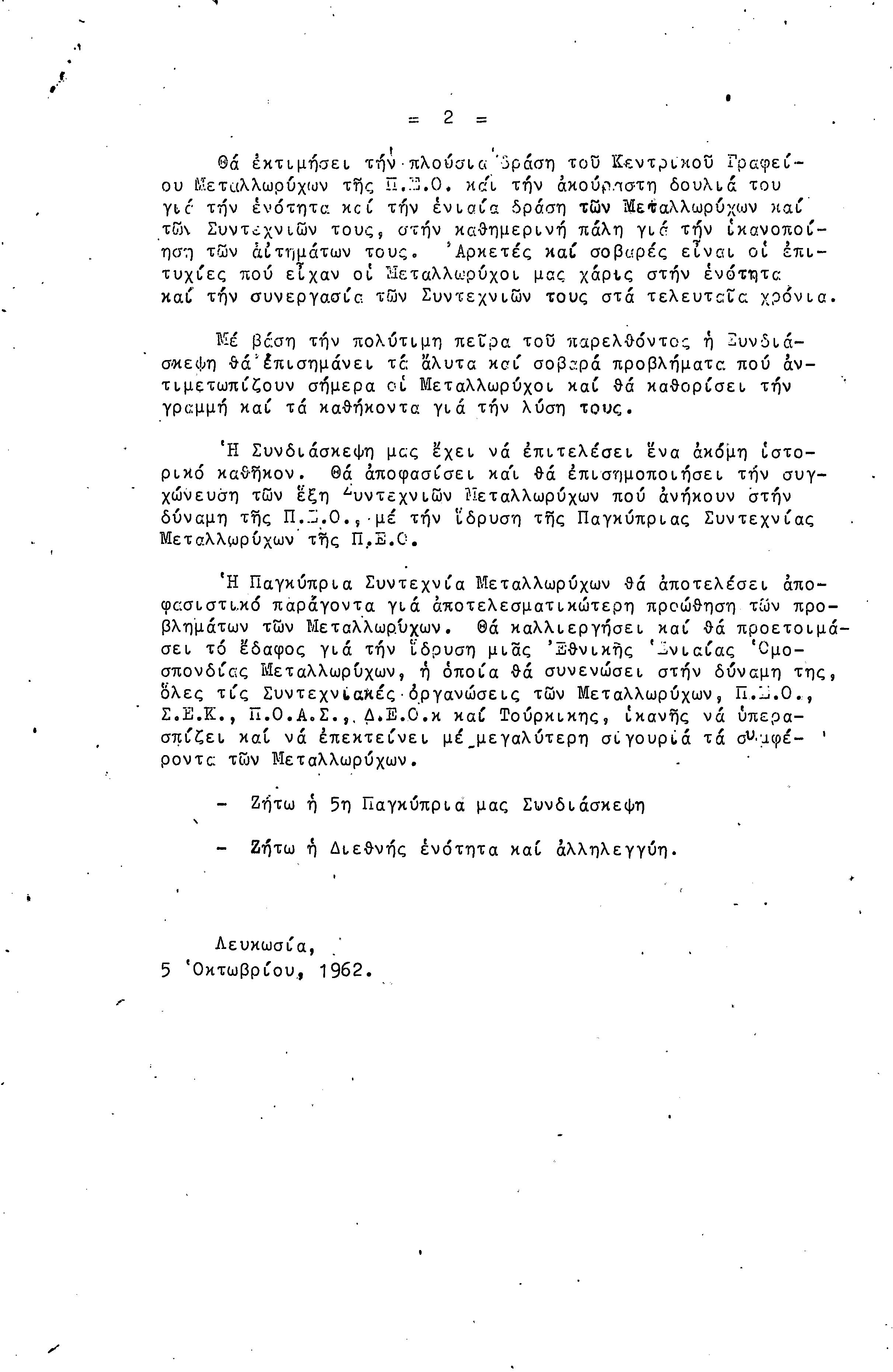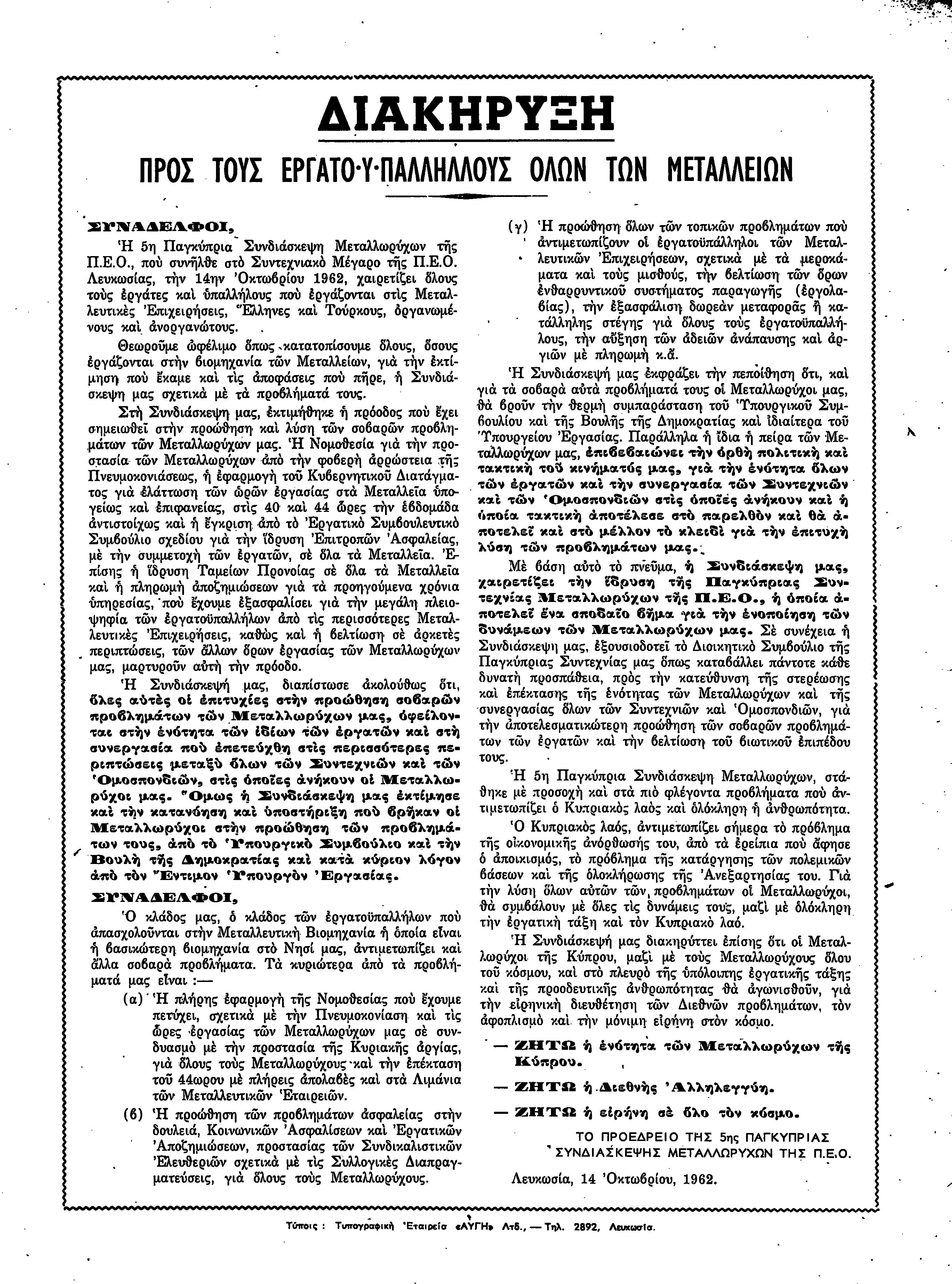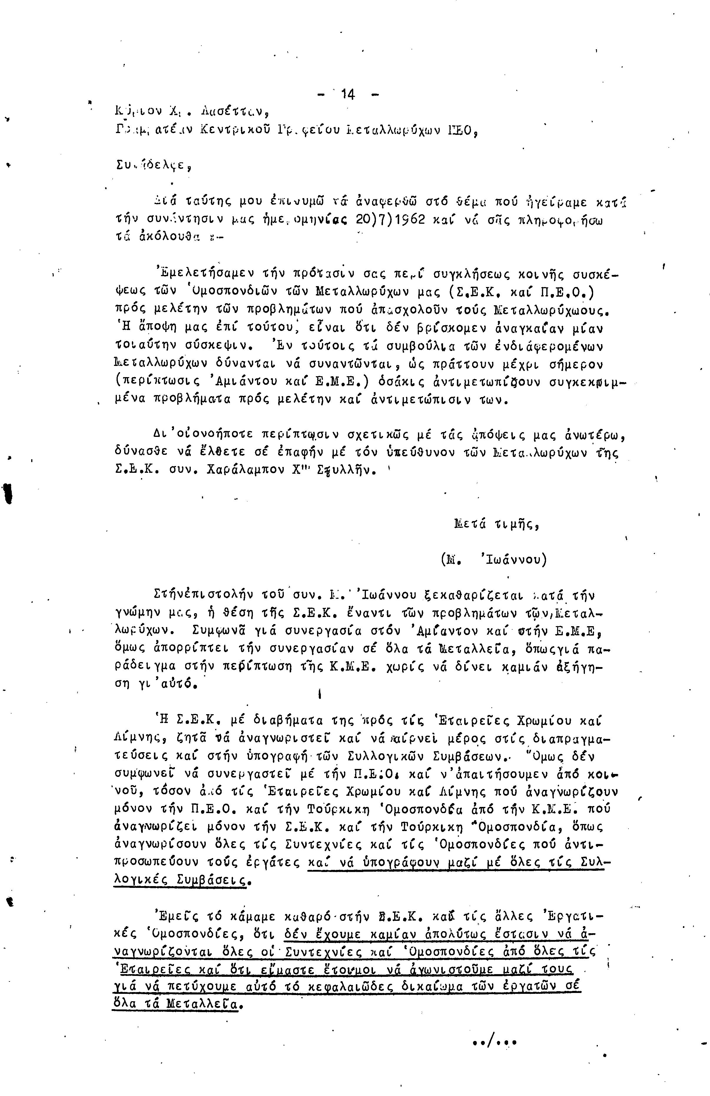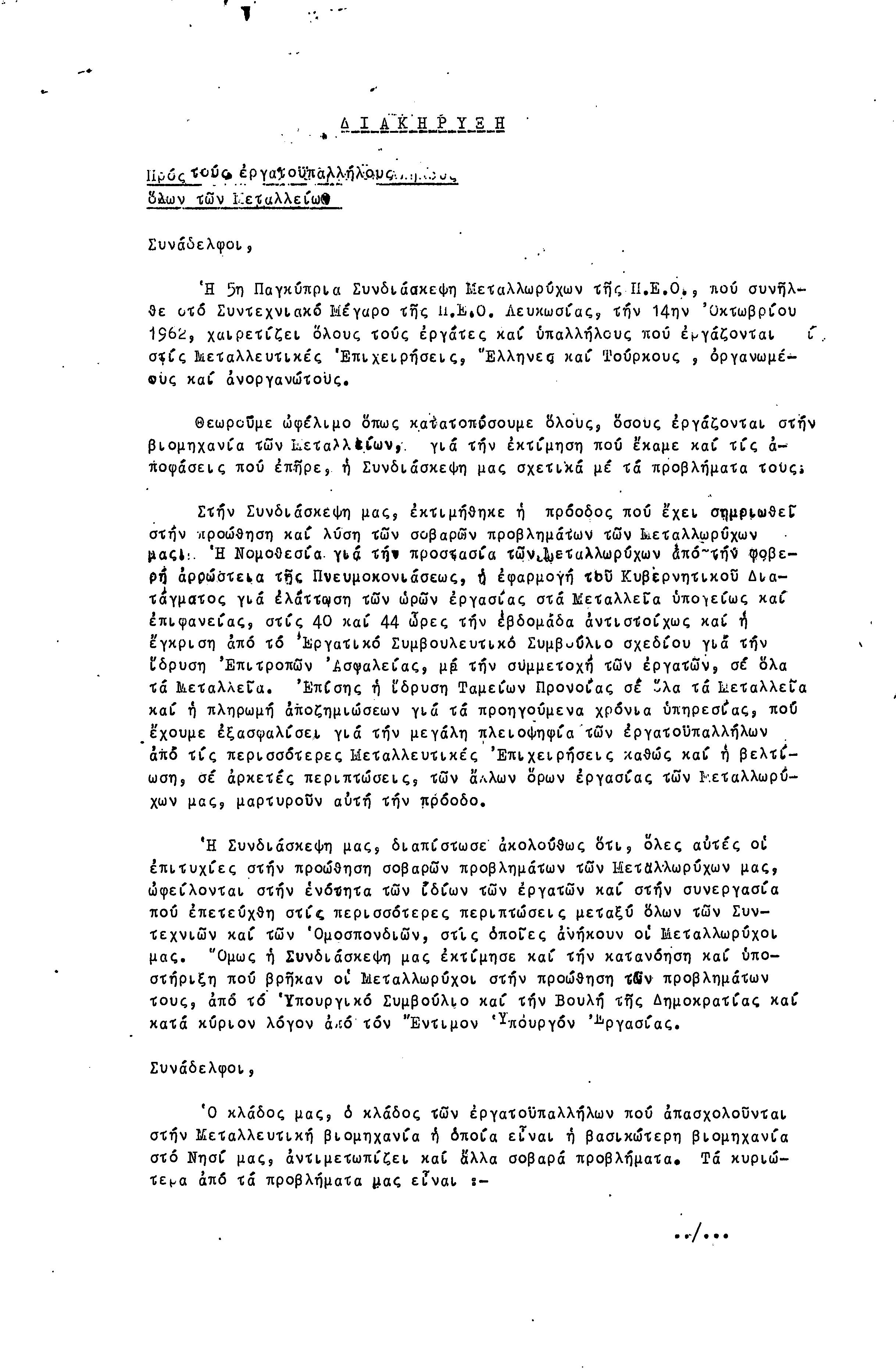 ΠΡΑΚΤΙΚΑ ΣΥΝΤΕΧΝΙΑΣ ΜΕΤΑΛΛΩΡΥΧΩΝ 1962-1964