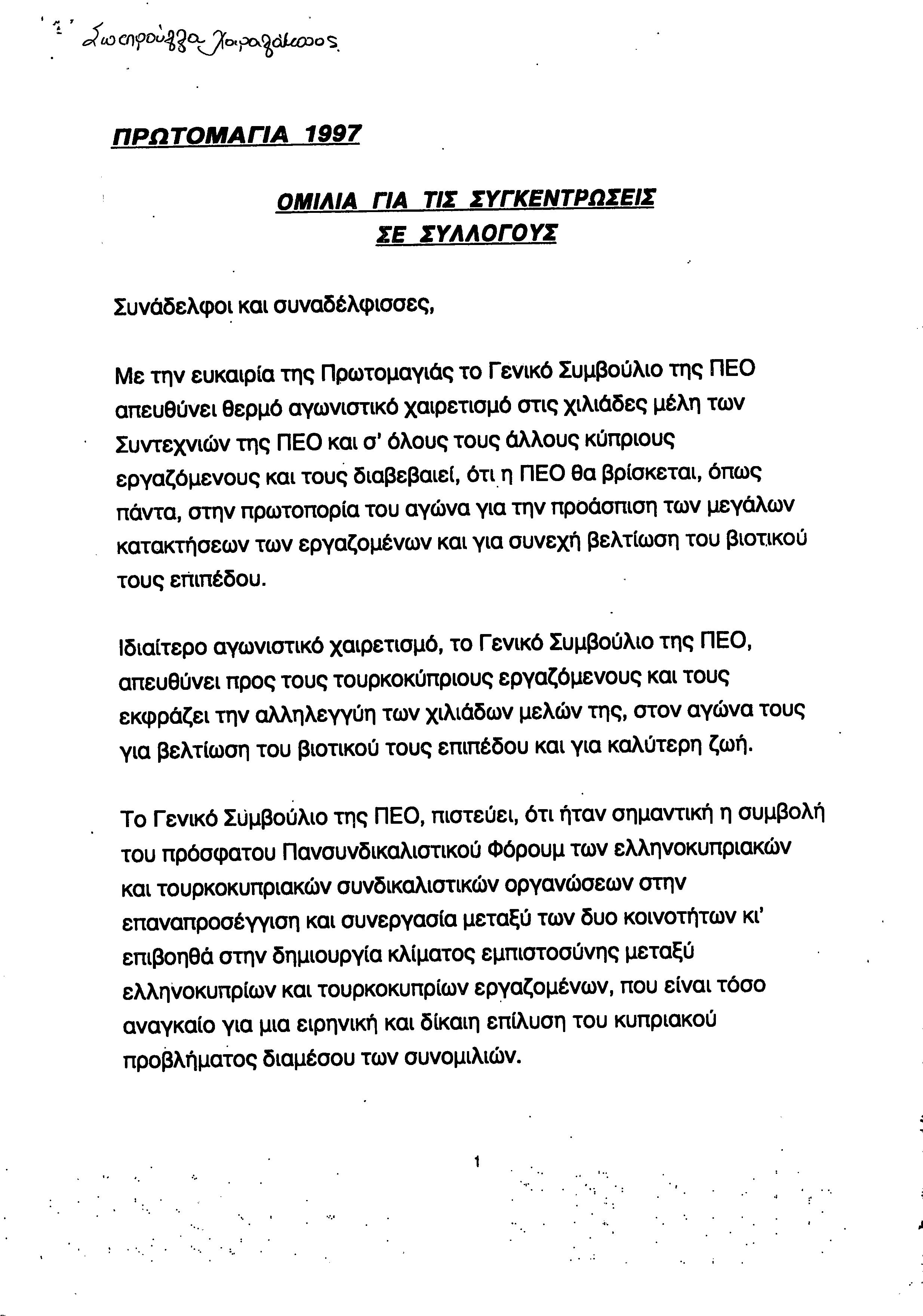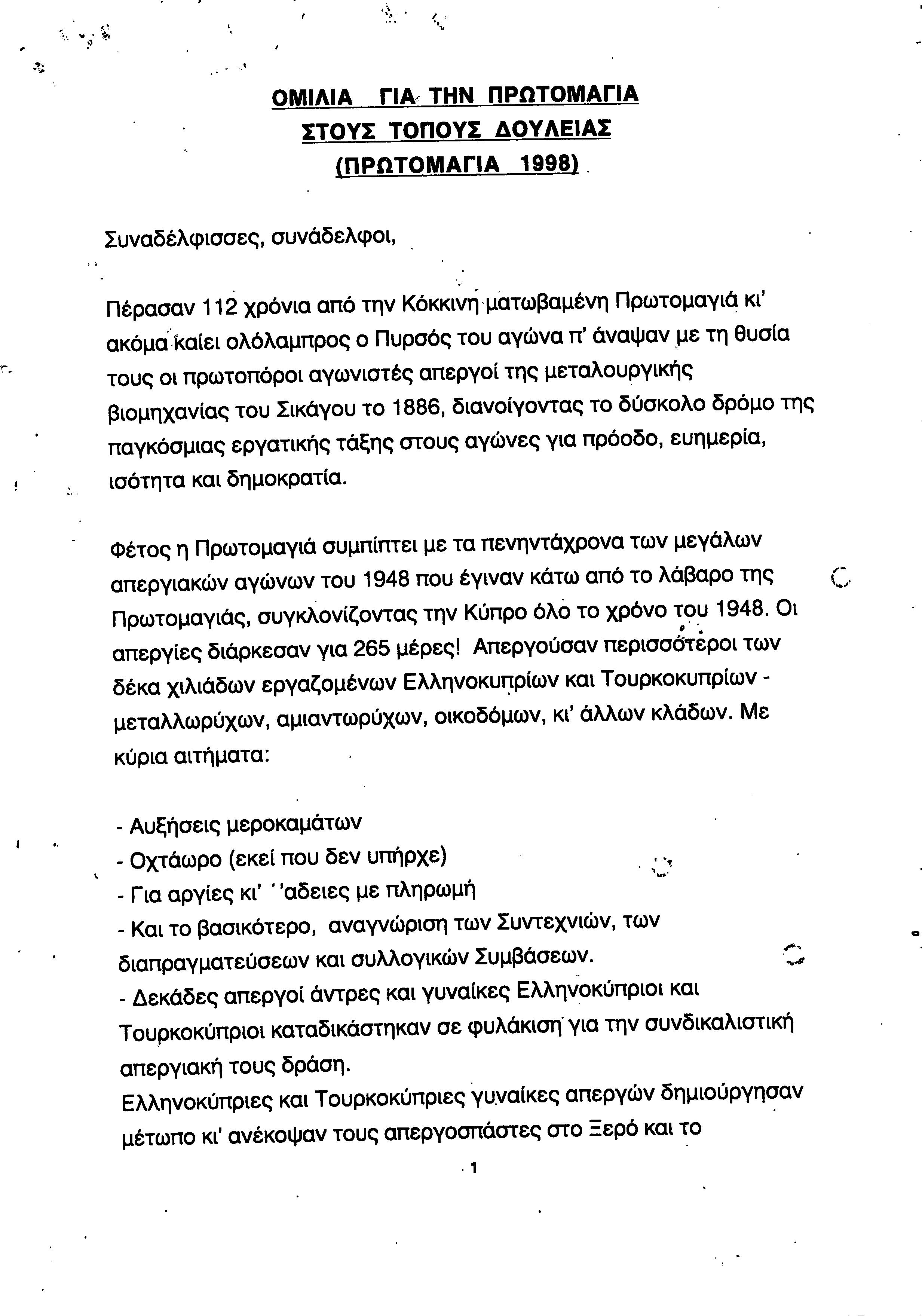 ΟΜΙΛΙΕΣ ΓΙΑ ΠΡΩΤΟΜΑΓΙΑ 1976-1998 by Παγκύπρια Εργατική Ομοσπονδία - Issuu