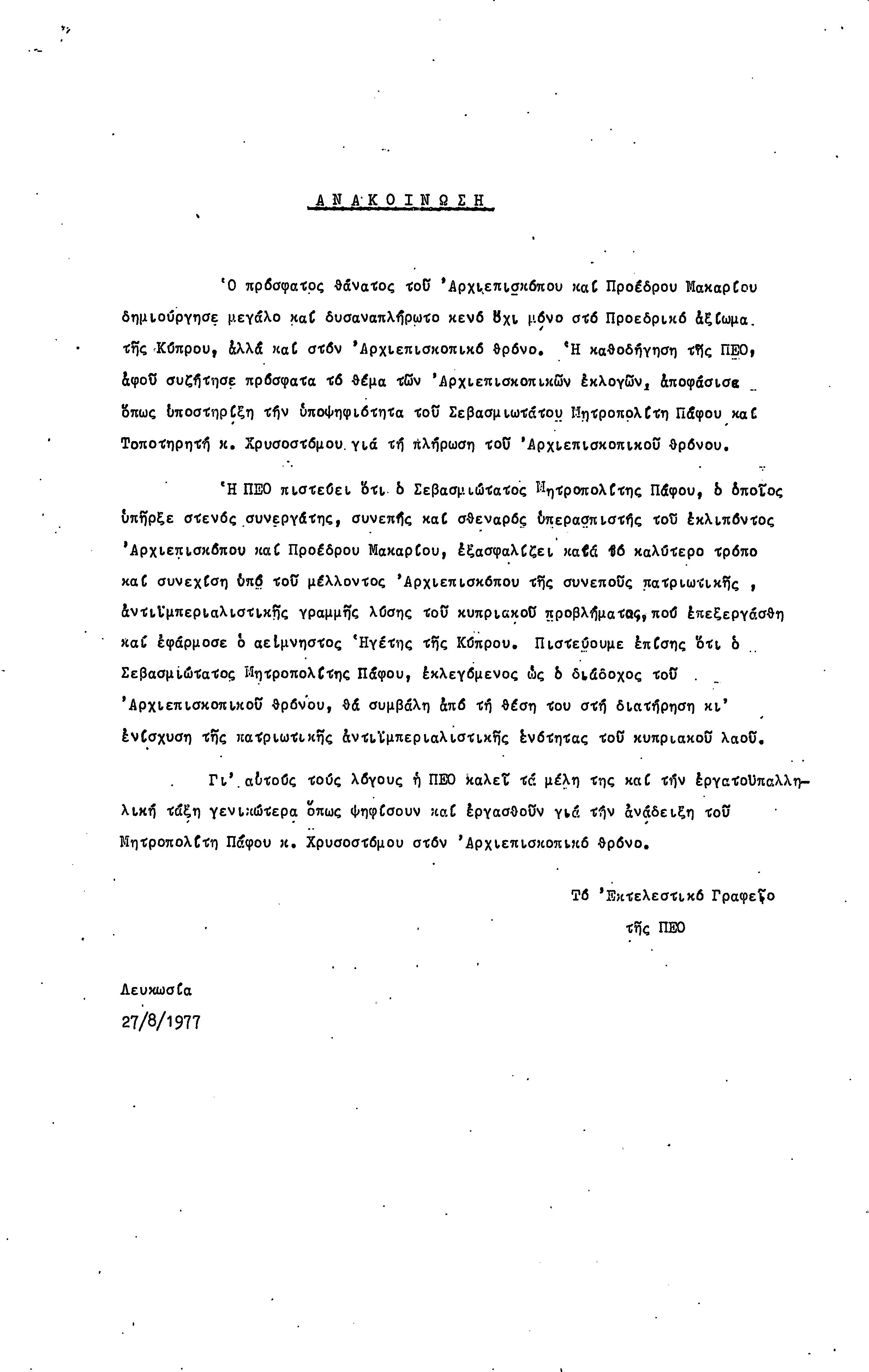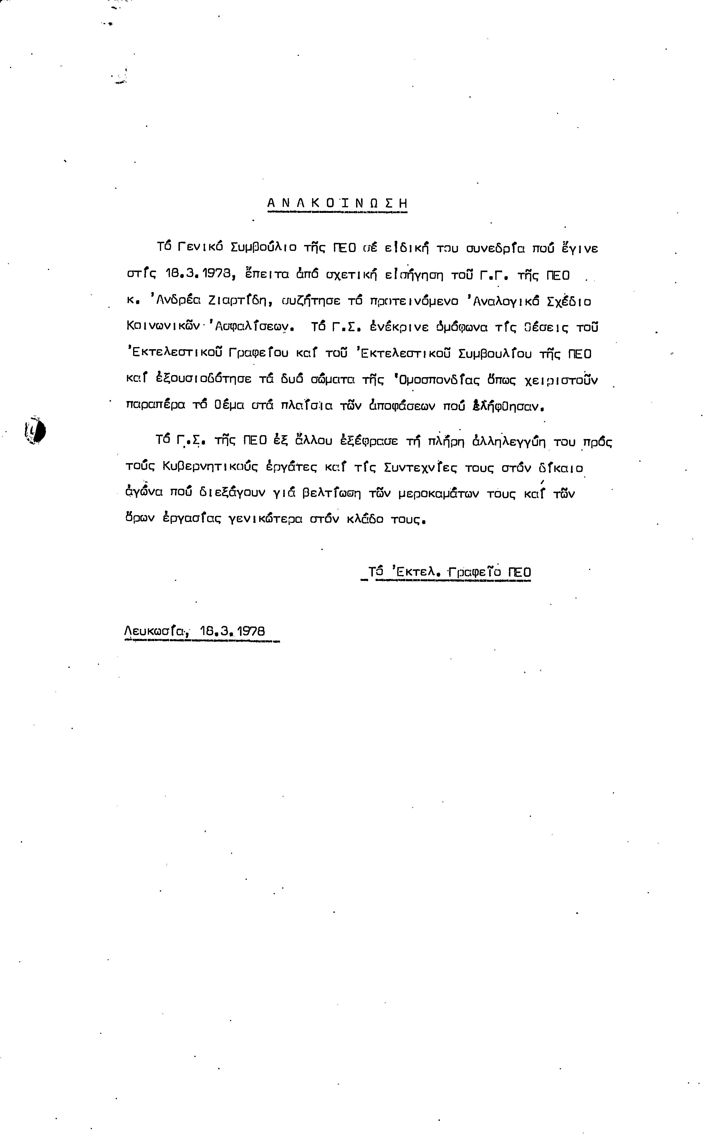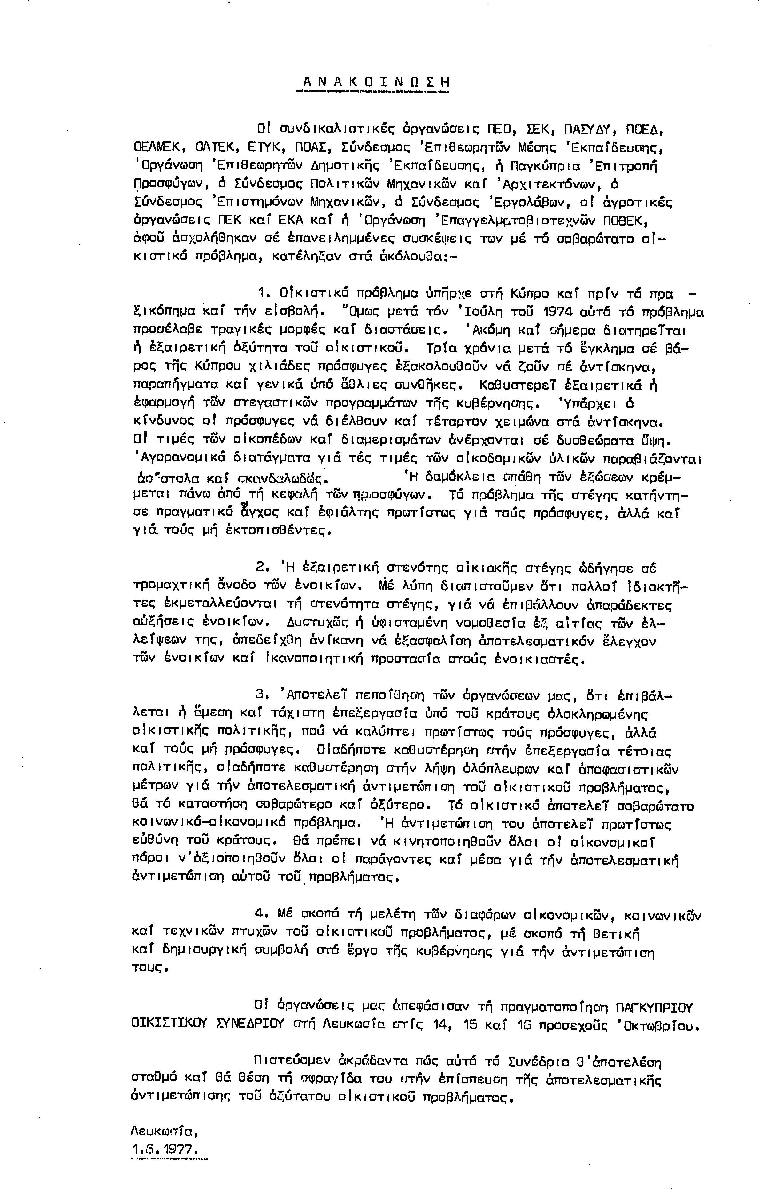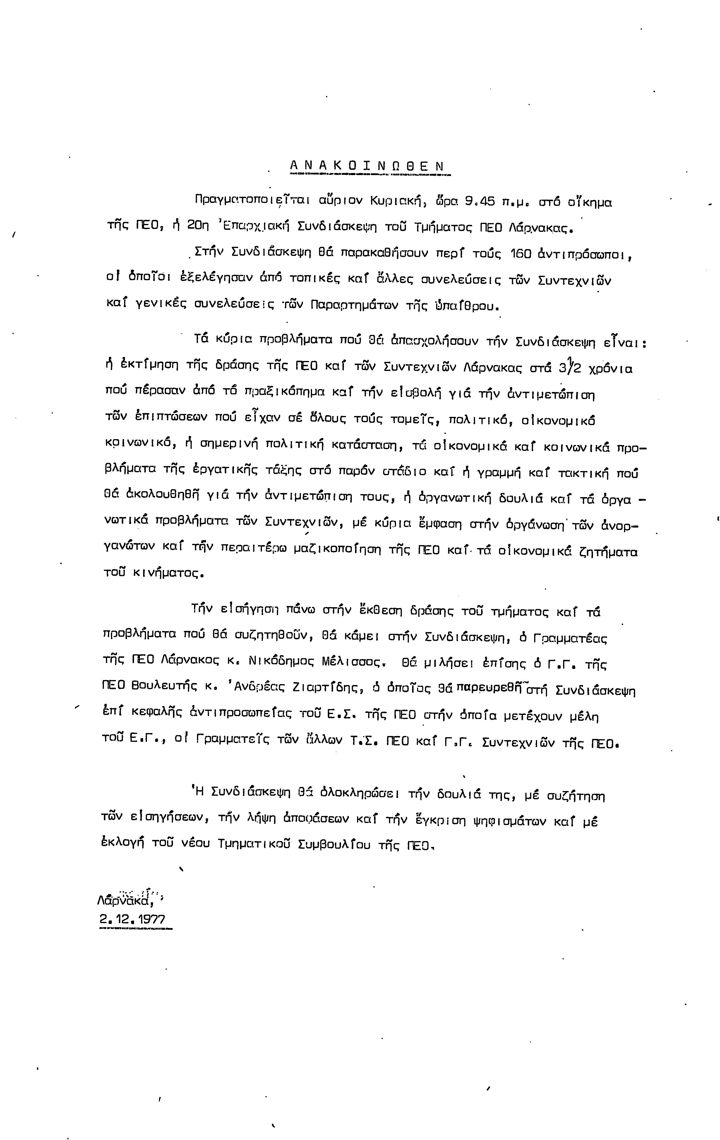 ΑΝΑΚΟΙΝΩΣΕΙΣ 1977-1978