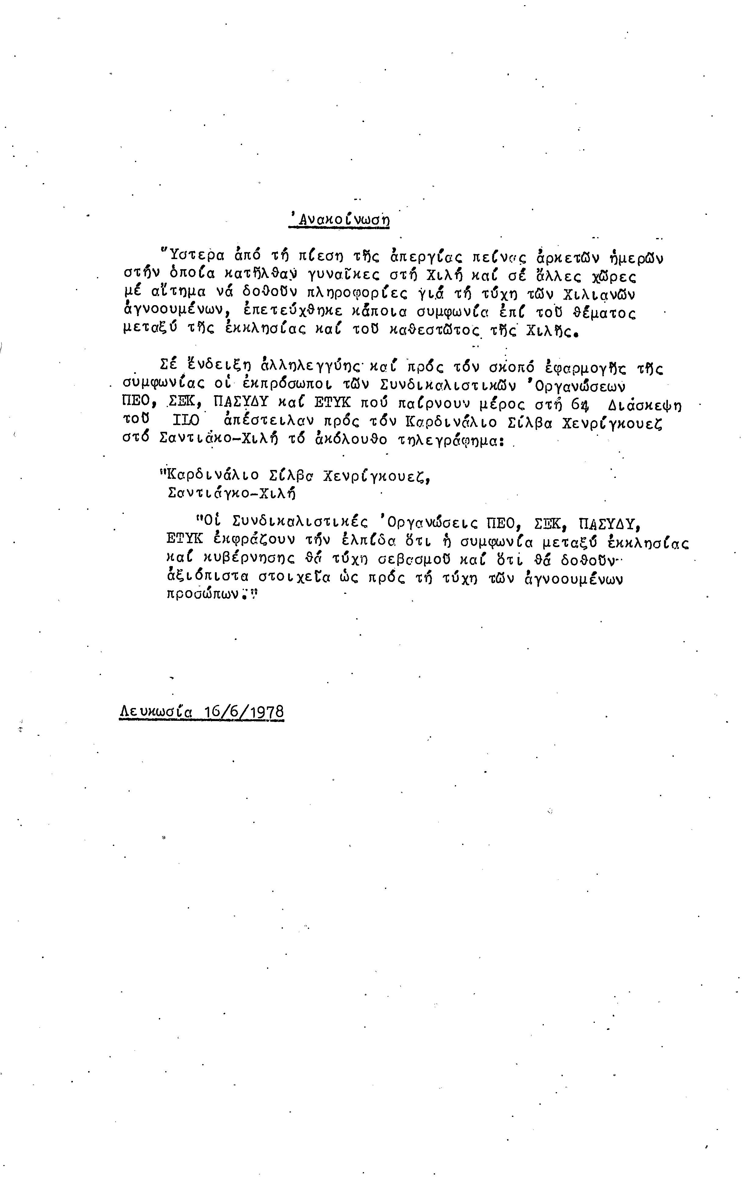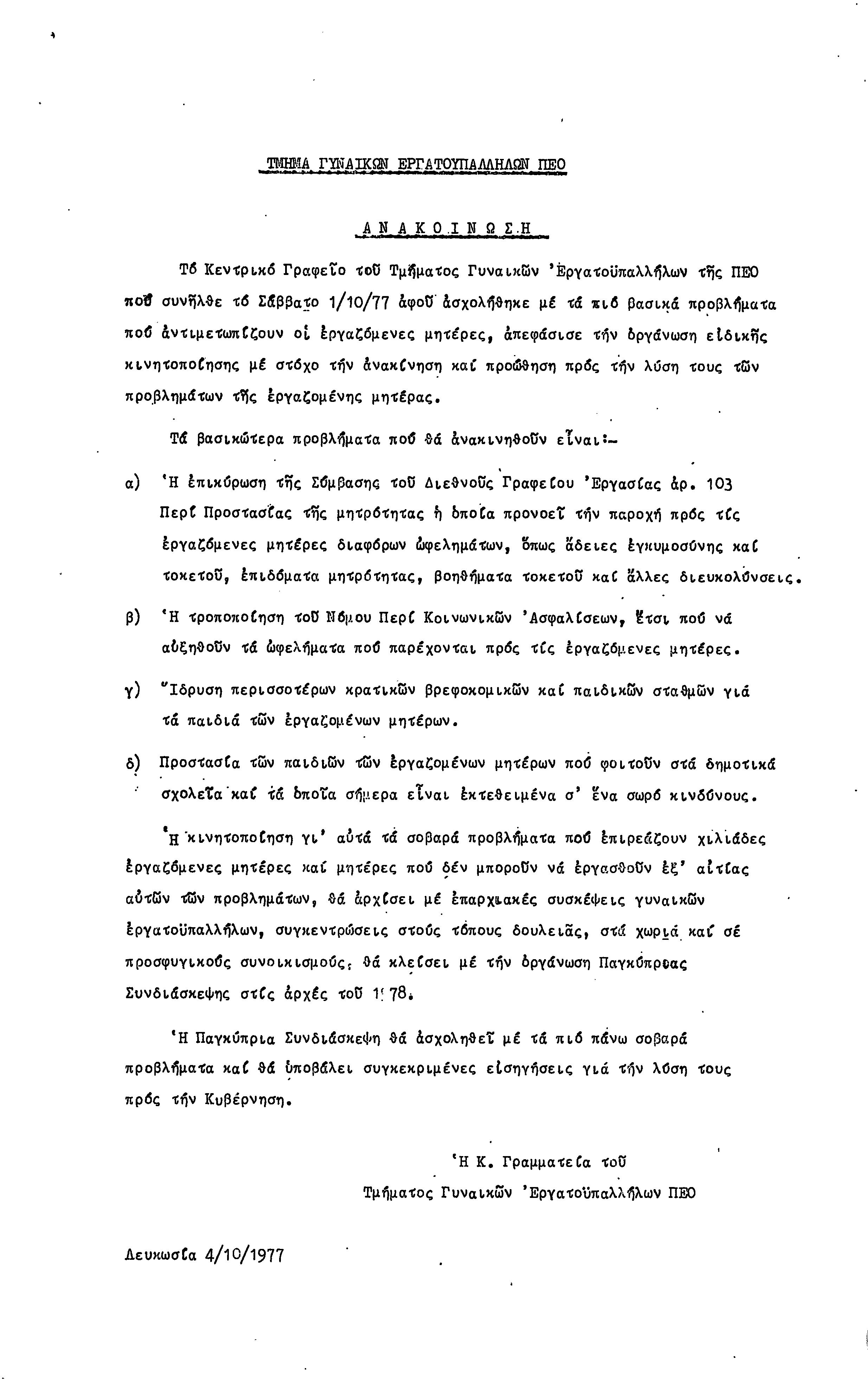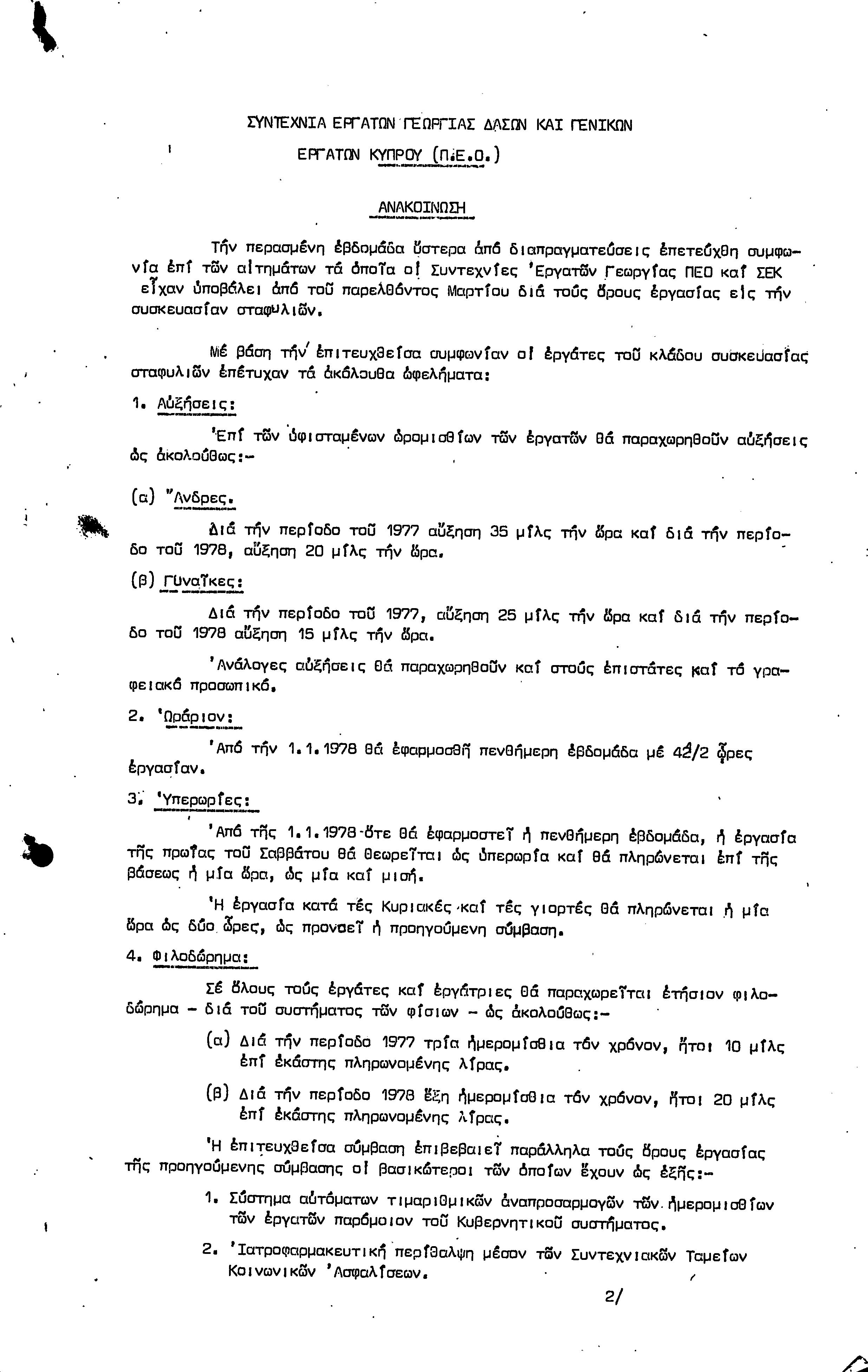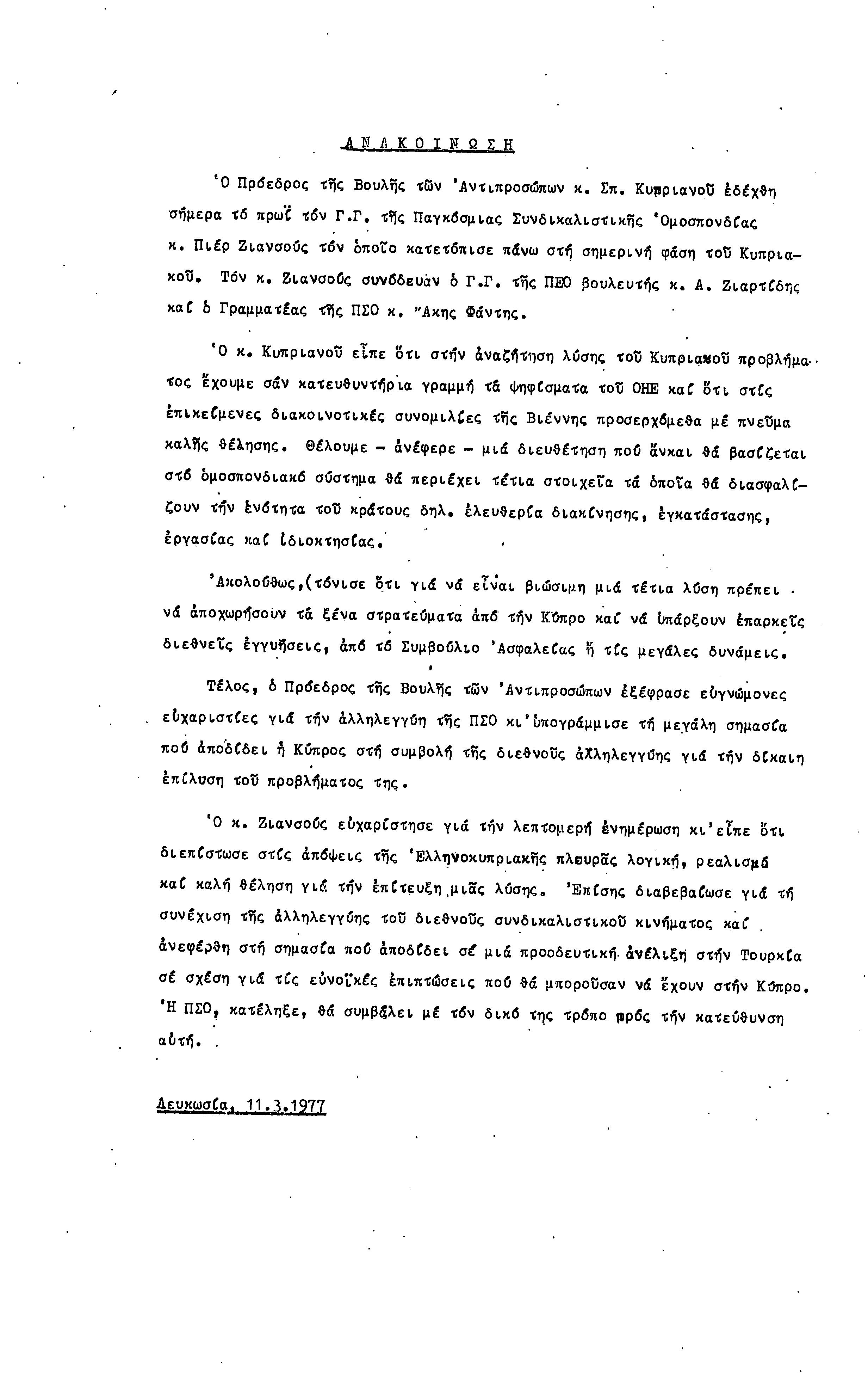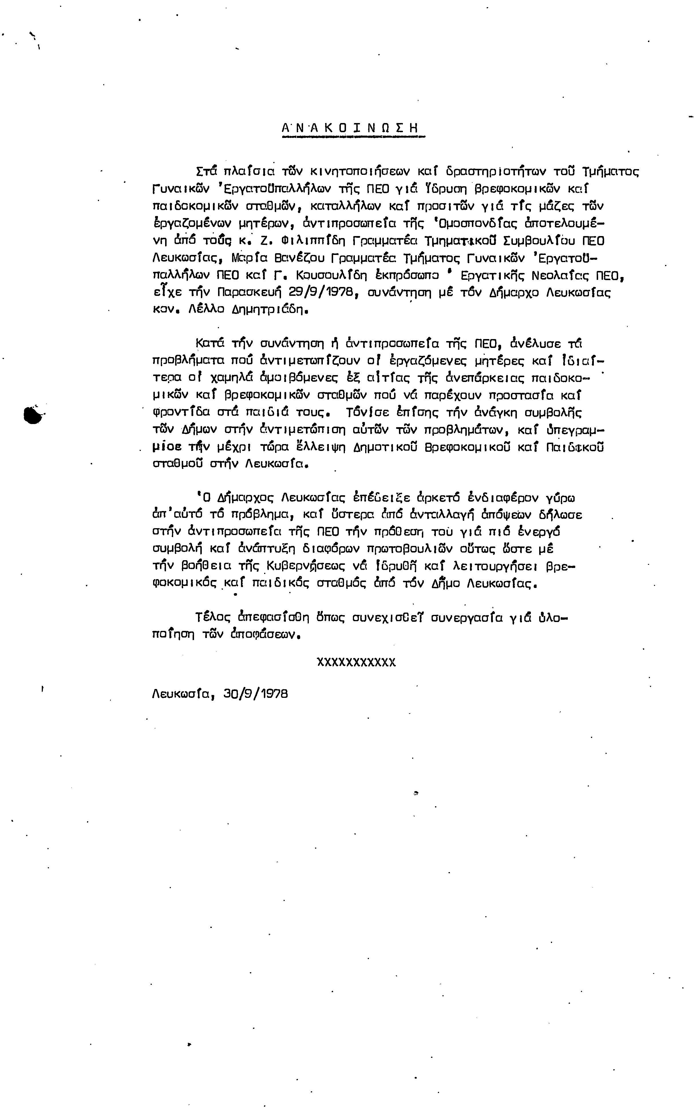 ΑΝΑΚΟΙΝΩΣΕΙΣ 1977-1978