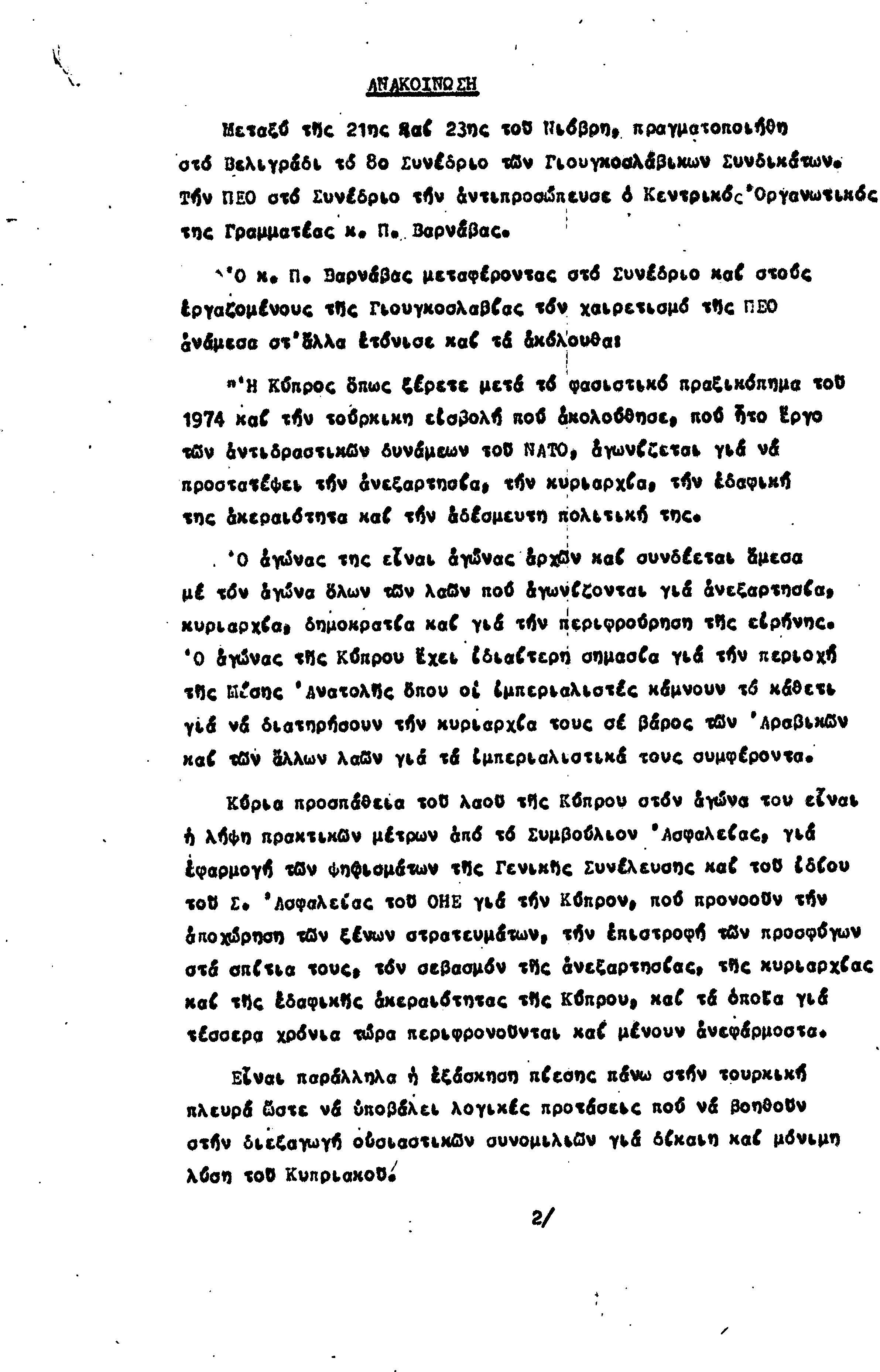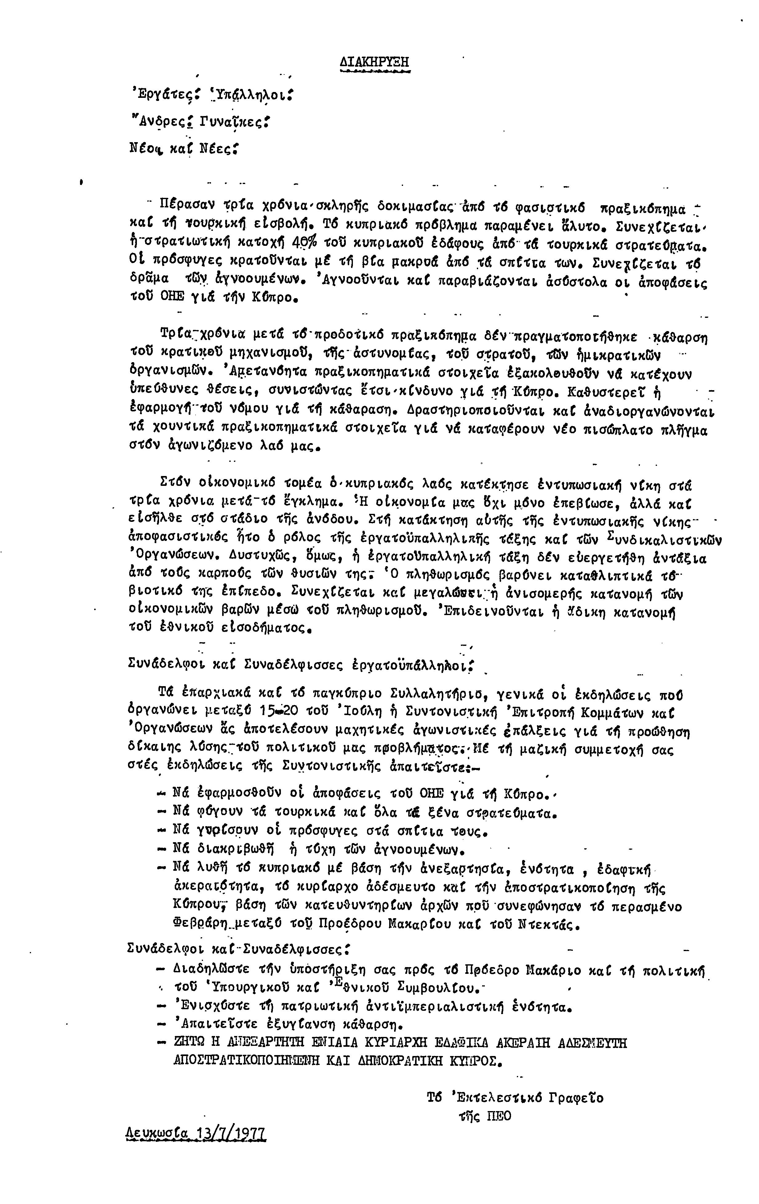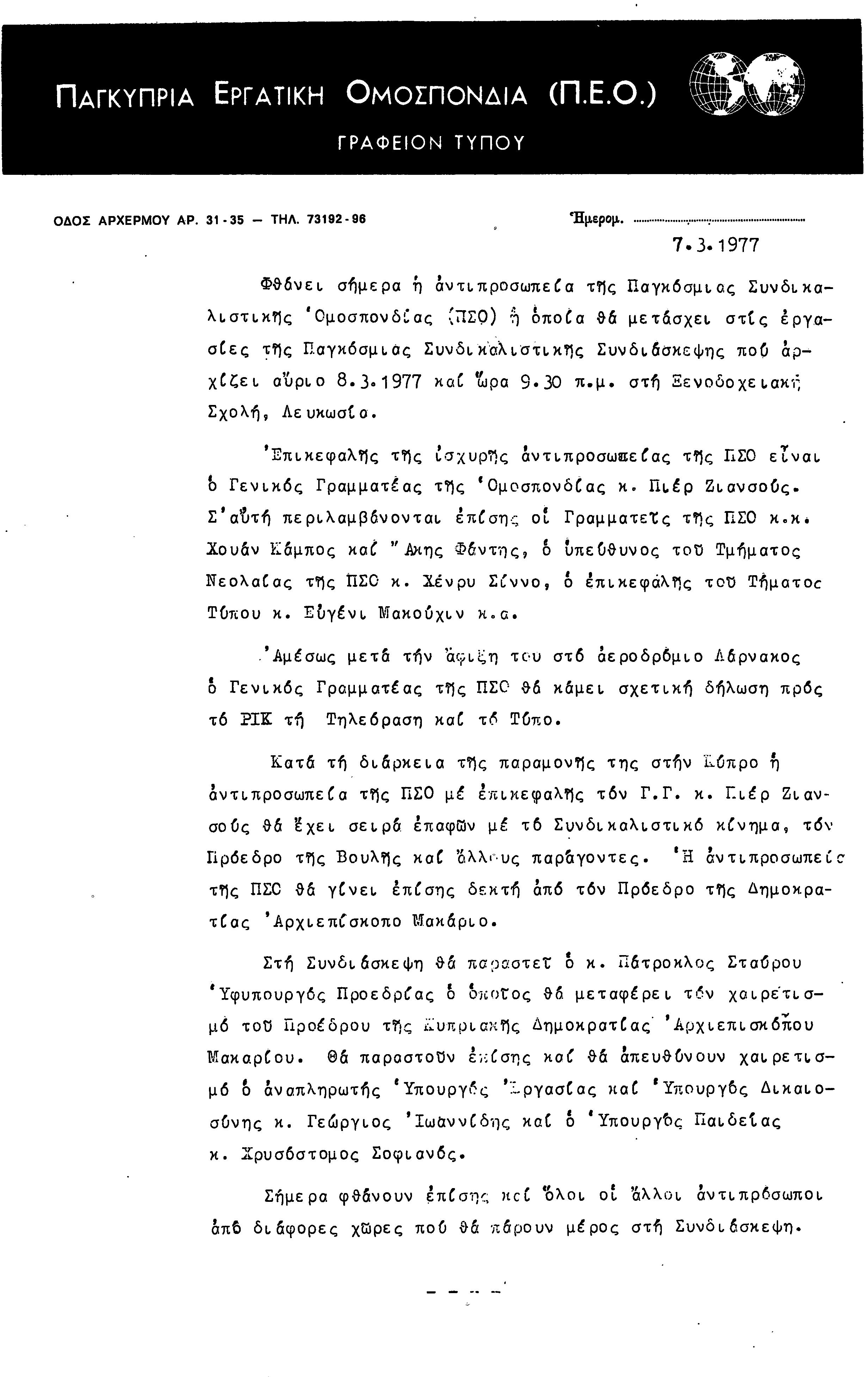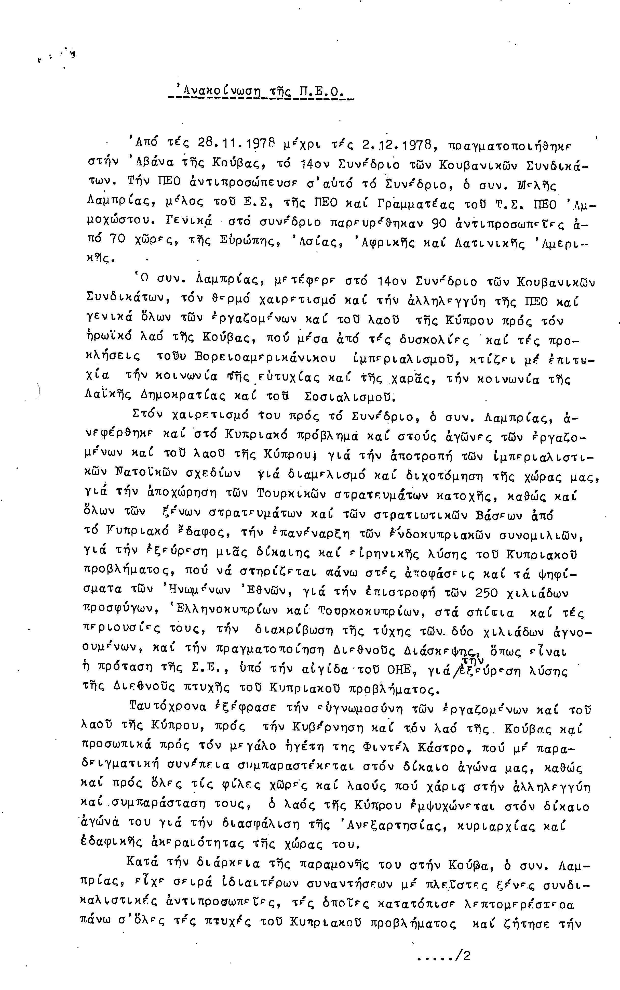 ΑΝΑΚΟΙΝΩΣΕΙΣ 1977-1978