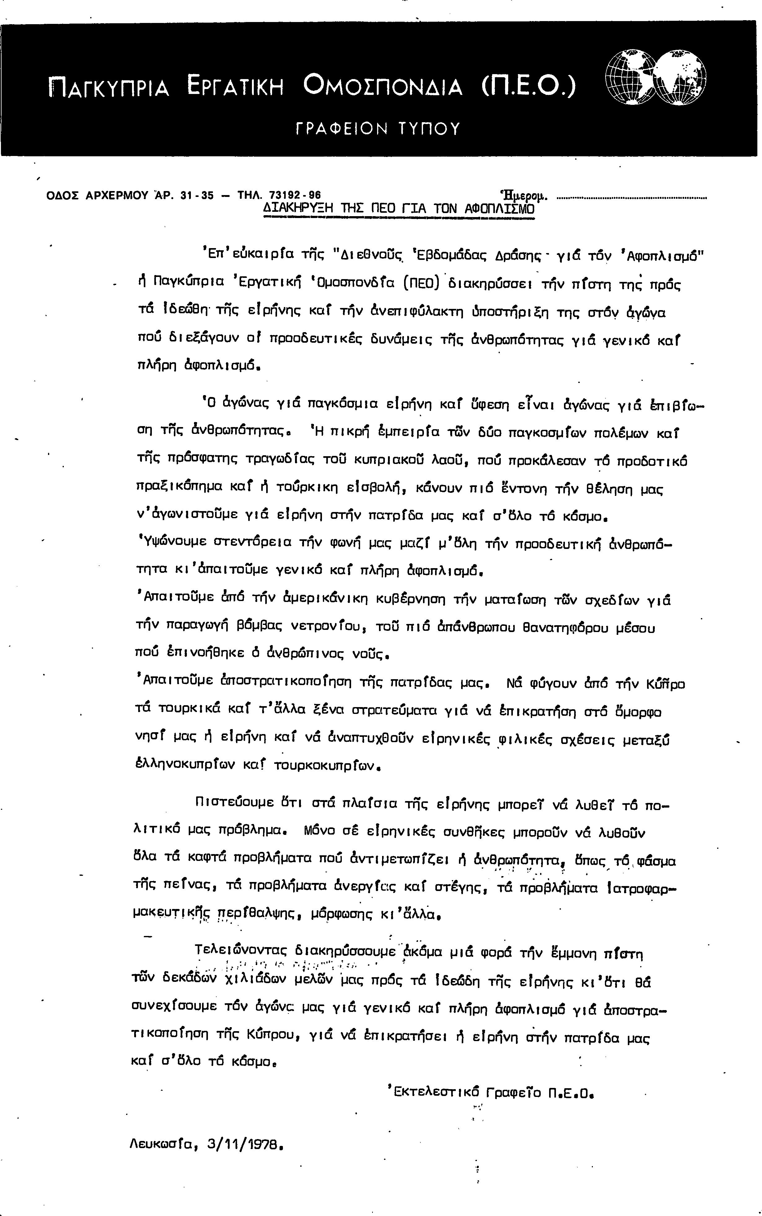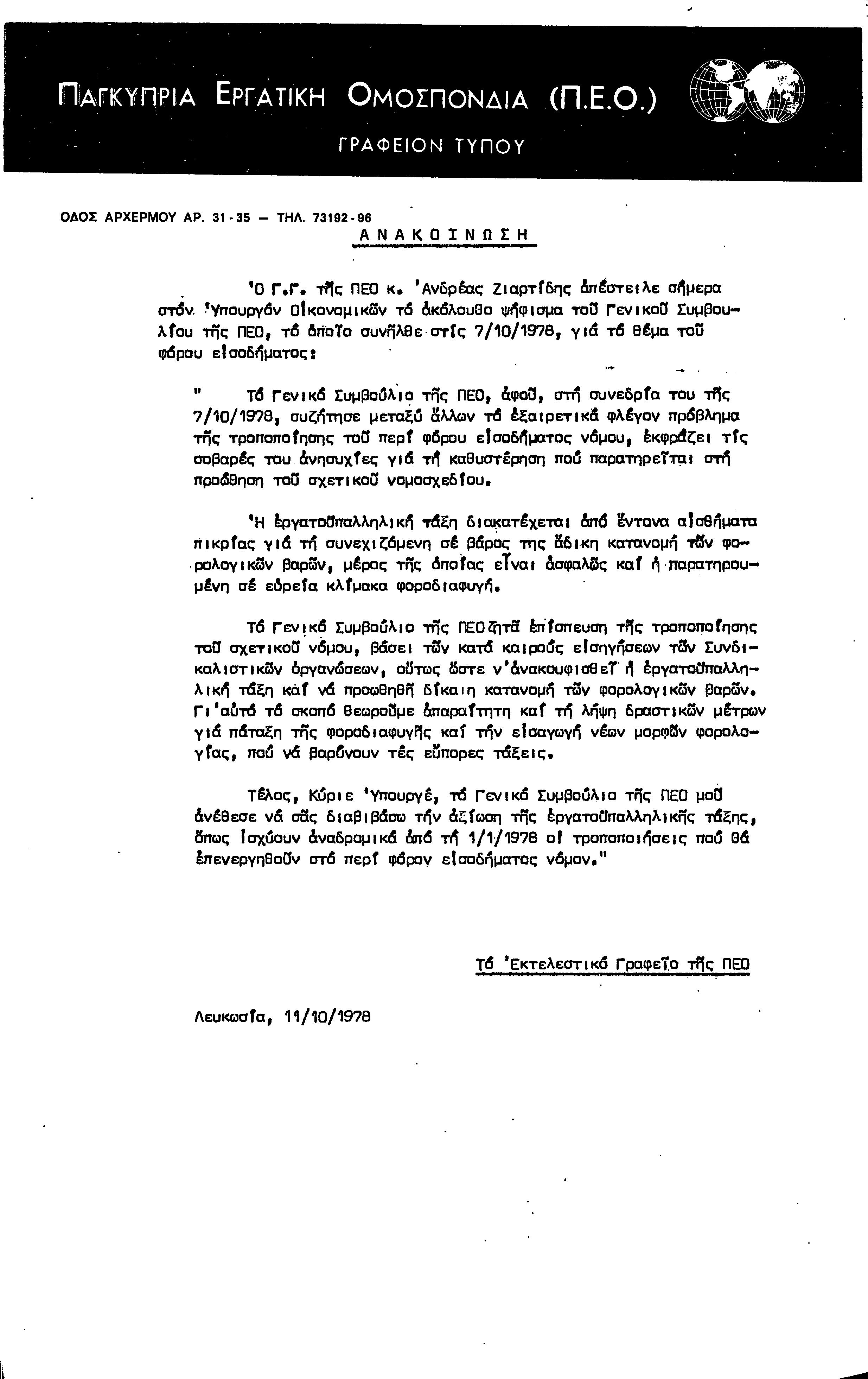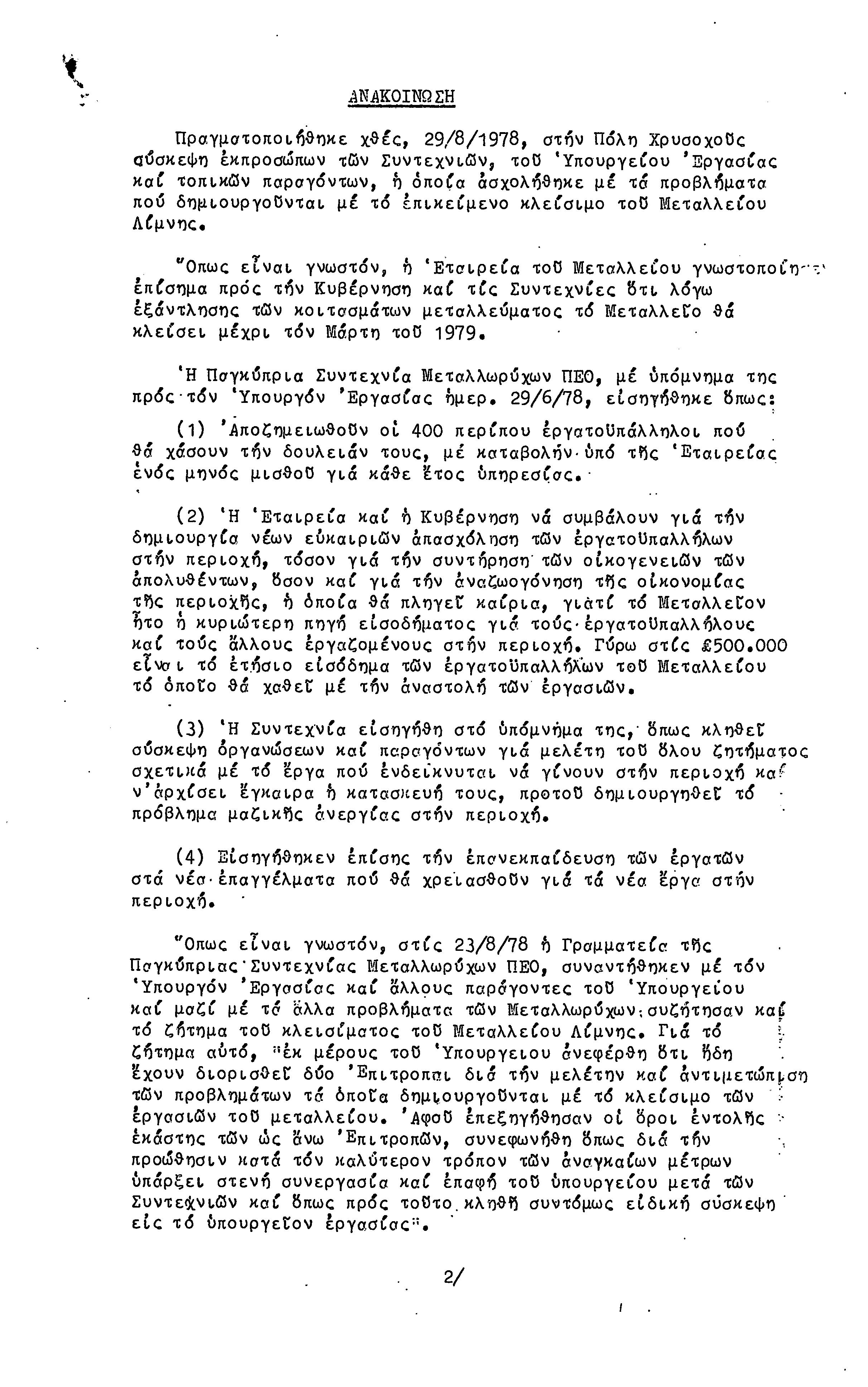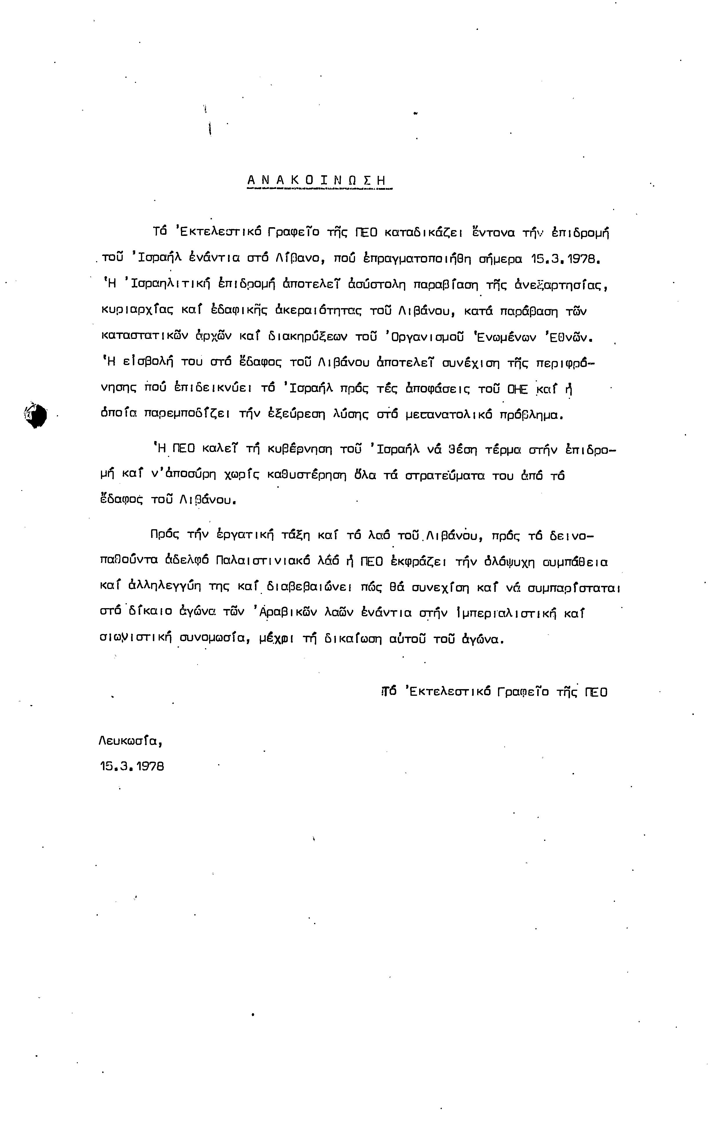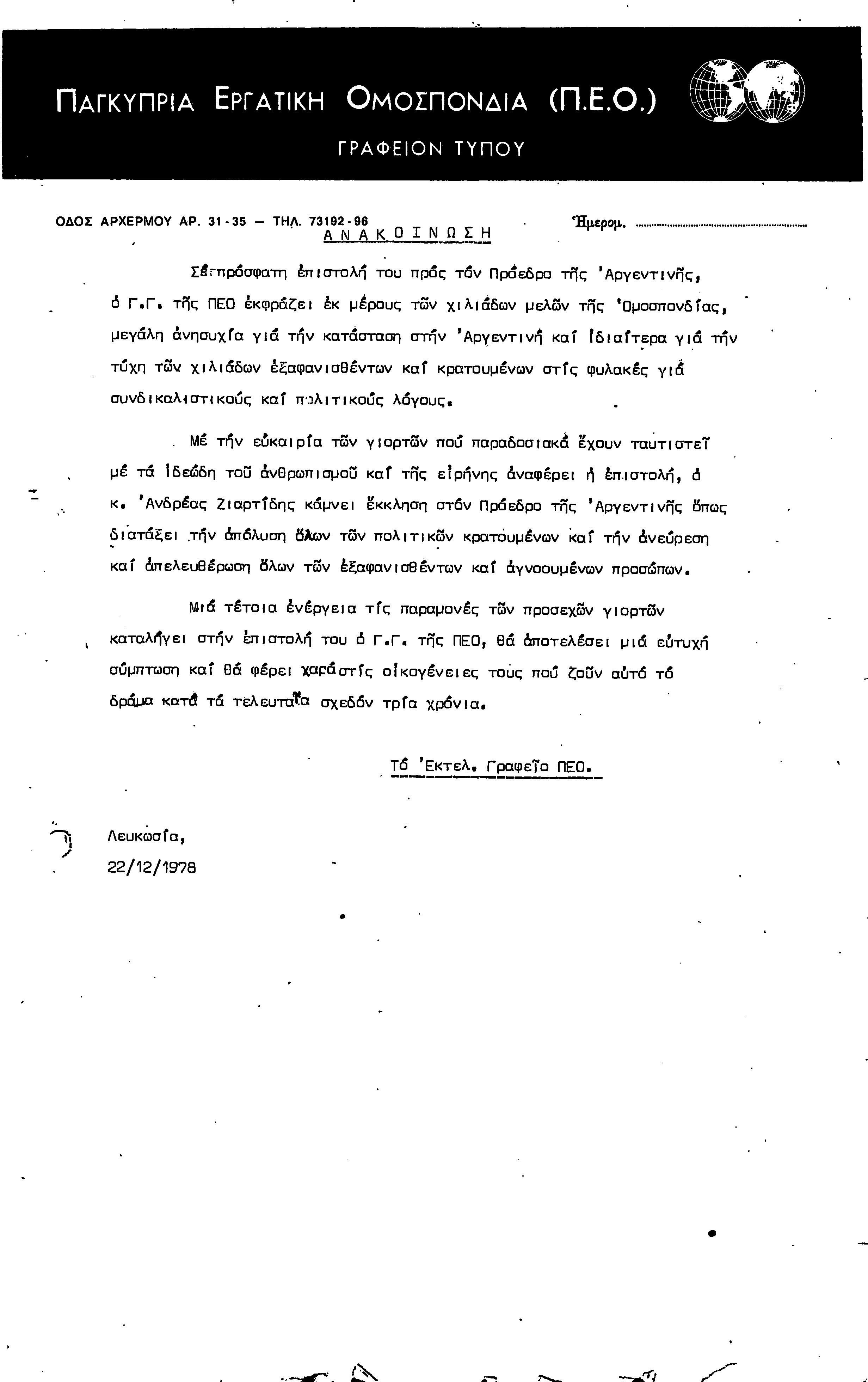 ΑΝΑΚΟΙΝΩΣΕΙΣ 1977-1978