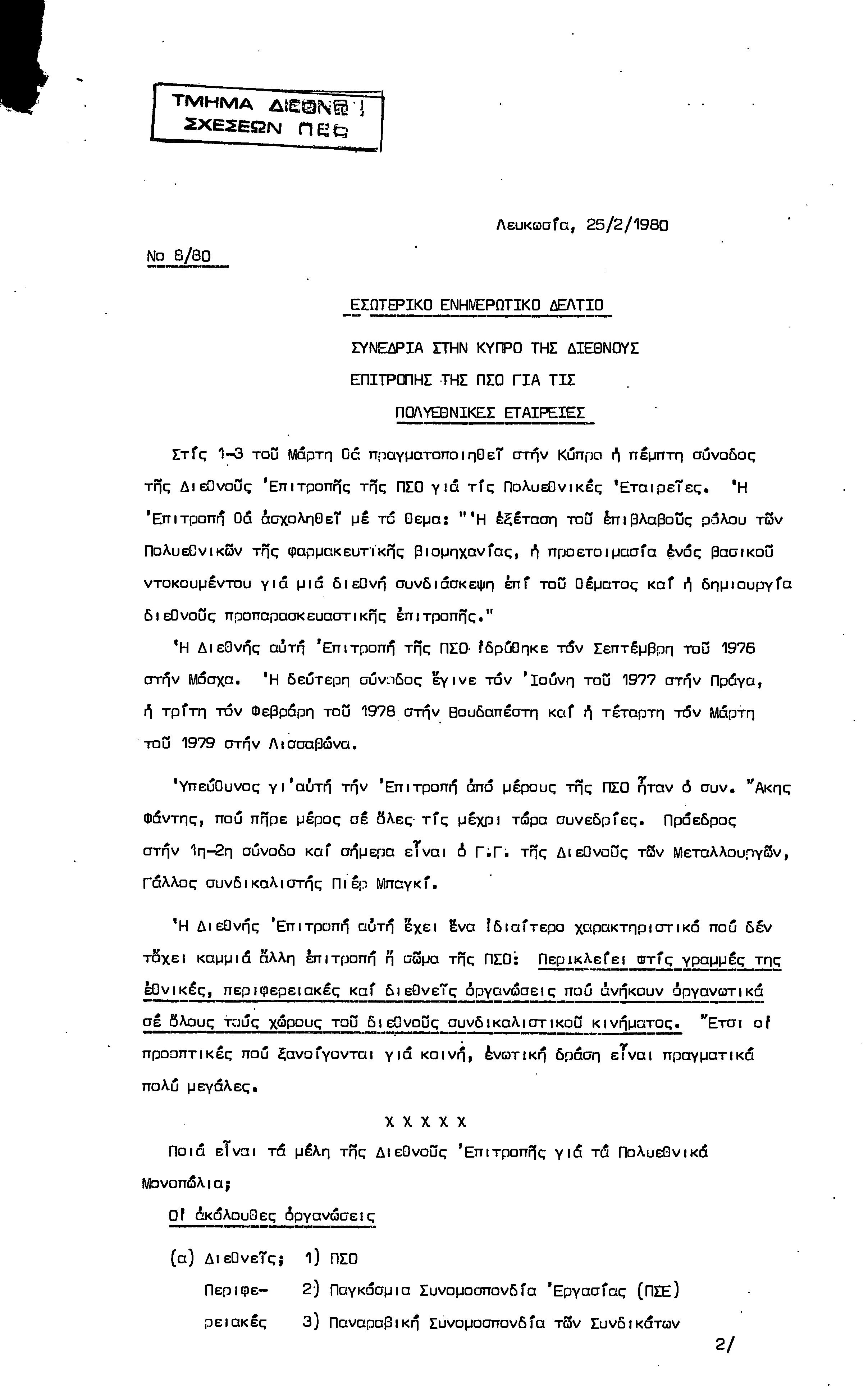ΕΝΗΜΕΡΩΤΙΚΟ ΔΕΛΤΙΟ ΔΙΕΘΝΩΝ ΣΧΕΣΕΩΝ ΠΕΟ 1979-1980