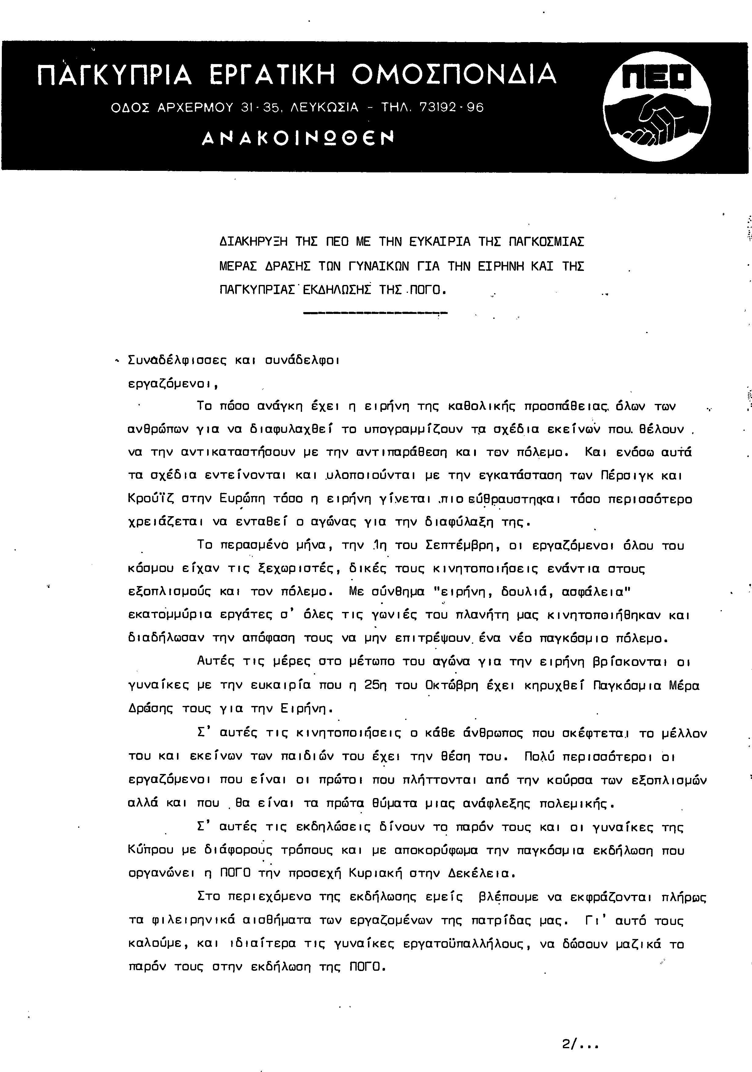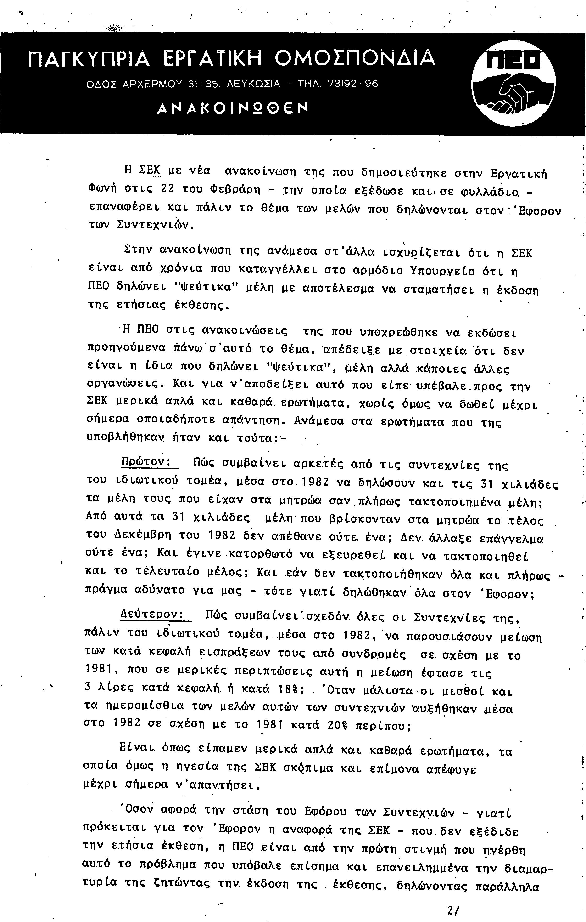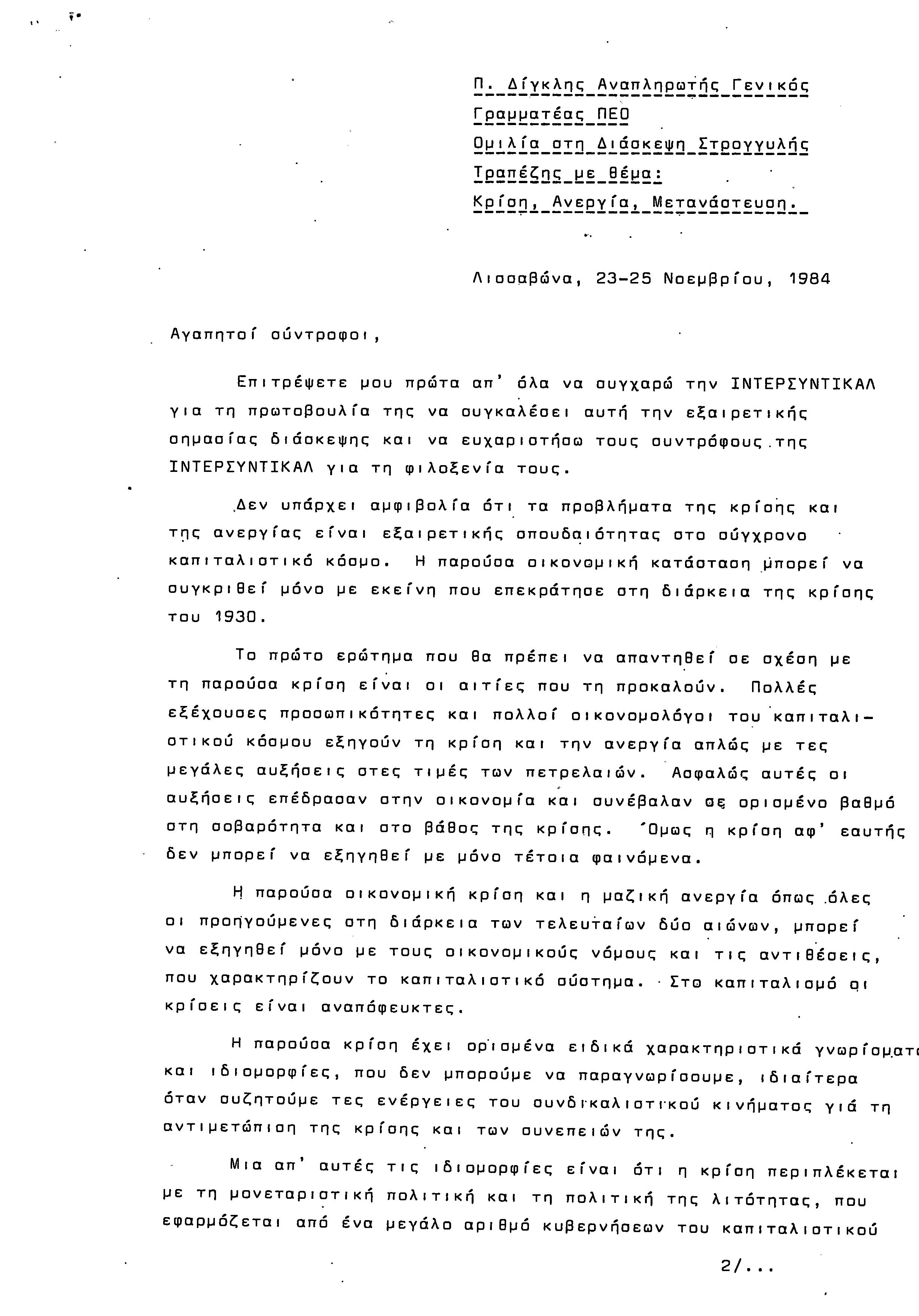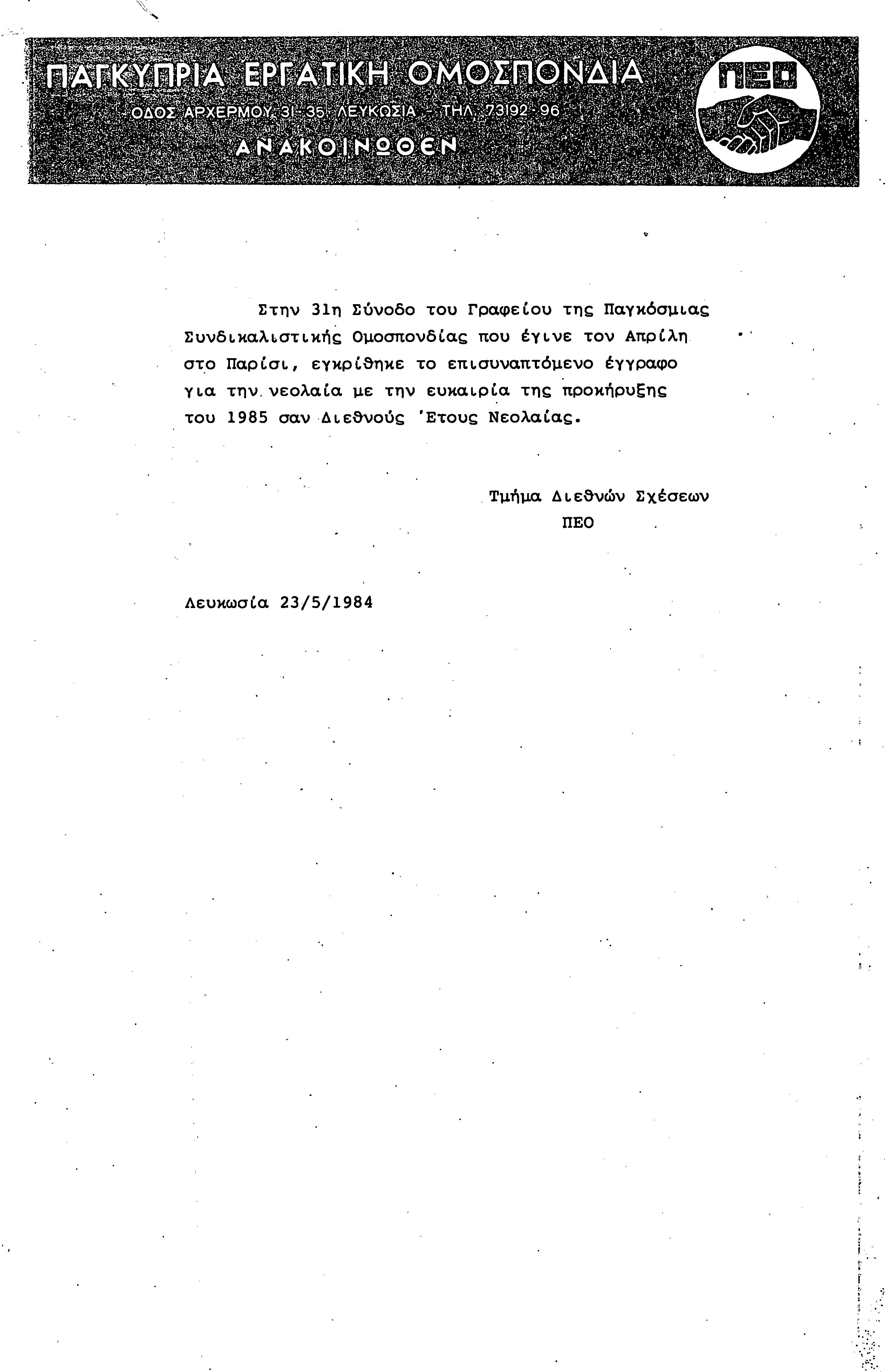 ΑΝΑΚΟΙΝΩΣΕΙΣ 1984-1985