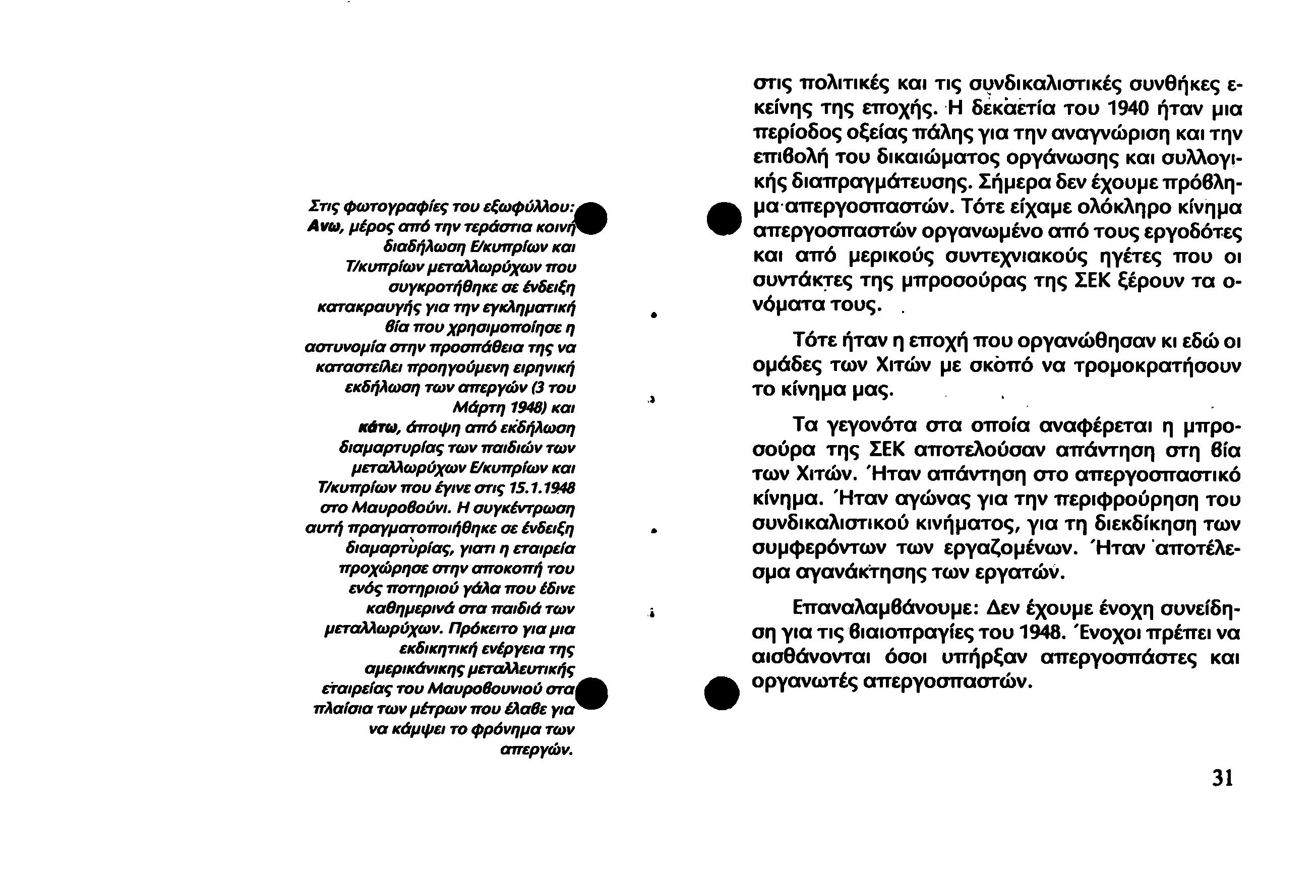 ΑΠΑΝΤΗΣΗ ΠΕΟ ΤΟ 1988 ΠΡΟΣ ΤΗ ΣΕΚ ΓΙΑ ΤΟΥΣ ΑΓΩΝΕΣ ΤΩΝ ΜΕΤΑΛΛΩΡΥΧΩΝ ΤΟ 1948