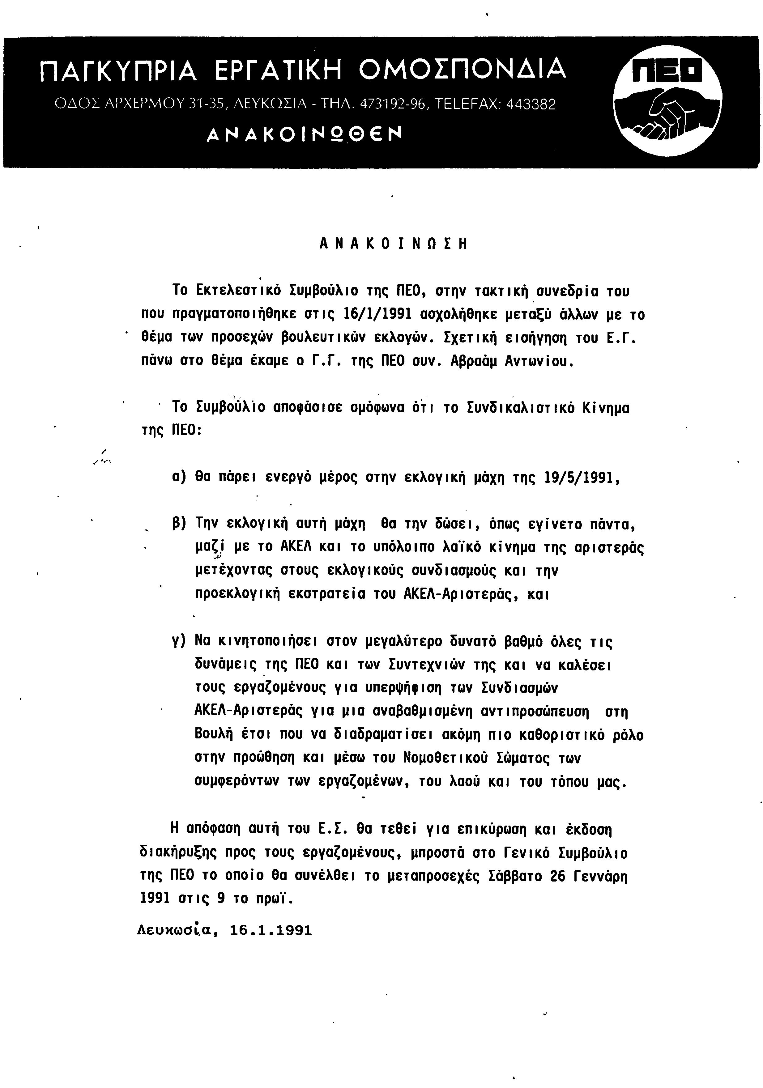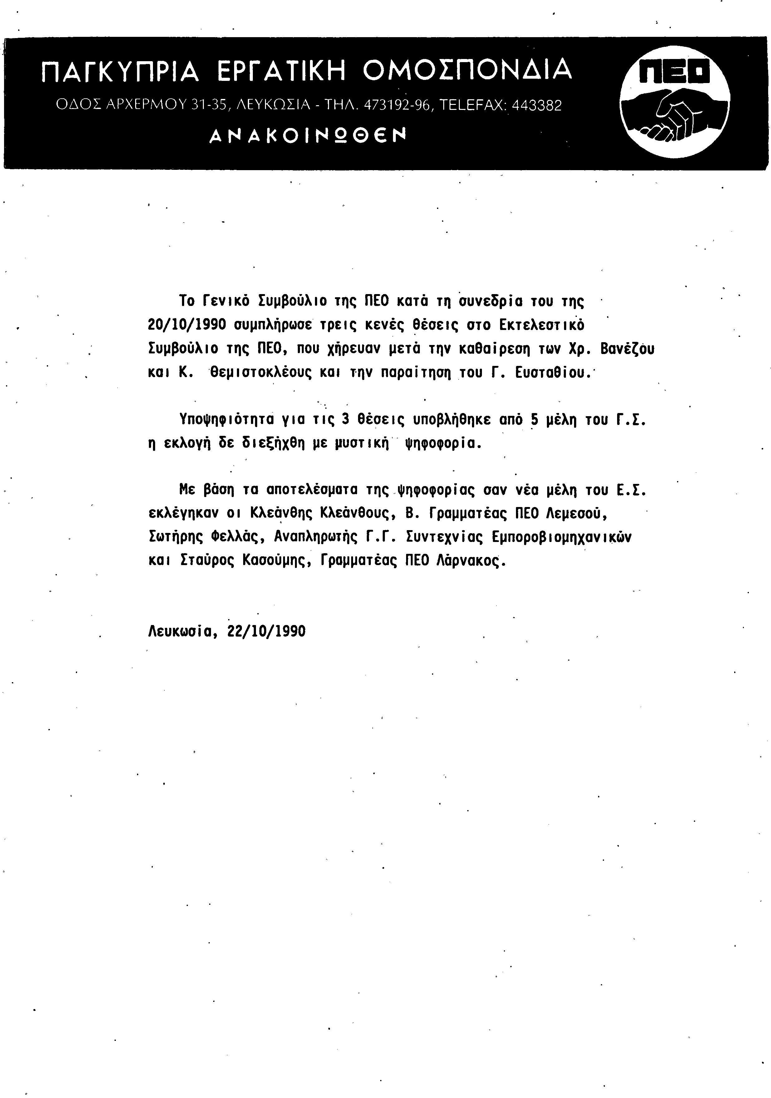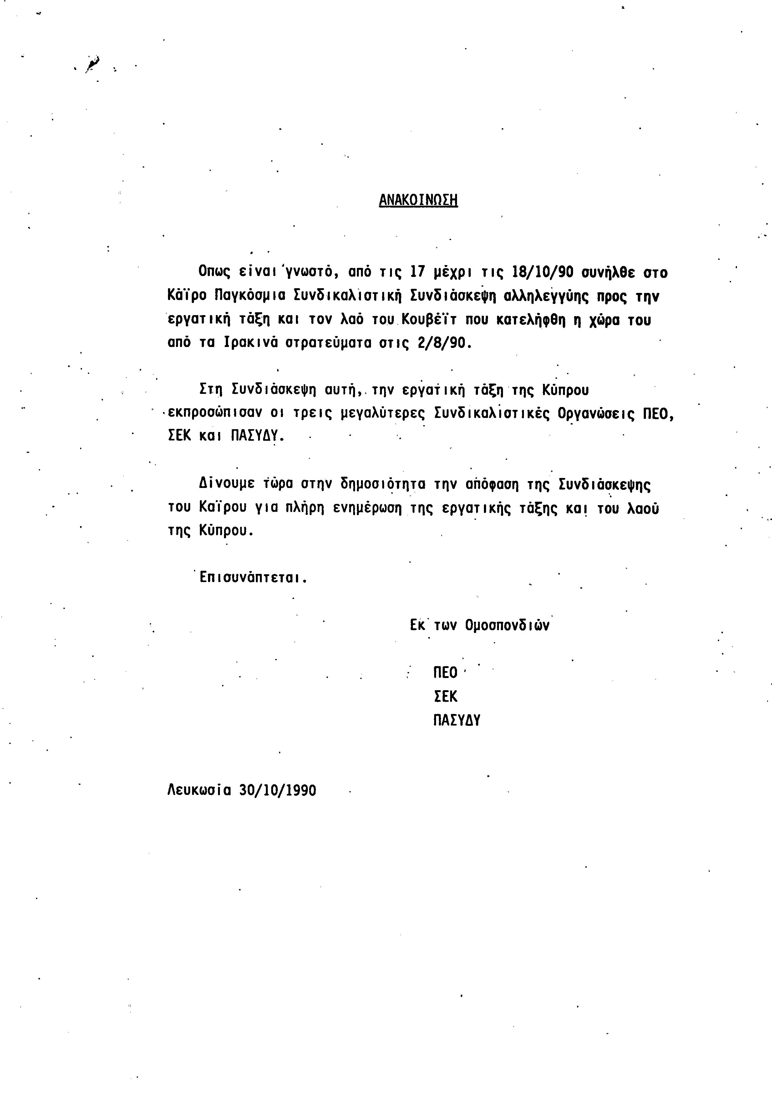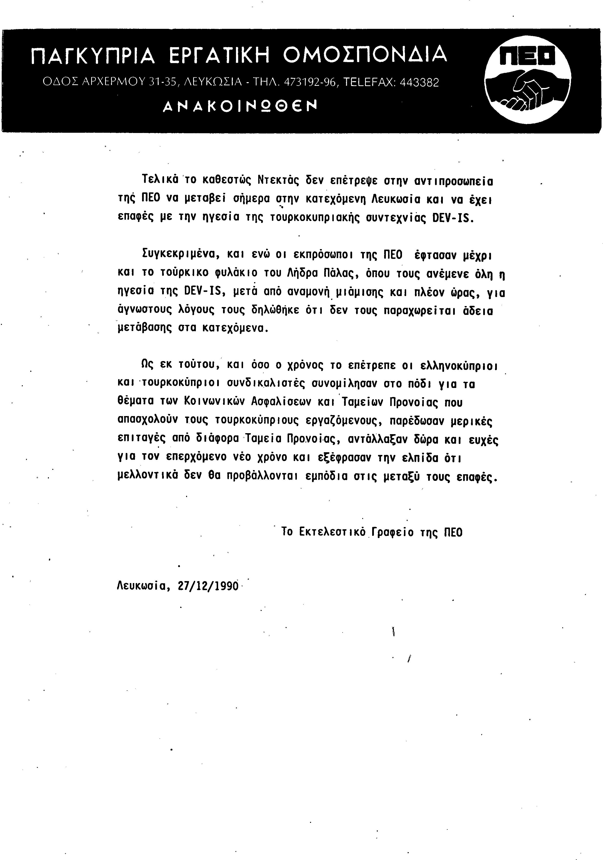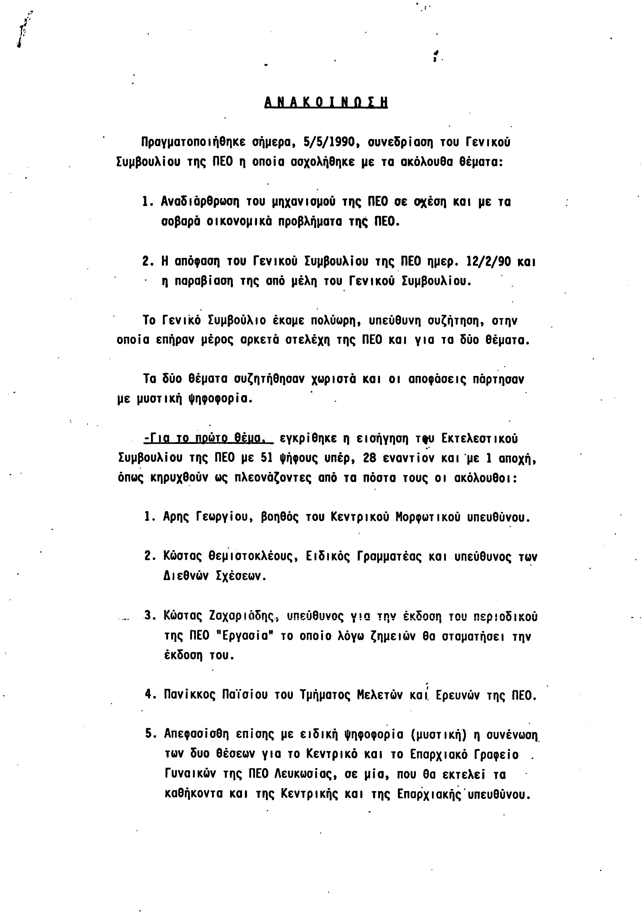 ΑΝΑΚΟΙΝΩΣΕΙΣ 1990-1991