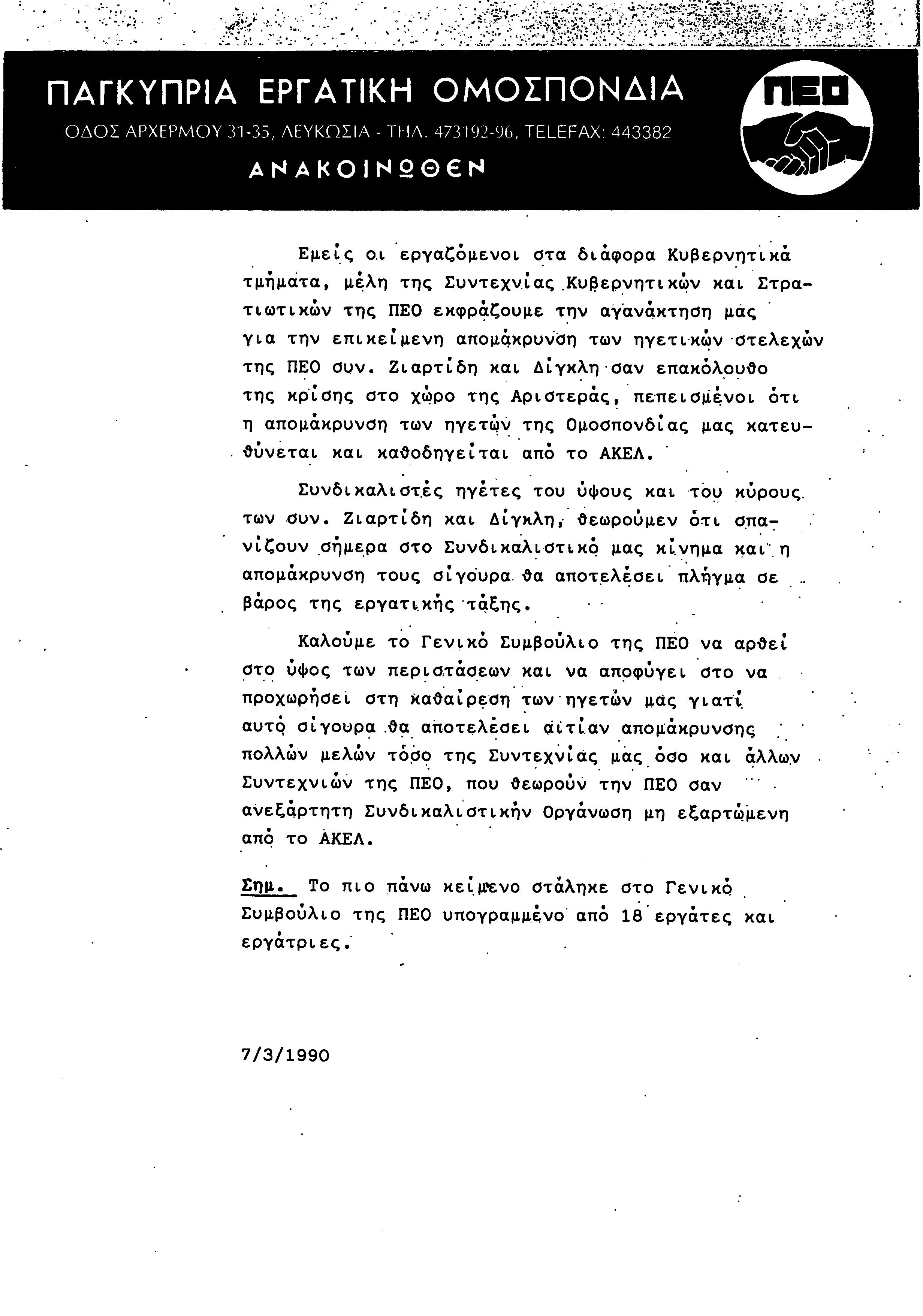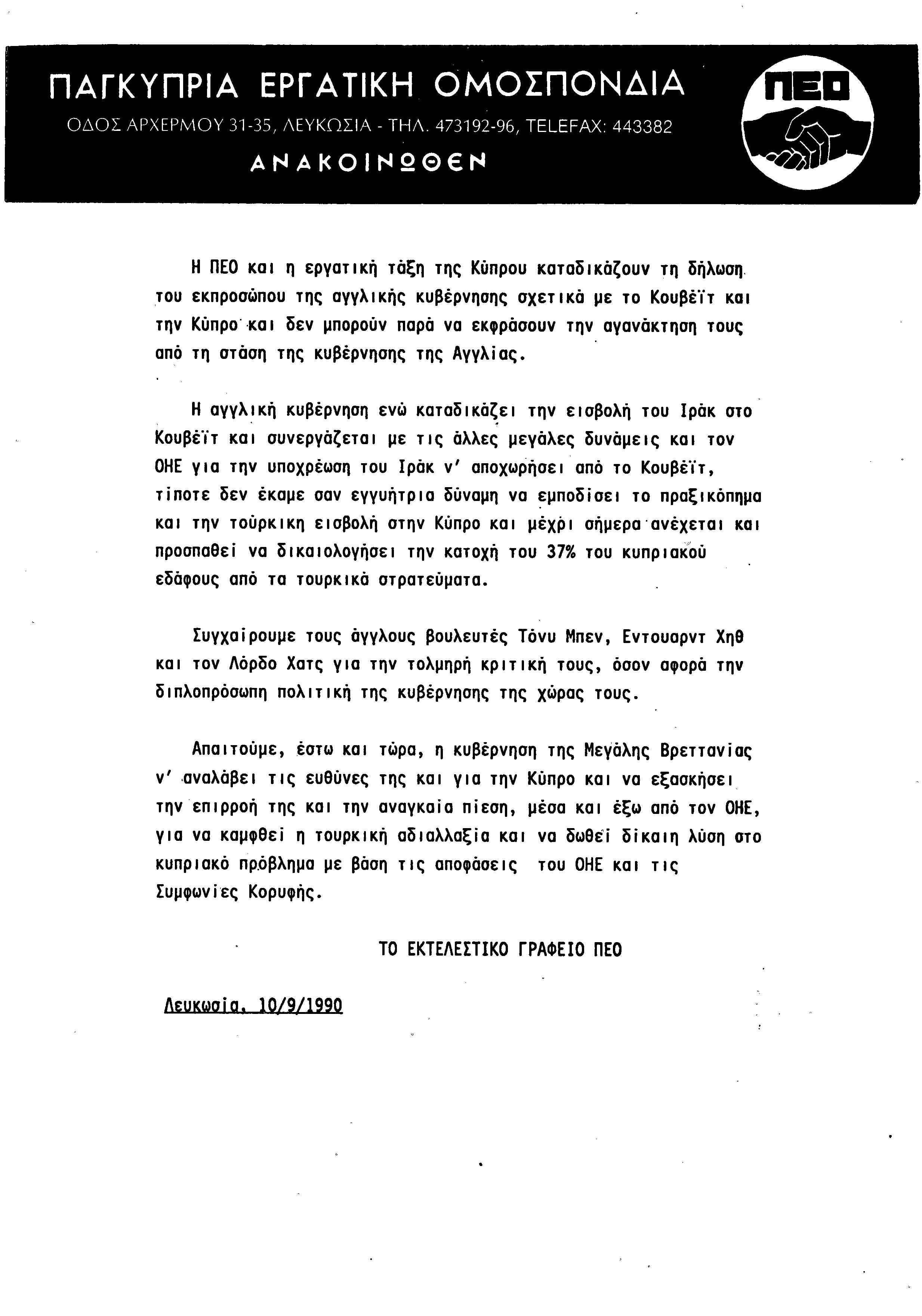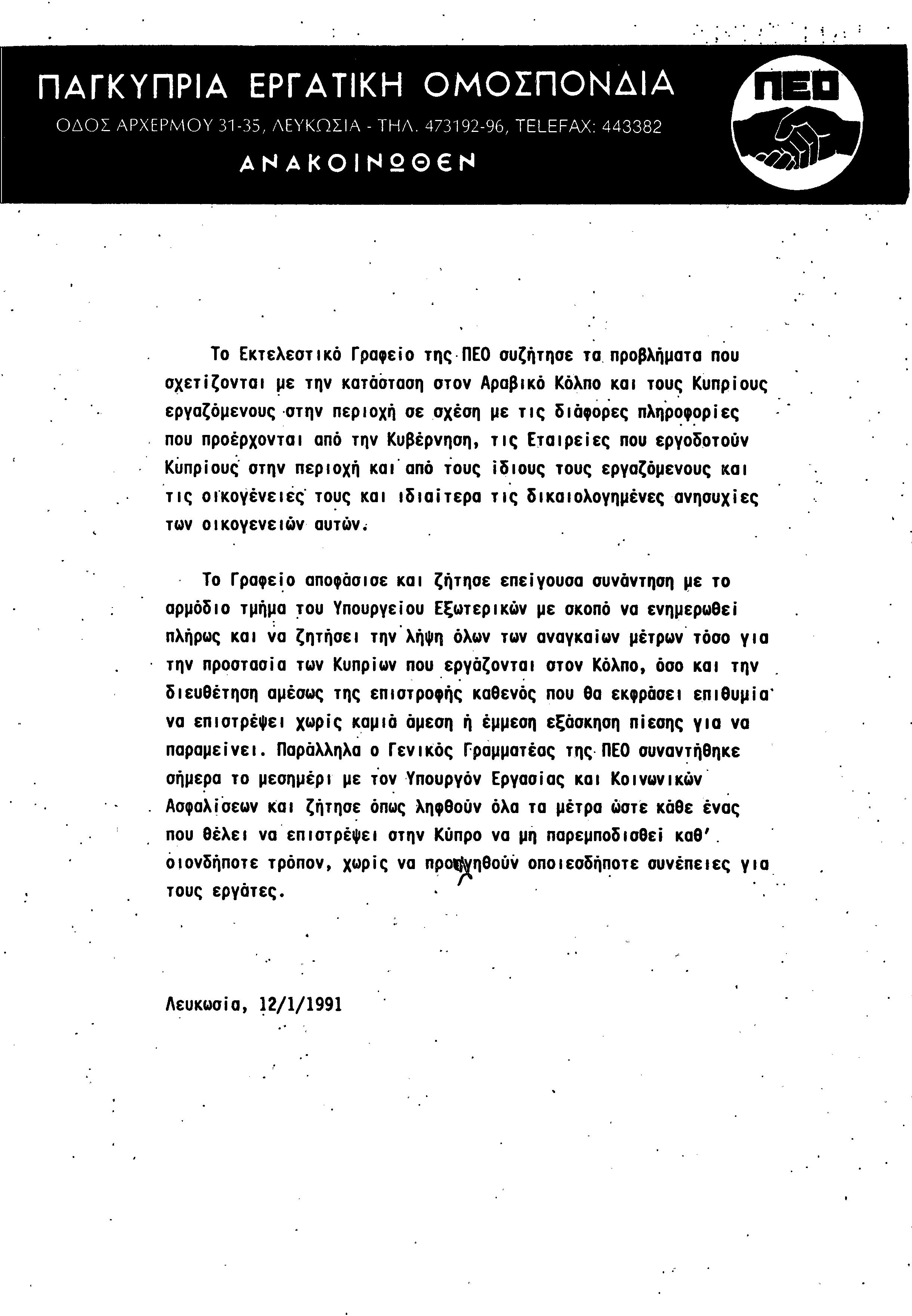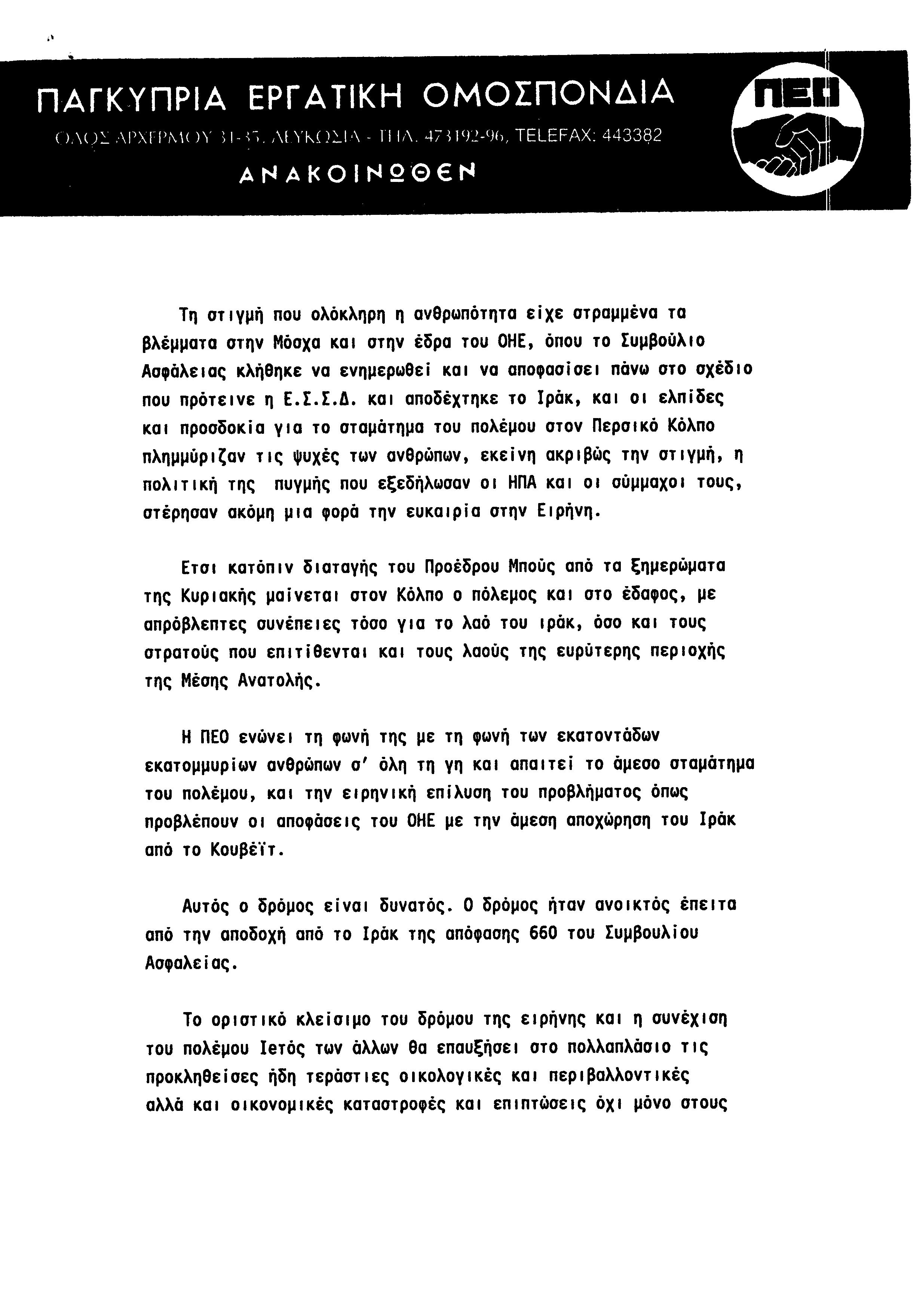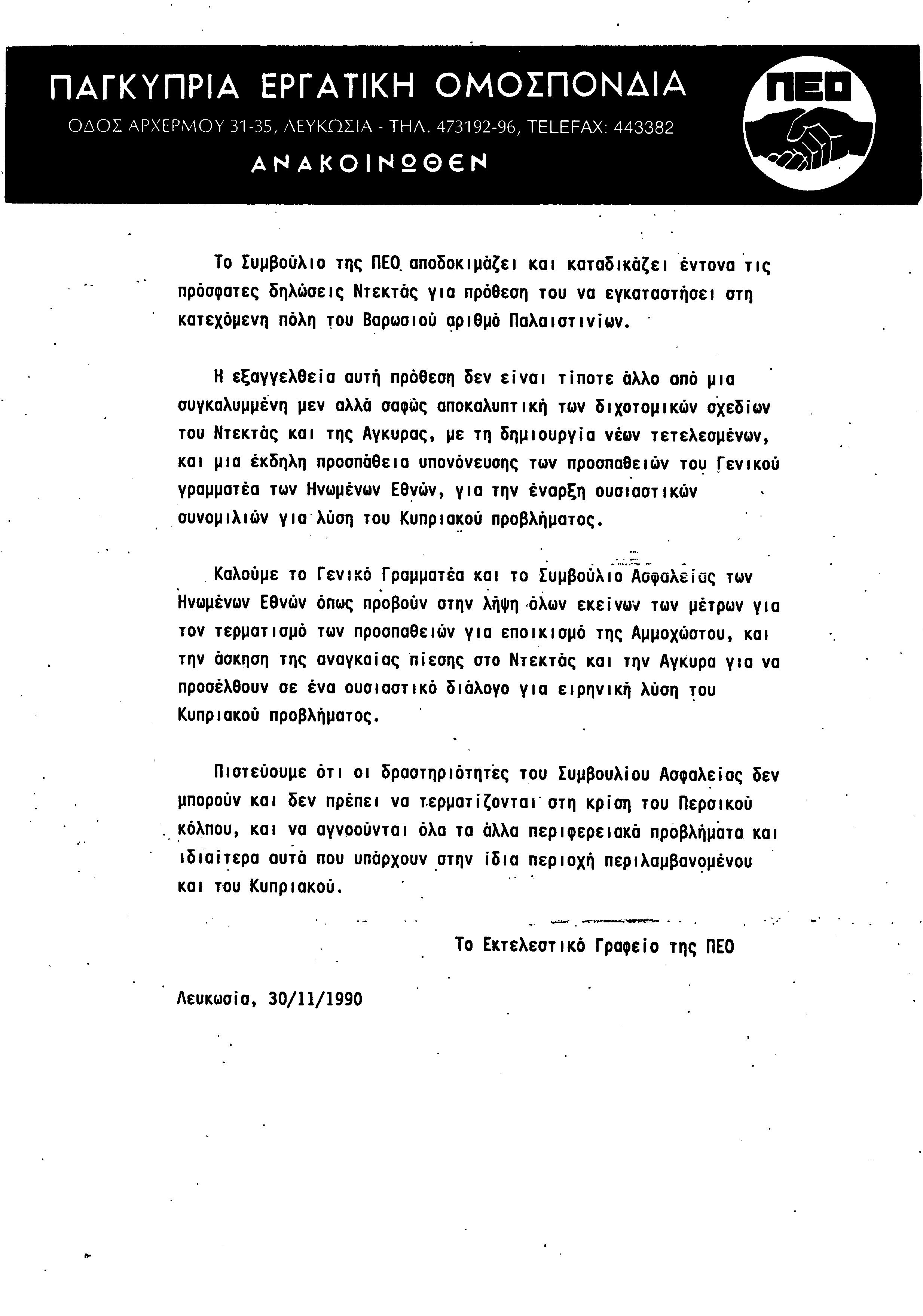 ΑΝΑΚΟΙΝΩΣΕΙΣ 1990-1991