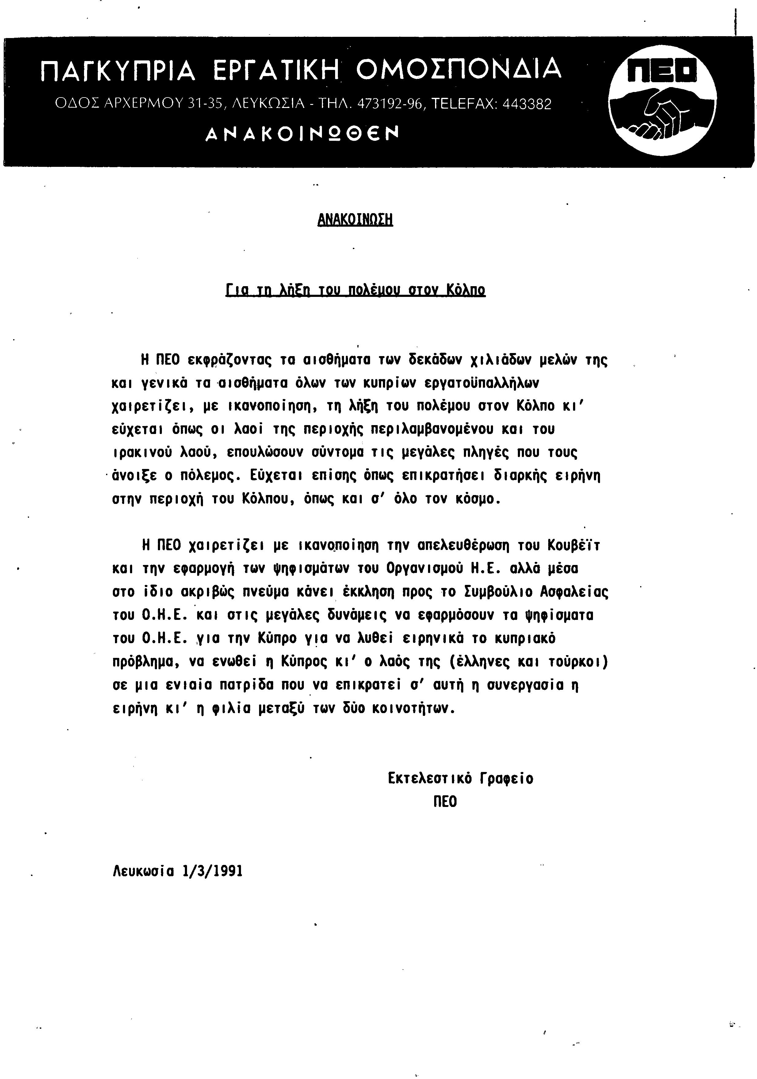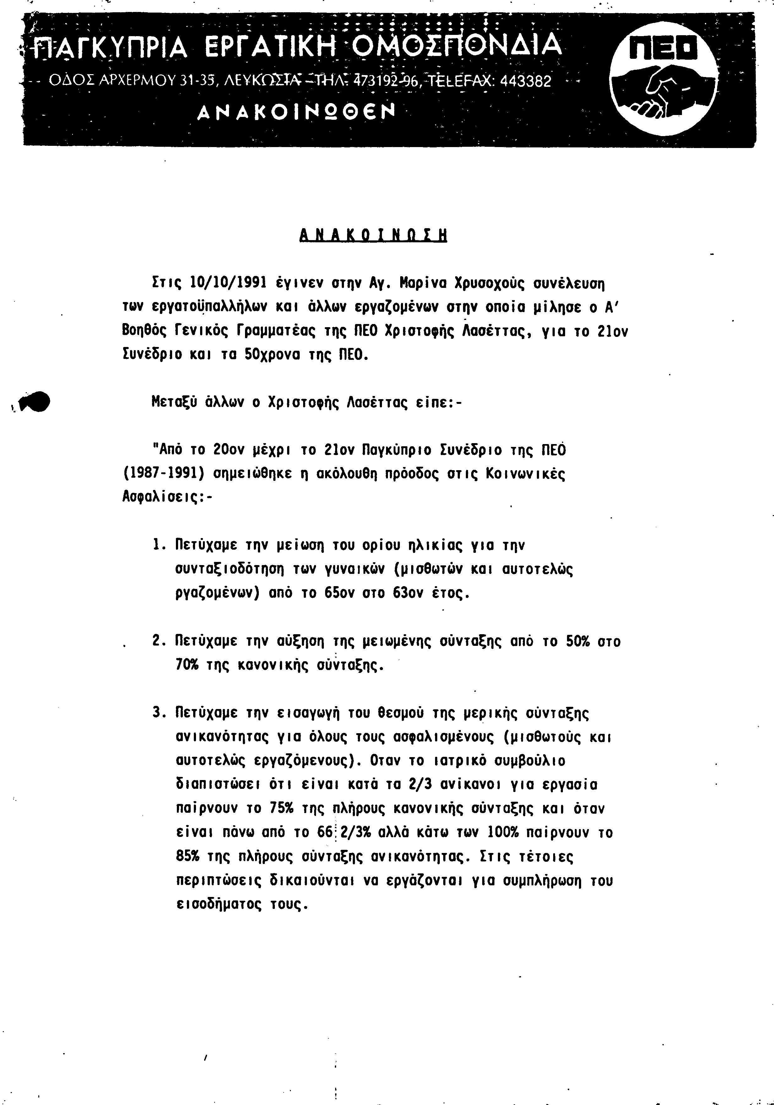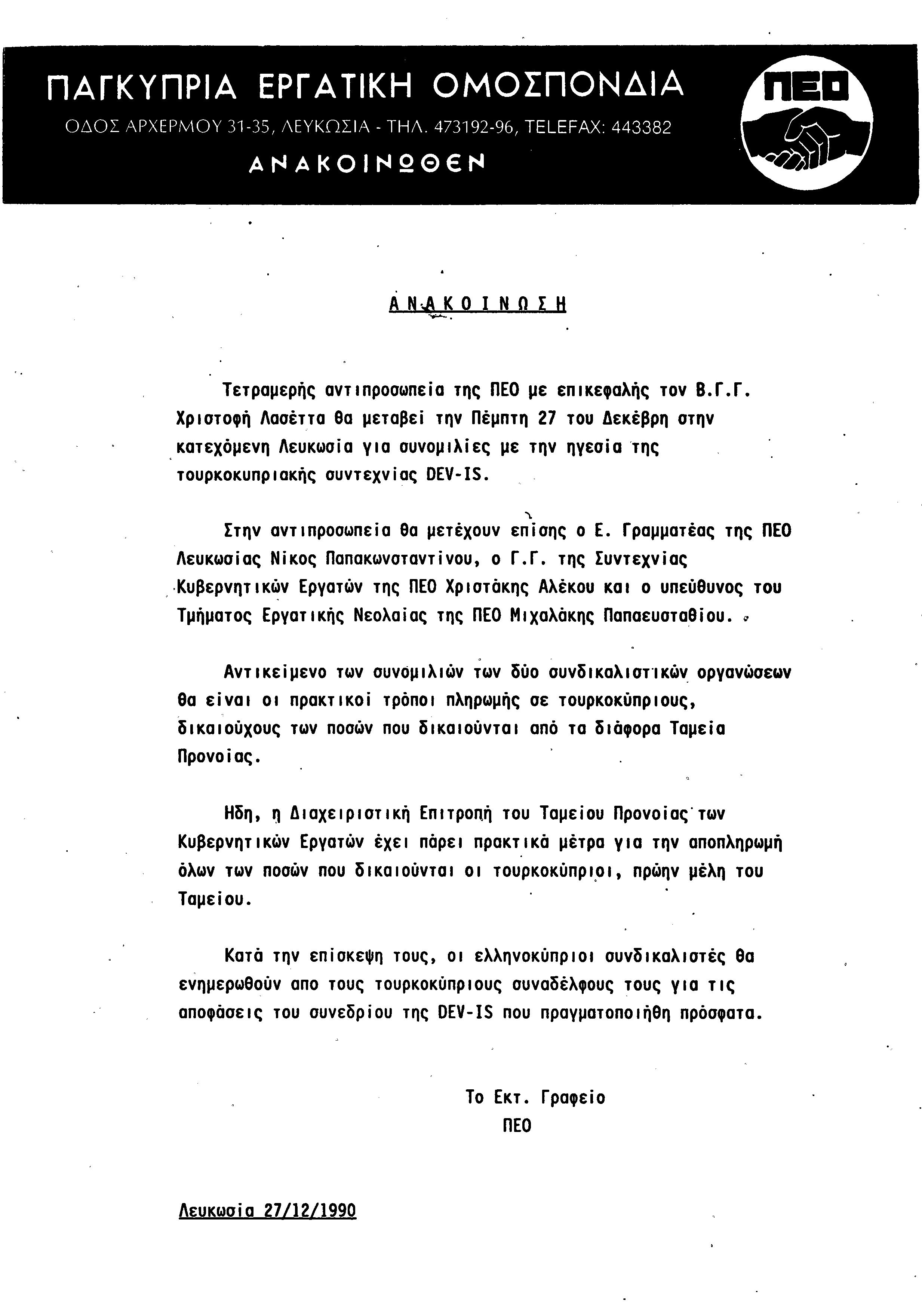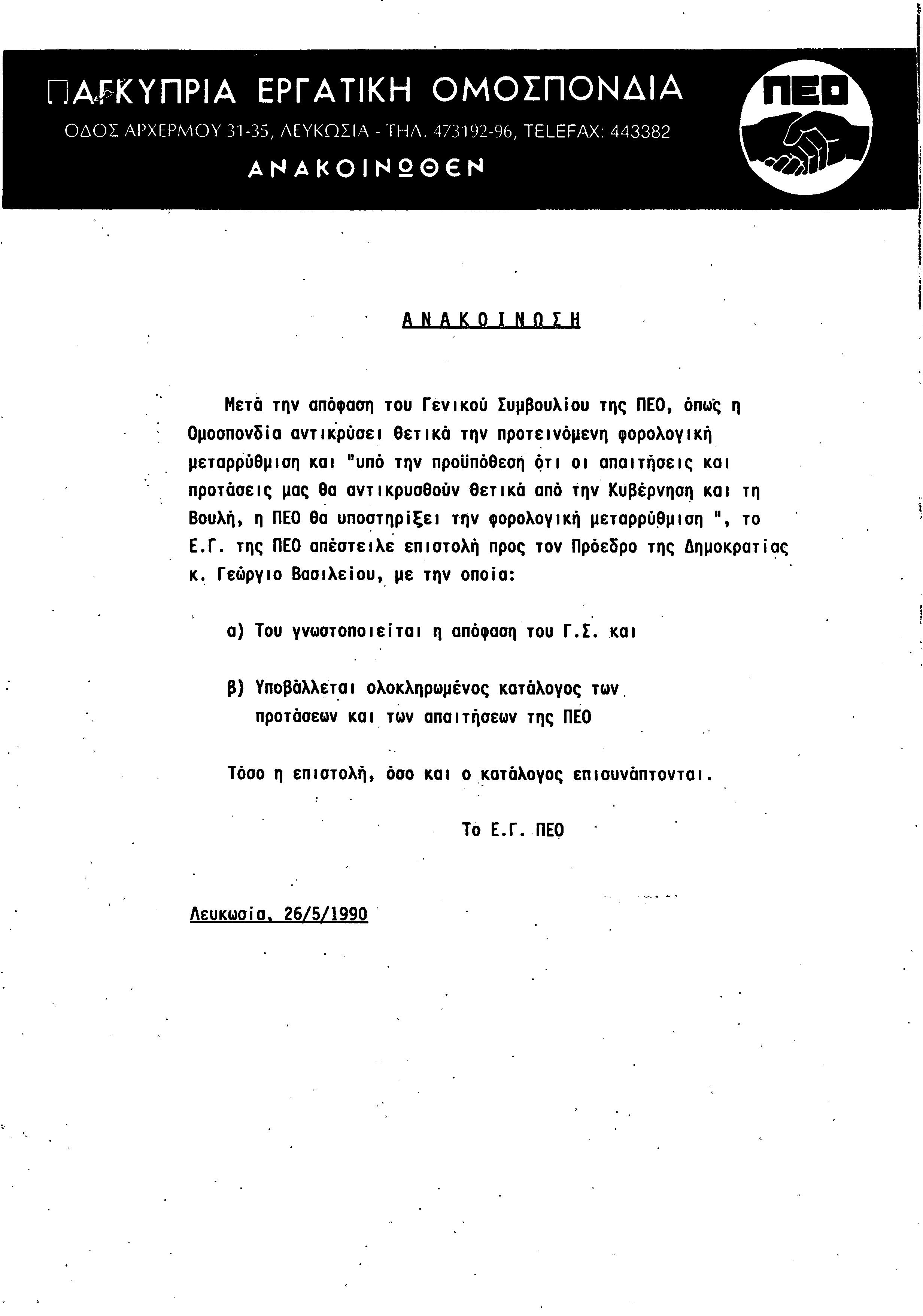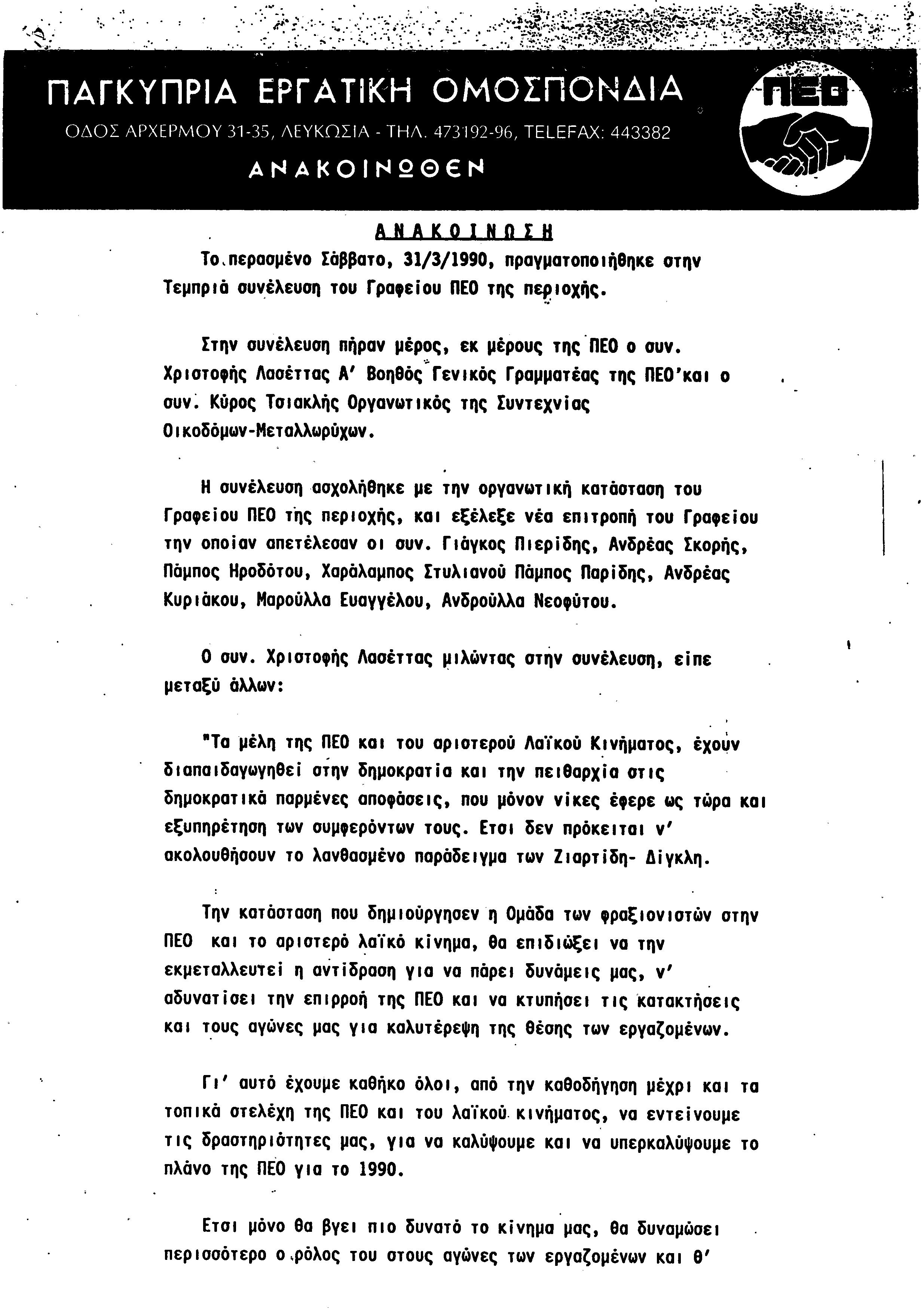 ΑΝΑΚΟΙΝΩΣΕΙΣ 1990-1991