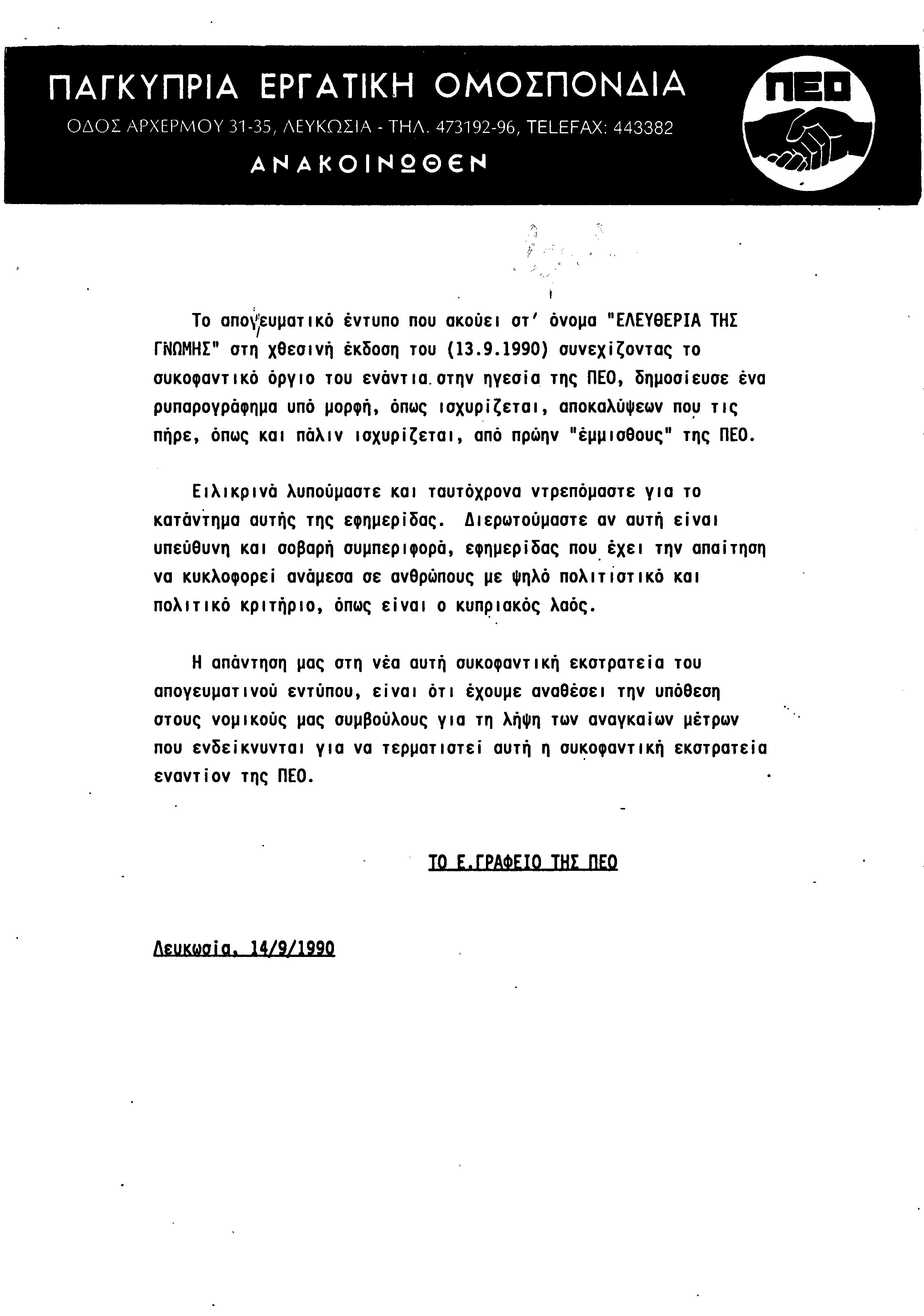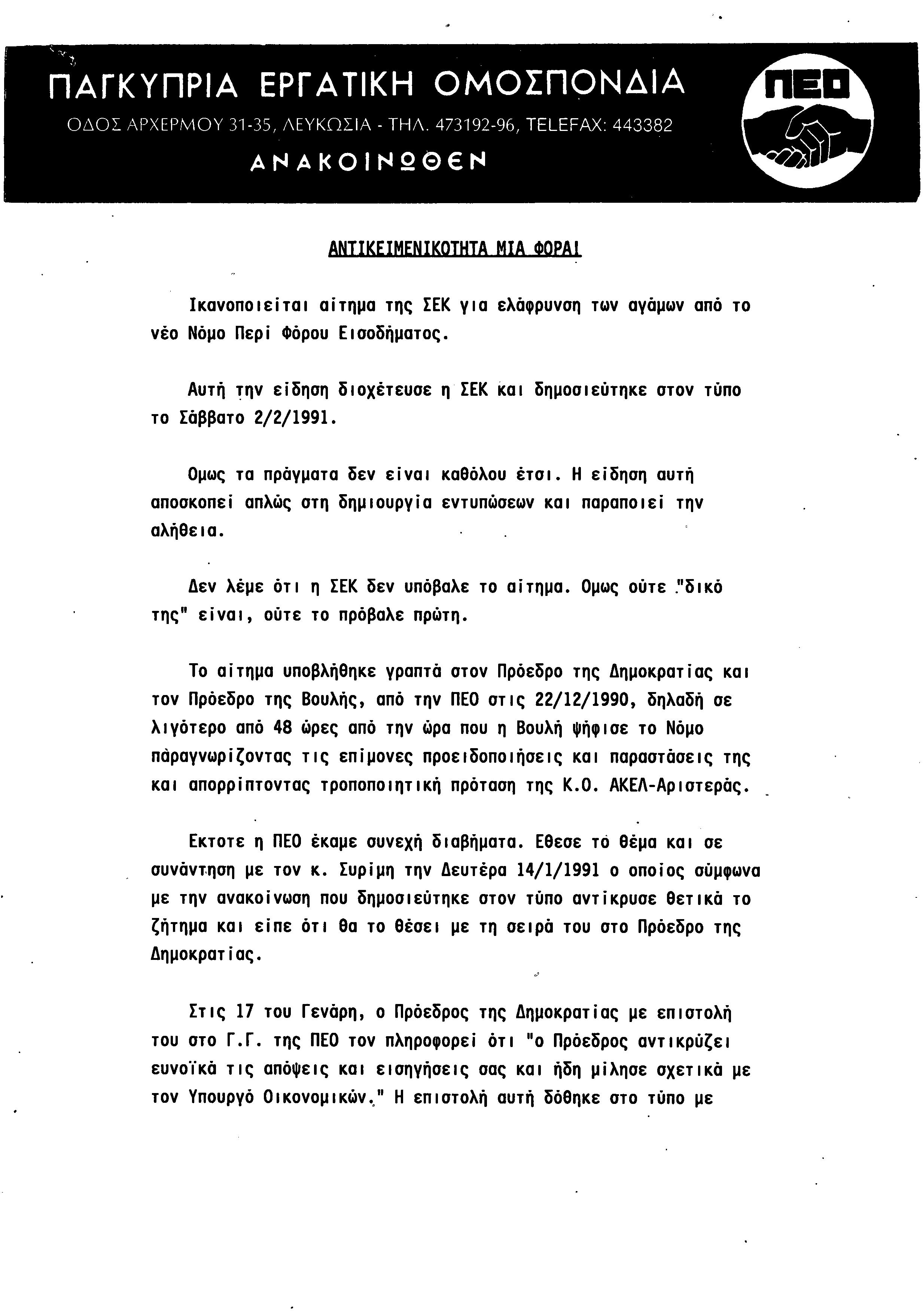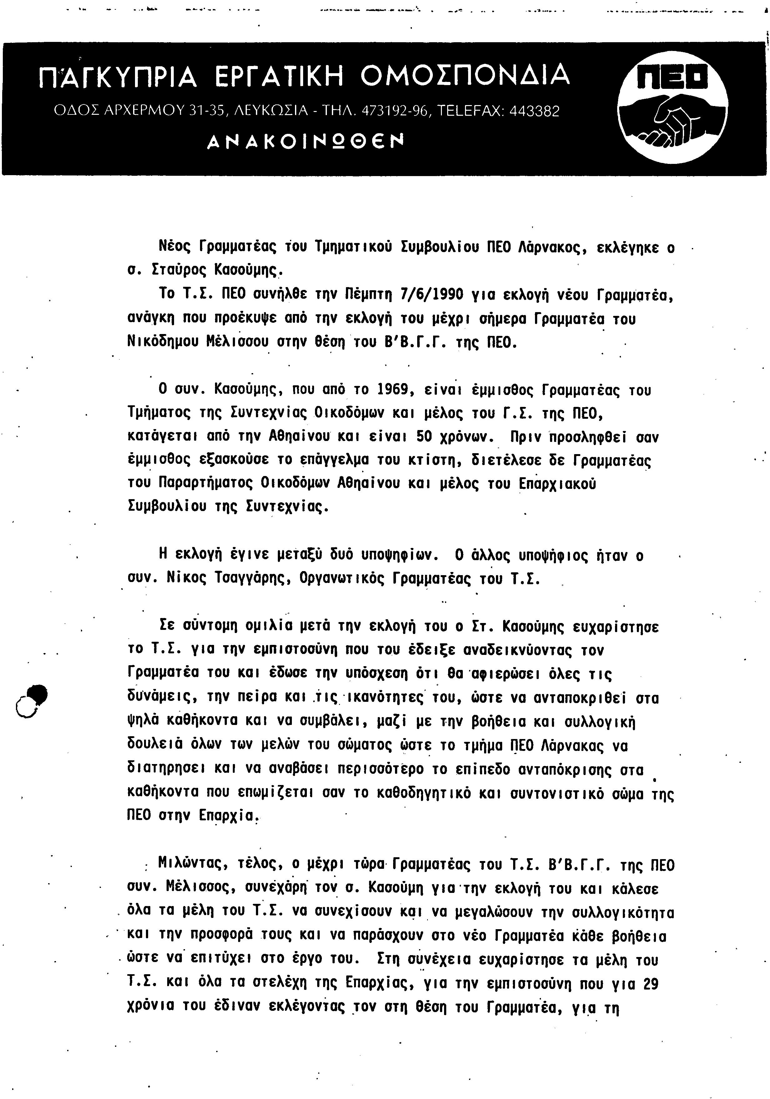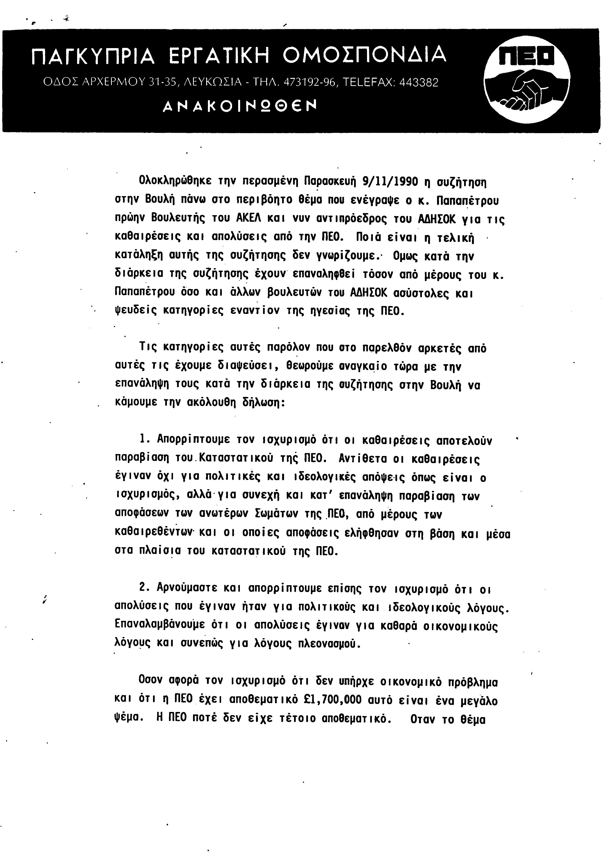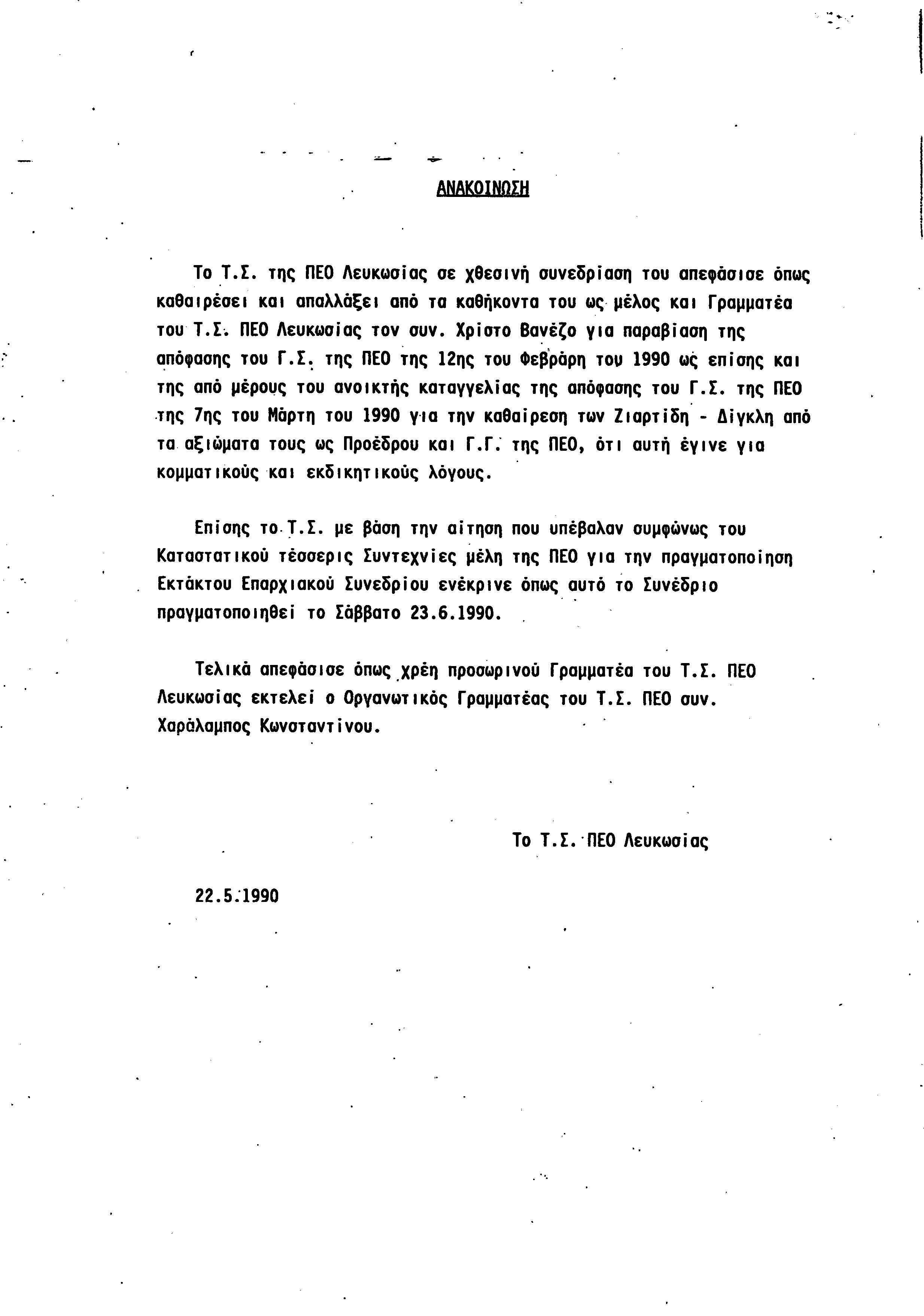 ΑΝΑΚΟΙΝΩΣΕΙΣ 1990-1991