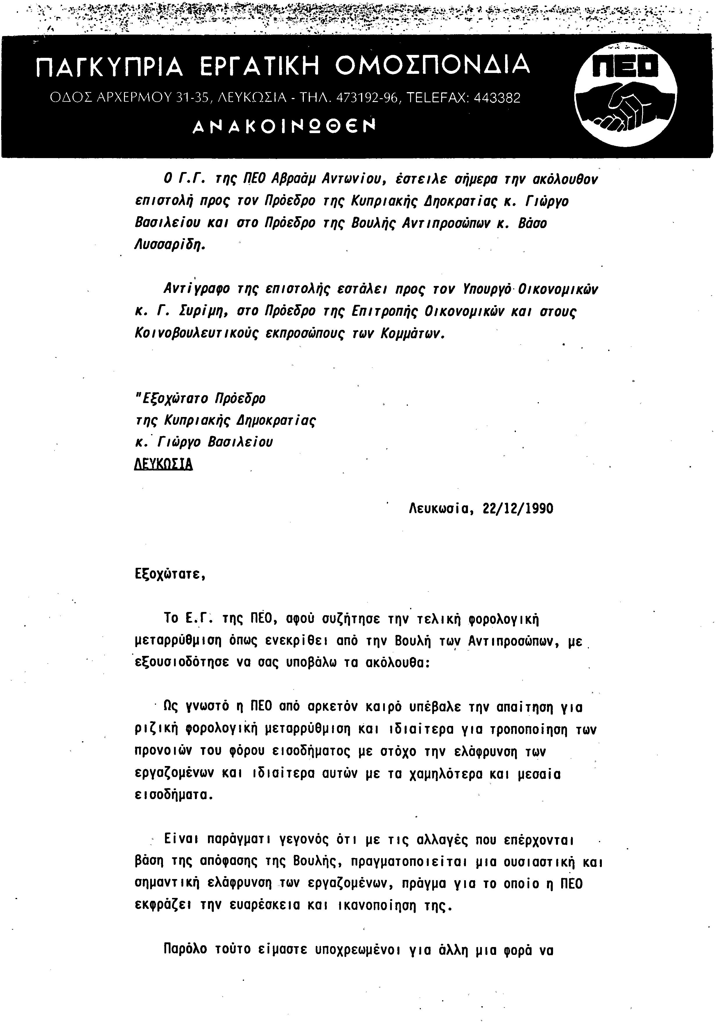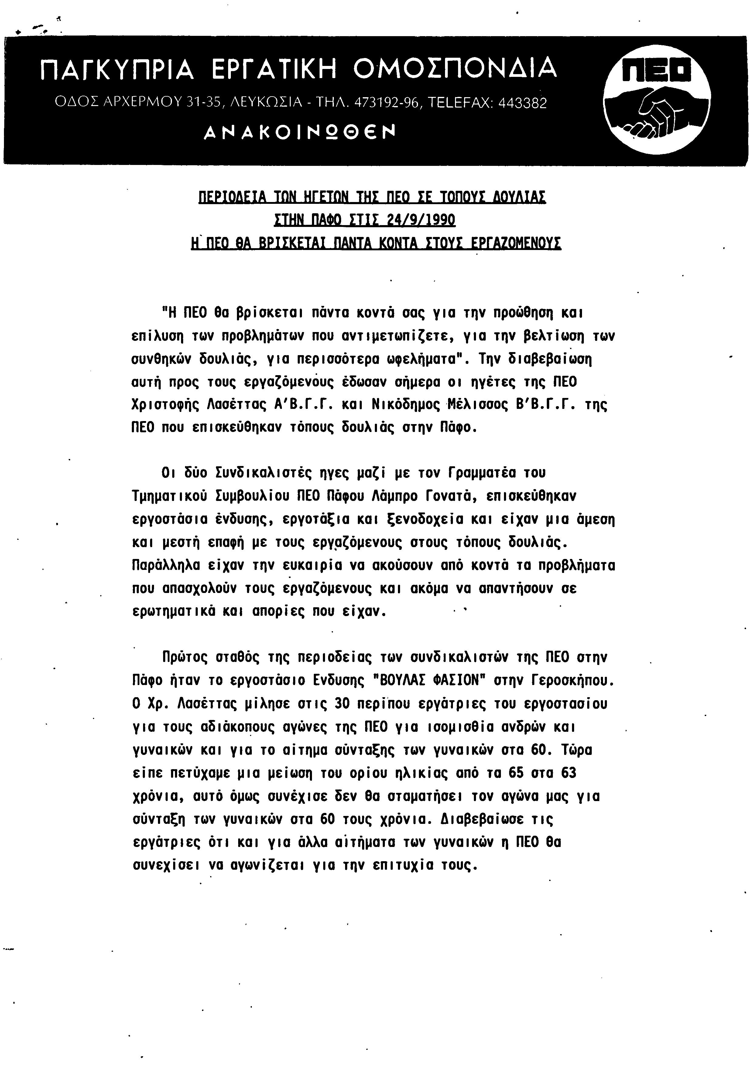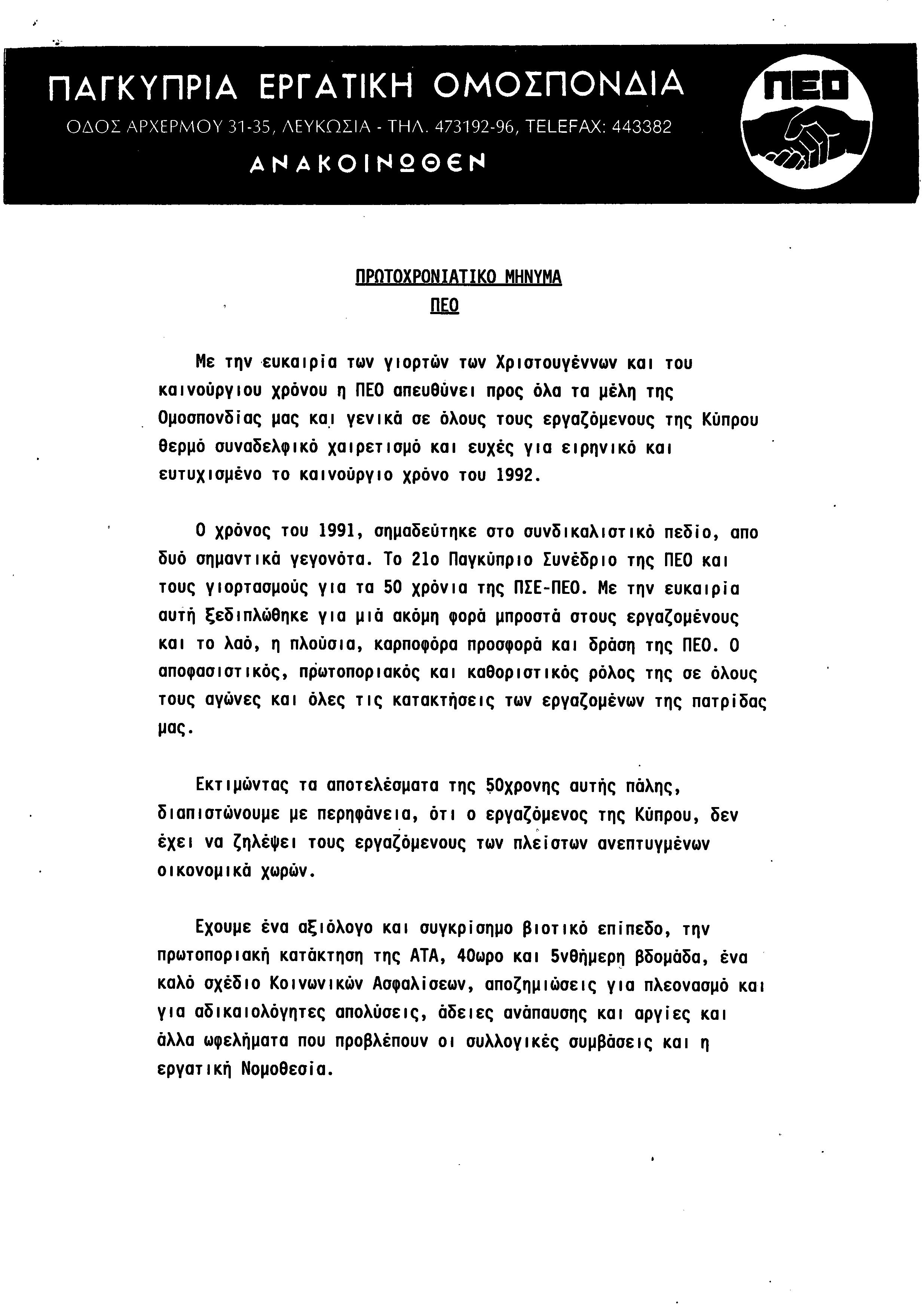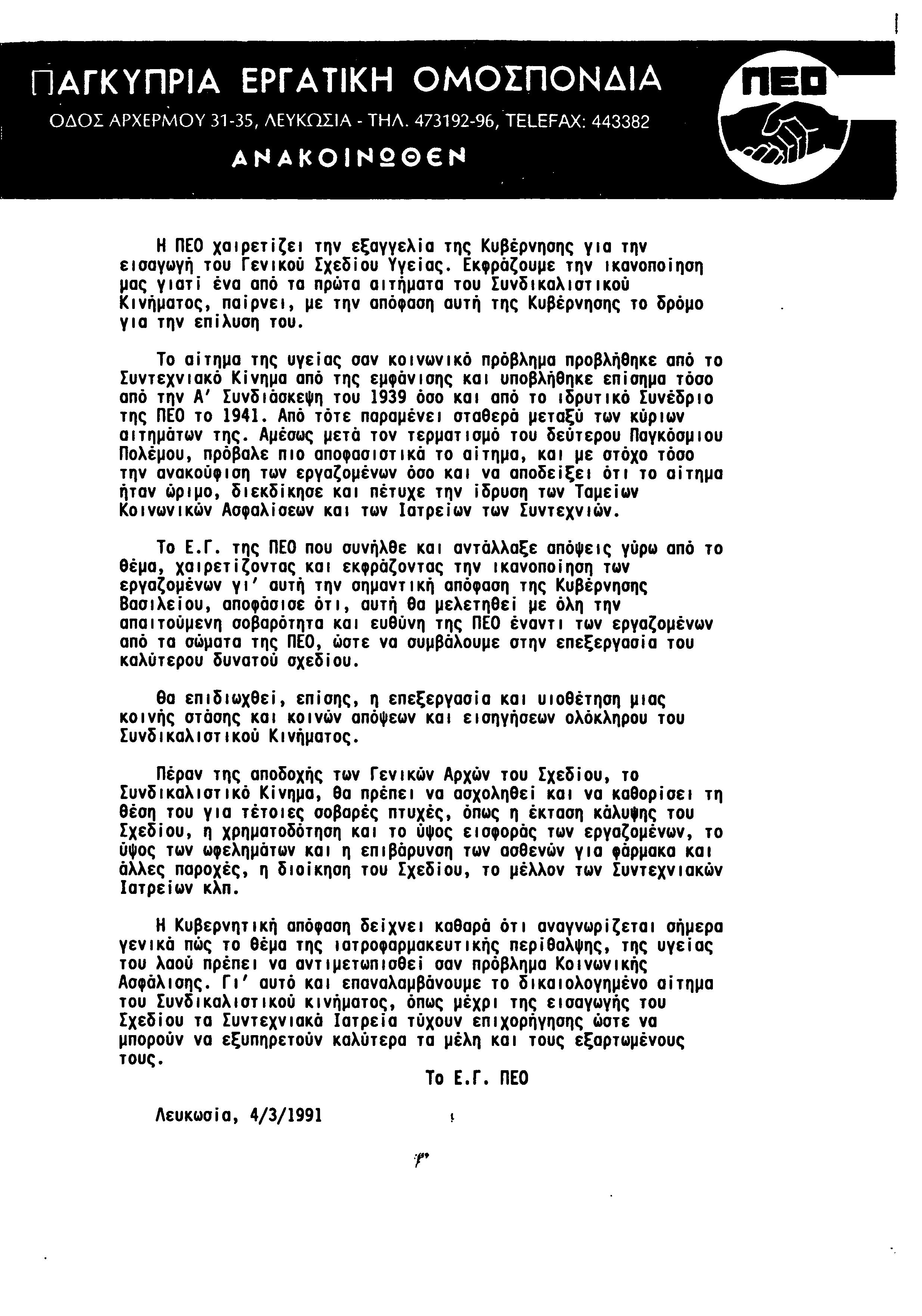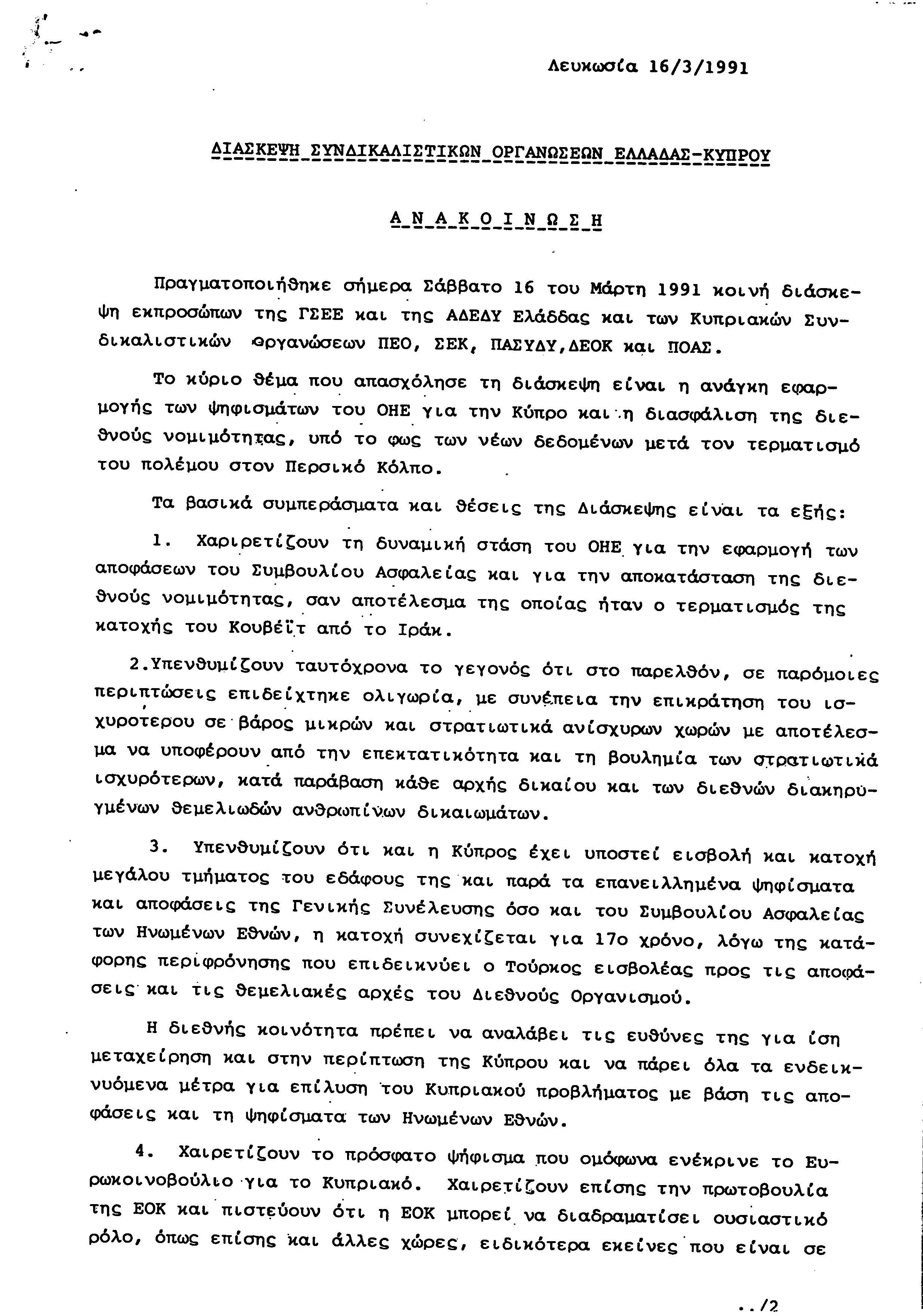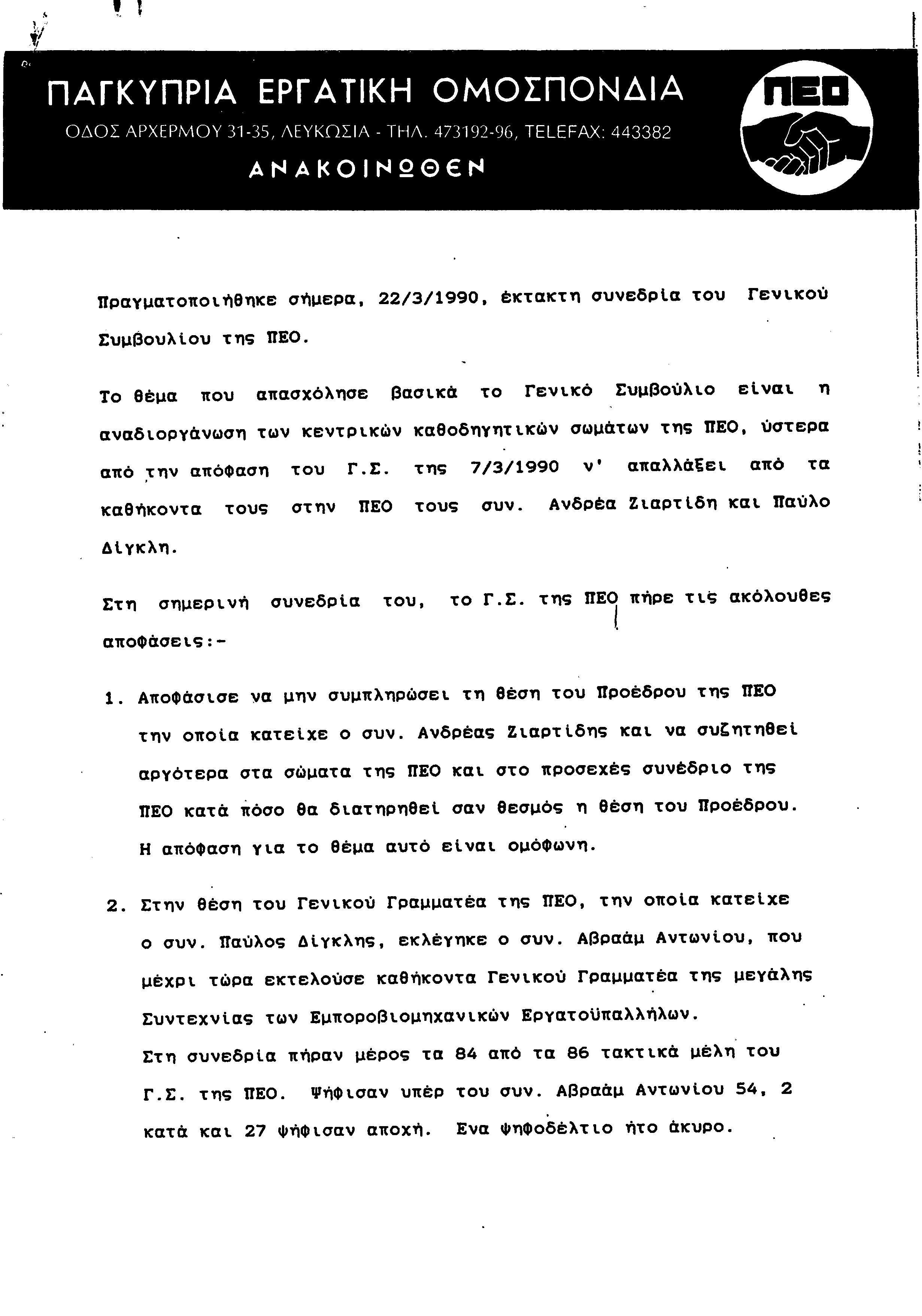 ΑΝΑΚΟΙΝΩΣΕΙΣ 1990-1991