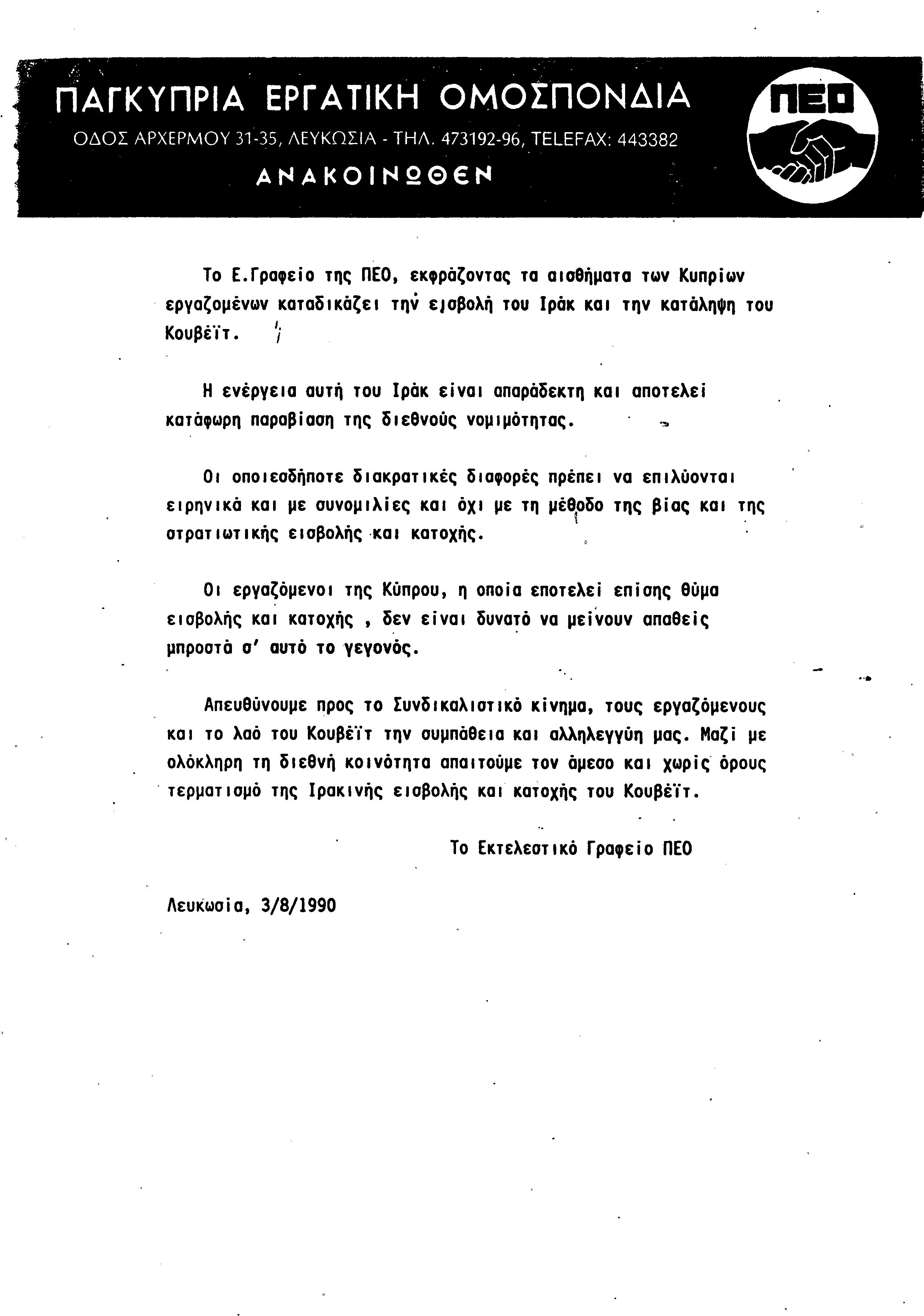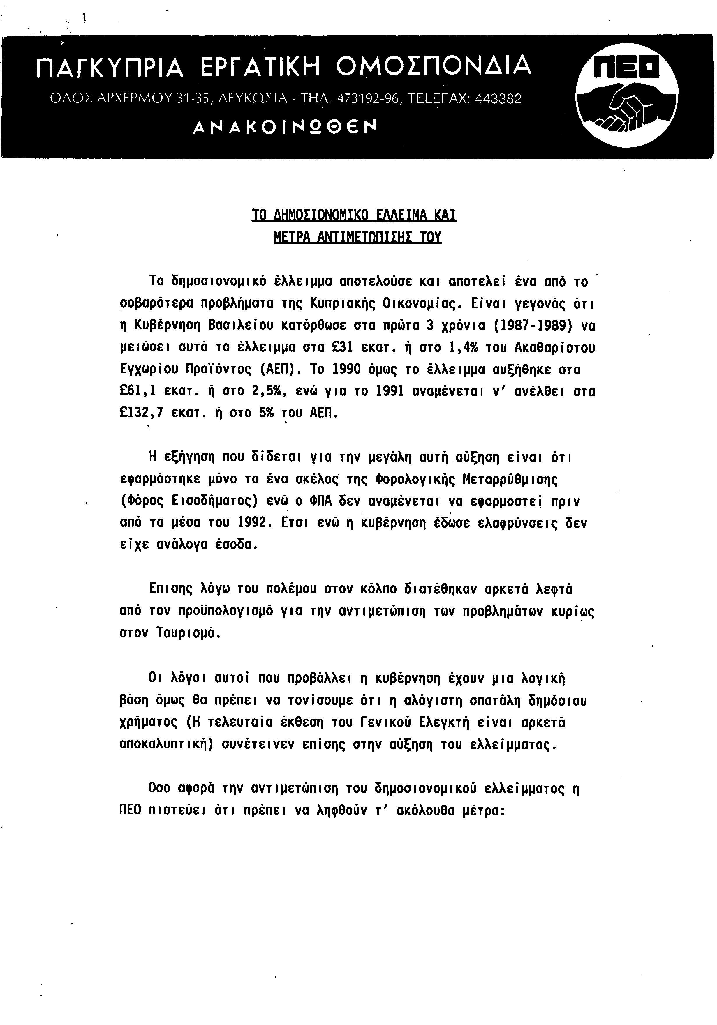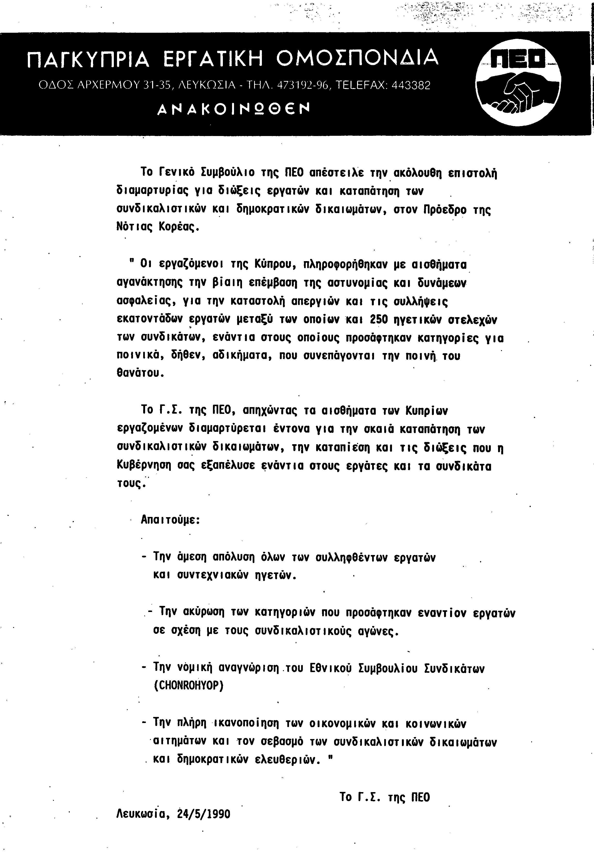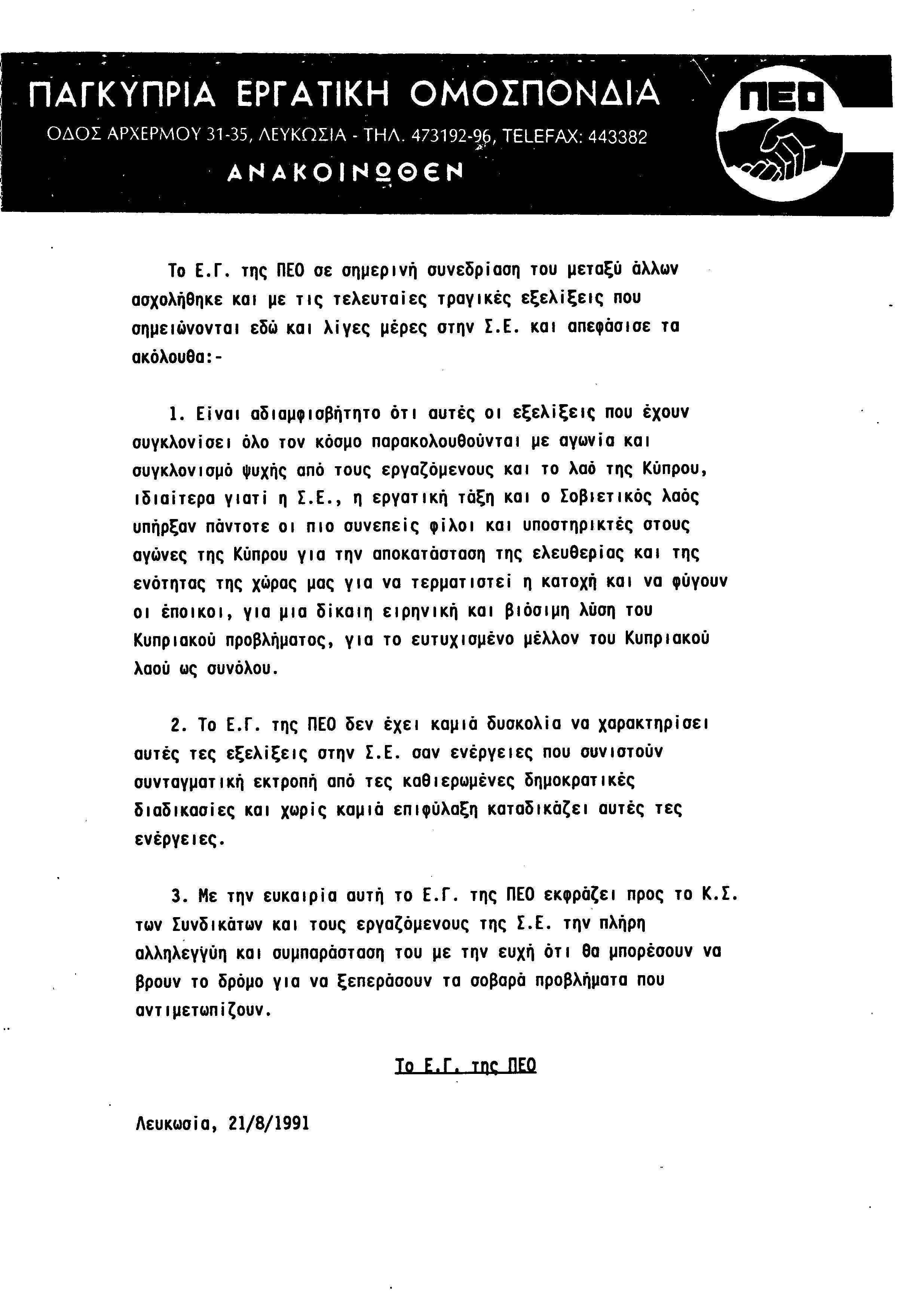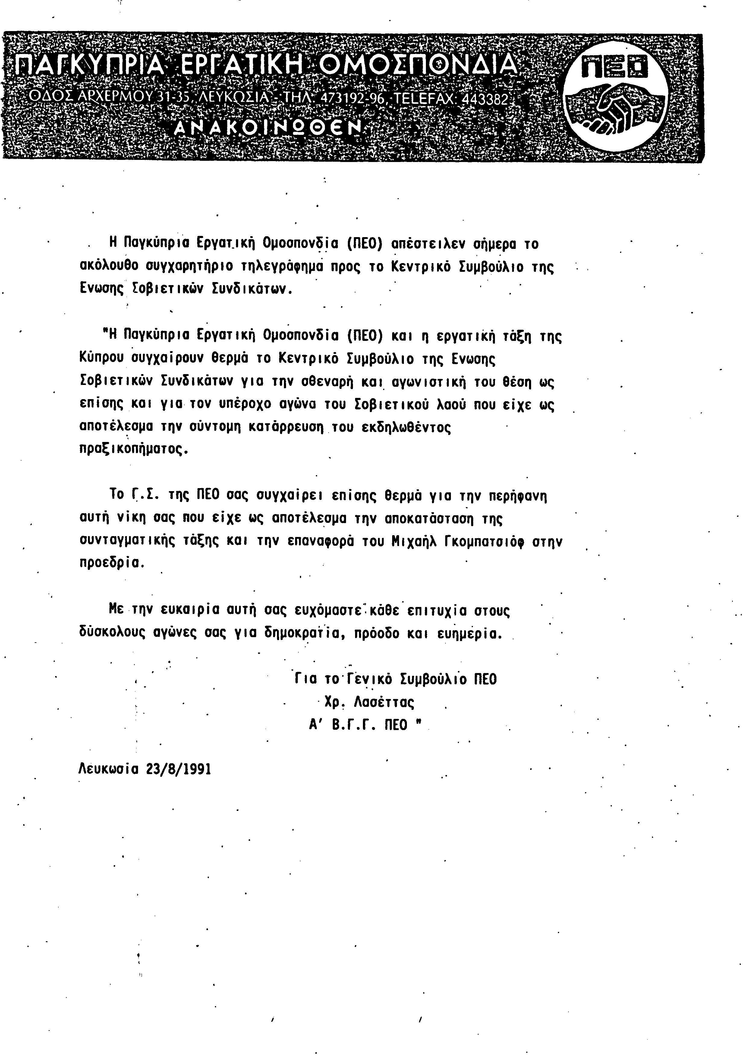 ΑΝΑΚΟΙΝΩΣΕΙΣ 1990-1991