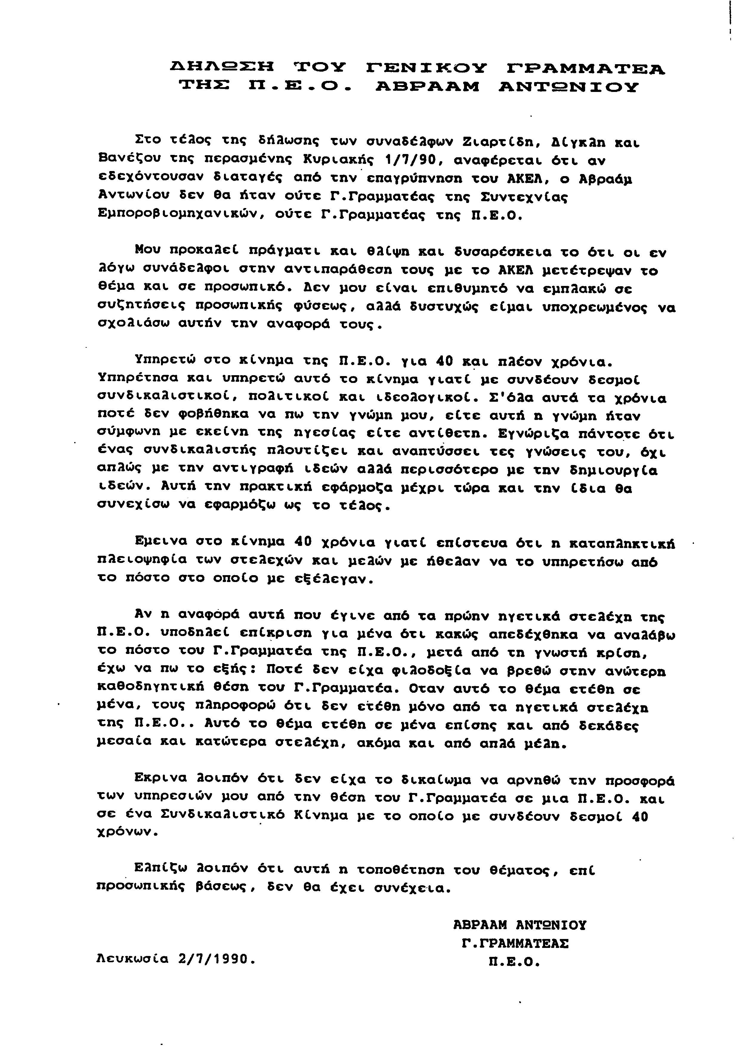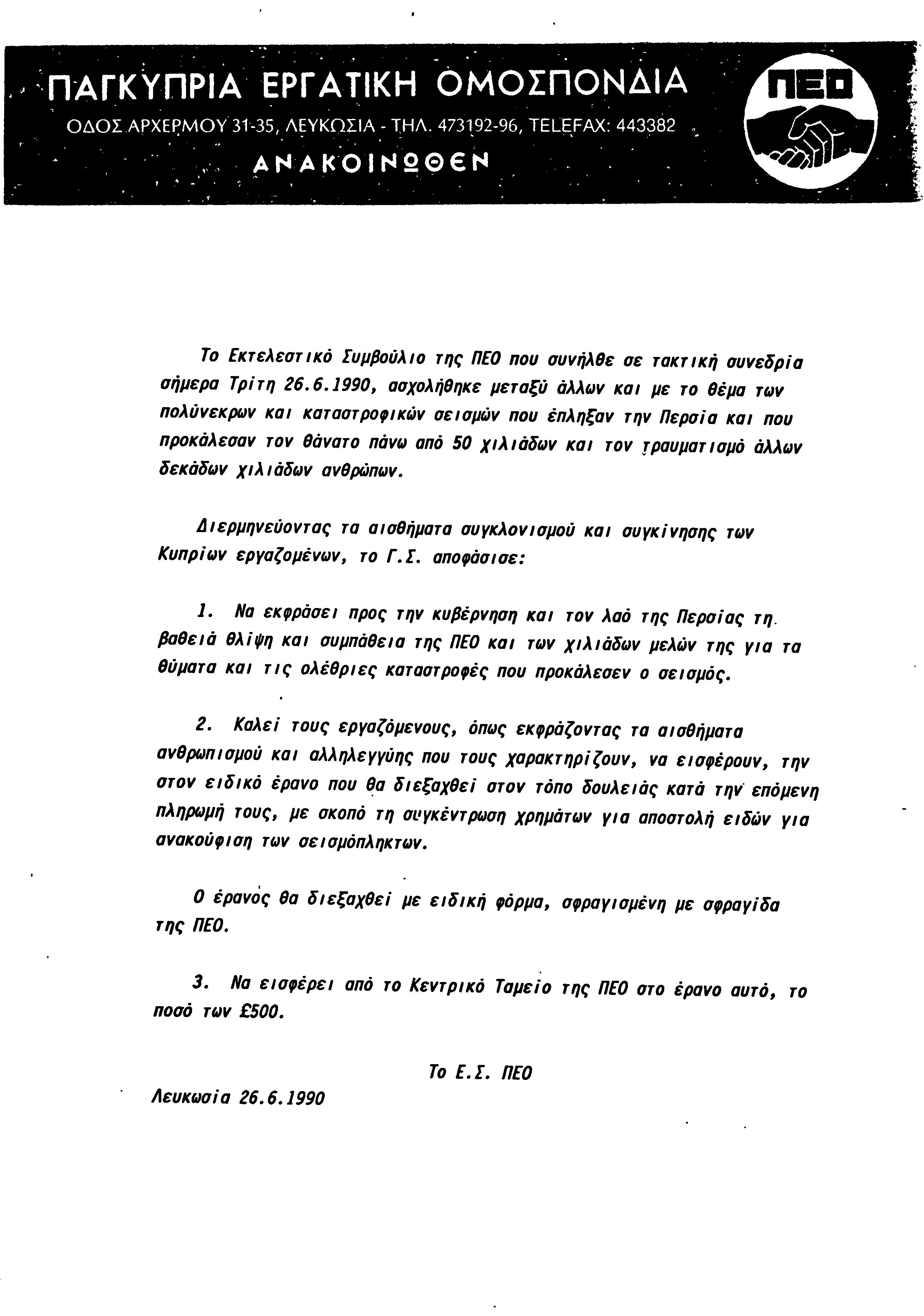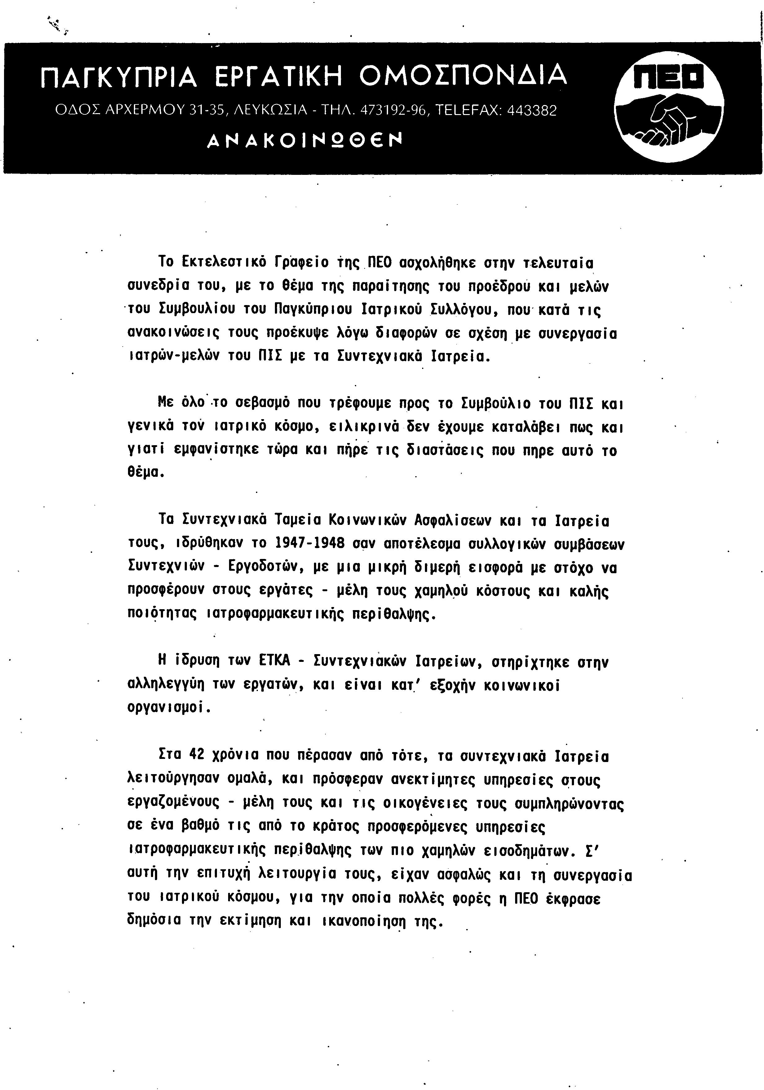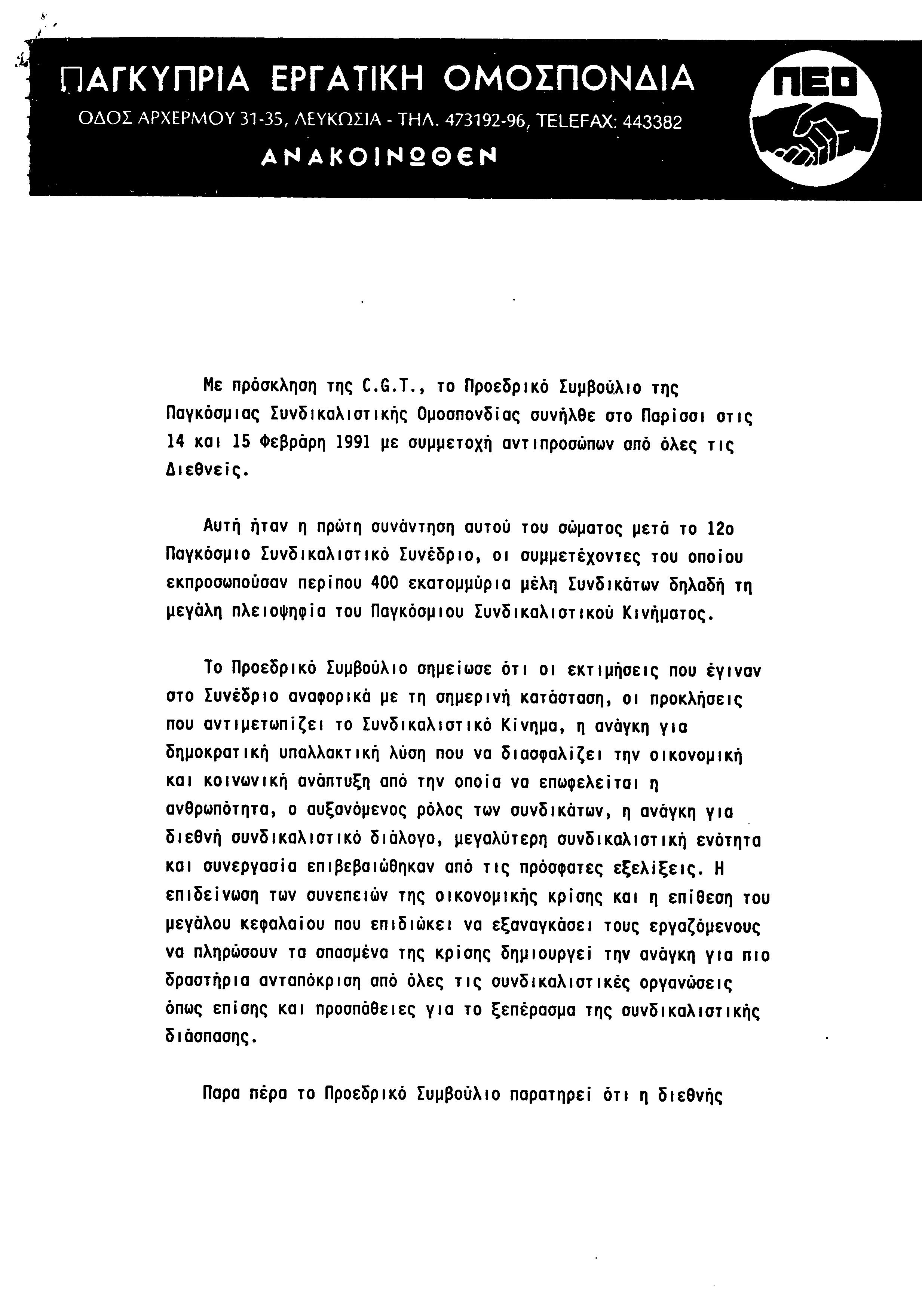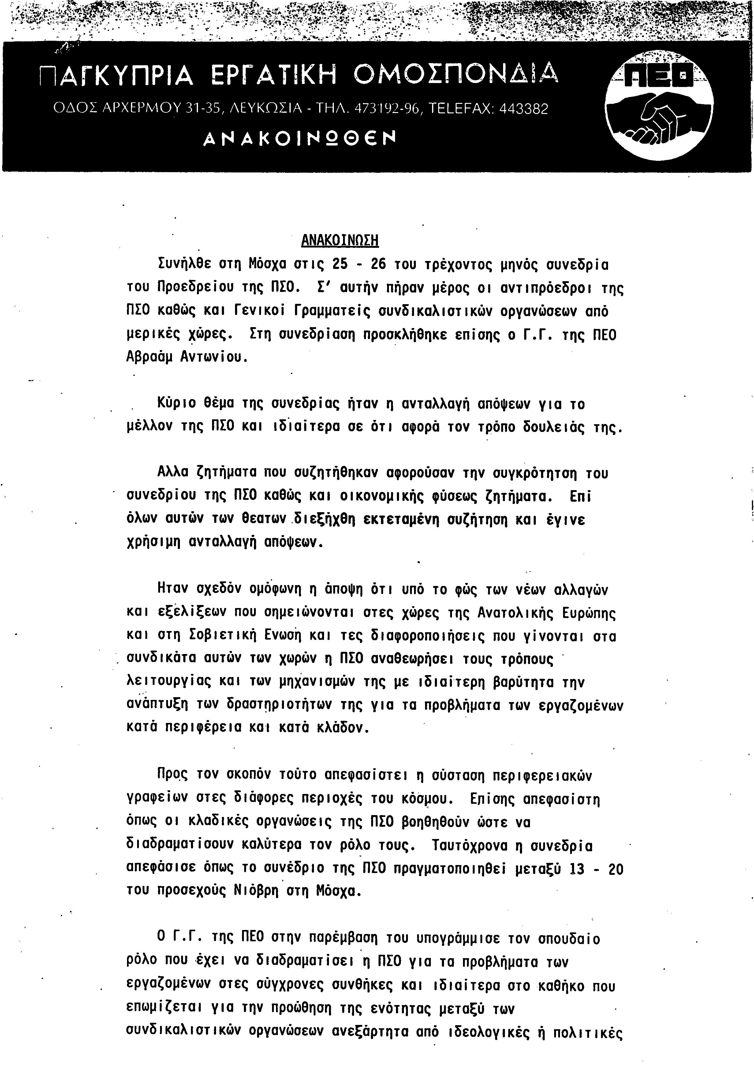 ΑΝΑΚΟΙΝΩΣΕΙΣ 1990-1991