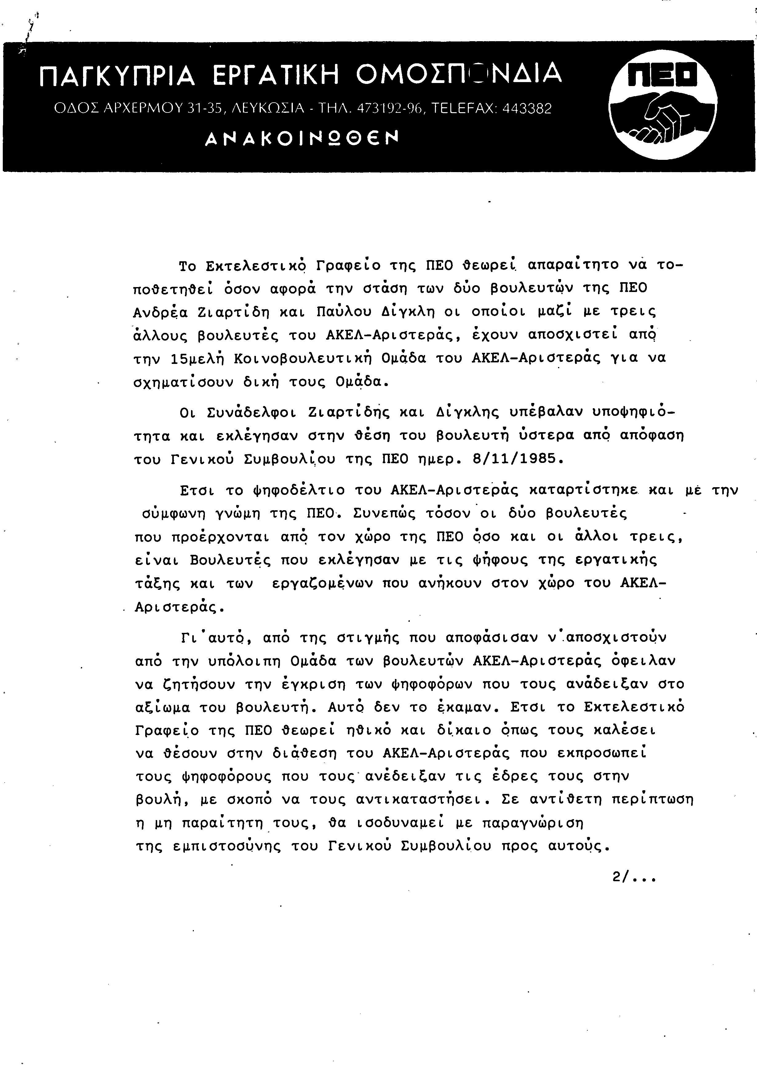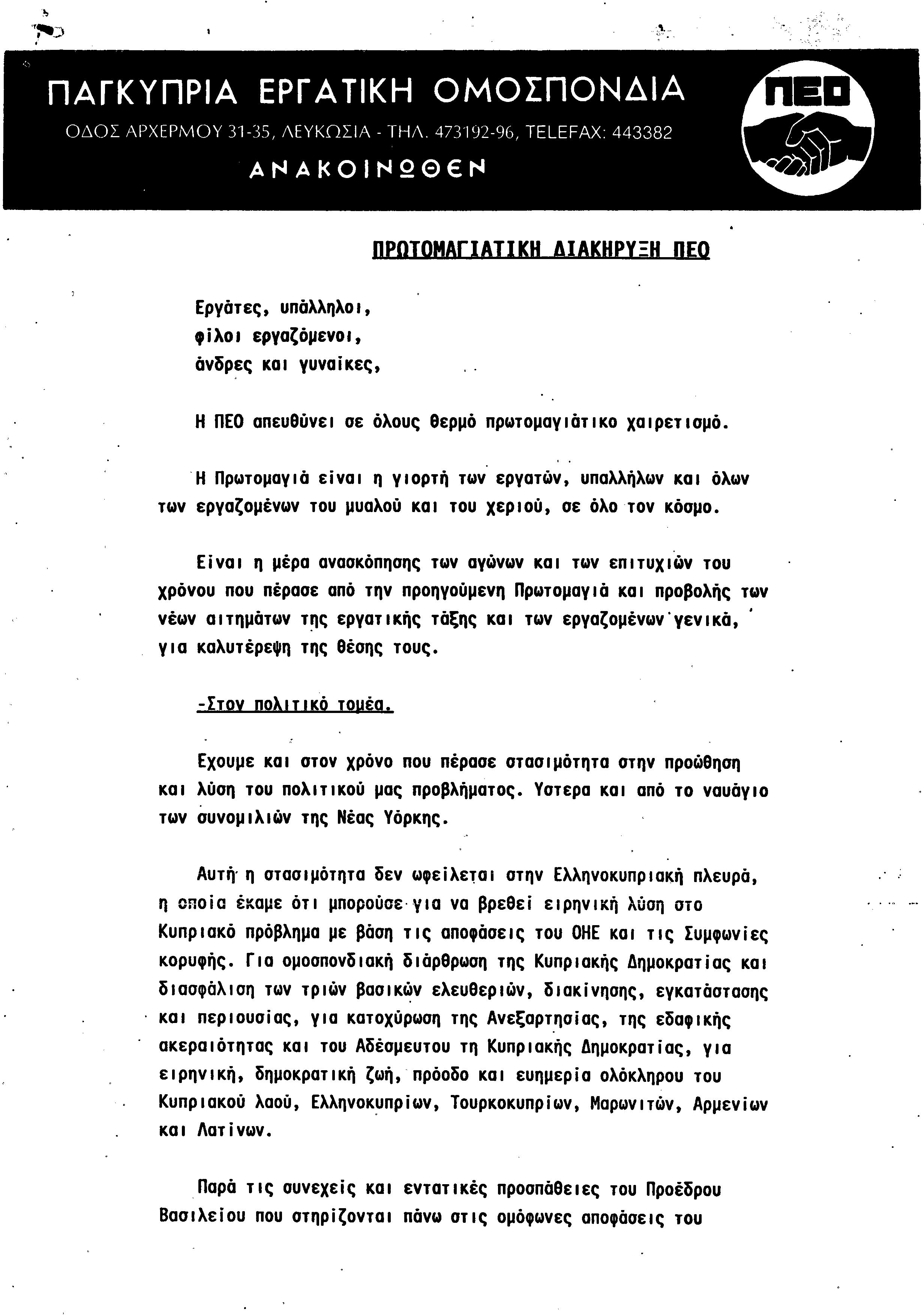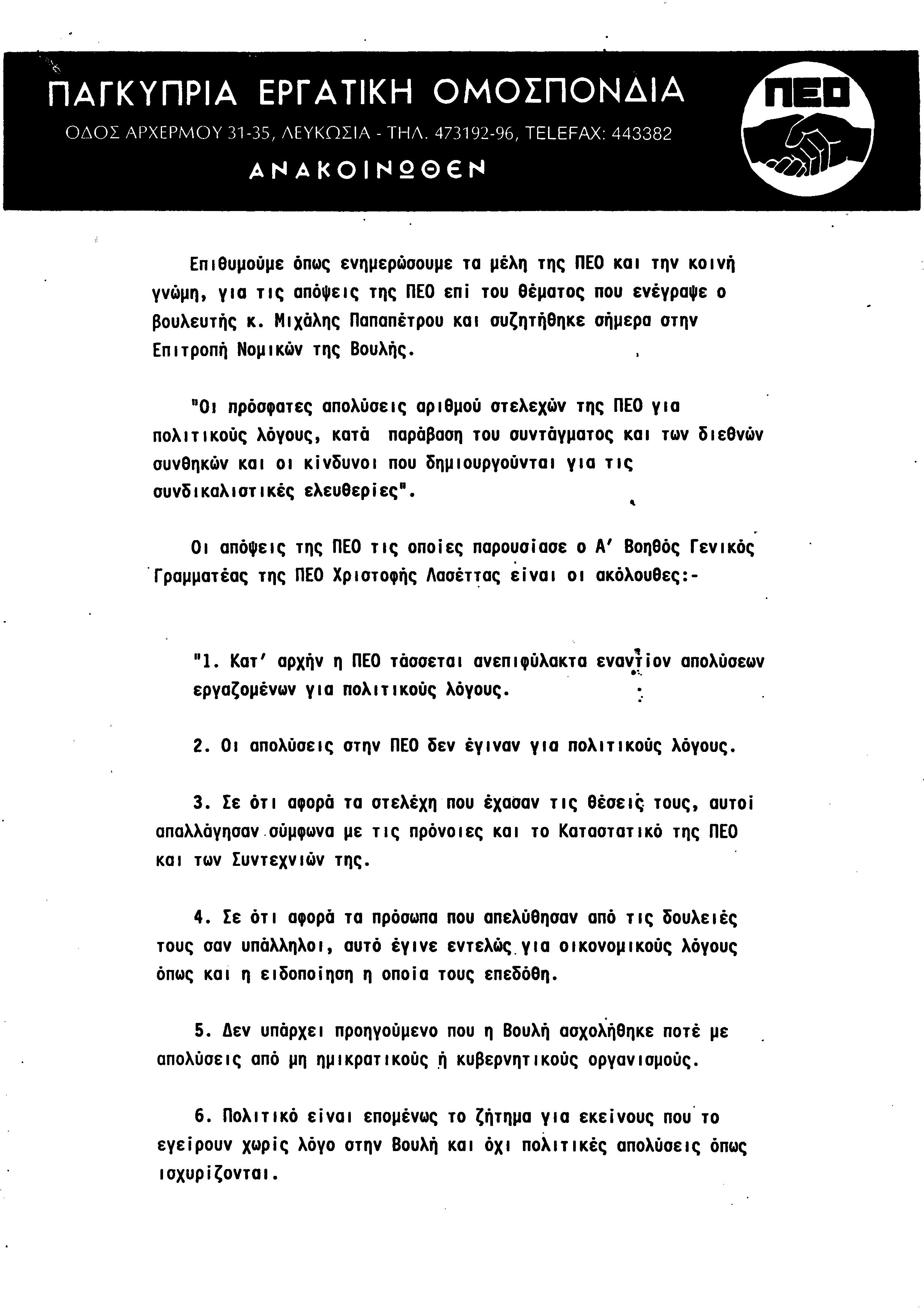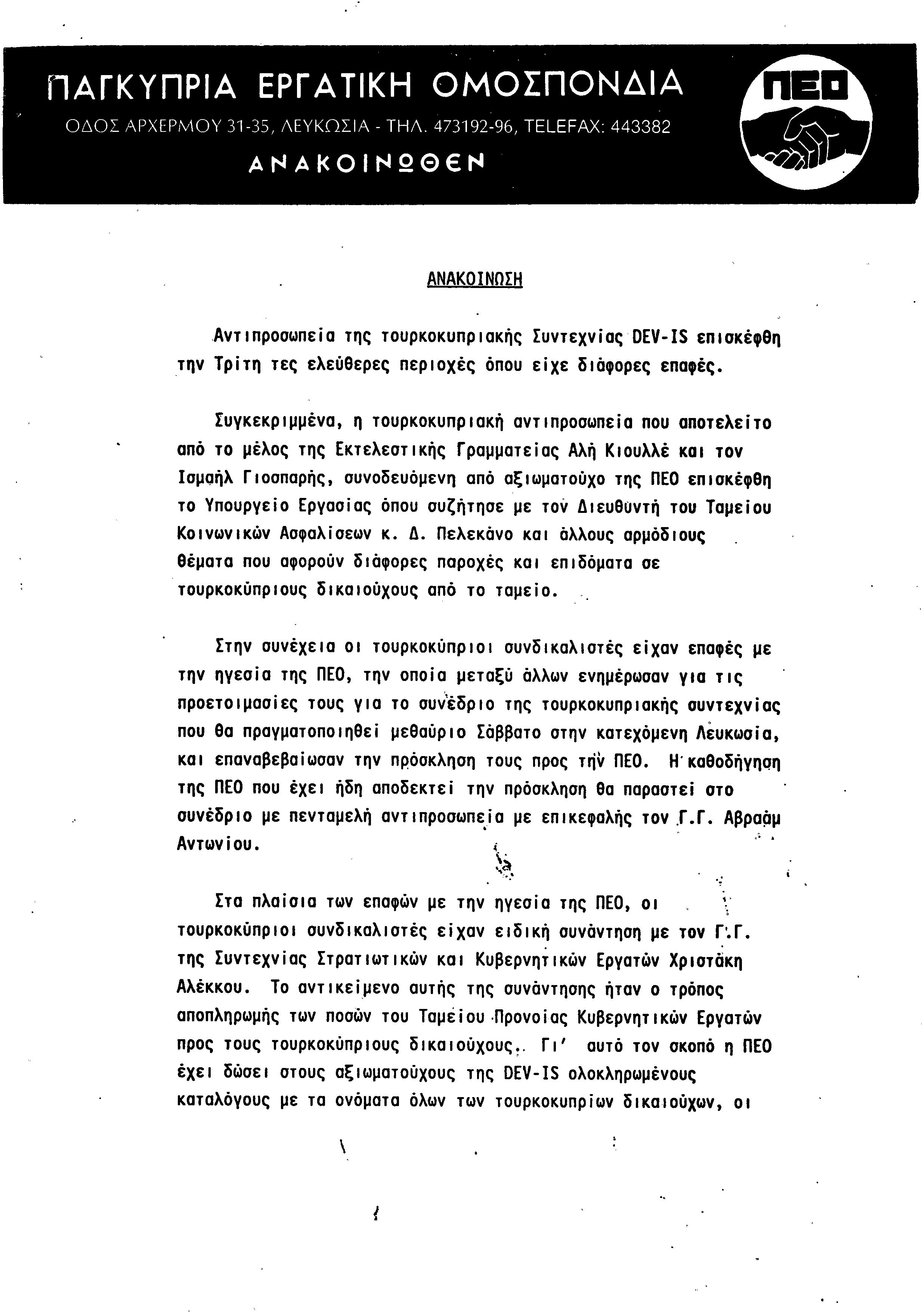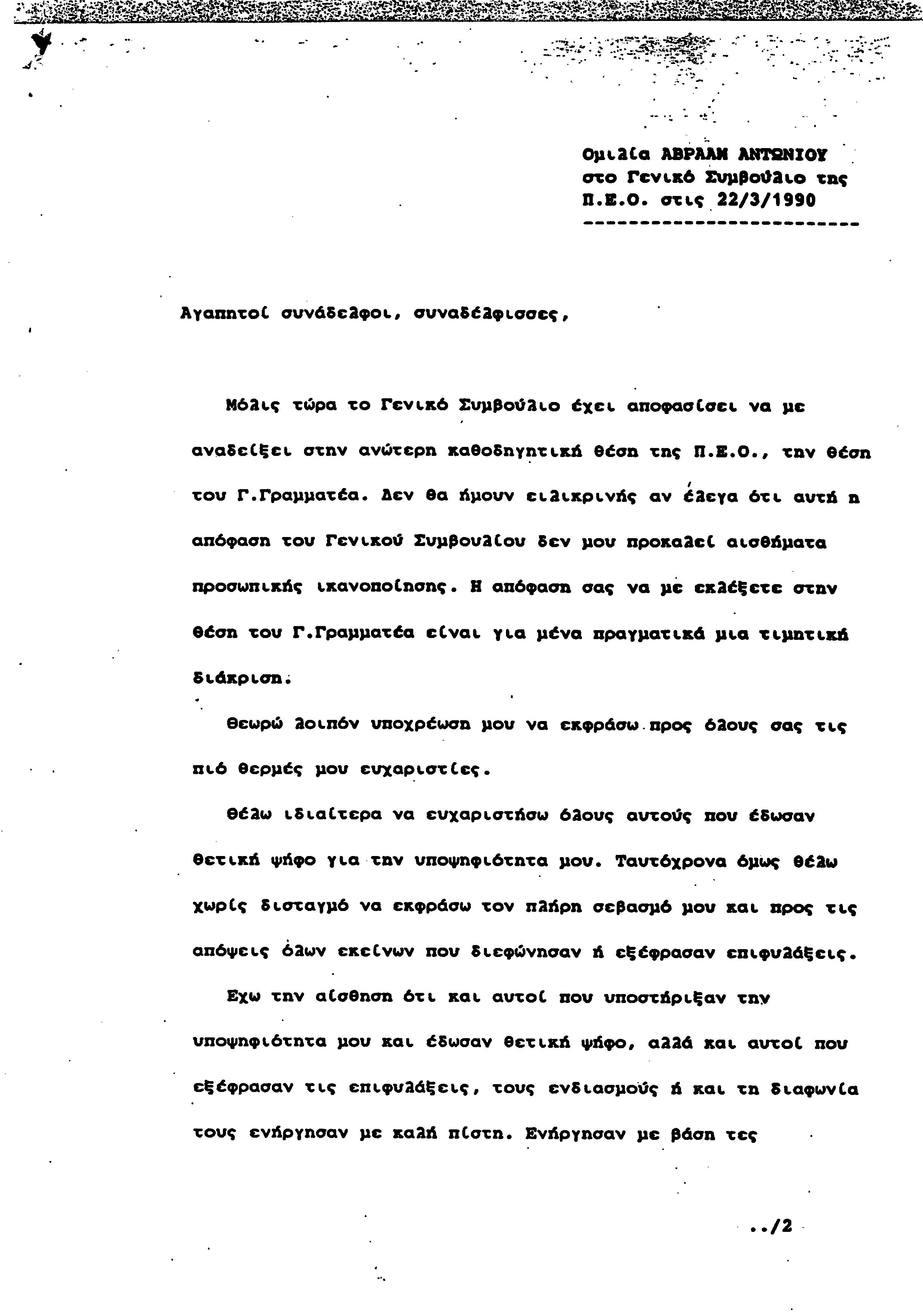 ΑΝΑΚΟΙΝΩΣΕΙΣ 1990-1991