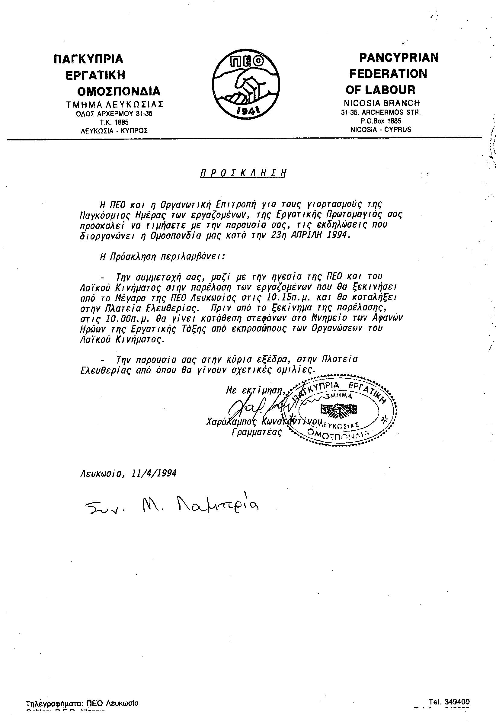 ΠΡΩΤΟΜΑΓΙΑ 1994 by Παγκύπρια Εργατική Ομοσπονδία - Issuu