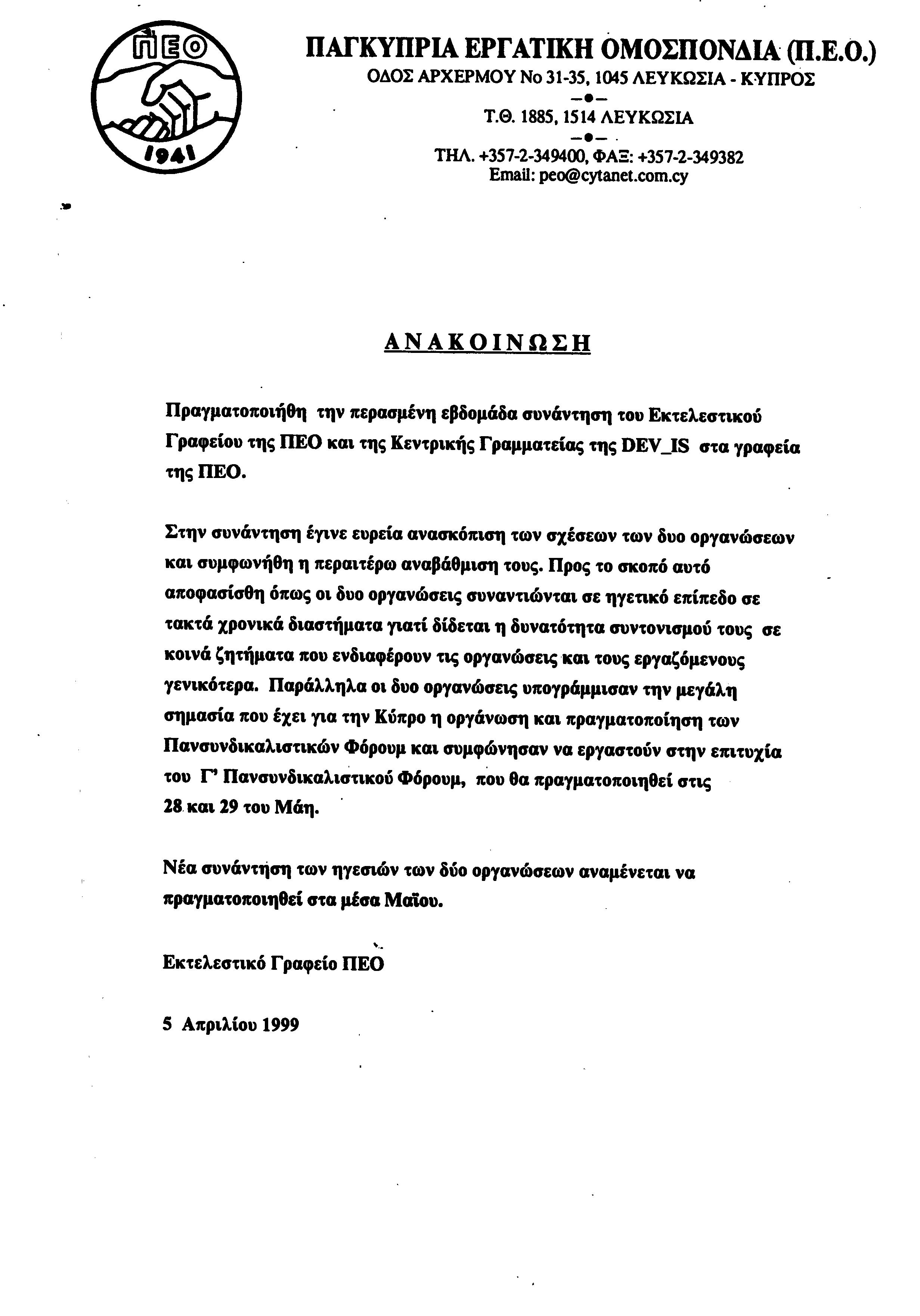 ΑΝΑΚΟΙΝΩΣΕΙΣ 1998
