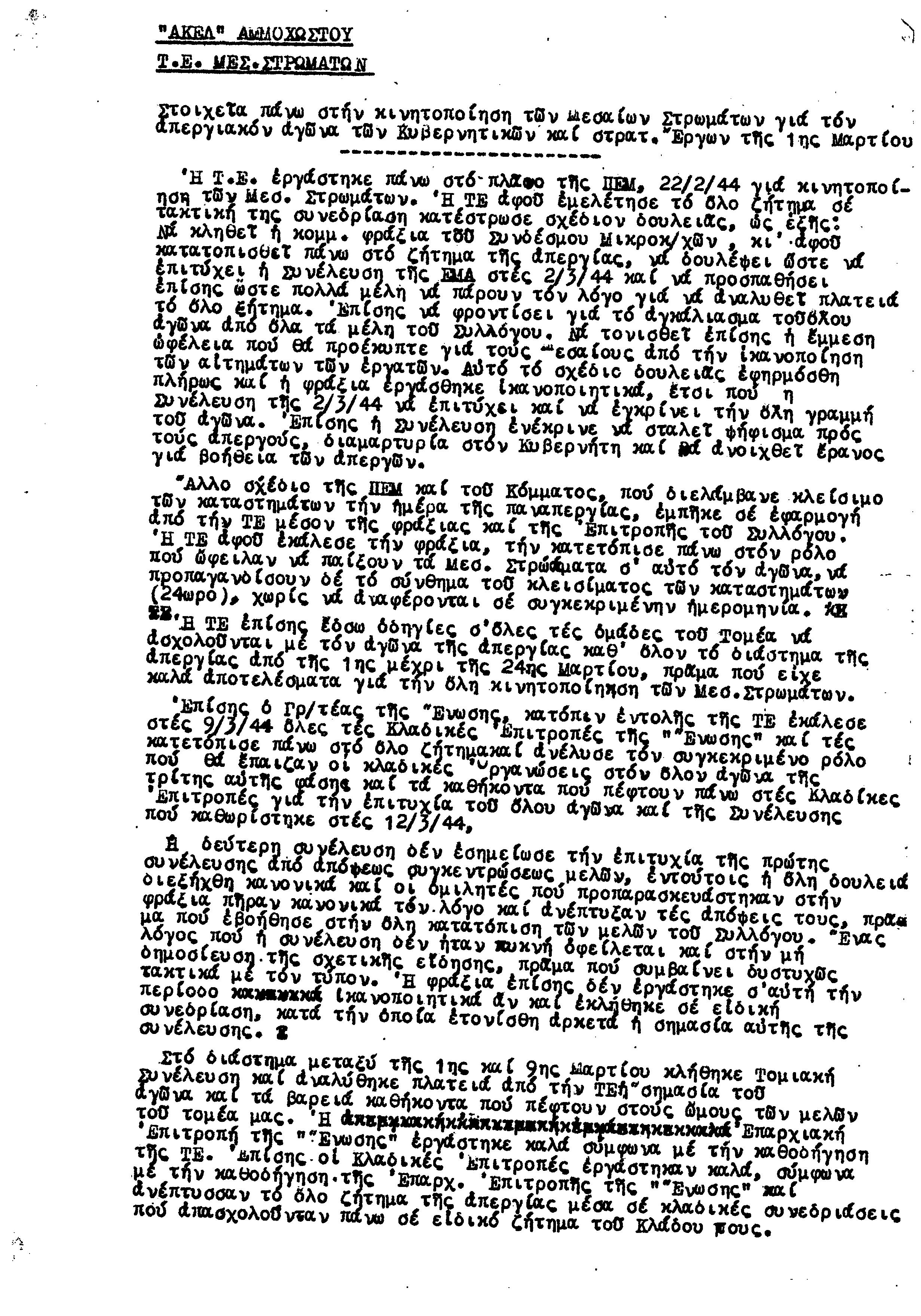 ΕΓΓΡΑΦΑ ΓΙΑ ΤΟΝ ΑΓΩΝΑ ΤΗΣ 1ης ΜΑΡΤΙΟΥ 1944