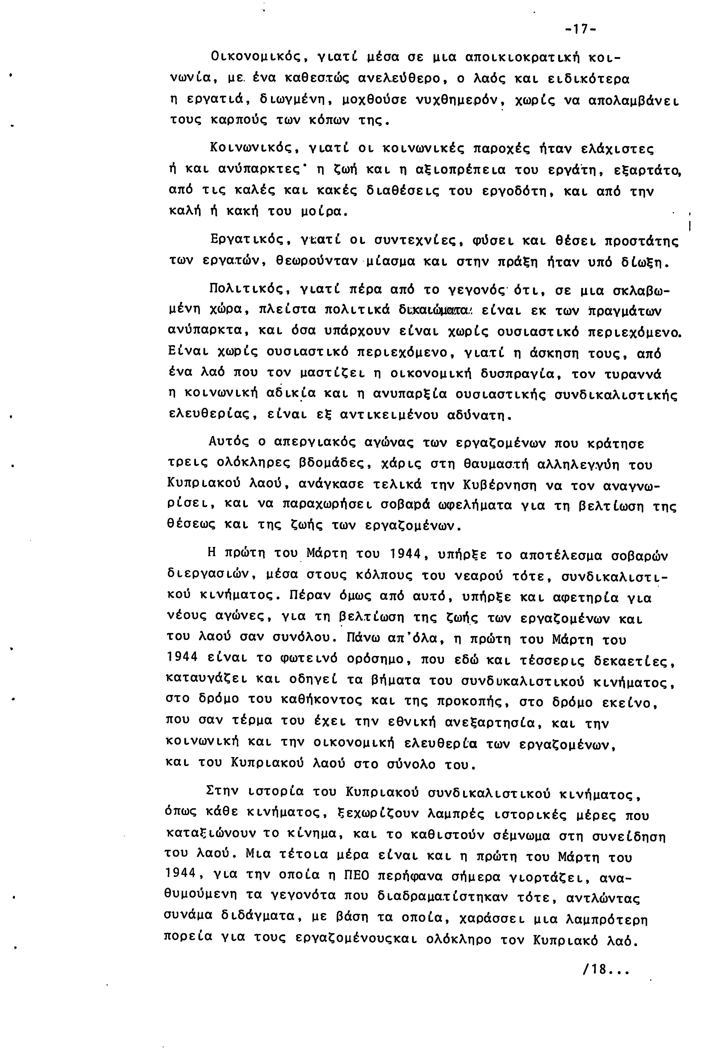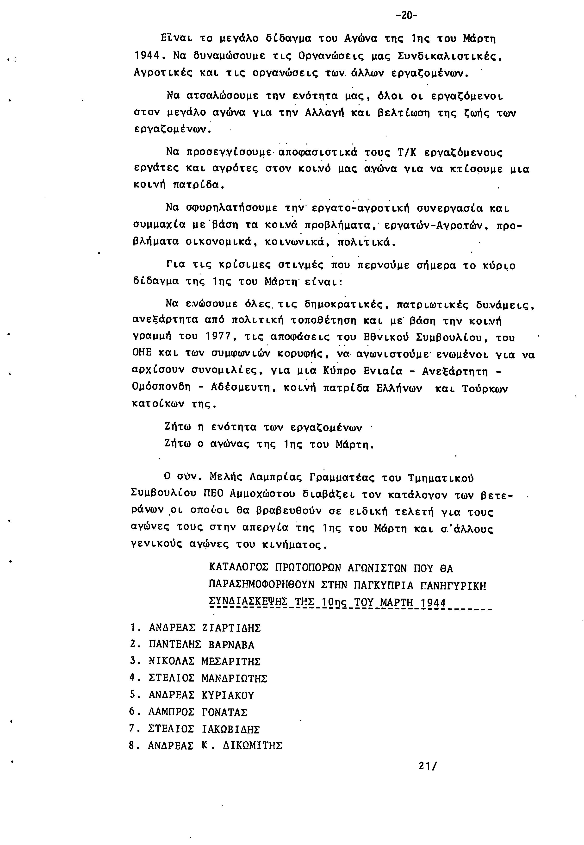 ΠΑΝΗΓΥΡΙΚΗ ΣΥΝΔΙΑΣΚΕΨΗ ΓΙΑ ΤΗΝ 1η ΜΑΡΤΙΟΥ 1944, 1984 ( ΠΡΑΚΤΙΚΑ) by Παγκύπρια Εργατική Ομοσπονδία - Issuu
