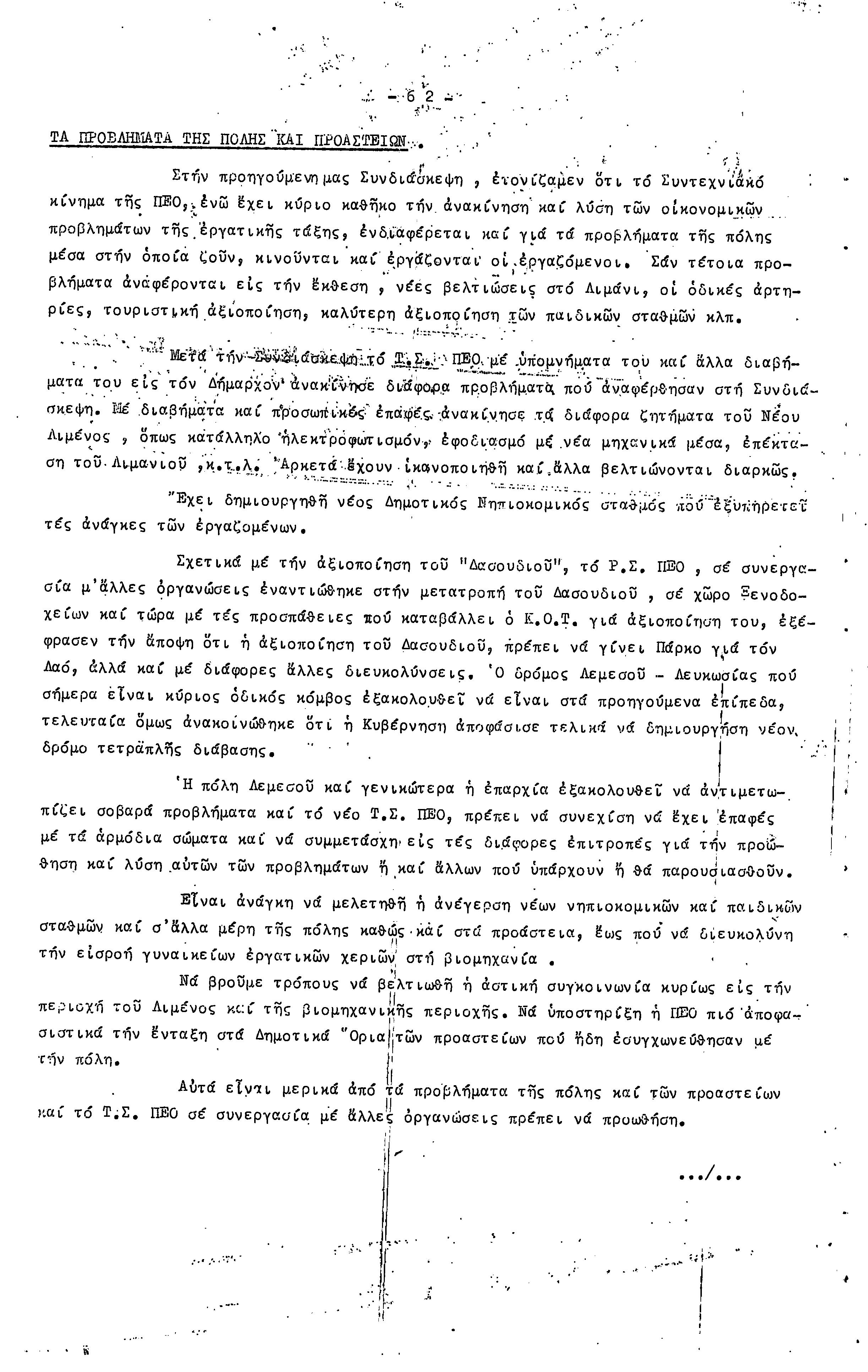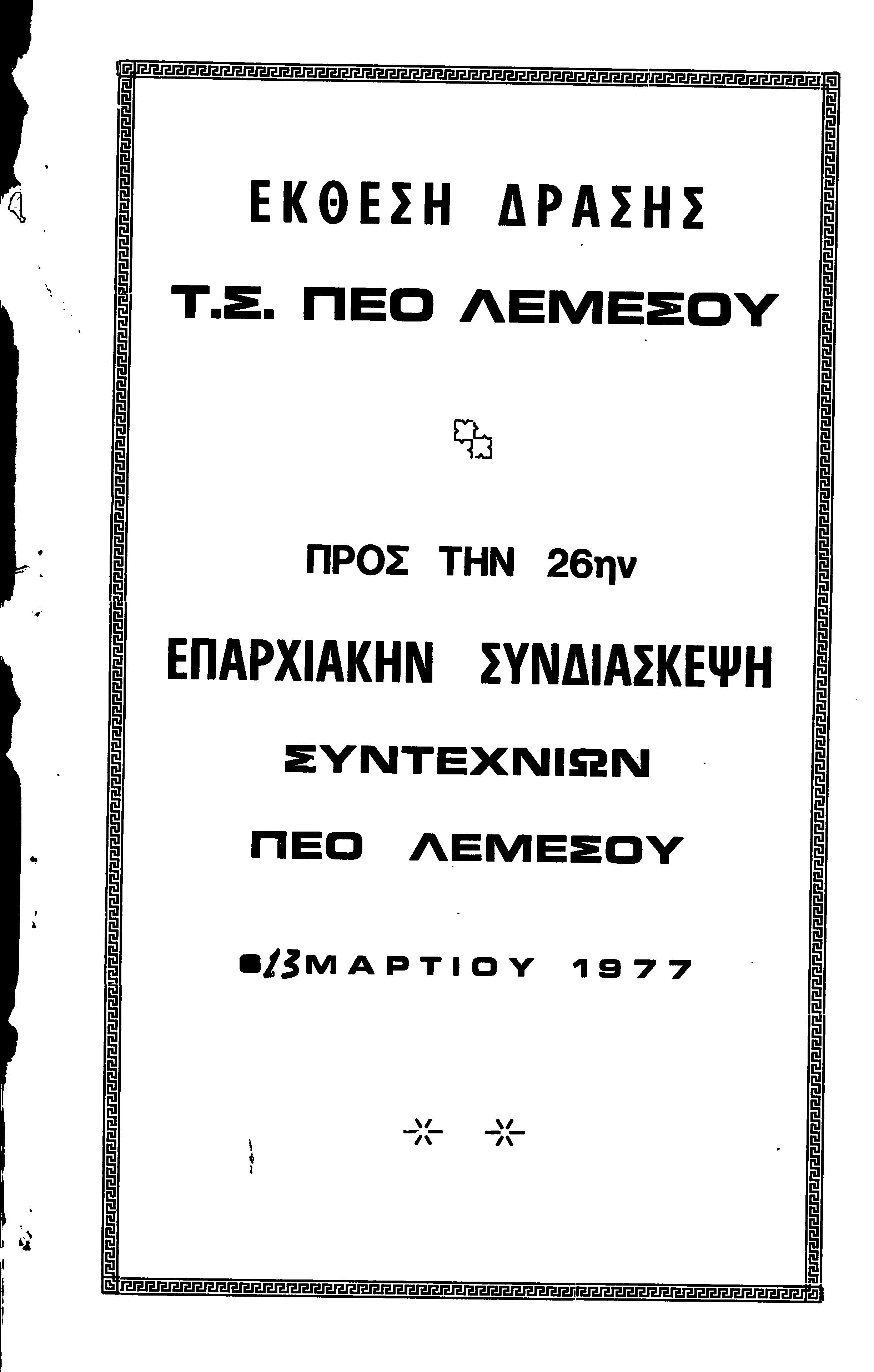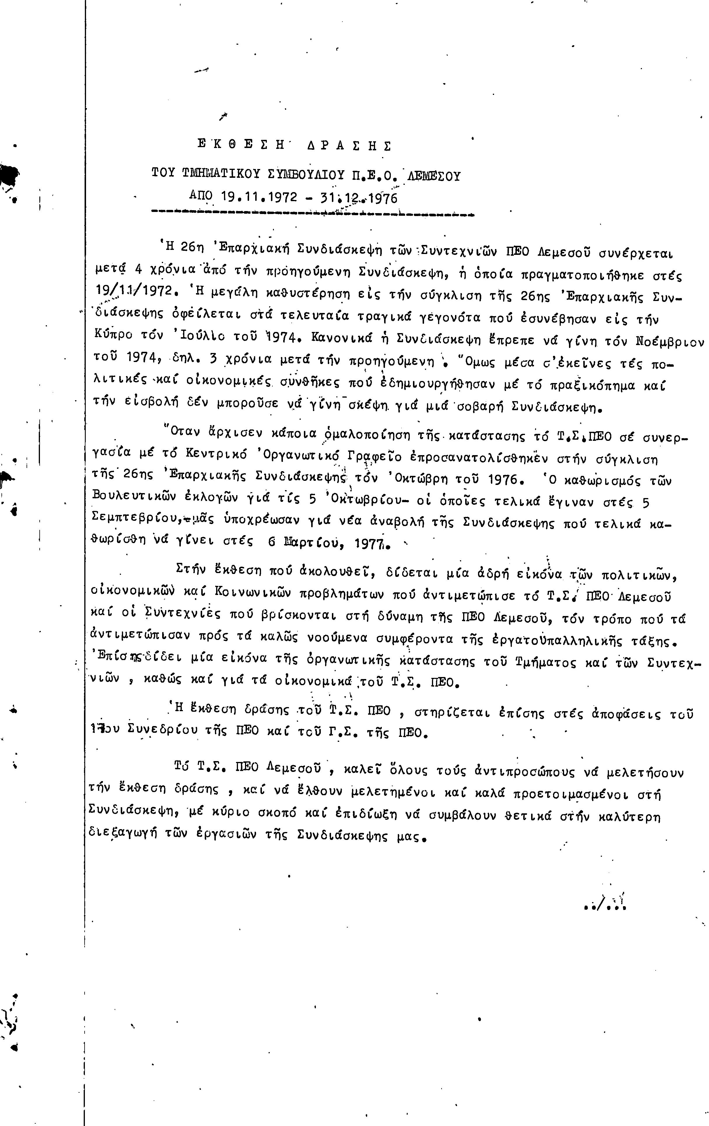 ΠΡΟΣ ΤΗΝ 26η ΕΠΑΡΧΙΑΚΗ ΣΥΝΔΙΑΣΚΕΨΗ Τ.Σ. ΠΕΟ ΛΕΜΕΣΟΥ, 13.03.1977 ( ΕΚΘΕΣΗ ΔΡΑΣΗΣ)