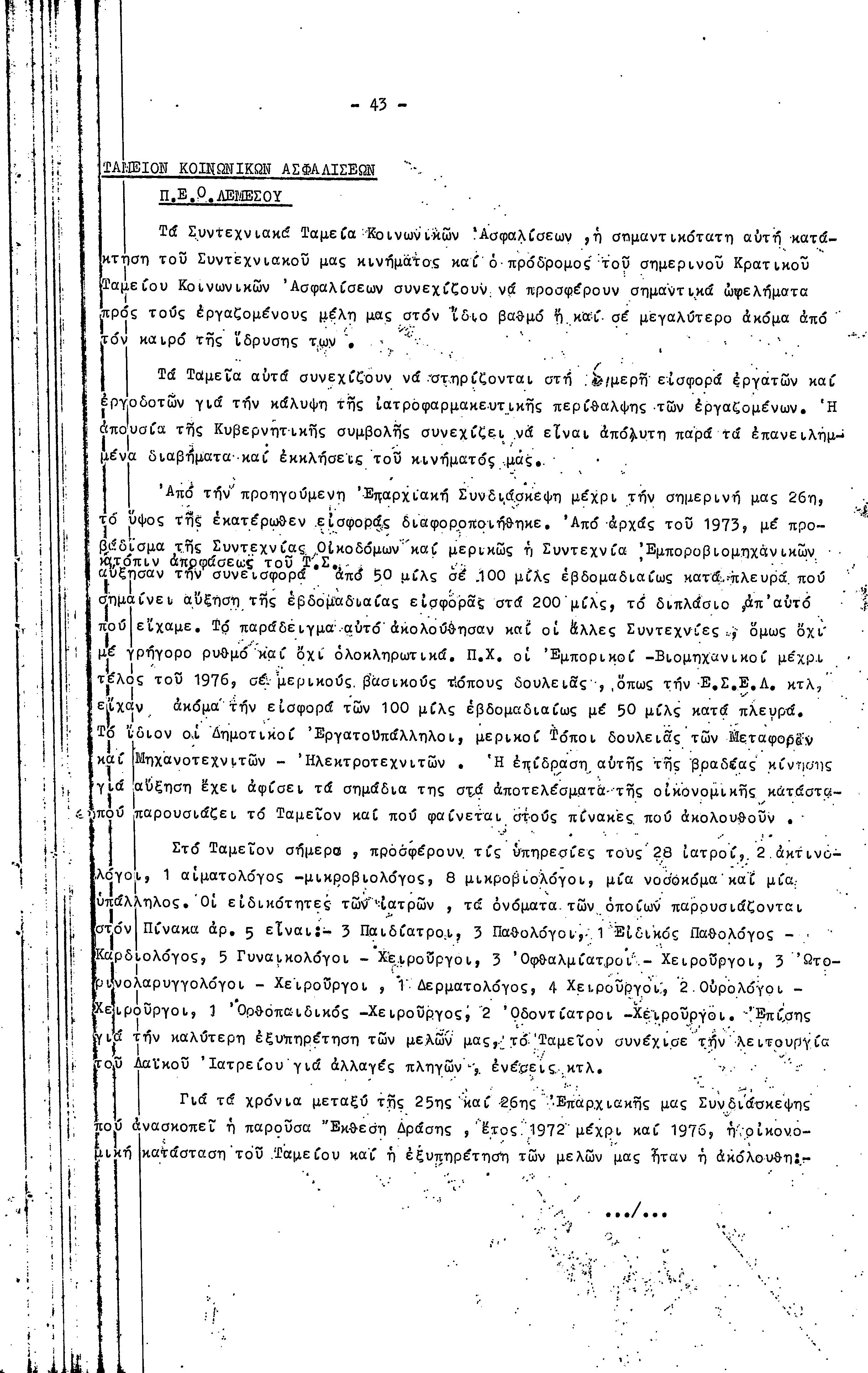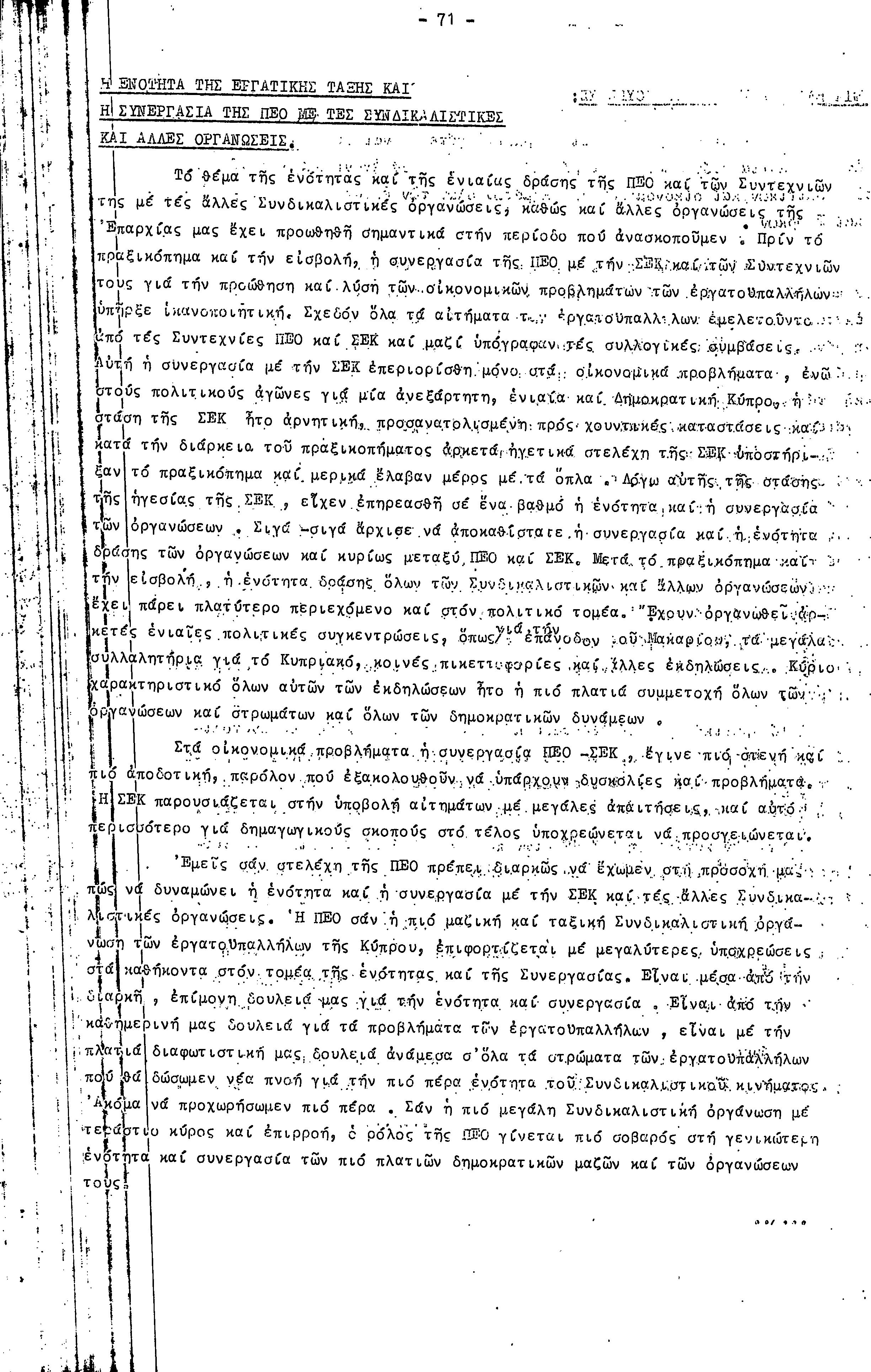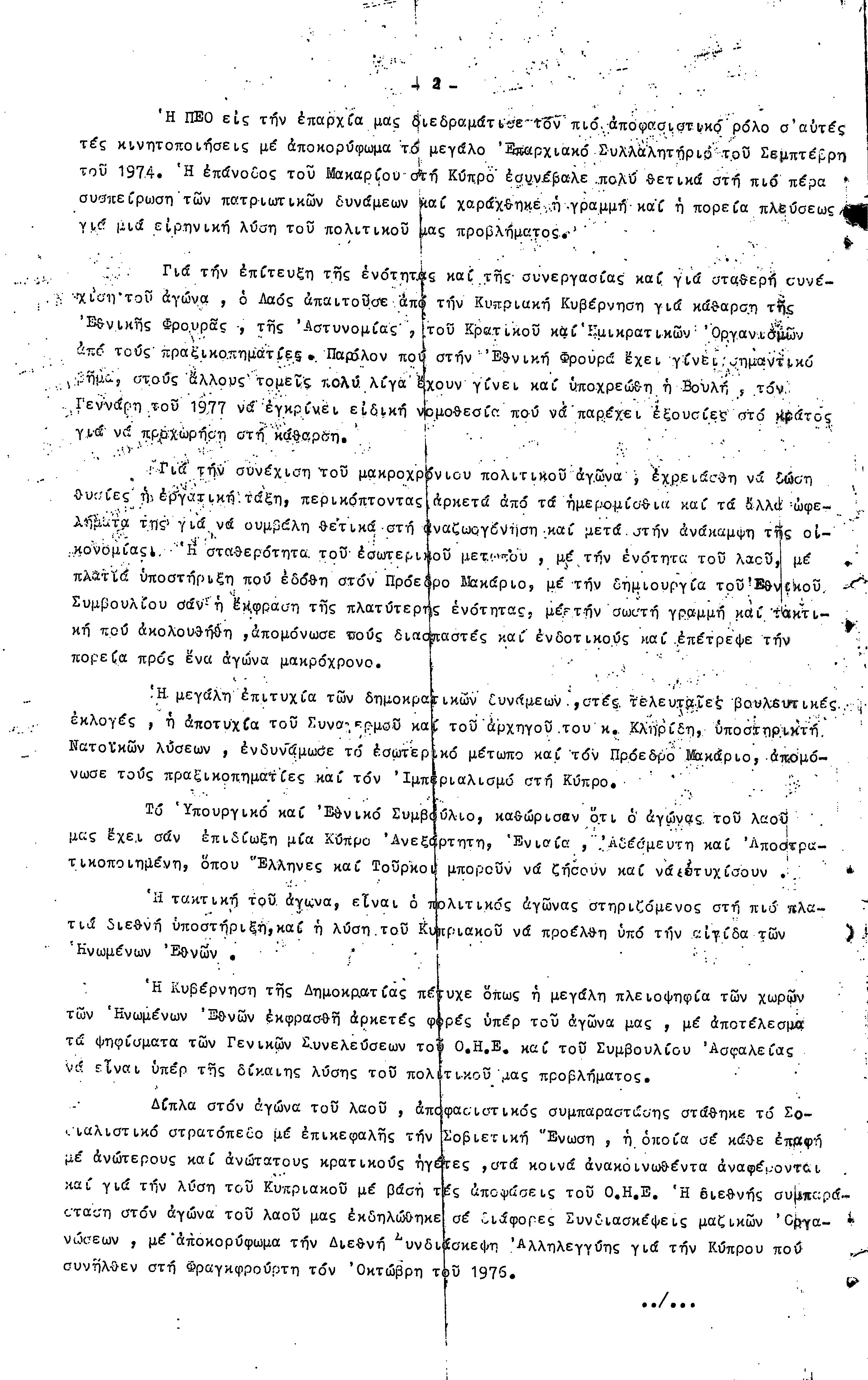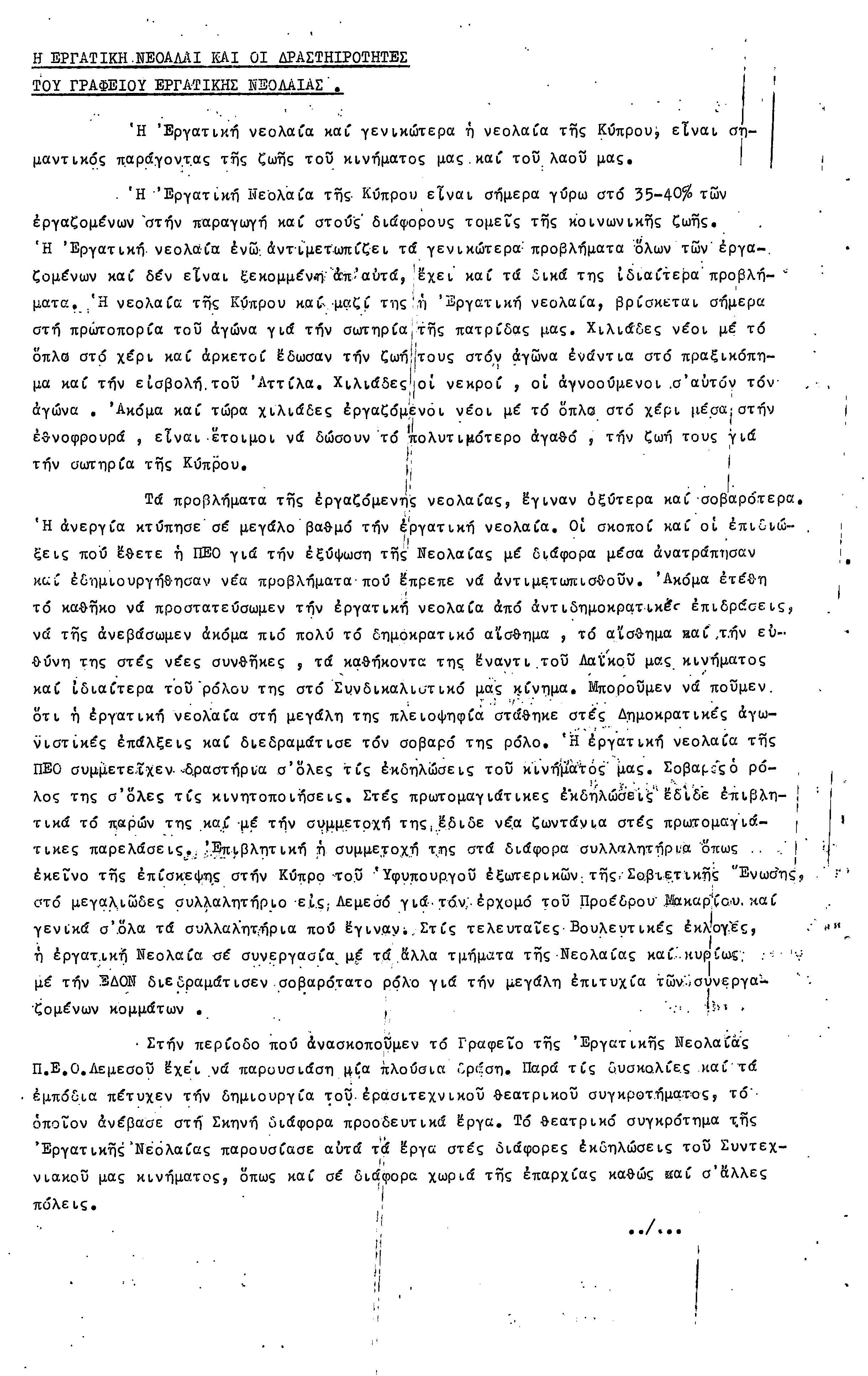 ΠΡΟΣ ΤΗΝ 26η ΕΠΑΡΧΙΑΚΗ ΣΥΝΔΙΑΣΚΕΨΗ Τ.Σ. ΠΕΟ ΛΕΜΕΣΟΥ, 13.03.1977 ( ΕΚΘΕΣΗ ΔΡΑΣΗΣ)