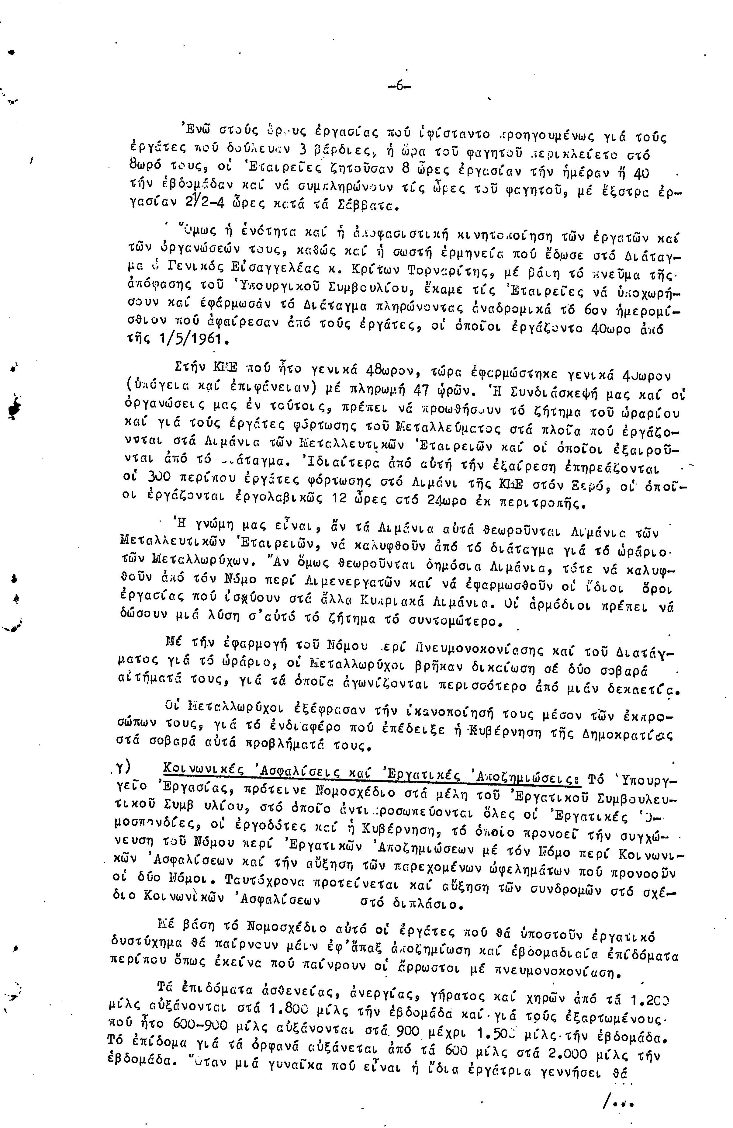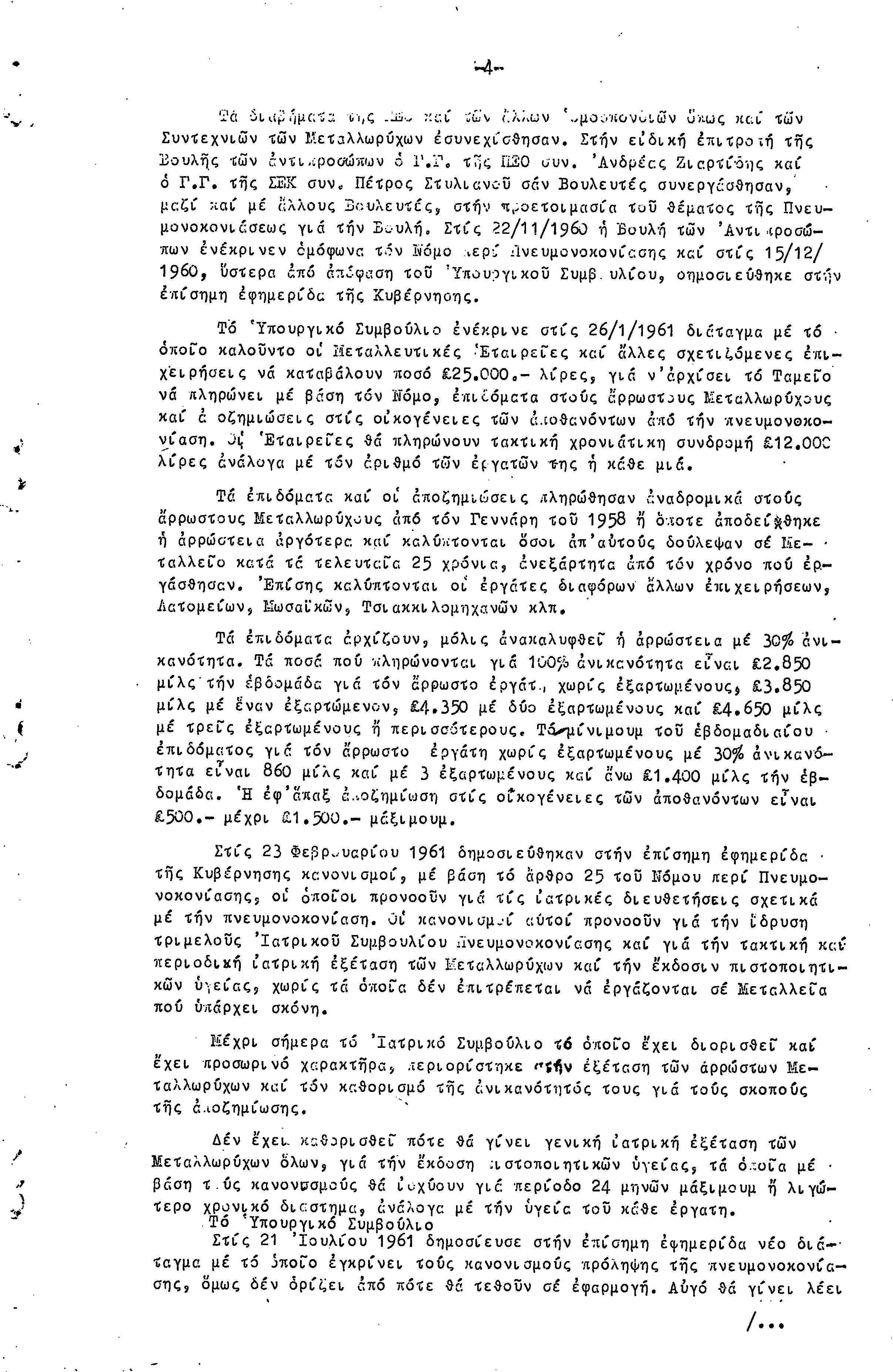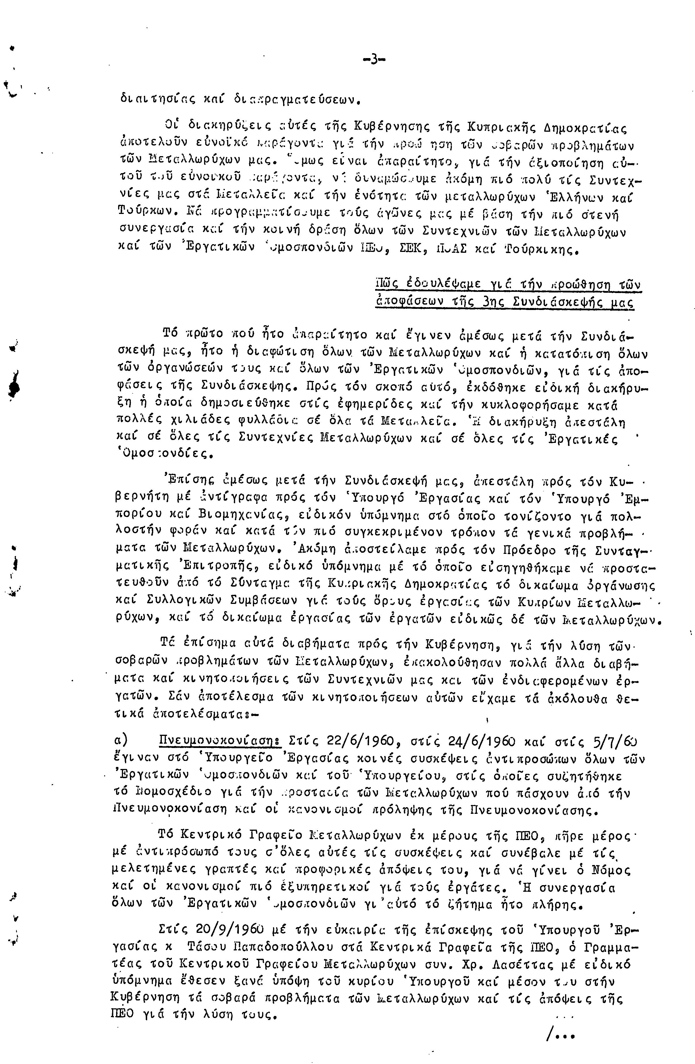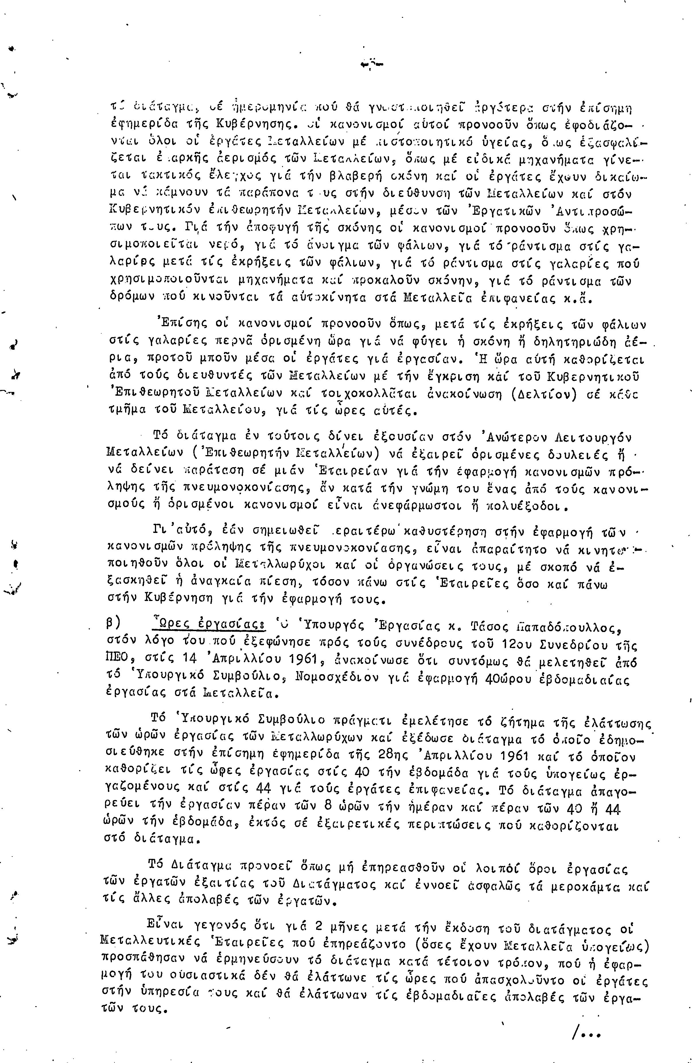 ΕΚΘΕΣΗ ΚΑΙ ΕΙΣΗΓΗΣΗ ΠΡΟΣ ΤΗΝ 4Η ΣΥΝΔΙΑΣΚΕΨΗ ΜΕΤΑΛΛΩΡΥΧΩΝ- 1.10.1961