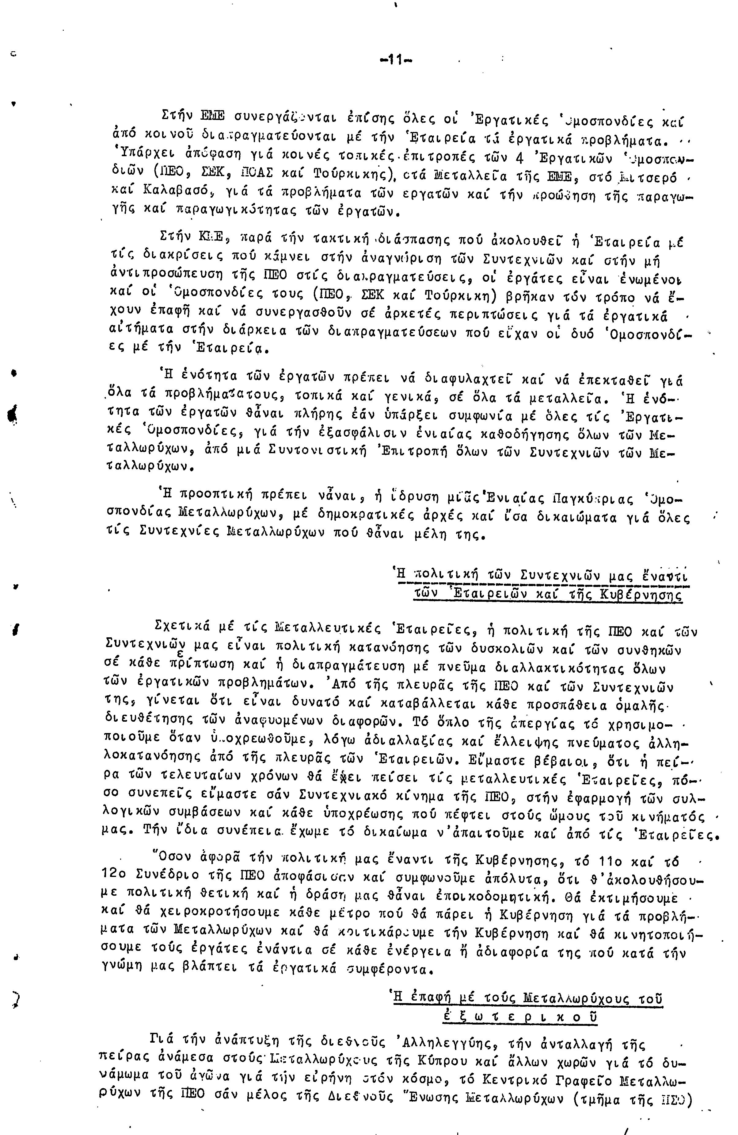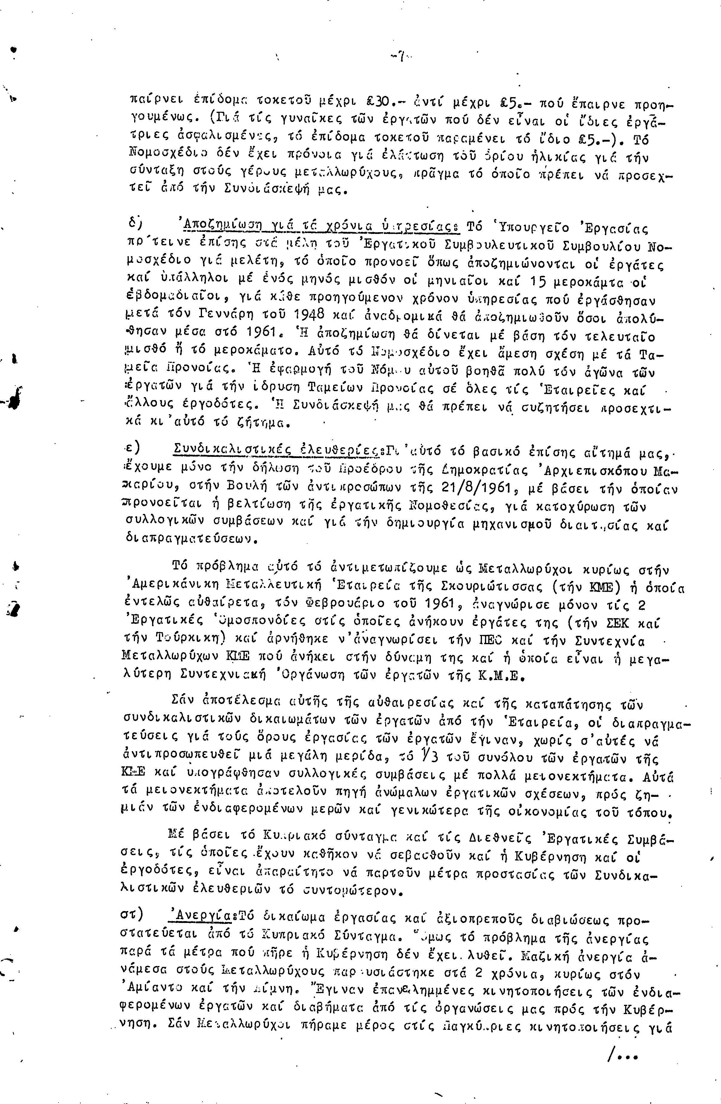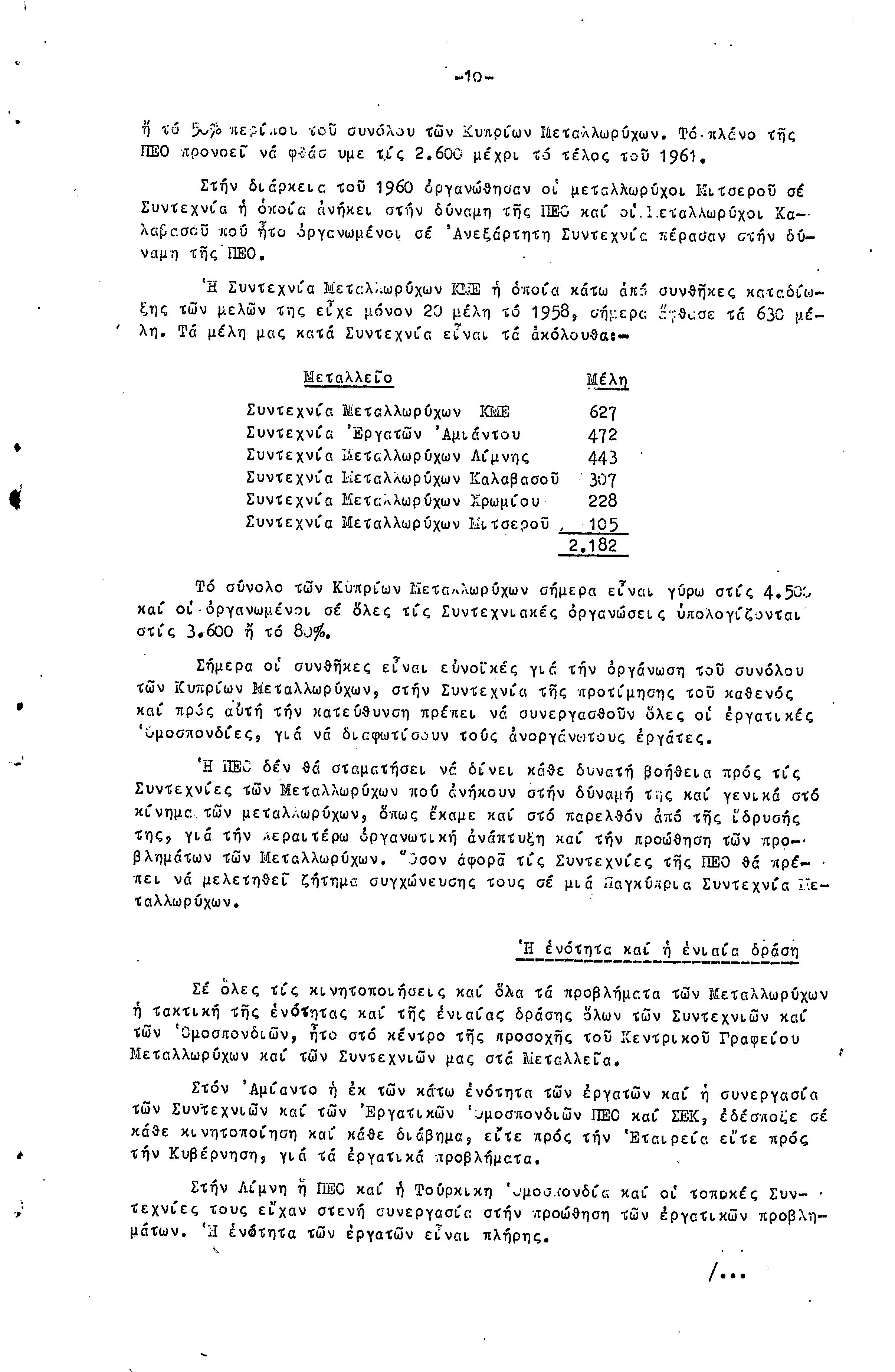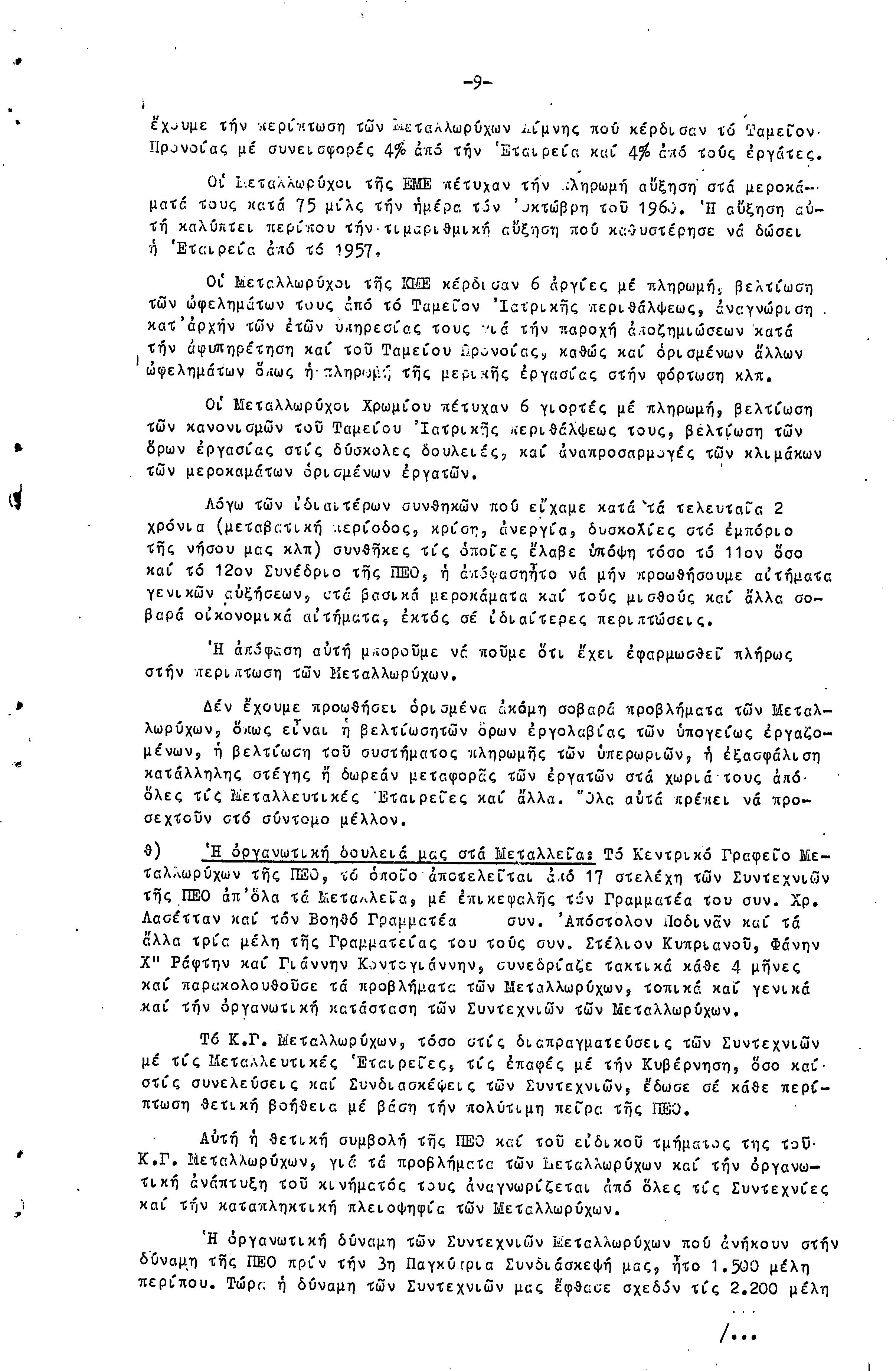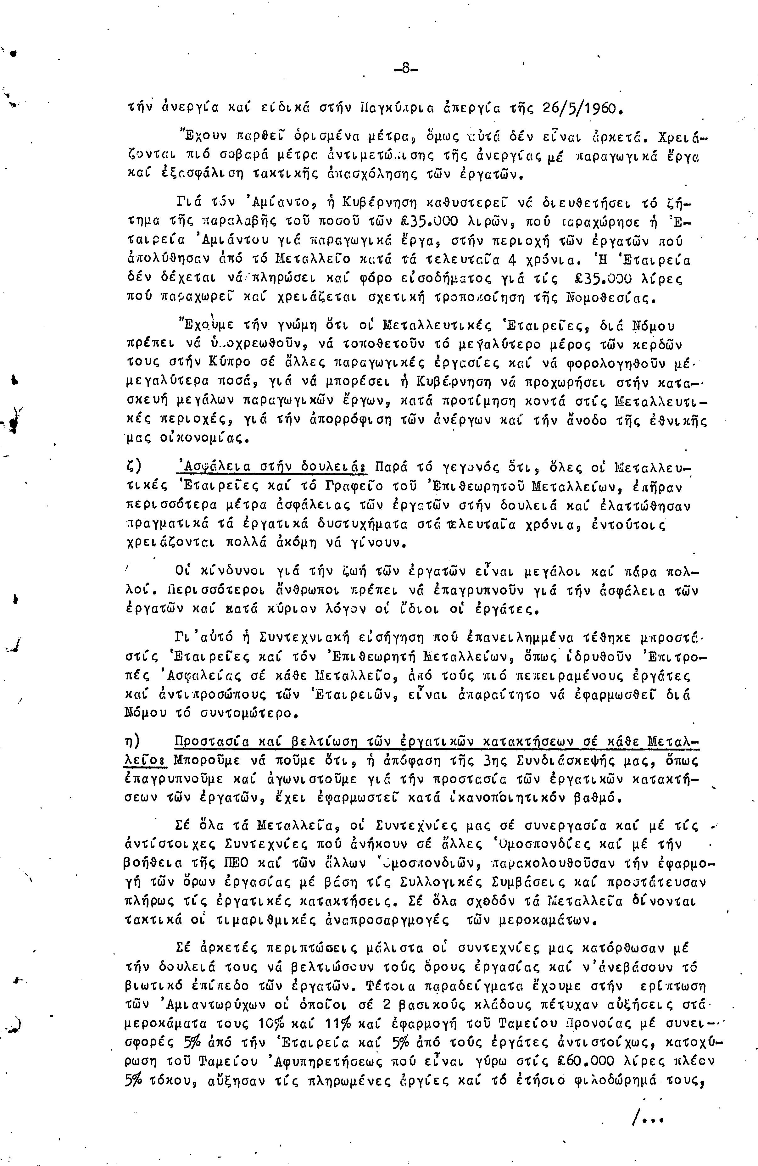 ΕΚΘΕΣΗ ΚΑΙ ΕΙΣΗΓΗΣΗ ΠΡΟΣ ΤΗΝ 4Η ΣΥΝΔΙΑΣΚΕΨΗ ΜΕΤΑΛΛΩΡΥΧΩΝ- 1.10.1961