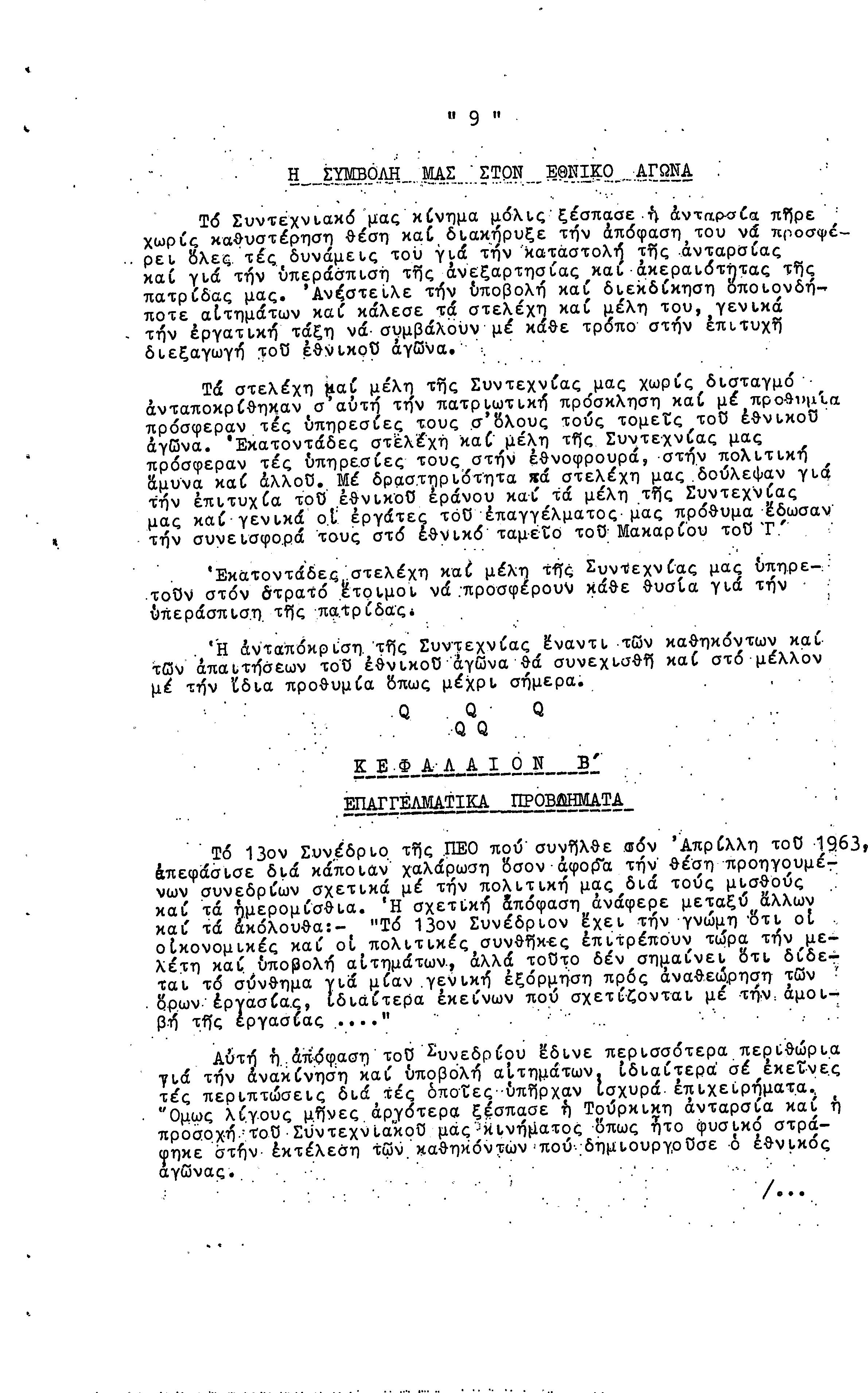 ΕΚΘΕΣΗ ΔΡΑΣΗΣ ΕΡΓΑΤΩΝ ΓΕΩΡΓΙΑΣ ΔΑΣΩΝ ΚΑΙ ΓΕΝΙΚΩΝ ΕΡΓΑΤΩΝ ΚΥΠΡΟΥ 6.10.1963-03.10.1965