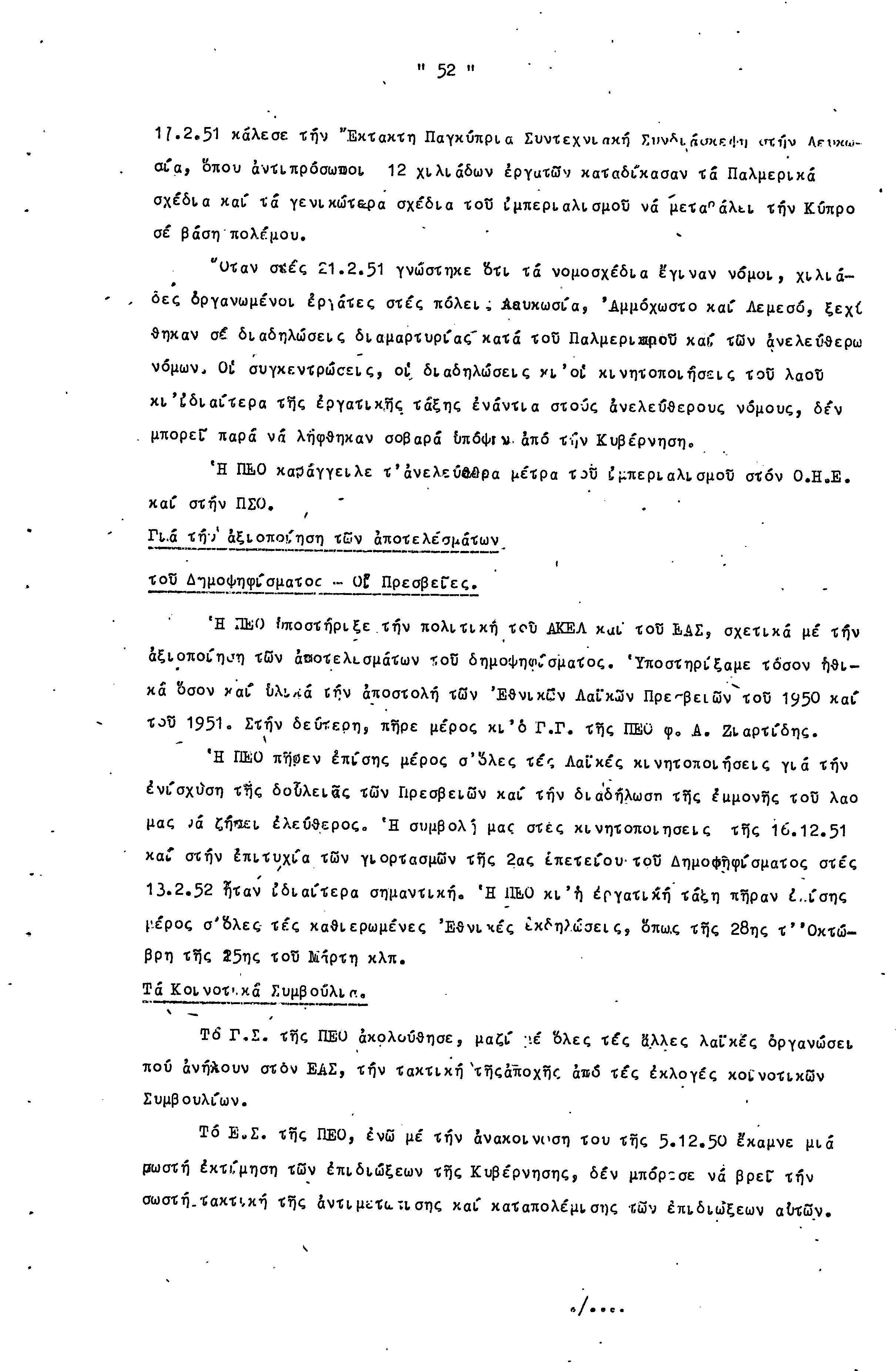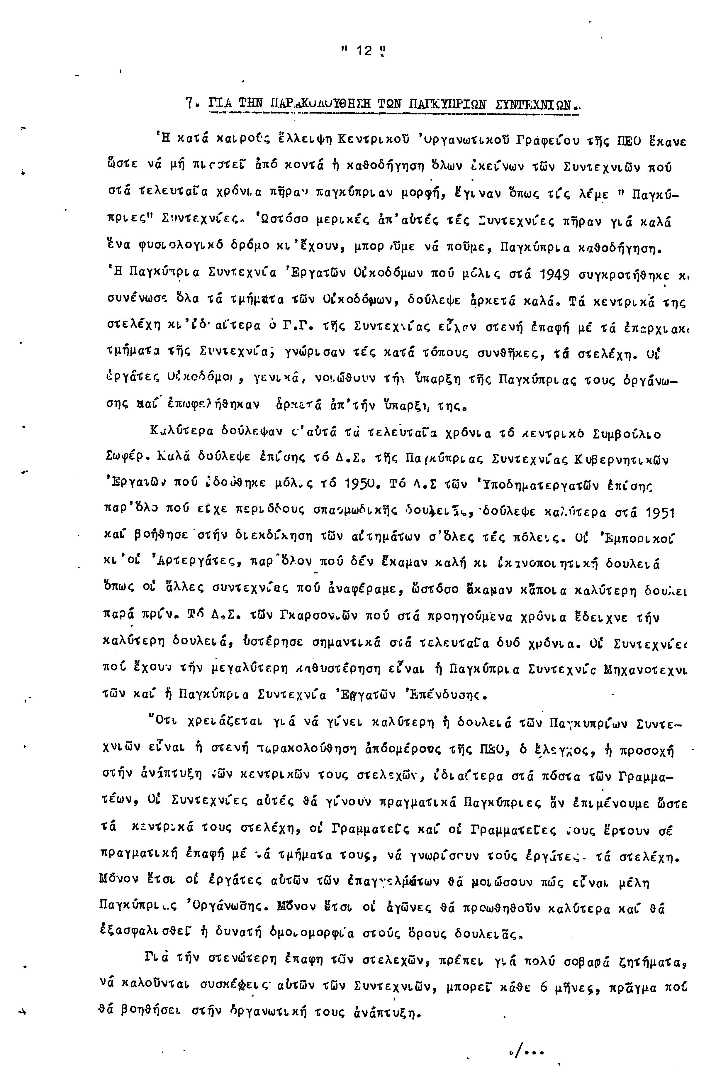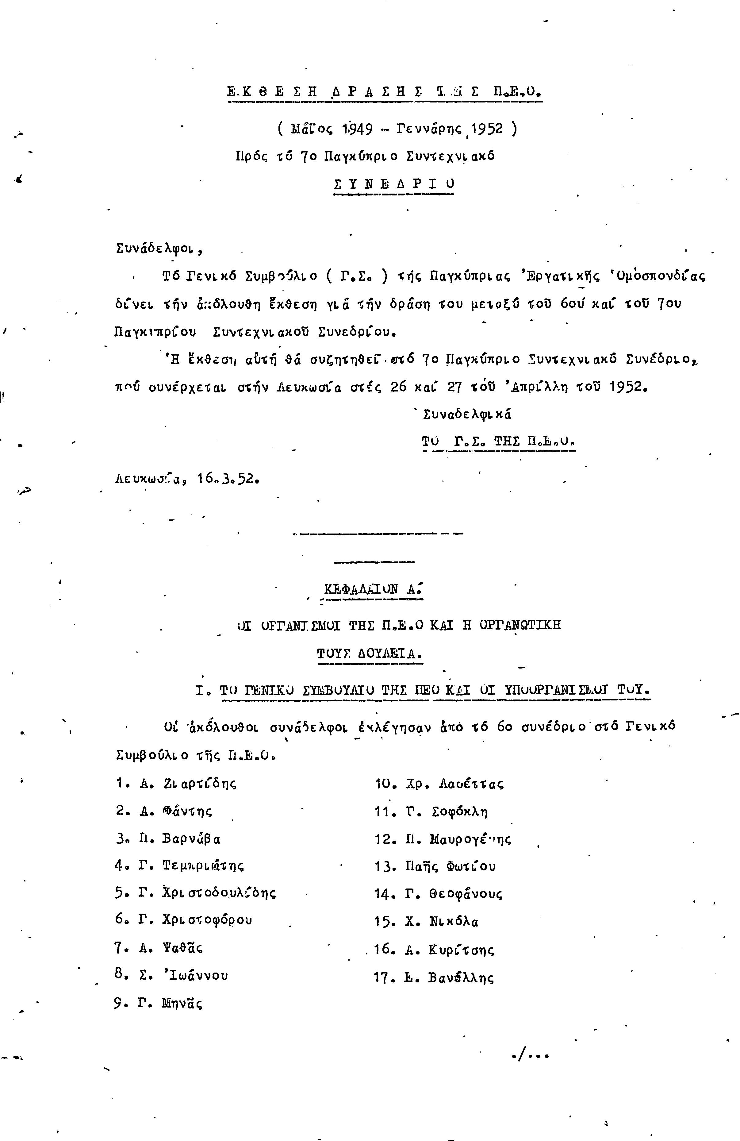 ΕΚΘΕΣΗ ΔΡΑΣΗΣ ΠΕΟ ΑΠΟ ΤΟ 7ο-8ο ΠΑΓΚΥΠΡΙΟ ΣΥΝΕΔΡΙΟ 1953