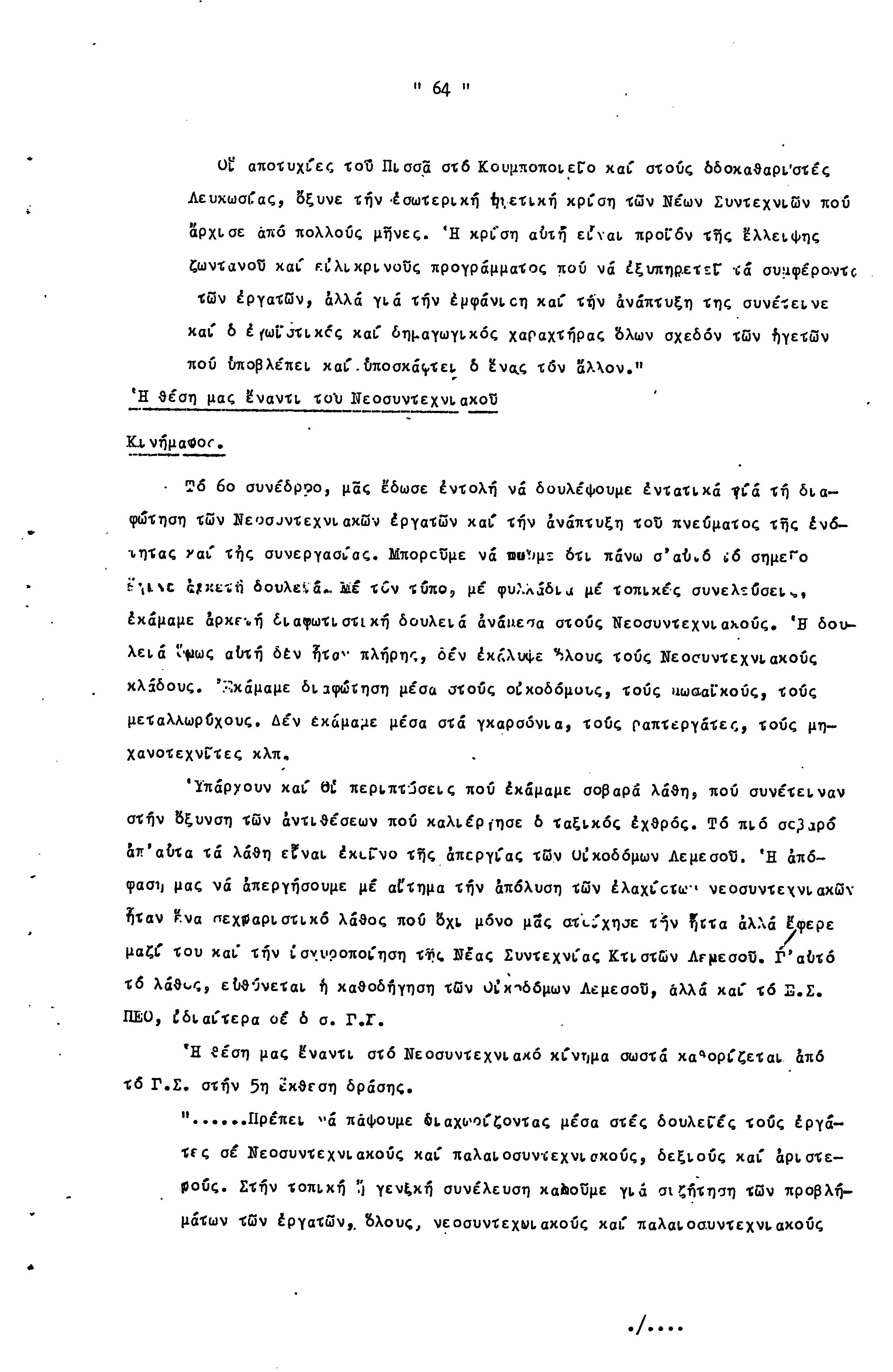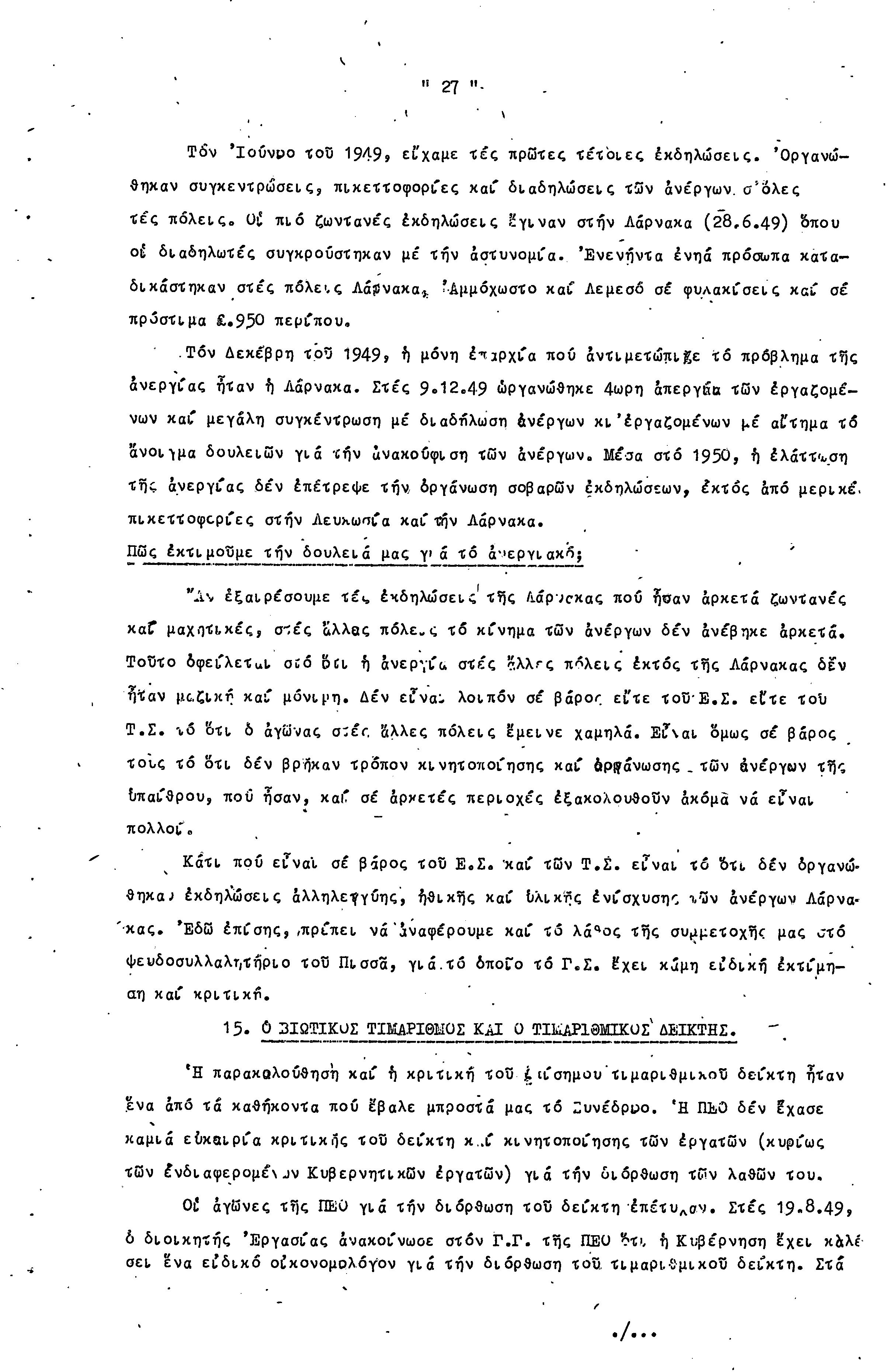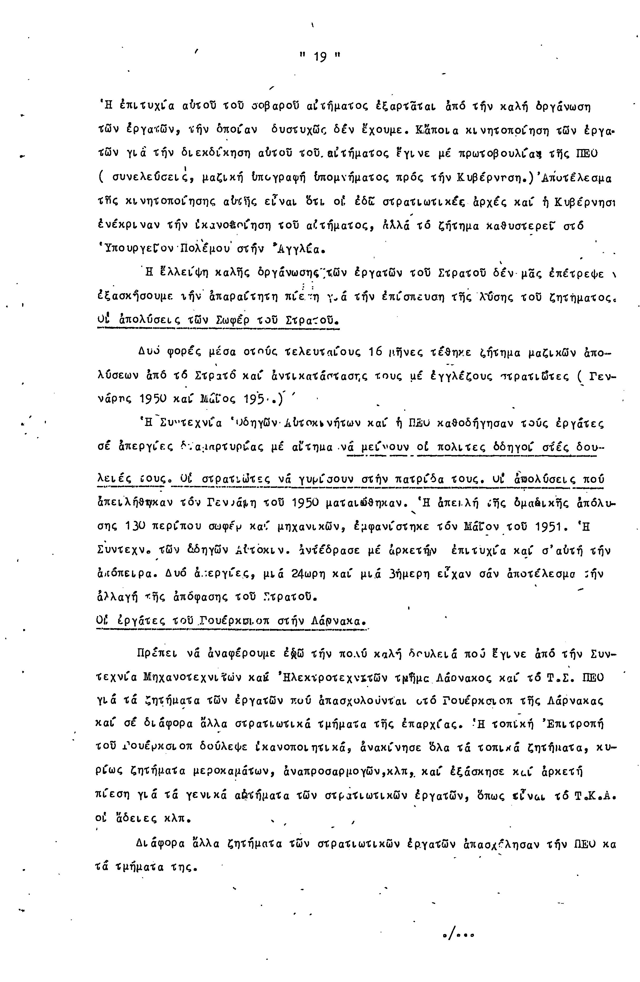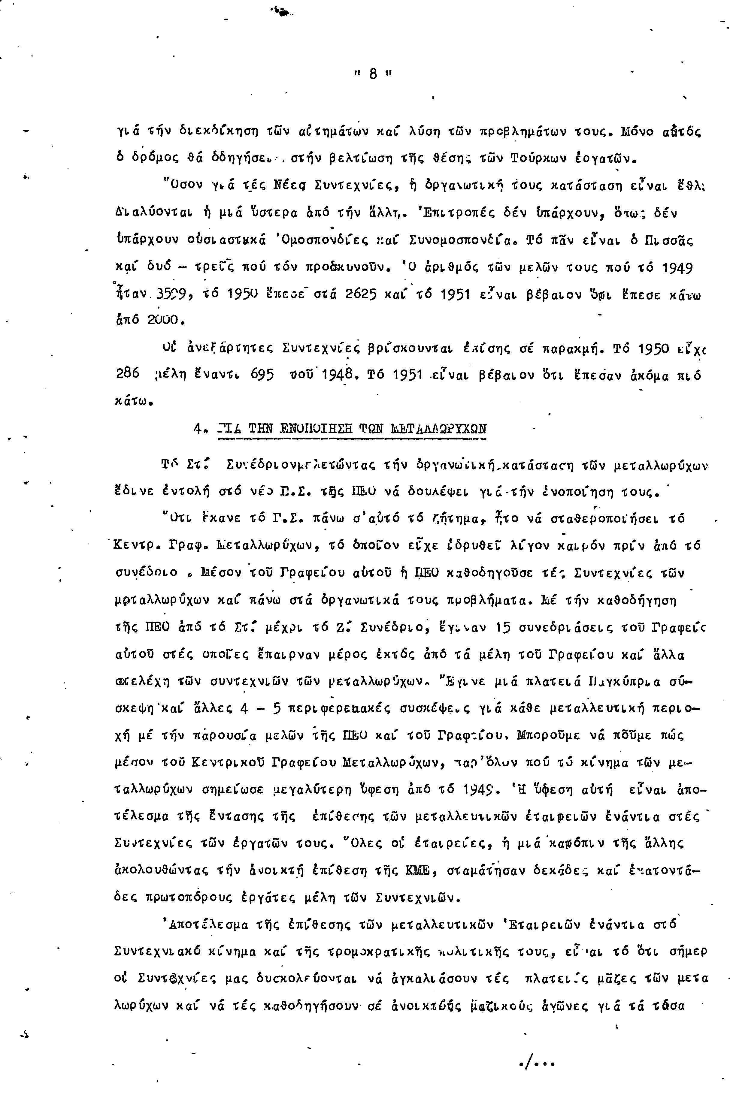 ΕΚΘΕΣΗ ΔΡΑΣΗΣ ΠΕΟ ΑΠΟ ΤΟ 7ο-8ο ΠΑΓΚΥΠΡΙΟ ΣΥΝΕΔΡΙΟ 1953