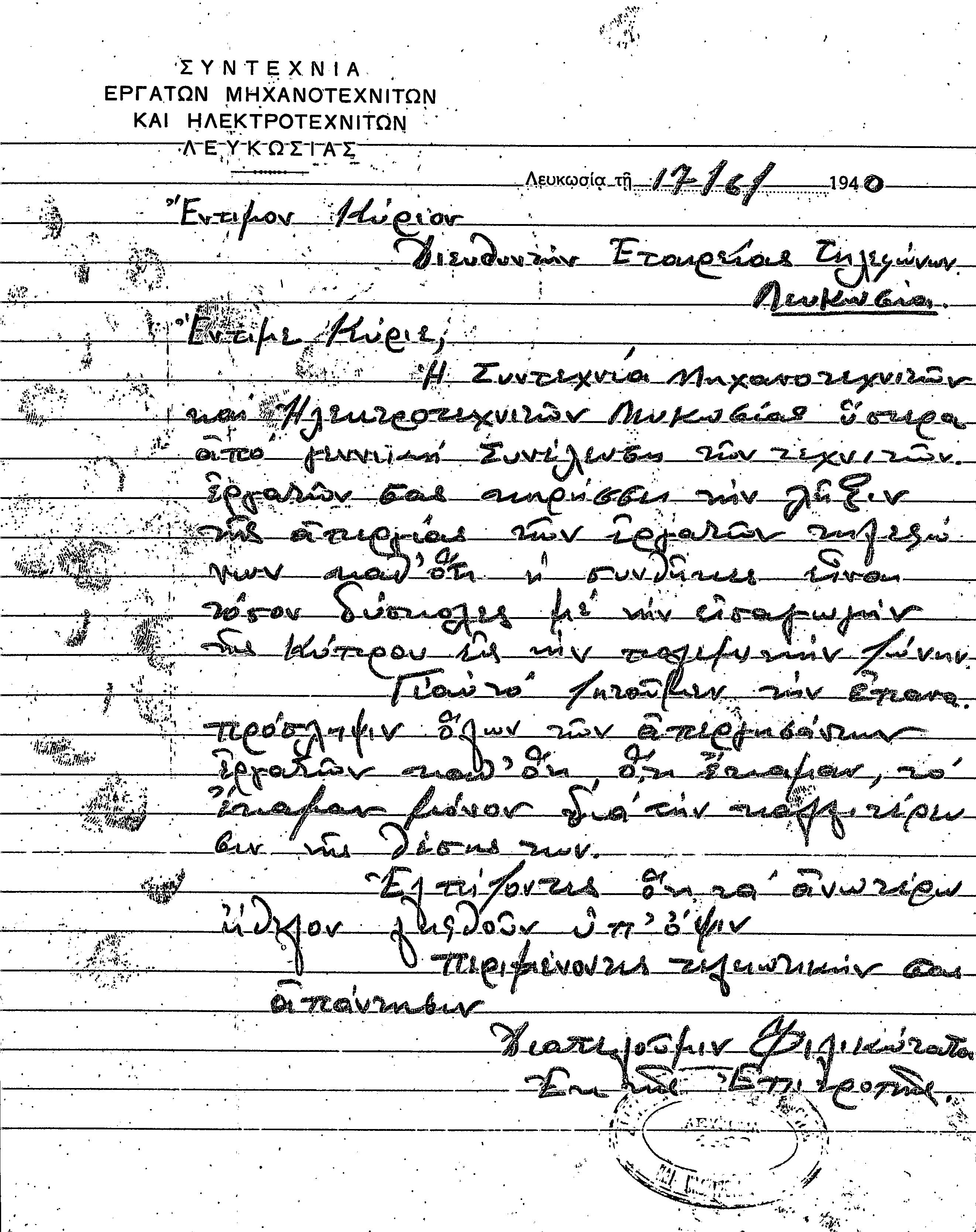 ΕΓΓΡΑΦΑ ΣΥΝΤΕΧΝΙΑΣ ΜΗΧΑΝΟΤΕΧΝΙΤΩΝ & ΗΛΕΚΤΡΟΤΕΧΝΙΤΩΝ ΔΗΜΟΣΙΩΝ ΕΡΓΩΝ ΛΕΥΚΩΣΙΑΣ 1937-1949