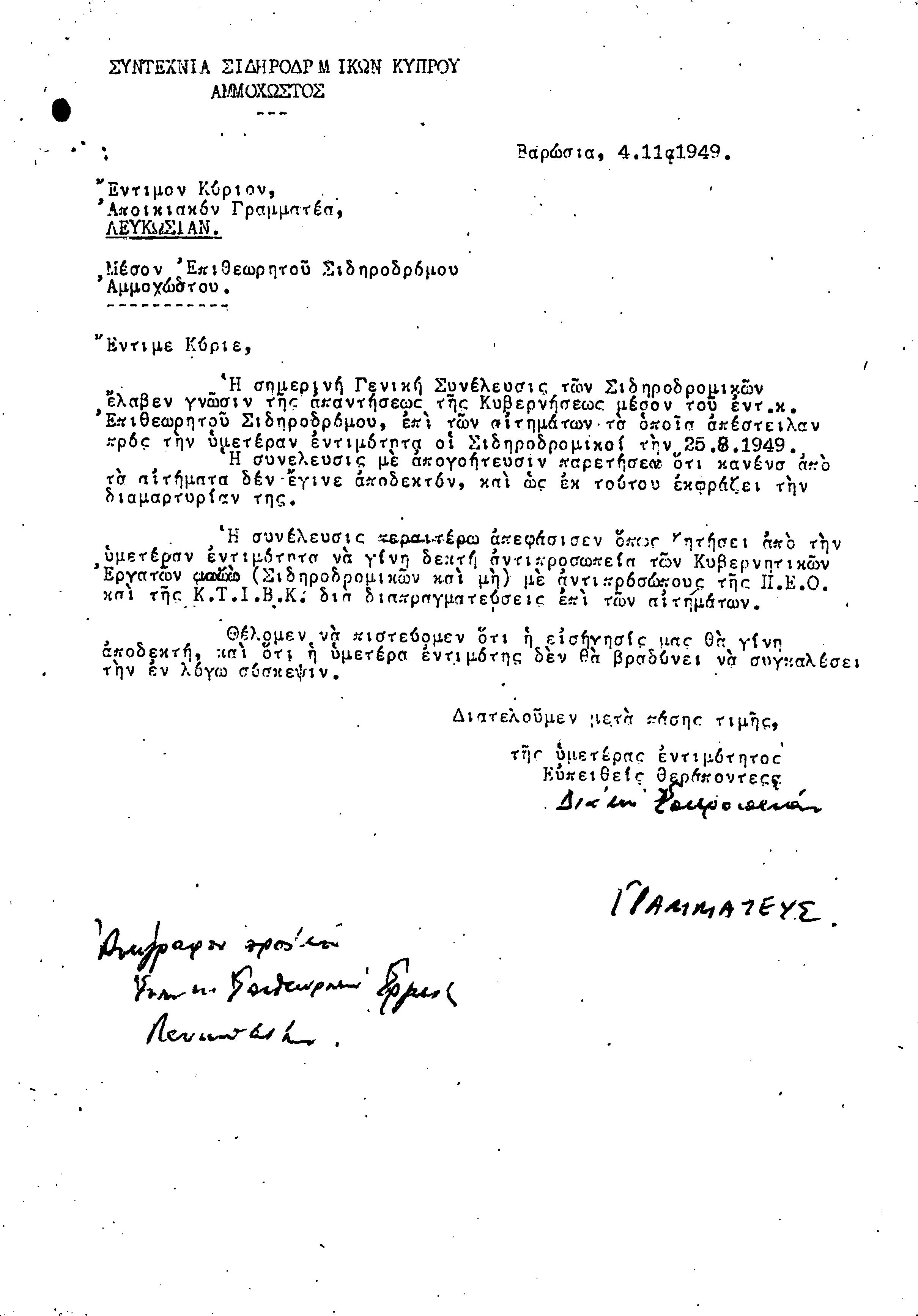 ΠΡΑΚΤΙΚΑ ΣΥΝΤΕΧΝΙΑΣ ΕΡΓΑΤΩΝ ΚΥΒΕΡΝΗΤΙΚΟΥ ΣΙΔΗΡΟΔΡΟΜΟΥ 1947-1950