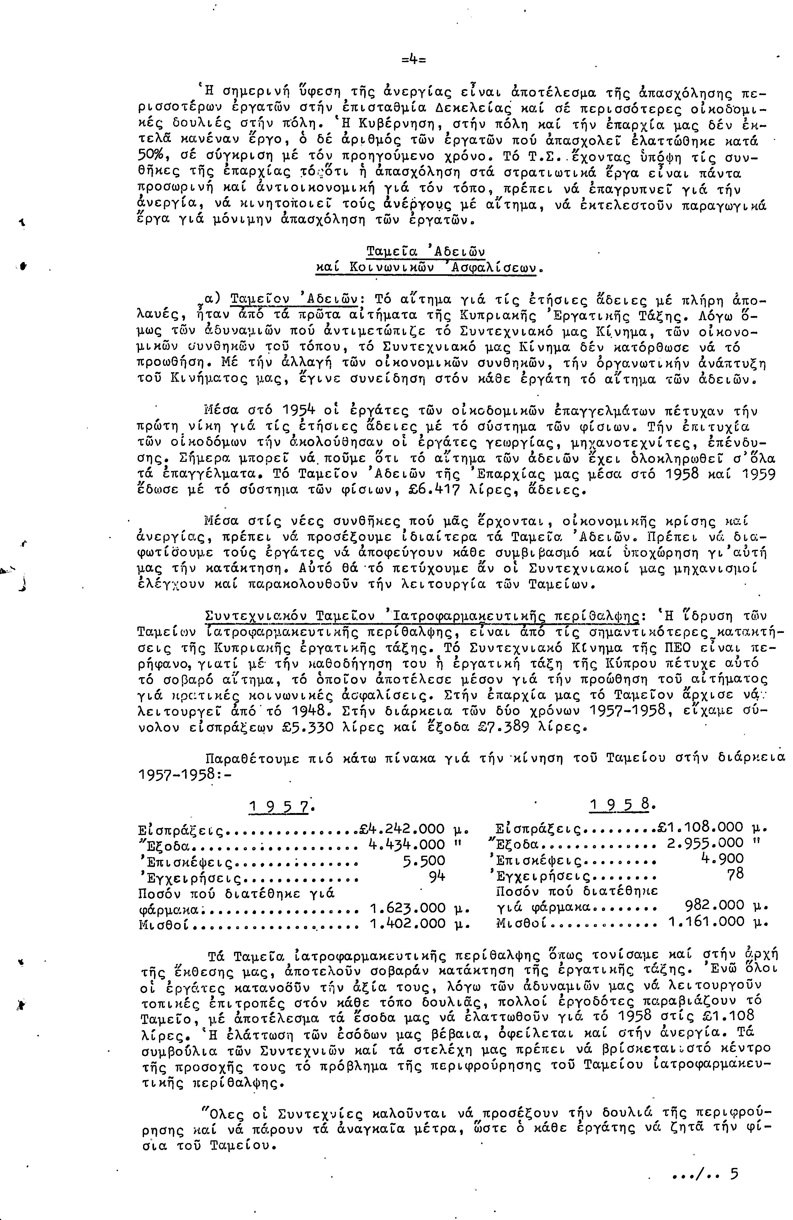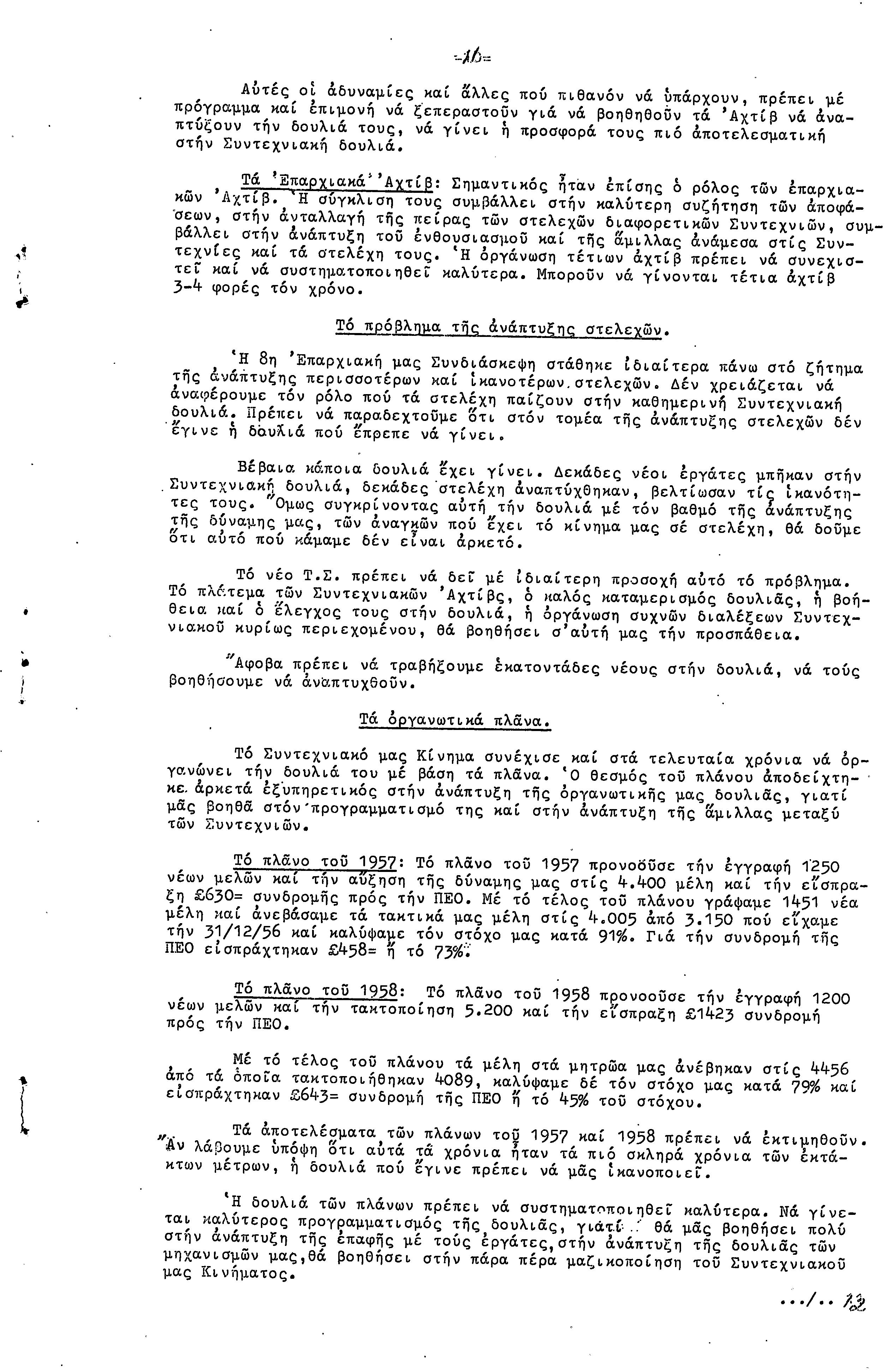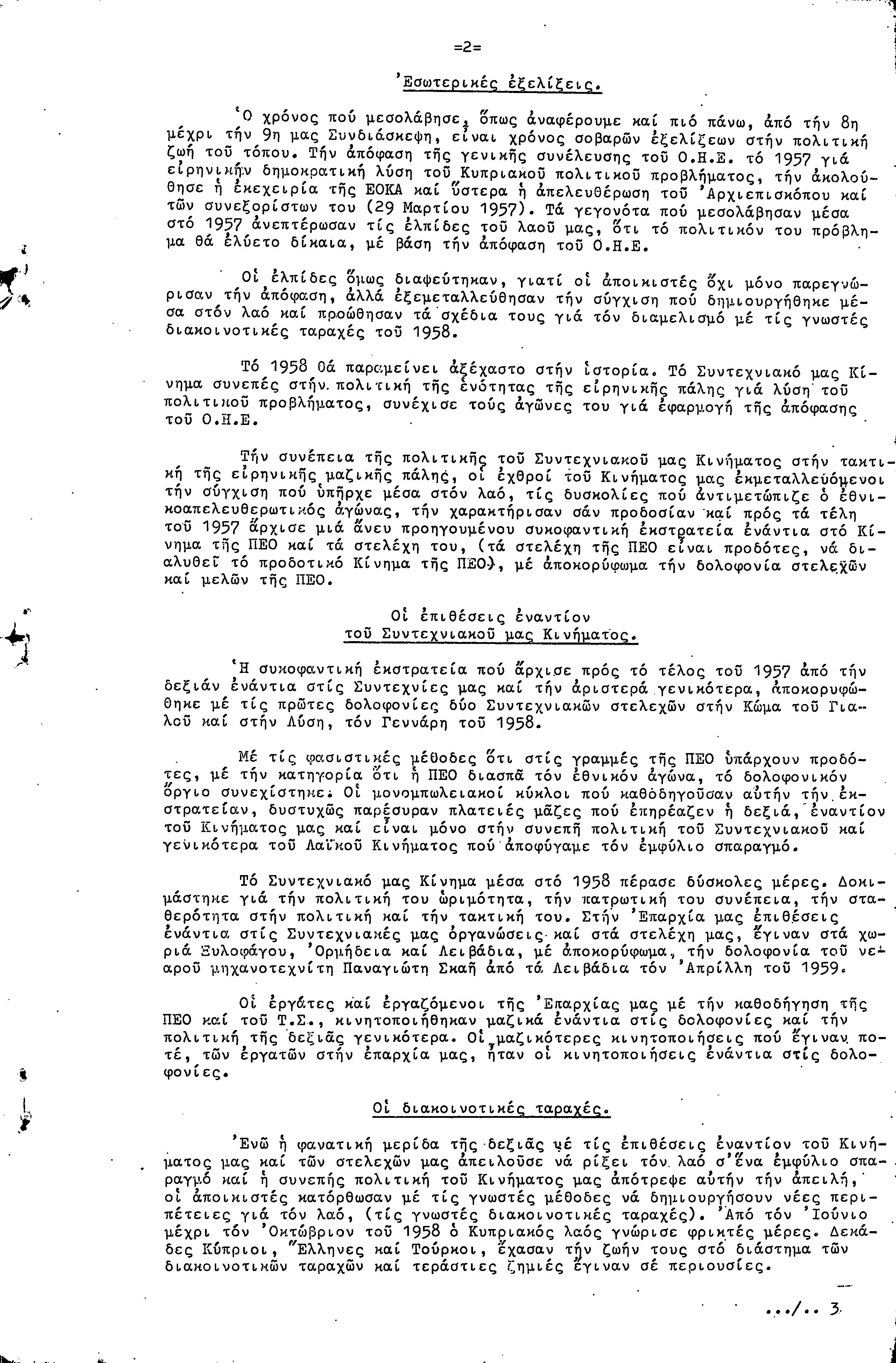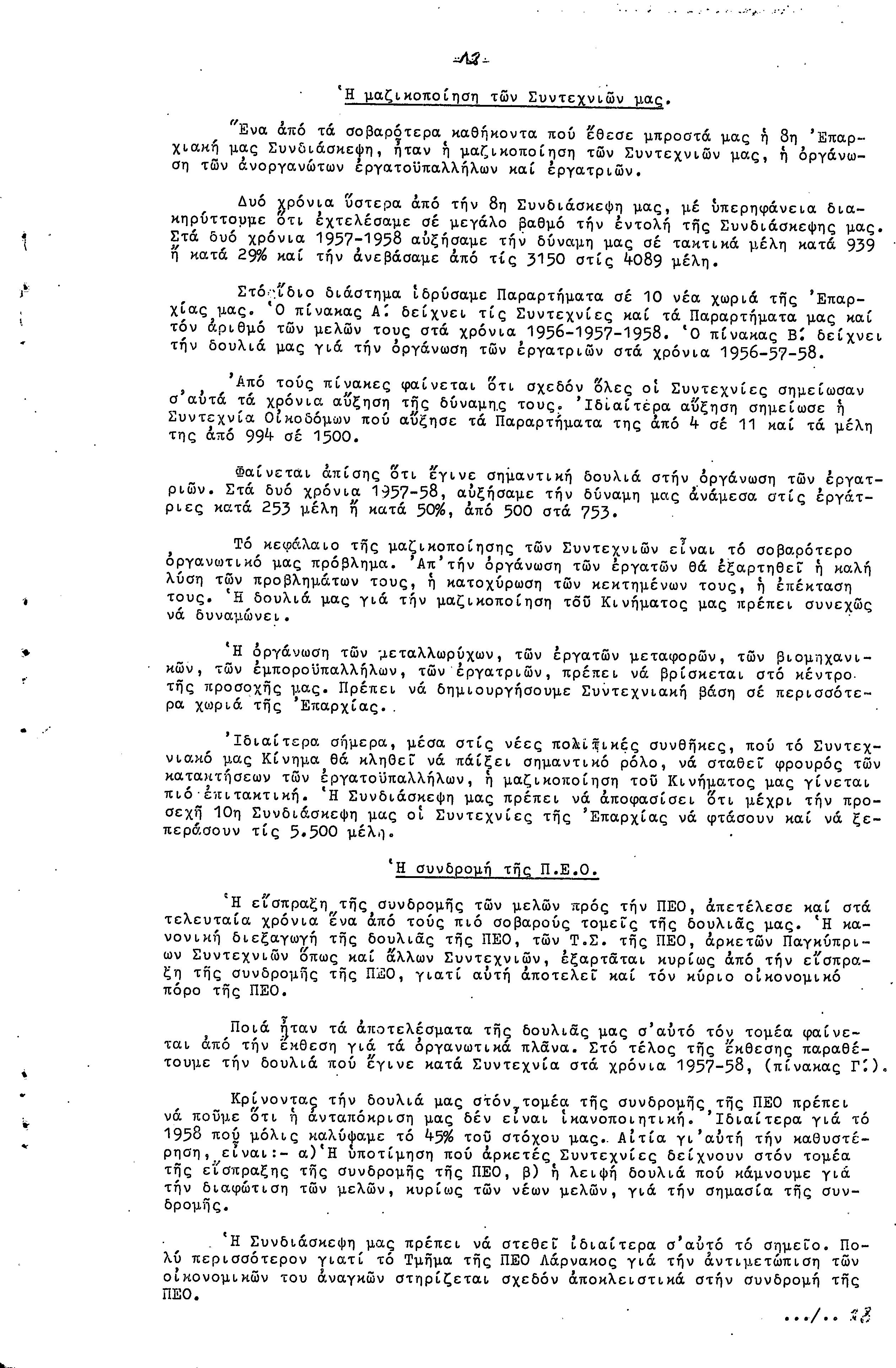 ΠΡΟΣ ΤΗΝ 9η ΕΠΑΡΧΙΑΚΗ ΣΥΝΔΙΑΣΚΕΨΗ Τ.Σ. ΠΕΟ ΛΑΡΝΑΚΑΣ, 10.1959 ( ΕΚΘΕΣΗ ΔΡΑΣΗΣ)