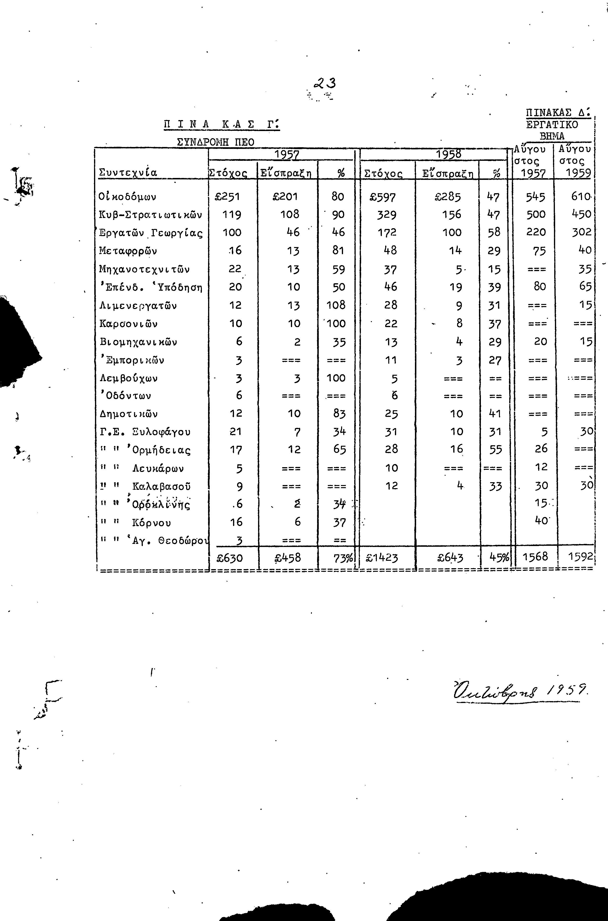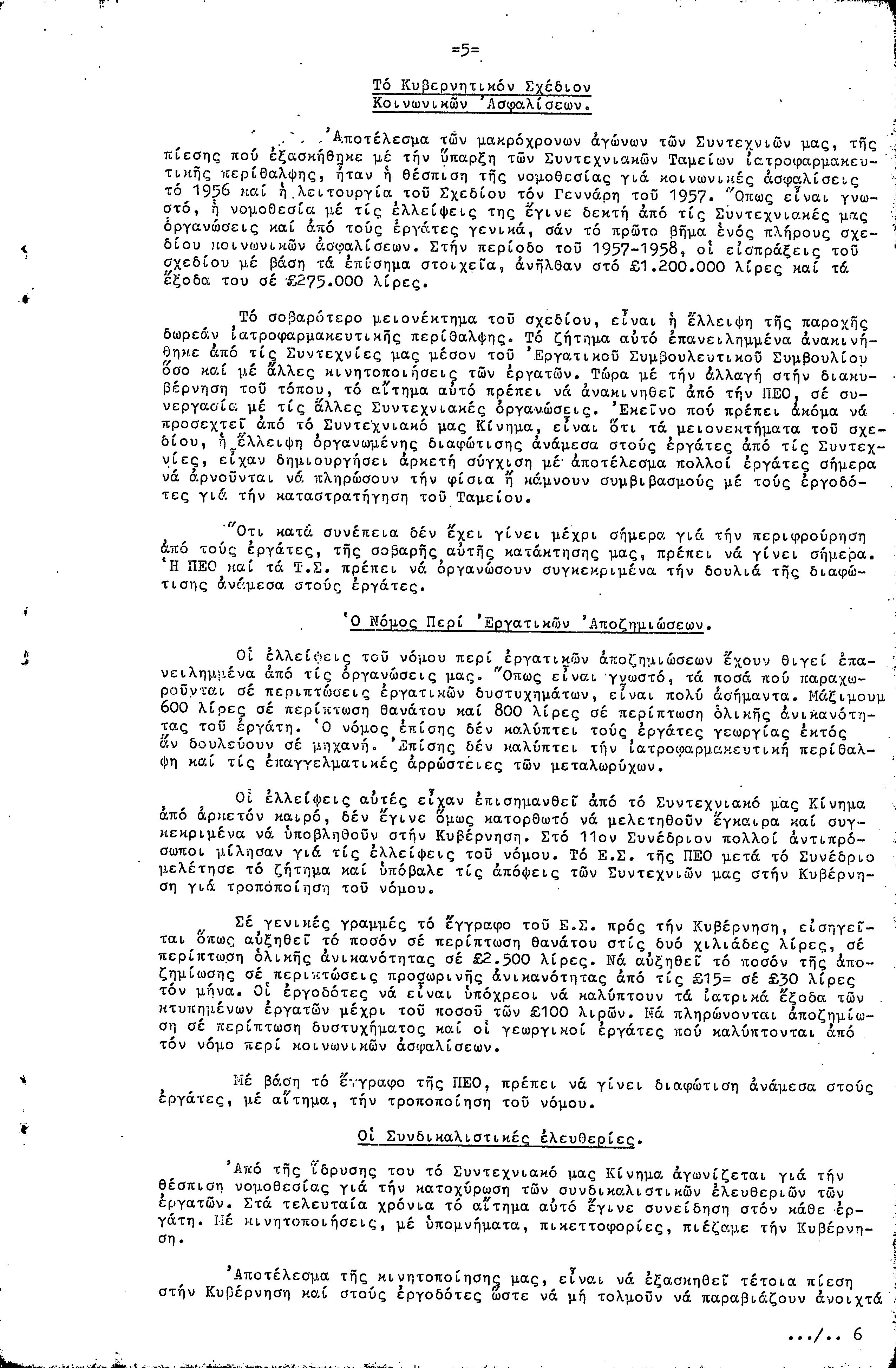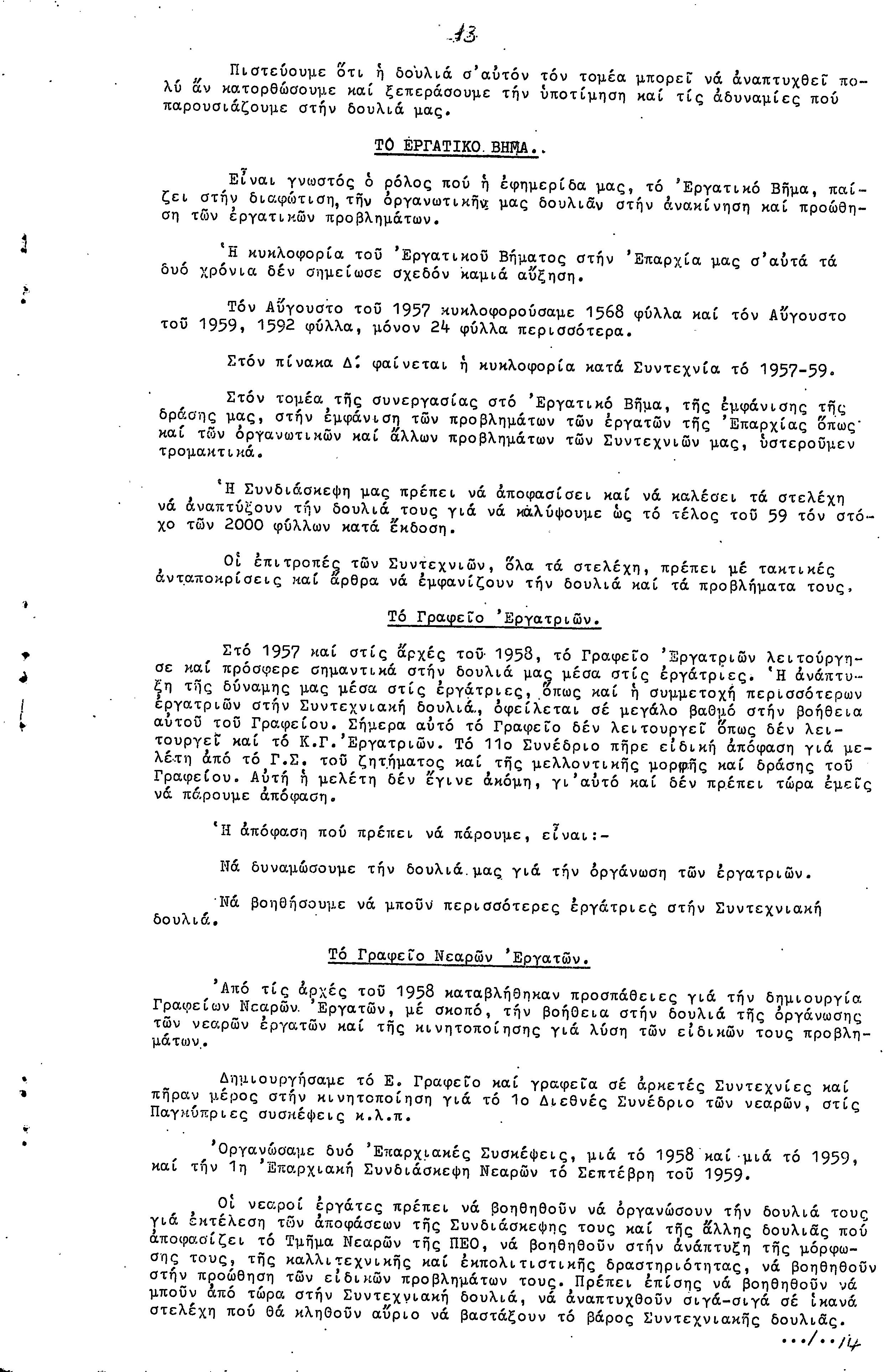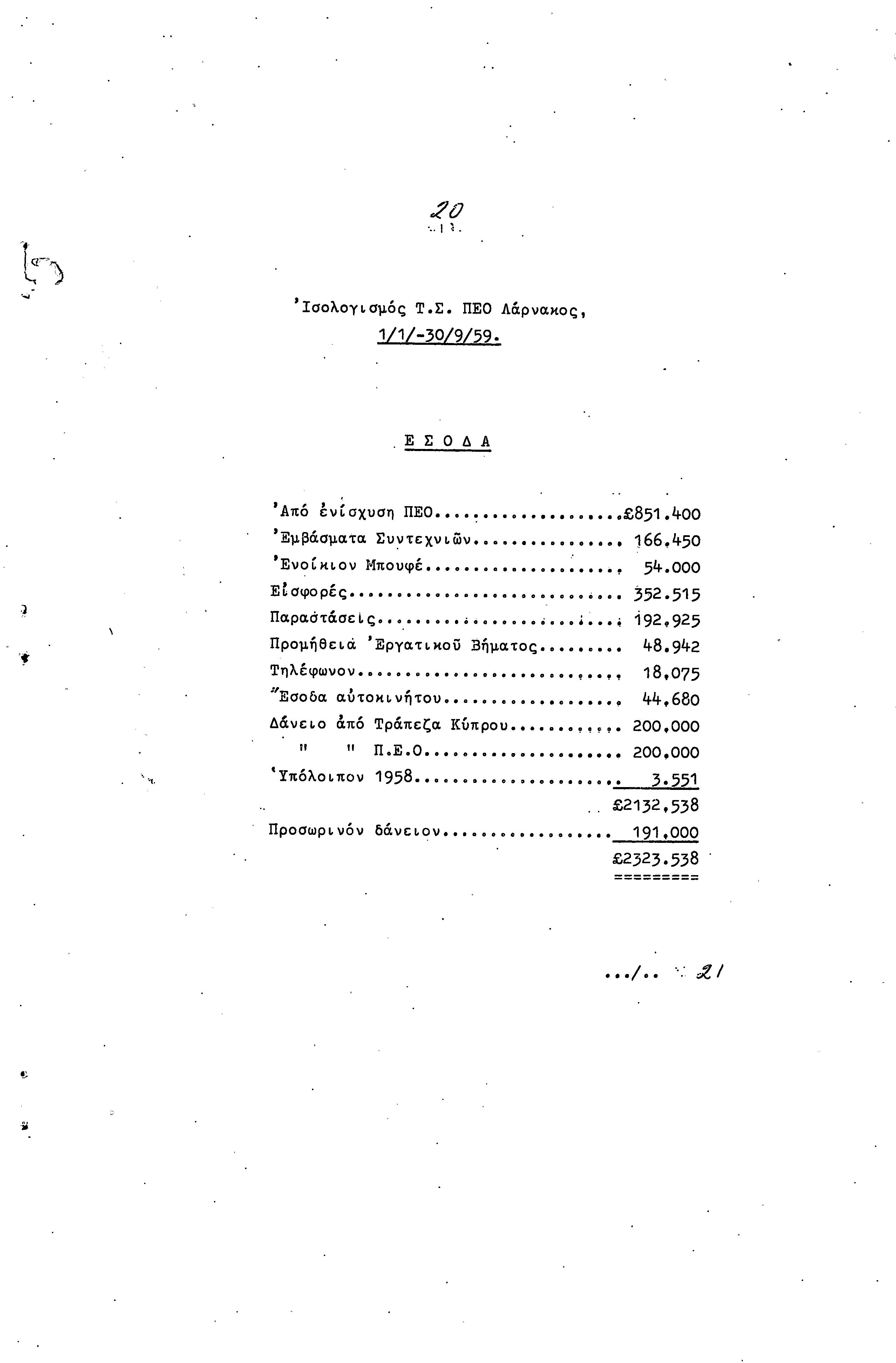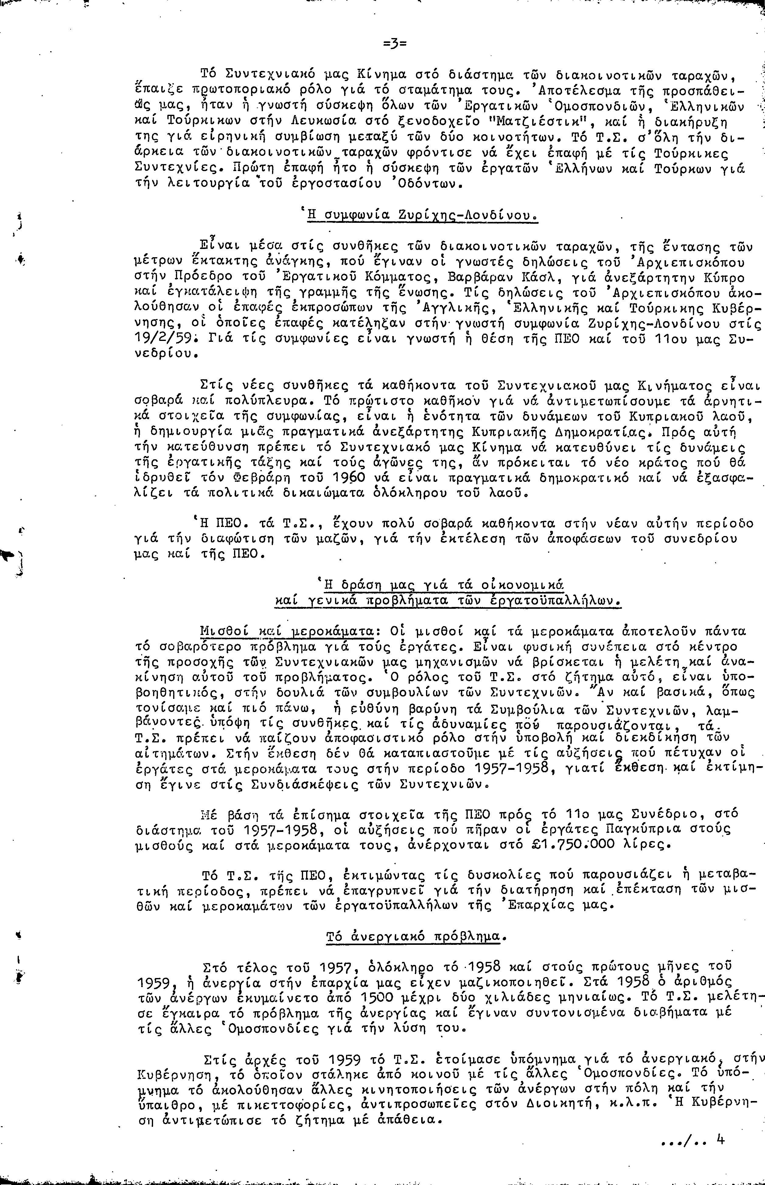 ΠΡΟΣ ΤΗΝ 9η ΕΠΑΡΧΙΑΚΗ ΣΥΝΔΙΑΣΚΕΨΗ Τ.Σ. ΠΕΟ ΛΑΡΝΑΚΑΣ, 10.1959 ( ΕΚΘΕΣΗ ΔΡΑΣΗΣ)
