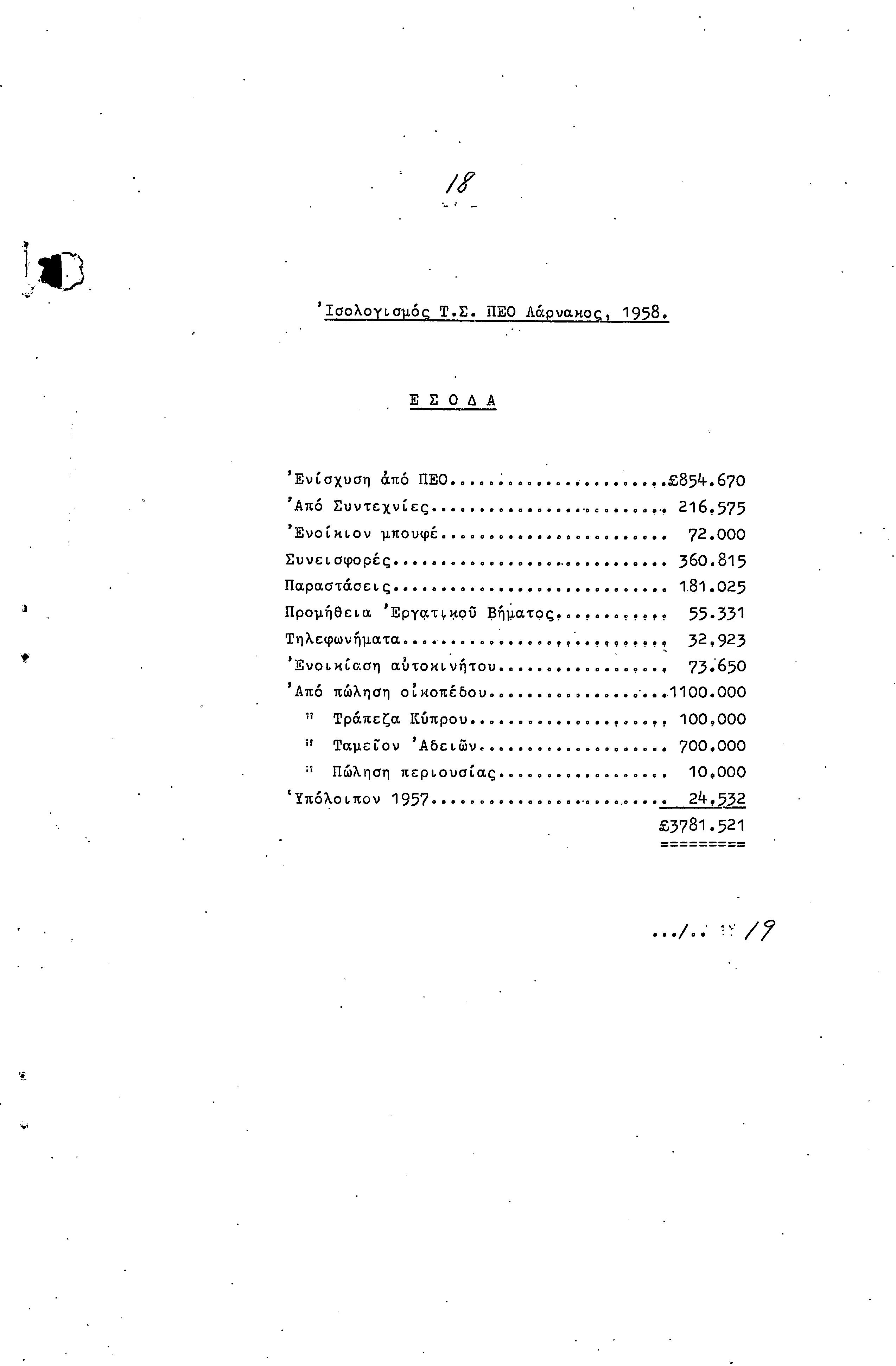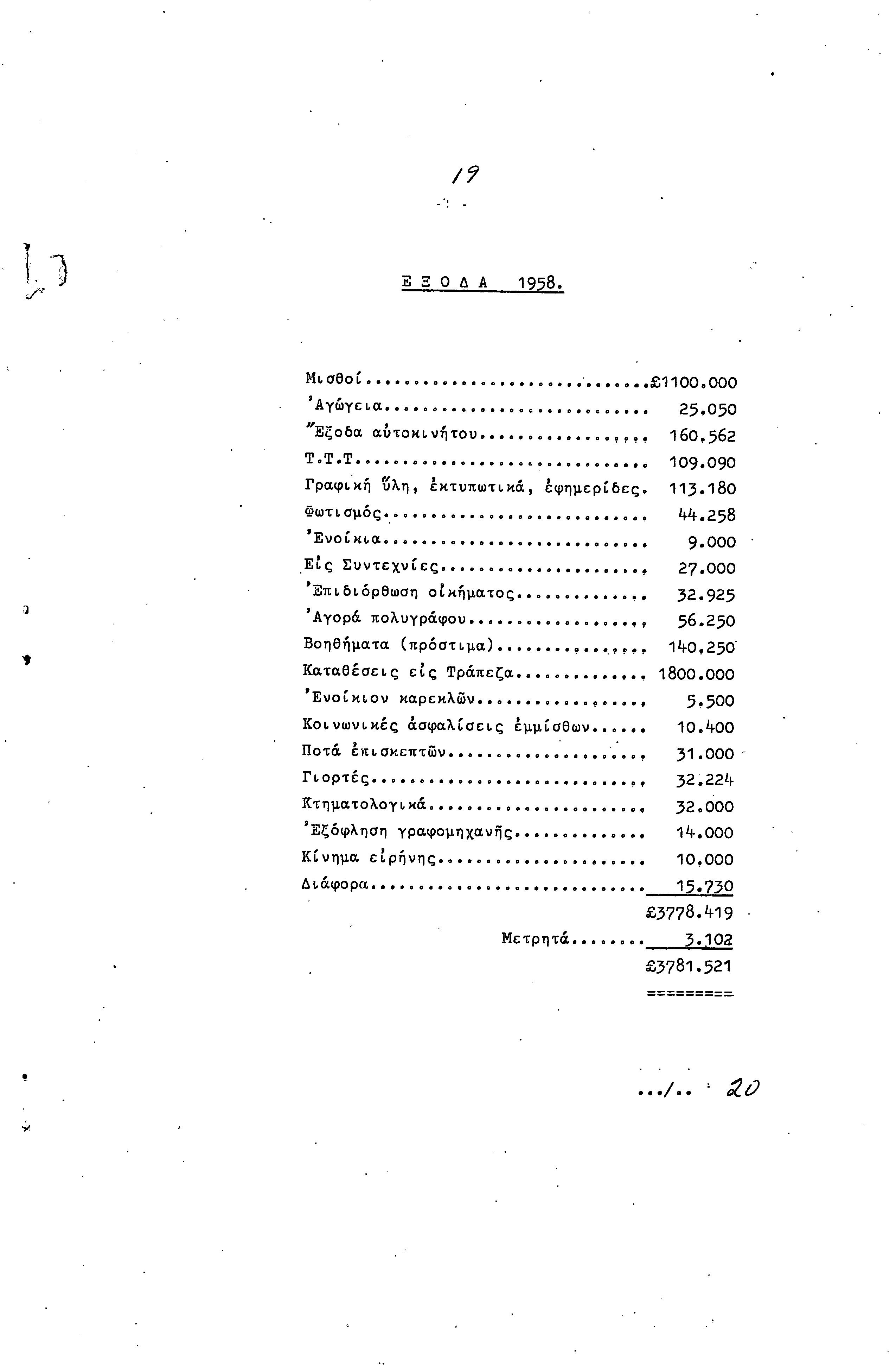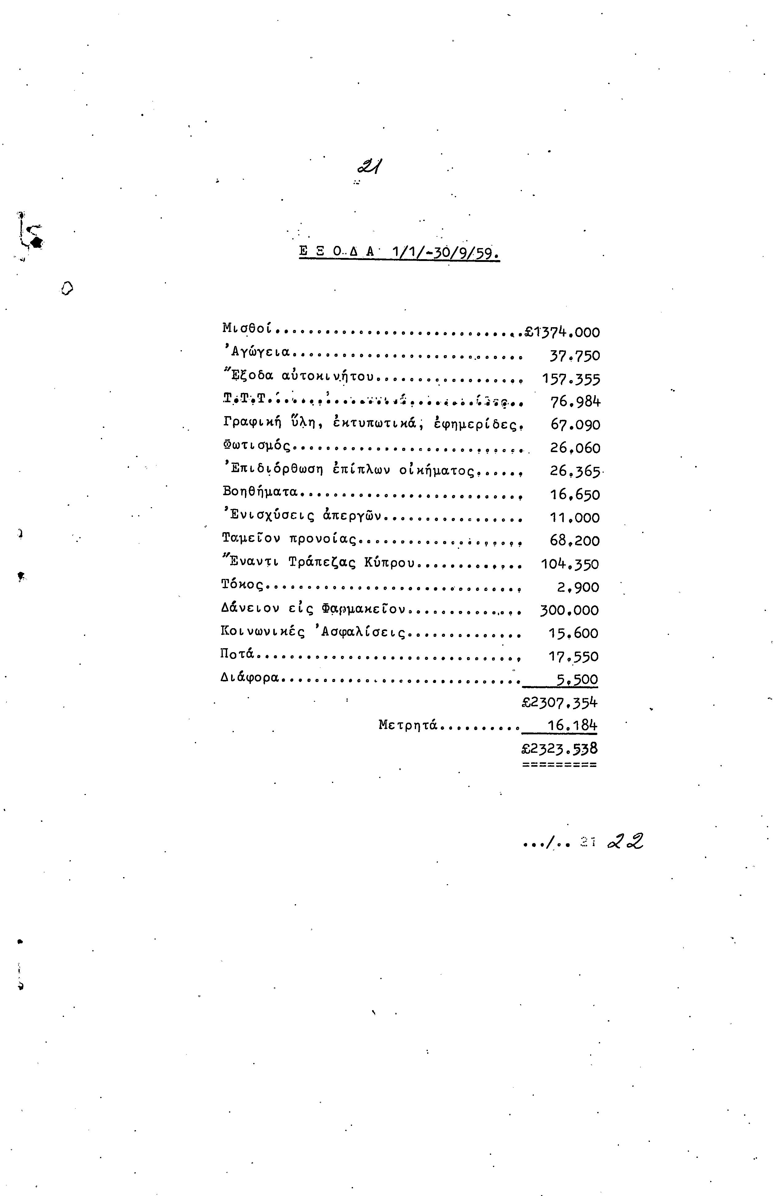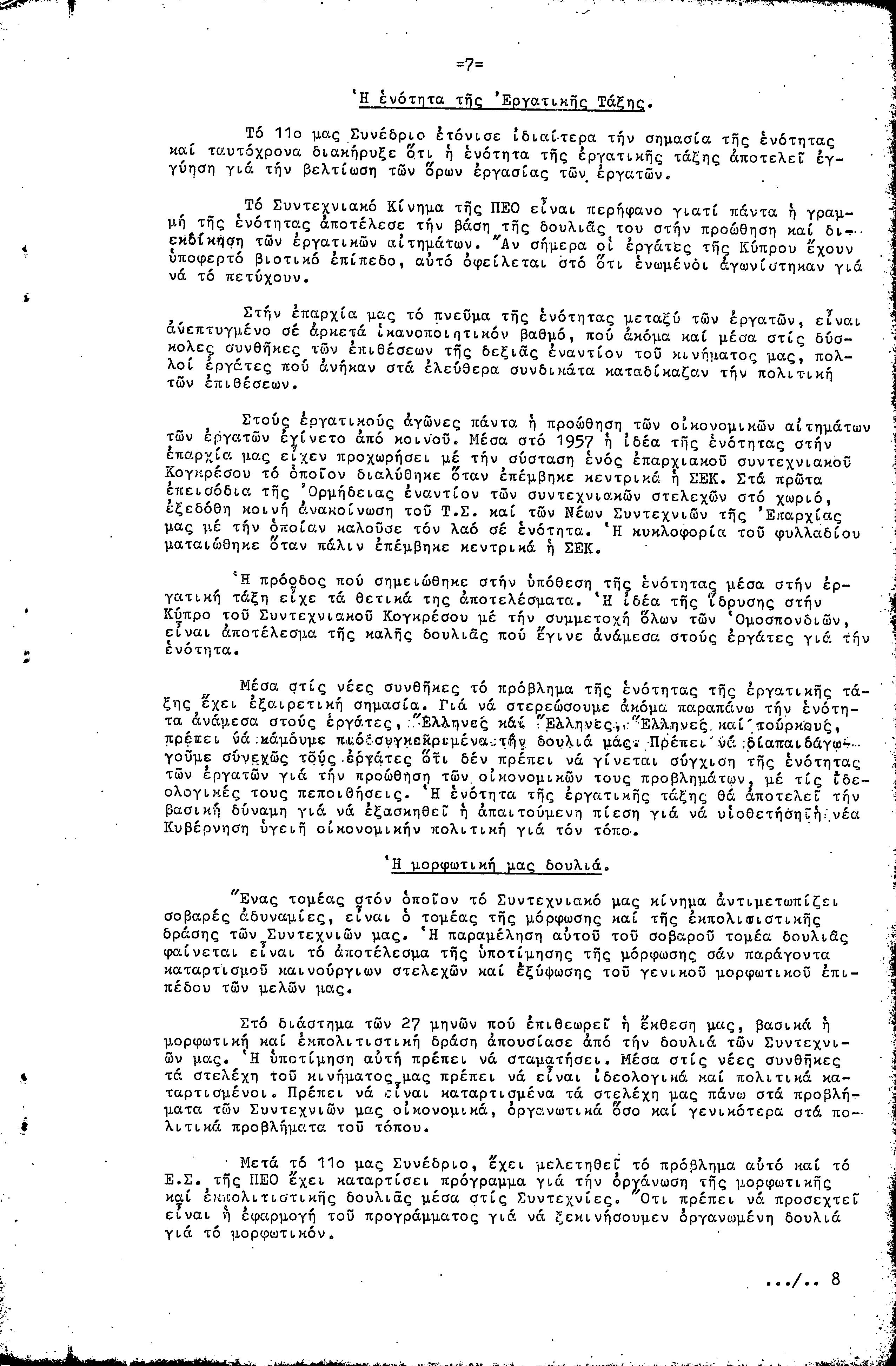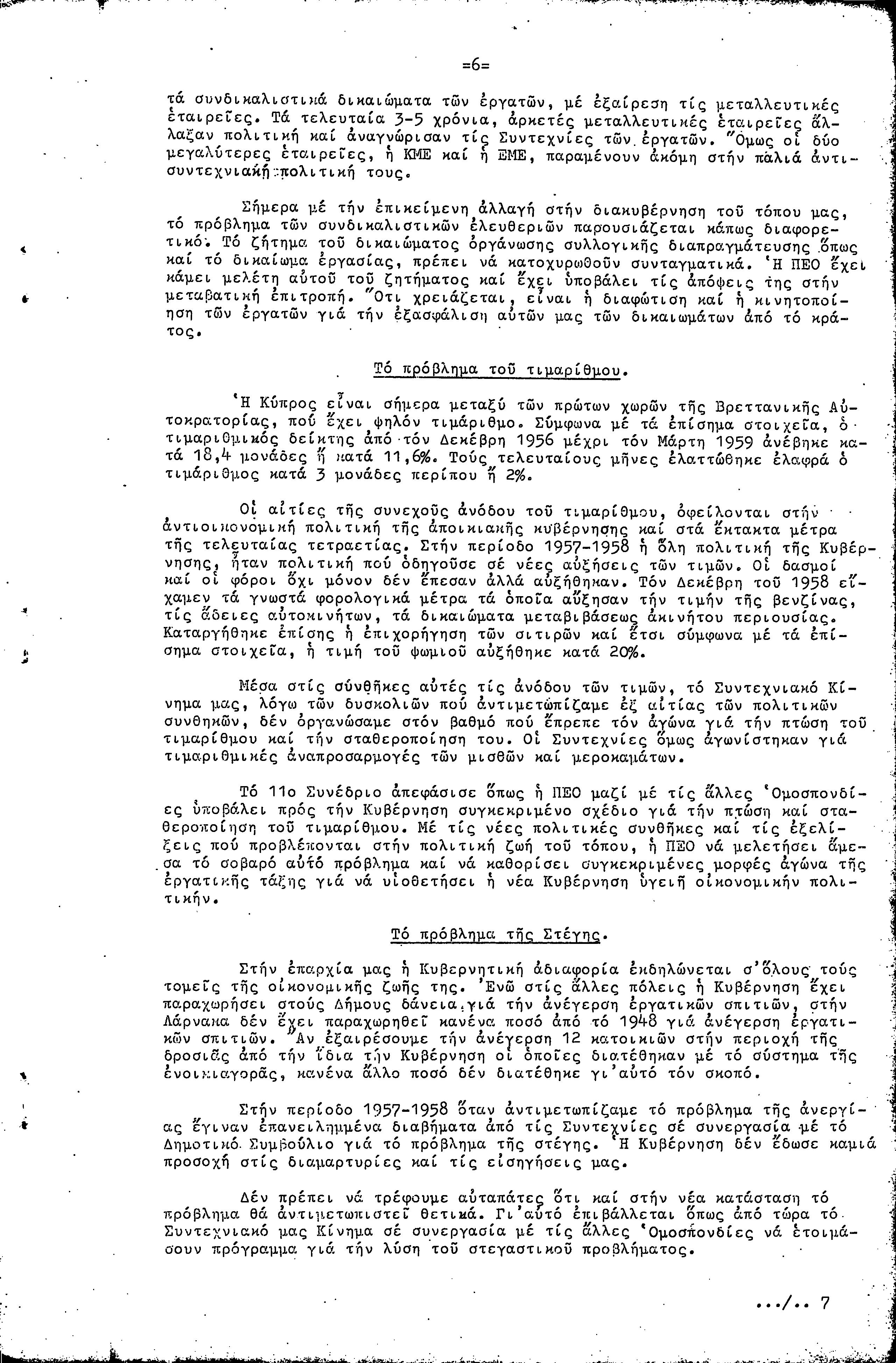 ΠΡΟΣ ΤΗΝ 9η ΕΠΑΡΧΙΑΚΗ ΣΥΝΔΙΑΣΚΕΨΗ Τ.Σ. ΠΕΟ ΛΑΡΝΑΚΑΣ, 10.1959 ( ΕΚΘΕΣΗ ΔΡΑΣΗΣ)