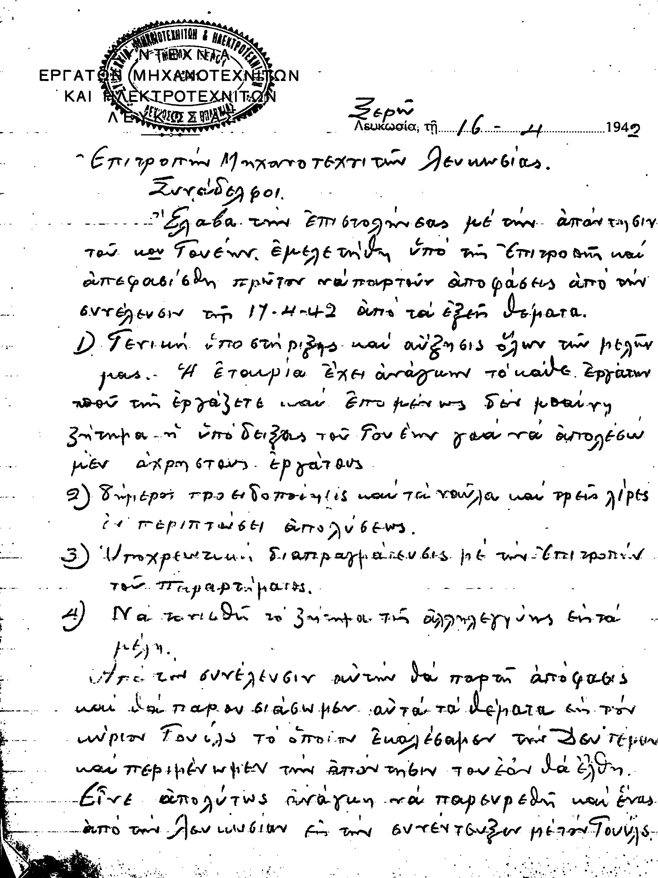 ΕΓΓΡΑΦΑ ΣΥΝΤΕΧΝΙΑΣ ΜΗΧΑΝΟΤΕΧΝΙΤΩΝ ΚΑΙ ΗΛΕΚΤΡΟΤΕΧΝΙΤΩΝ 1939-1953