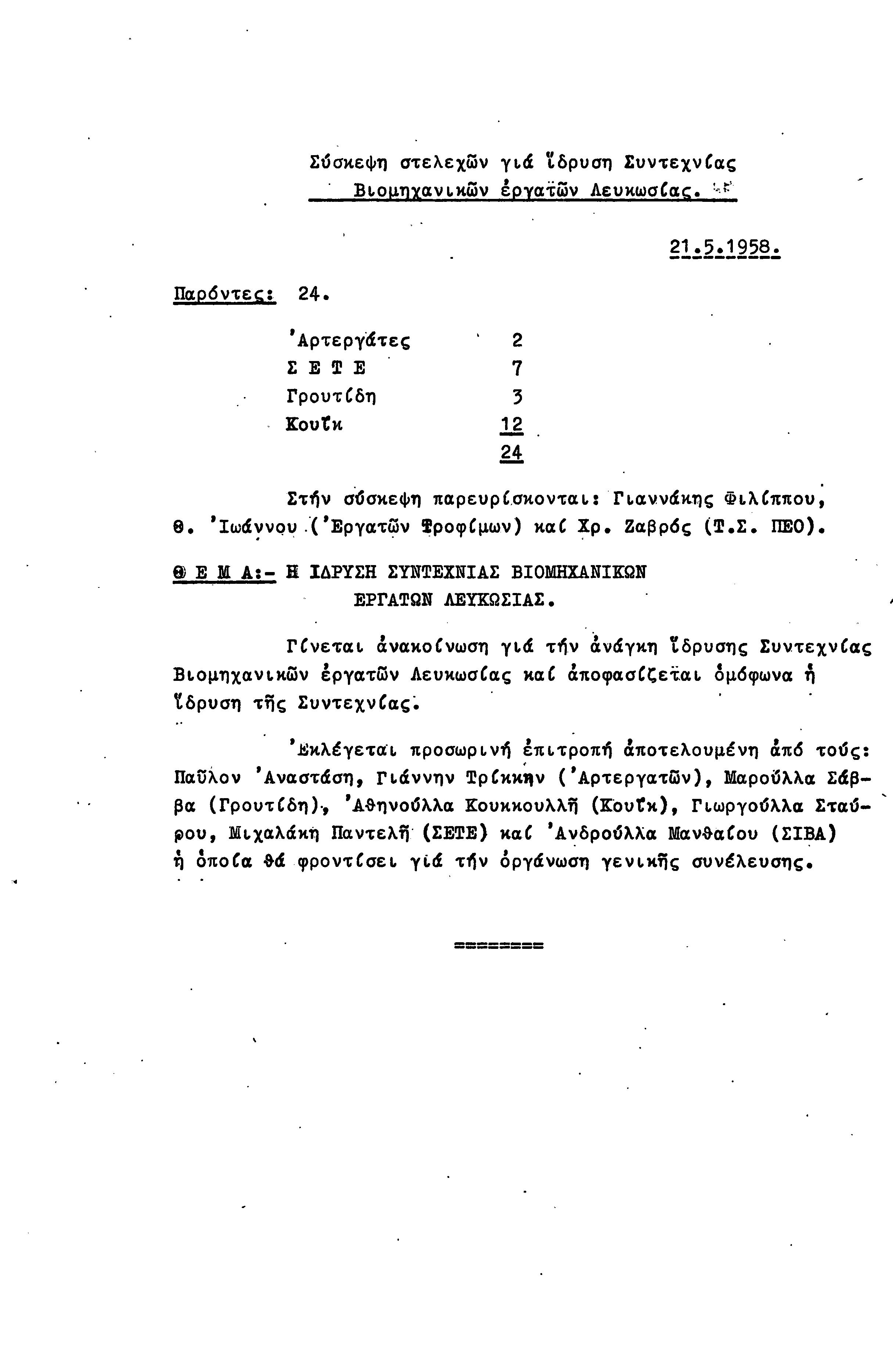 ΕΓΓΡΑΦΑ ΣΥΝΤΕΧΝΙΑΣ ΕΜΠΟΡΙΚΩΝ ΚΑΙ ΒΙΟΜΗΜΑΧΑΝΙΚΩΝ ΕΡΓΑΤΟΫΠΑΛΛΗΛΩΝ ΚΥΠΡΟΥ 1958-1978
