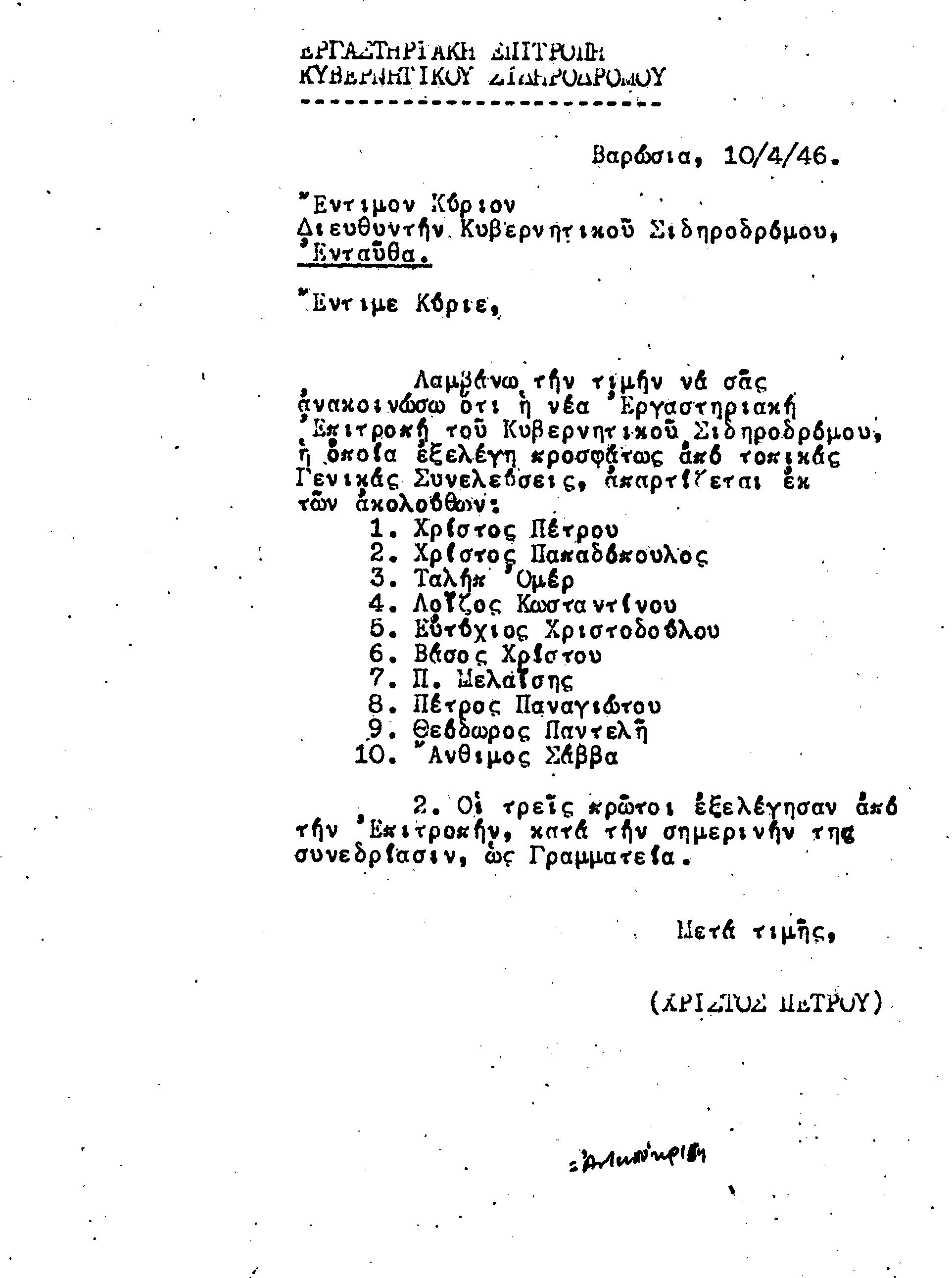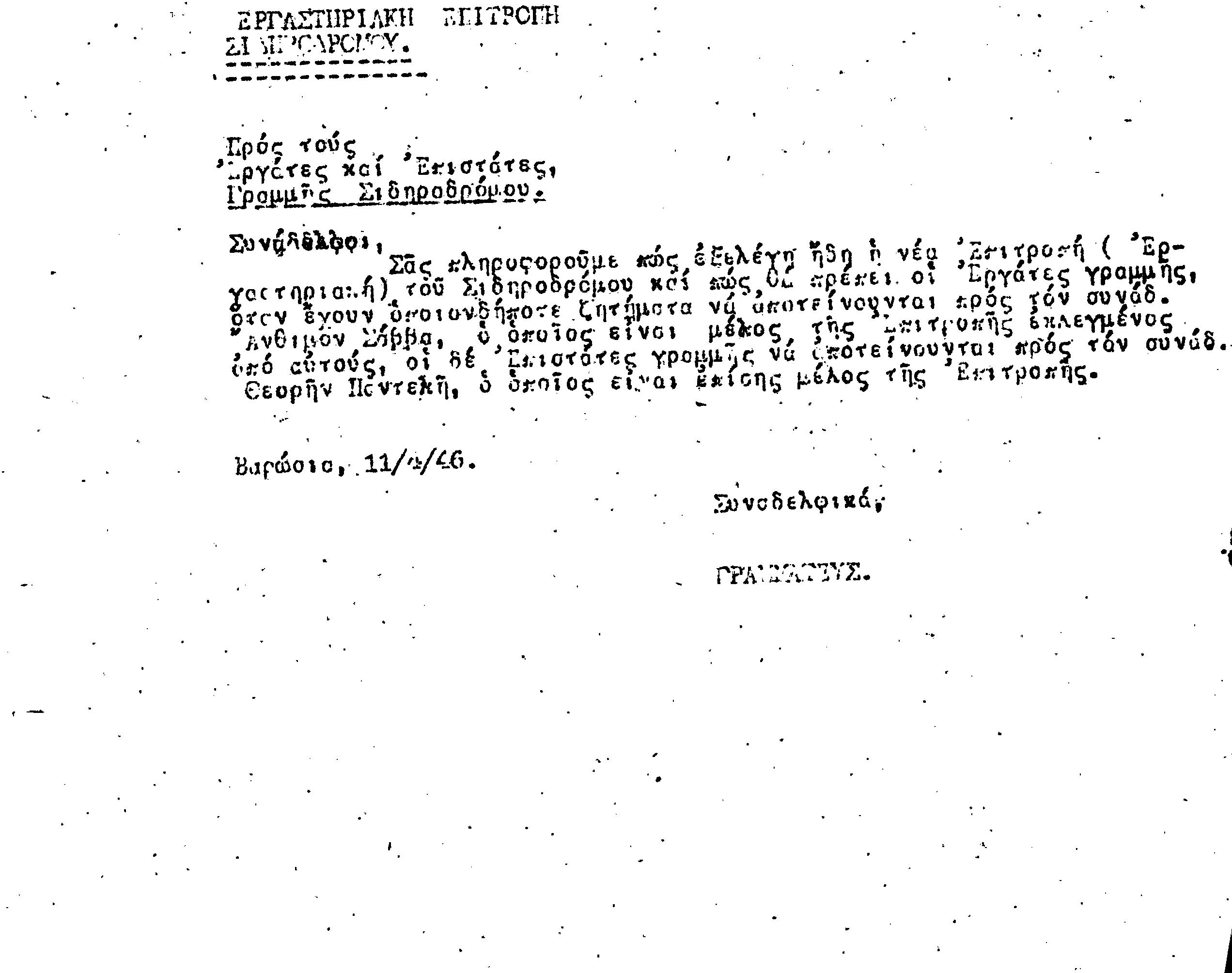 ΣΥΝΤΕΧΝΙΑ ΕΡΓΑΤΩΝ ΚΥΒΕΡΝΗΤΙΚΟΥ ΣΙΔΗΡΟΔΡΟΜΟΥ ΑΜΜΟΧΩΣΤΟΥ 1942-1947