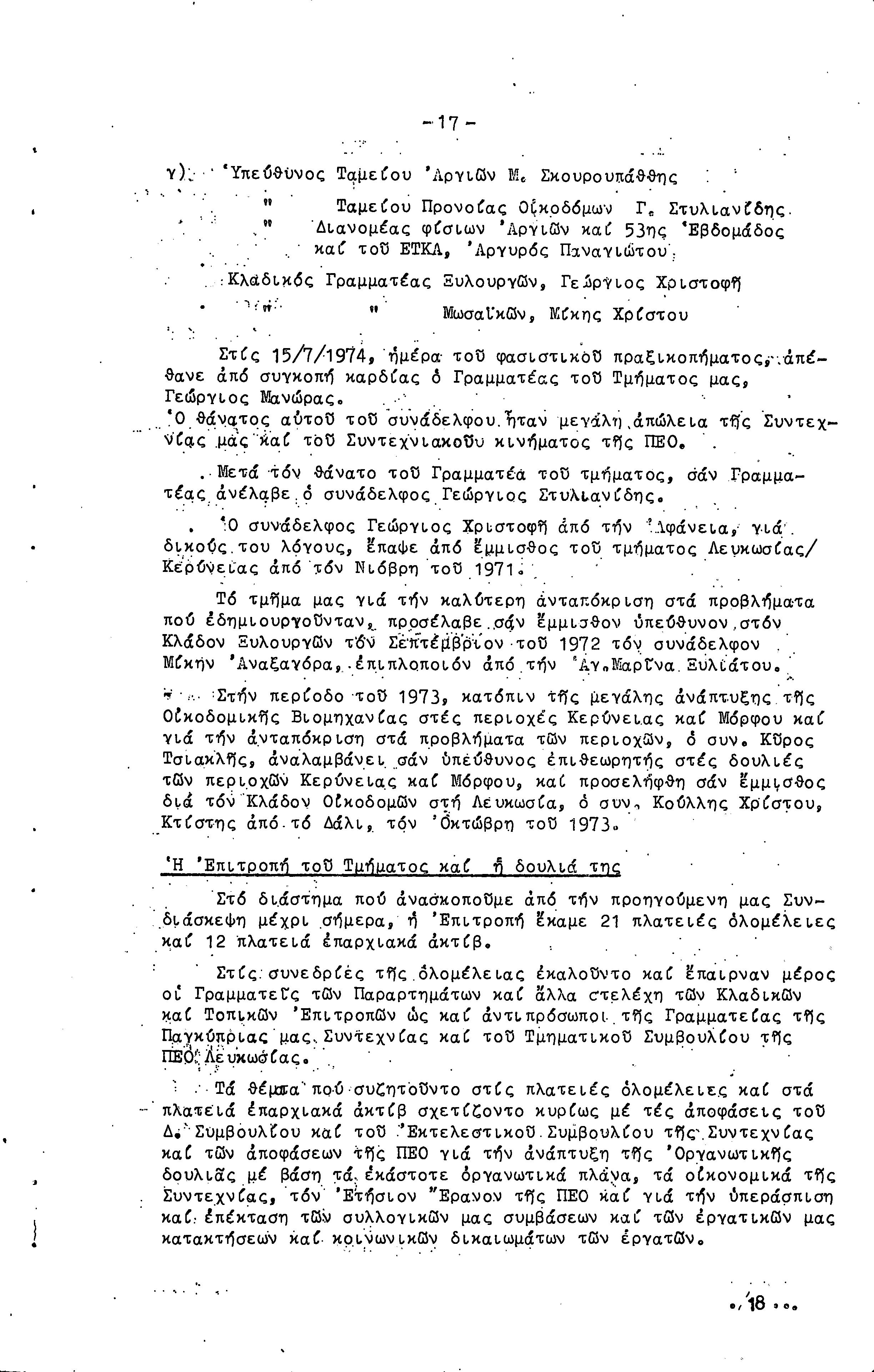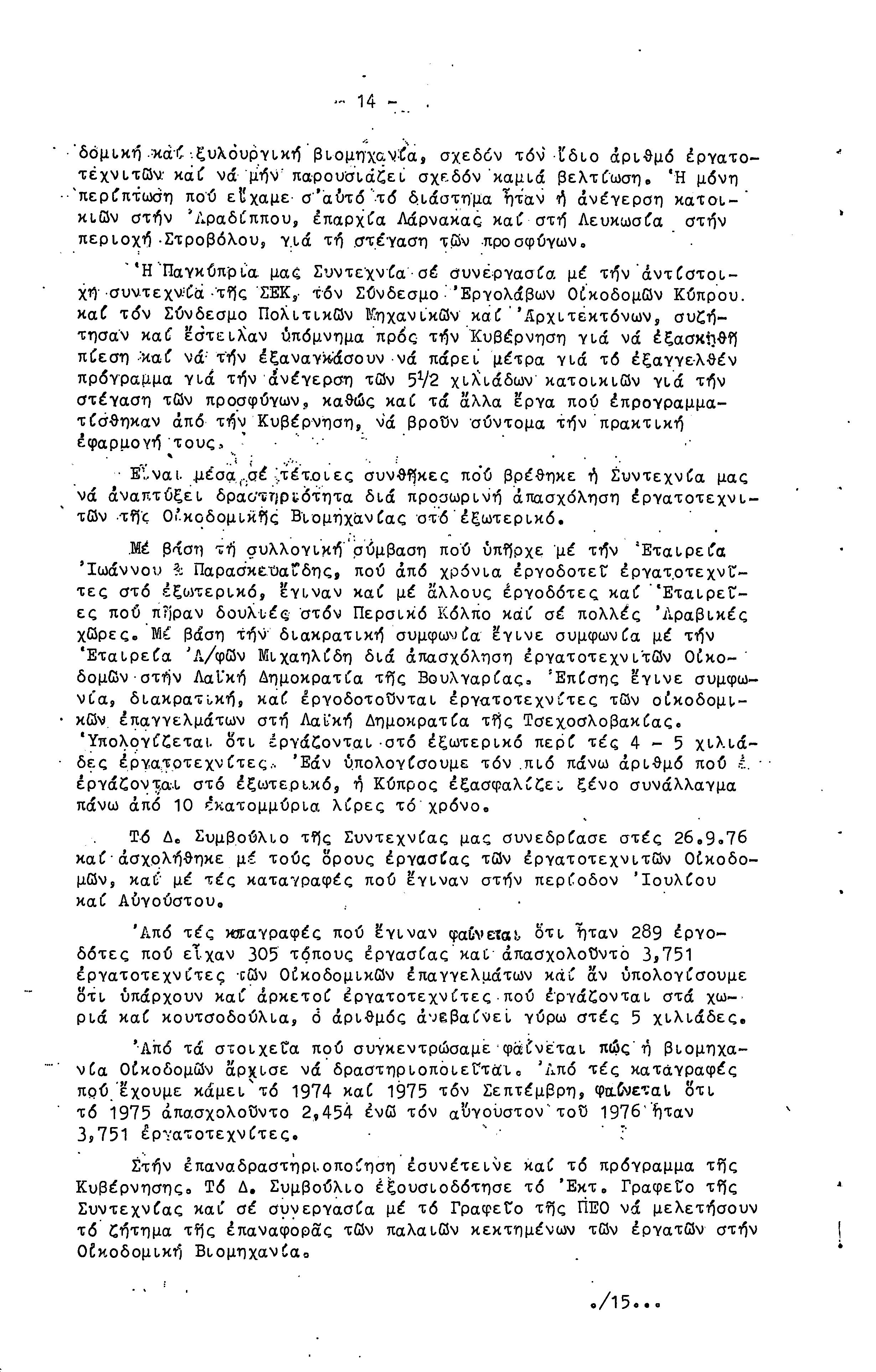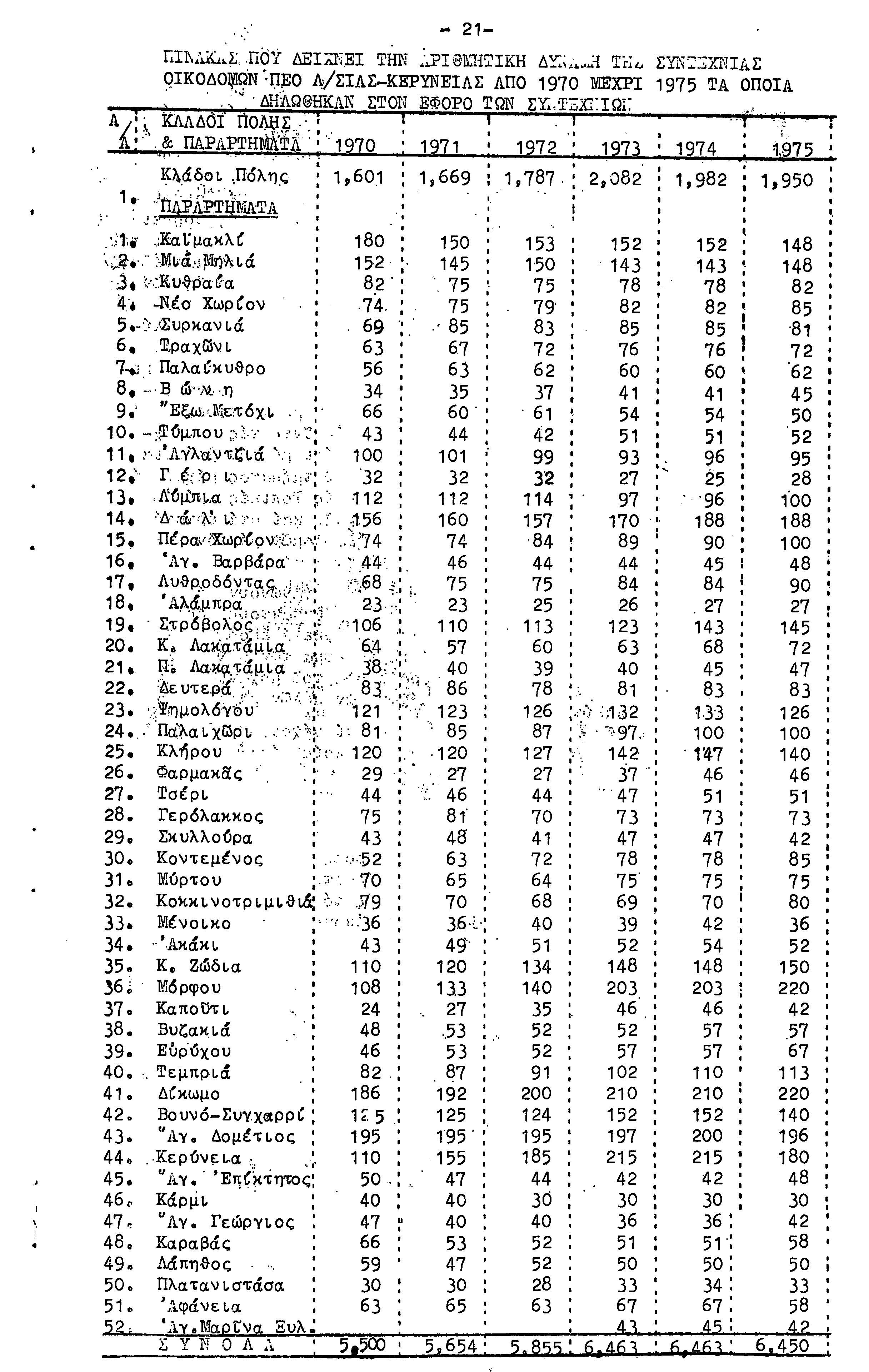 ΕΚΘΕΣΗ ΔΡΑΣΗΣ ΕΠΙΤΡΟΠΗΣ ΣΥΝΤΕΧΝΙΑΣ ΟΙΚΟΔΟΜΩΝ ΤΜΗΜΑΤΟΣ ΛΕΥΚΩΣΙΑΣ-ΚΕΡΥΝΕΙΑΣ 27.09.1970-31.09.1976