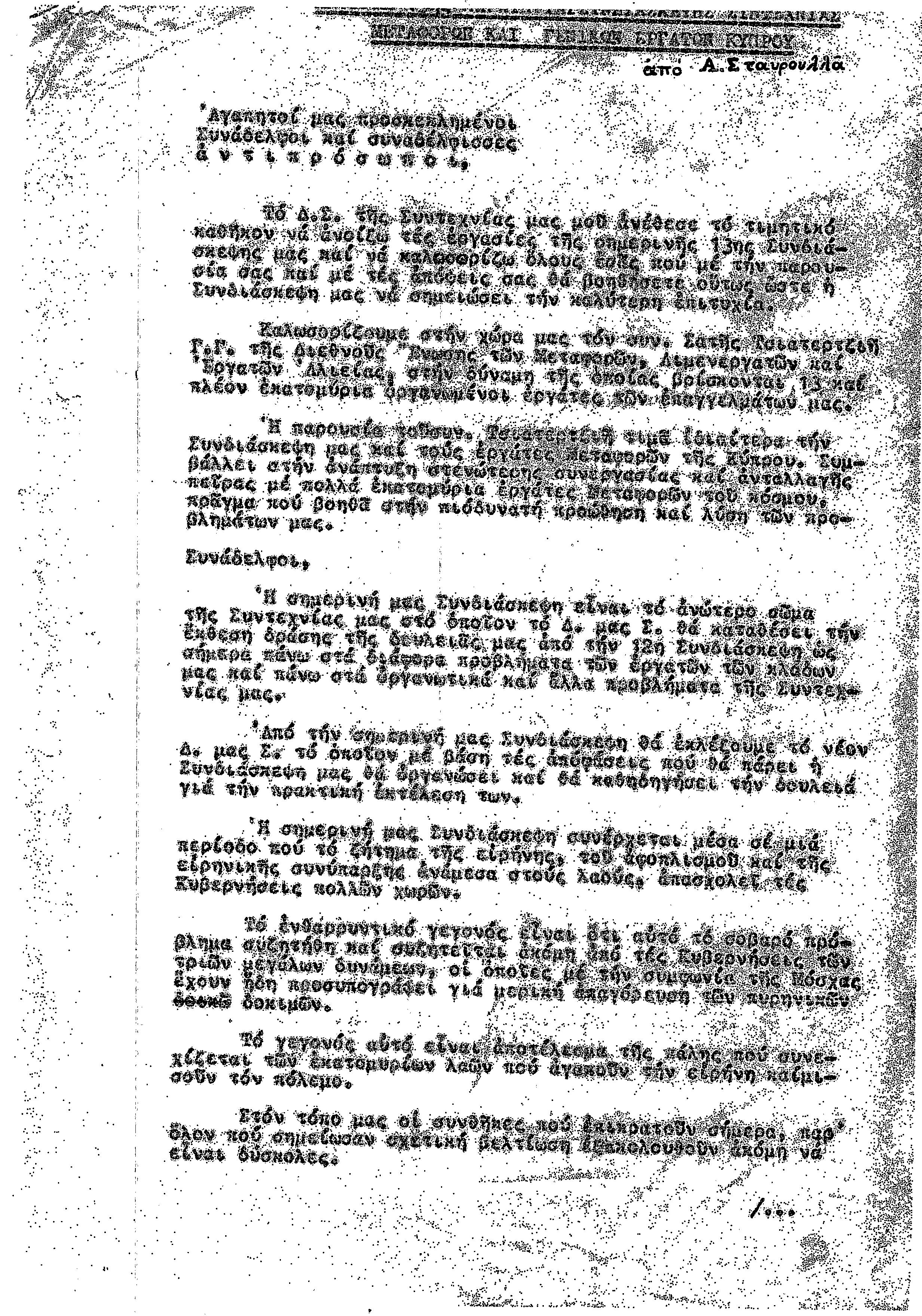 ΠΡΑΚΤΙΚΑ ΣΥΝΤΕΧΝΙΑΣ ΜΕΤΑΦΟΡΩΝ, ΛΙΜΕΝΕΡΓΑΤΩΝ ΚΑΙ ΓΕΝΙΚΩΝ ΕΡΓΑΤΟΫΠΑΛΛΗΛΩΝ ΚΥΠΡΟΥ 1961-1964
