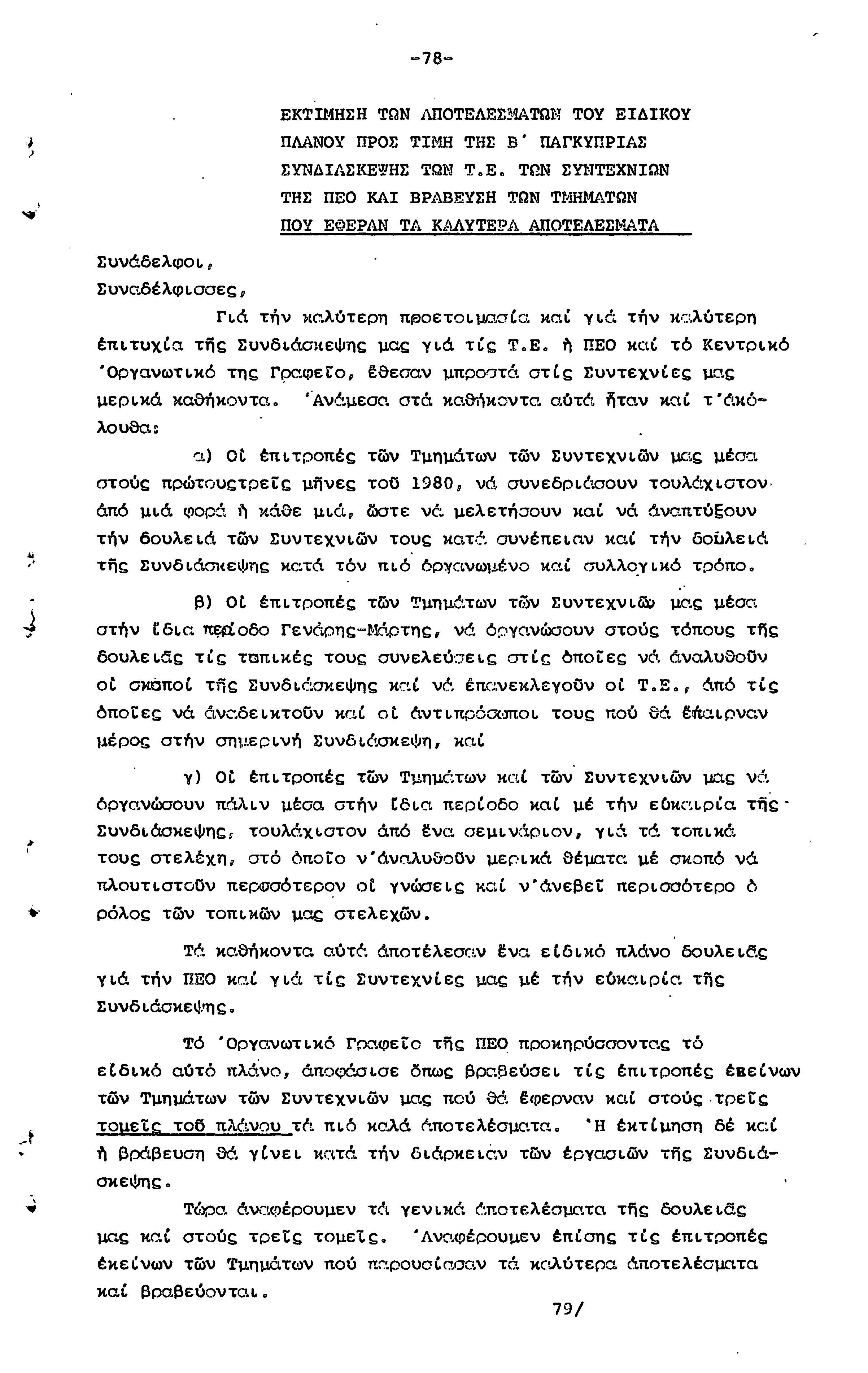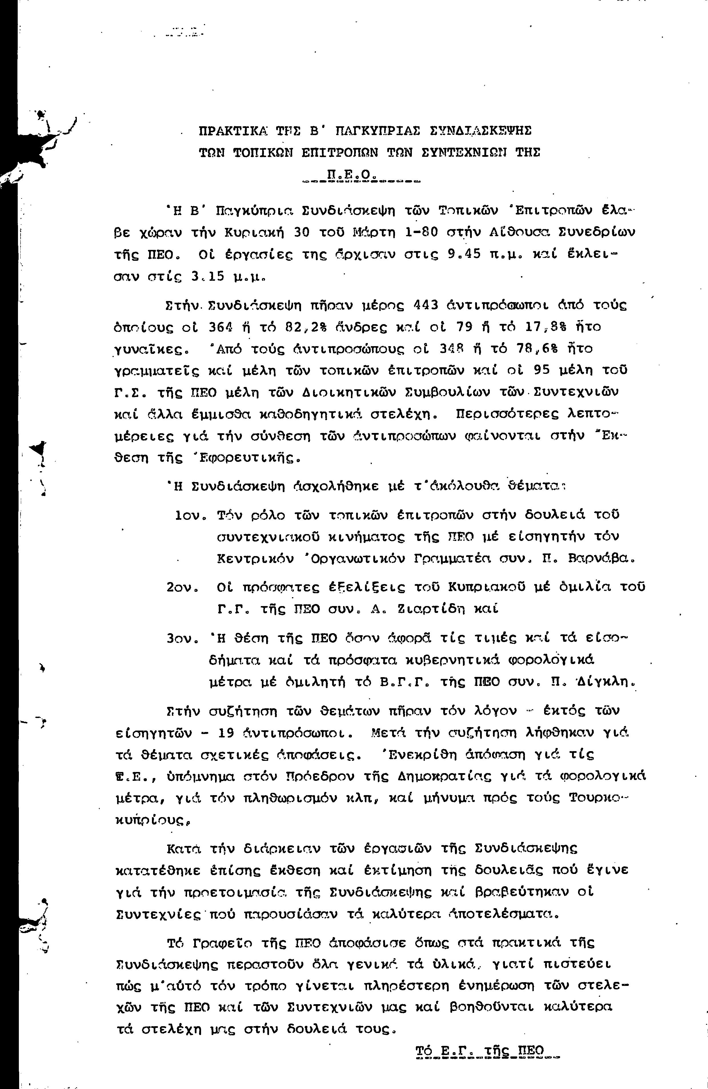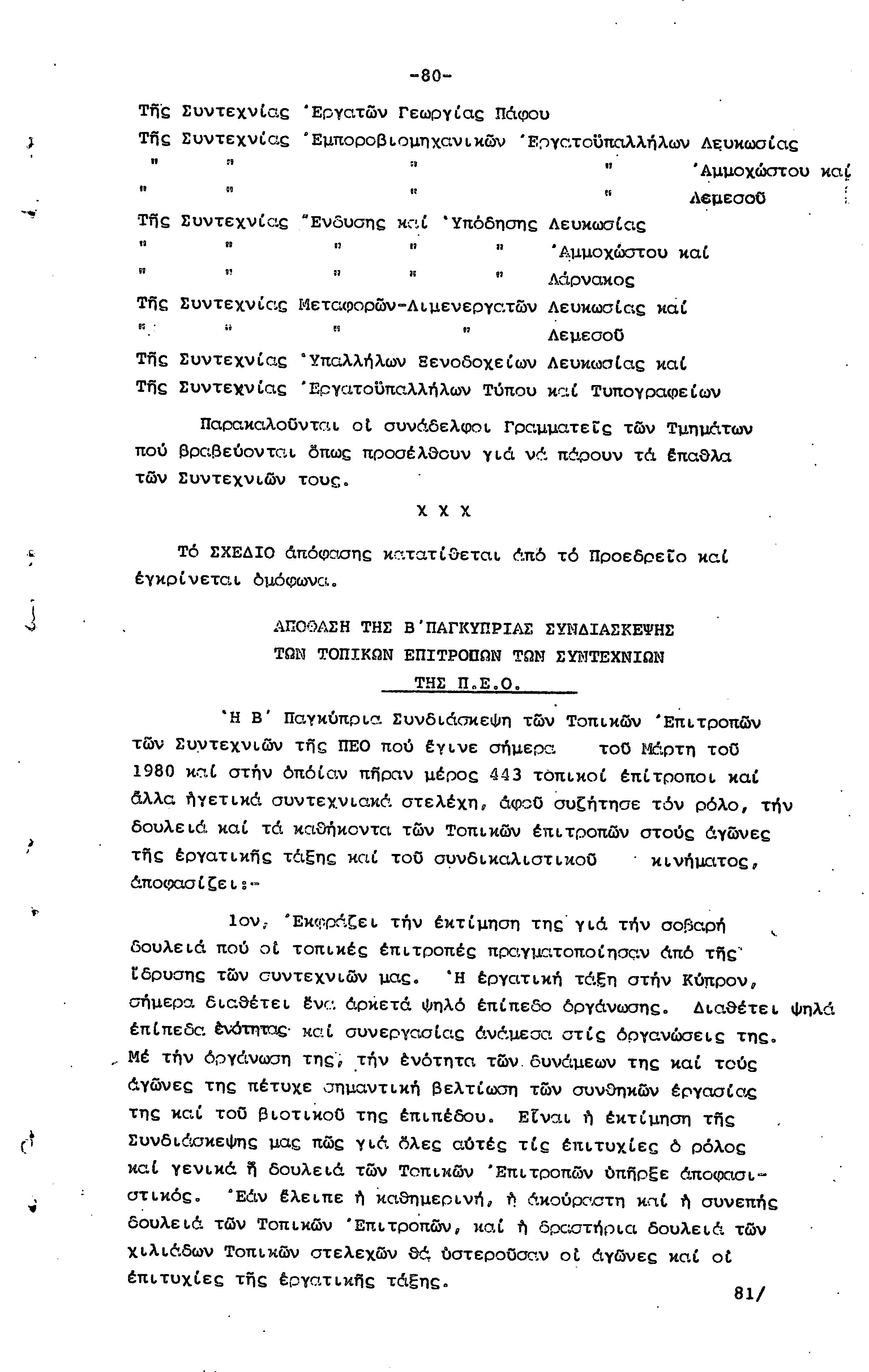 Β΄ΠΑΓΚΥΠΡΙΑ ΣΥΝΔΙΑΣΚΕΨΗ ΤΟΠΙΚΩΝ ΕΠΙΤΡΟΠΩΝ ΤΩΝ ΣΥΝΤΕΧΝΙΩΝ ΠΕΟ, 30.03.1980 ( ΠΡΑΚΤΙΚΑ)