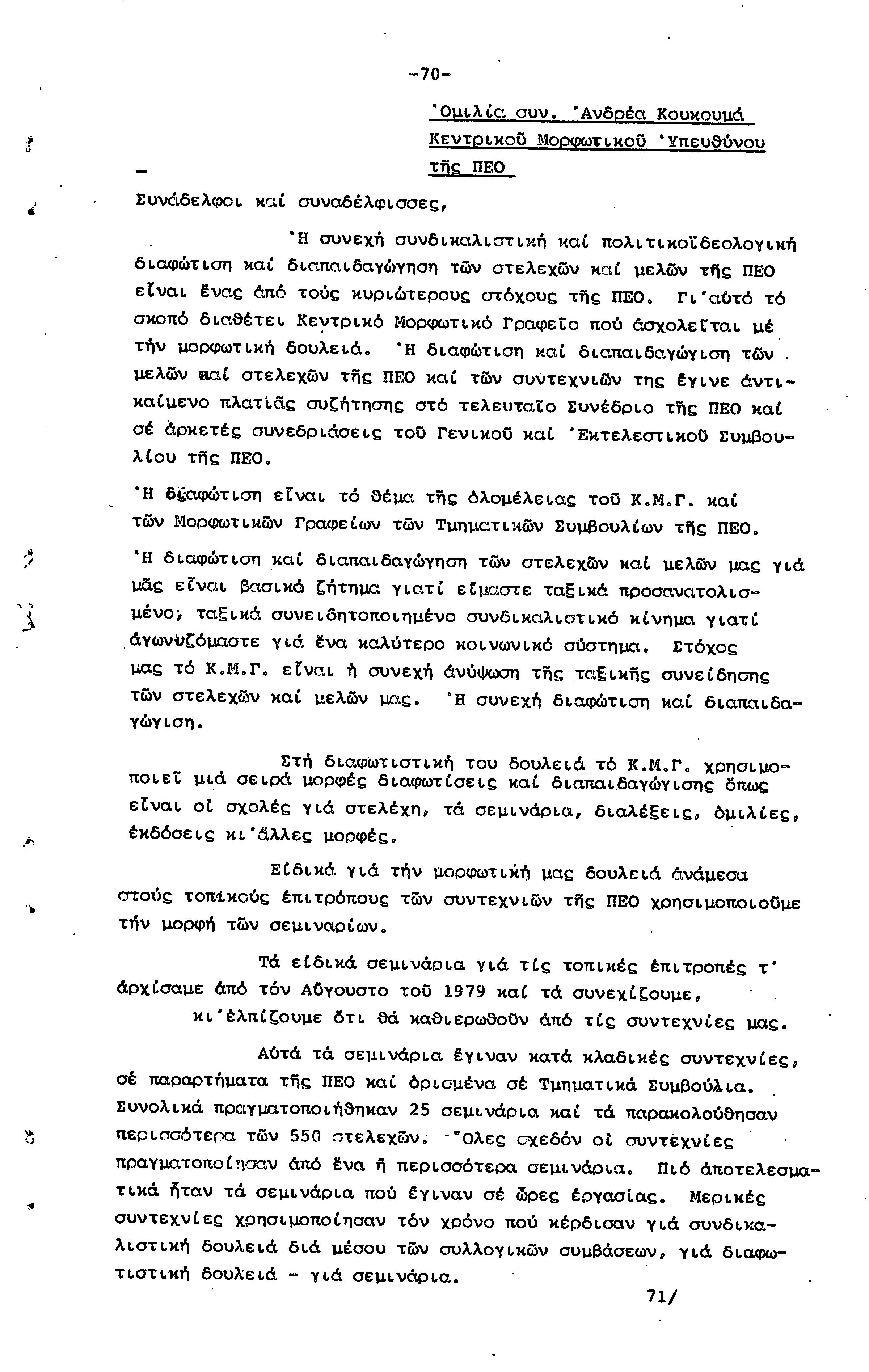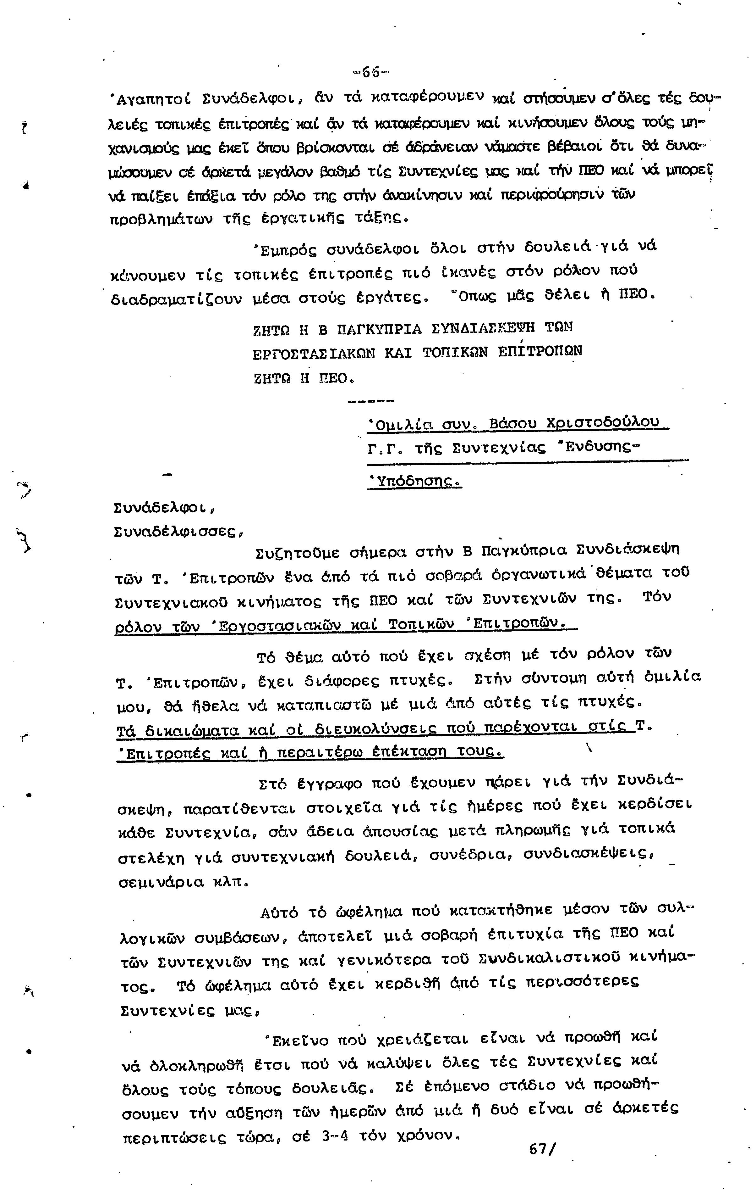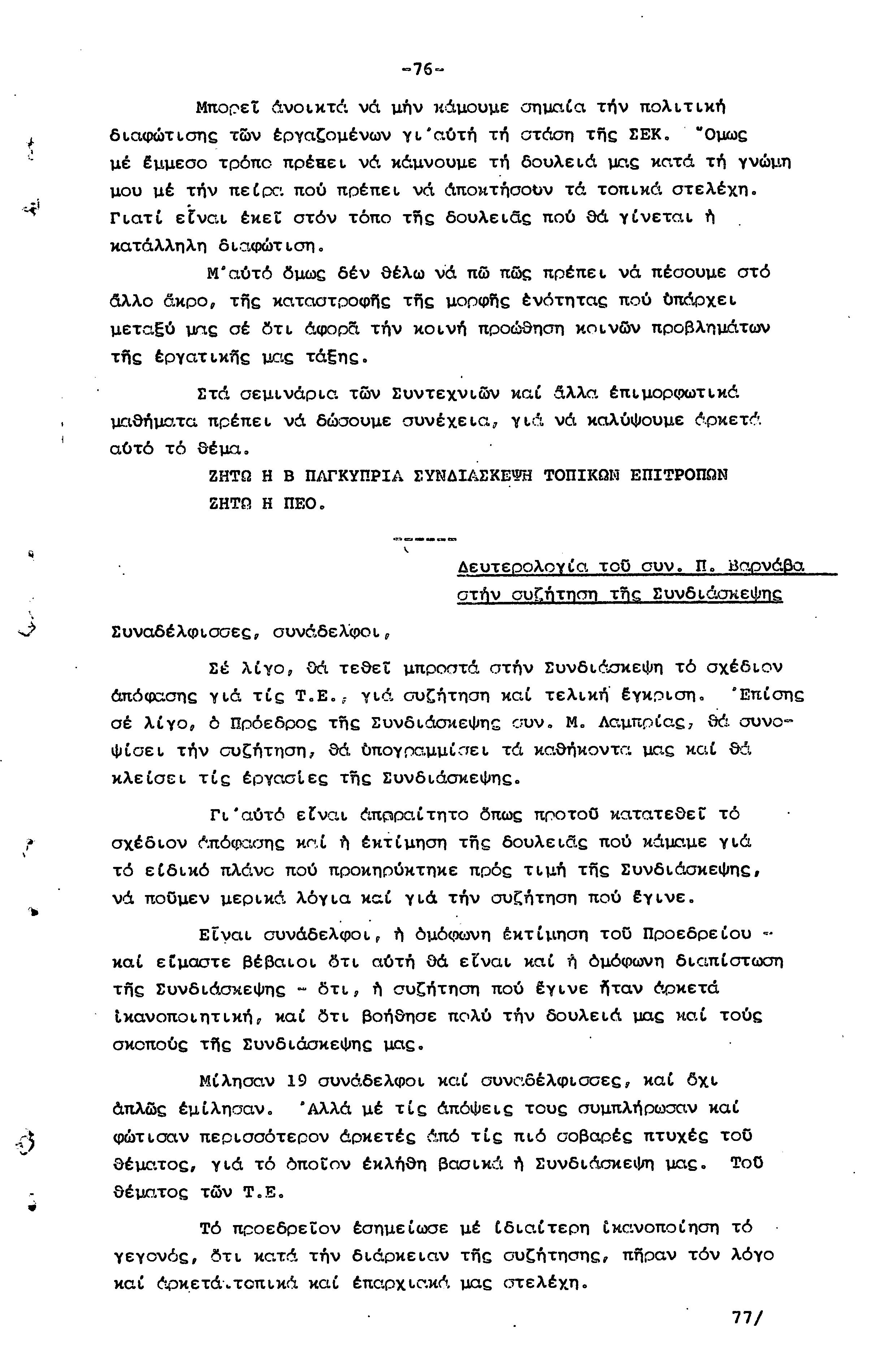 Β΄ΠΑΓΚΥΠΡΙΑ ΣΥΝΔΙΑΣΚΕΨΗ ΤΟΠΙΚΩΝ ΕΠΙΤΡΟΠΩΝ ΤΩΝ ΣΥΝΤΕΧΝΙΩΝ ΠΕΟ, 30.03.1980 ( ΠΡΑΚΤΙΚΑ)