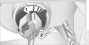 1. Turn the lamp counterclockwise, arrow 1, and remove it, arrow 2.