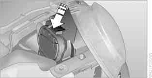 21 watt bulb, P 21 W Access to the lamp via the back or underside of the bumper. The illustration shows the fog lamp in the bumper of the MINI Cooper.
